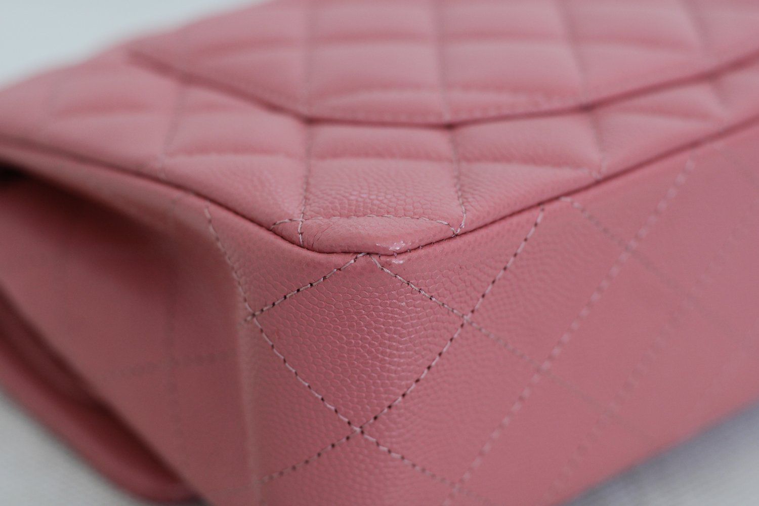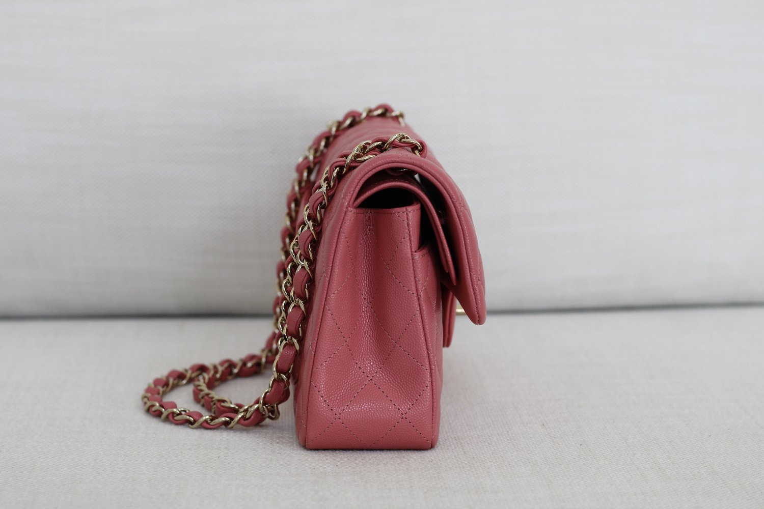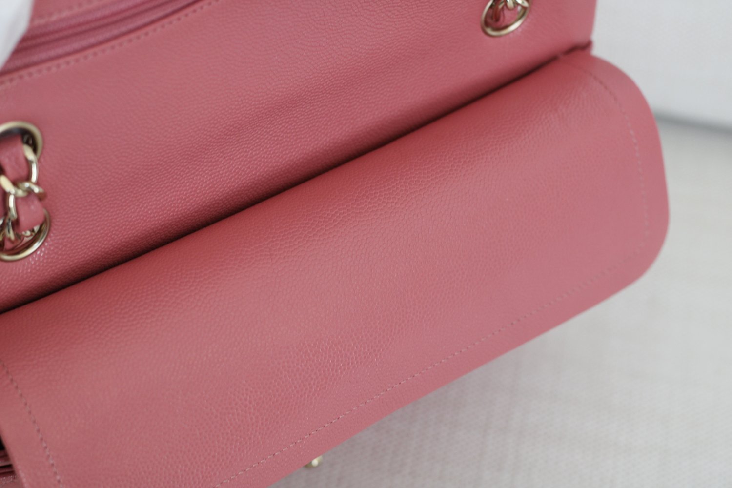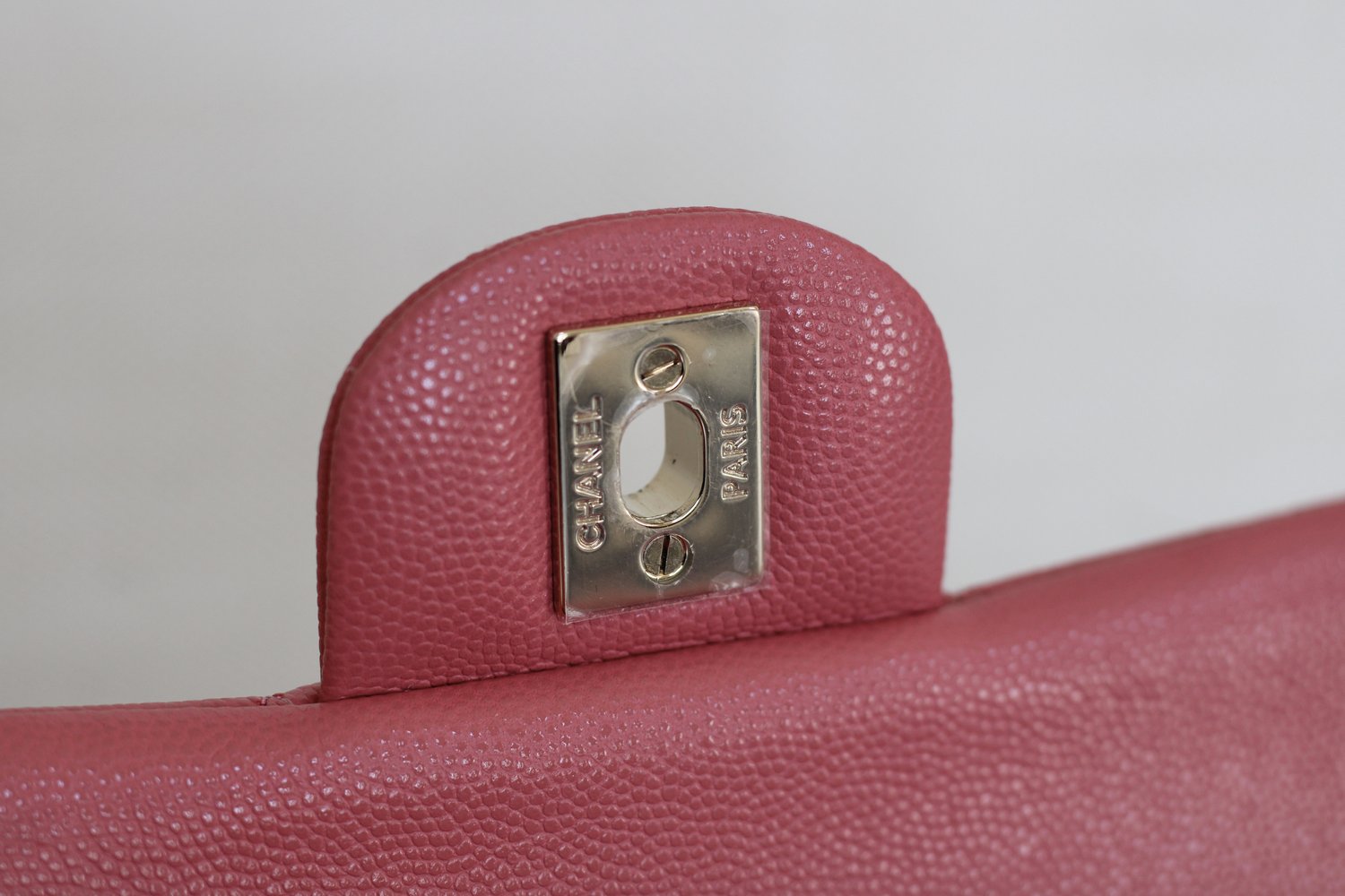 Excellent Condition. Gorgeous shade of pink in caviar with champagne gold hardware. Hairline scratches on hardware. Excellent structure and corners with minimal to no wear. Sticker on backplate.