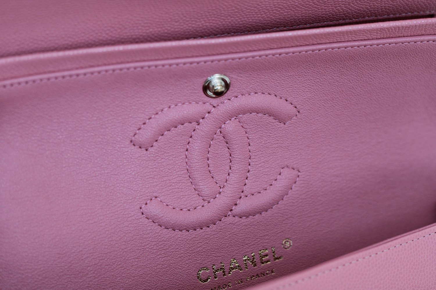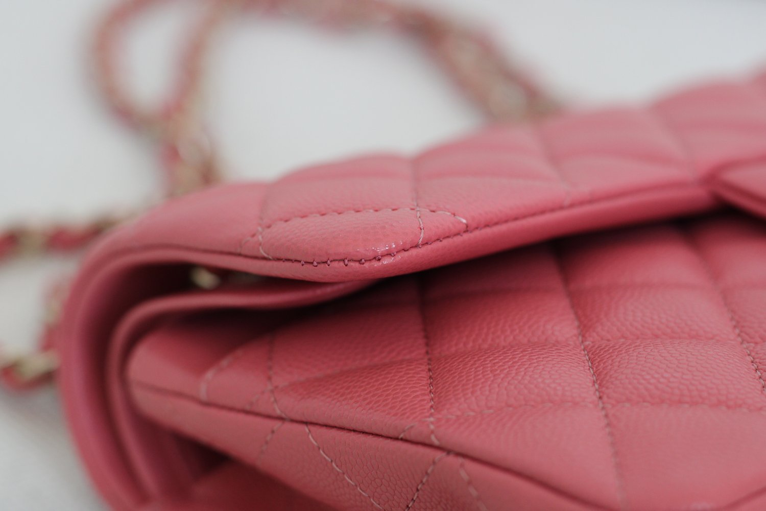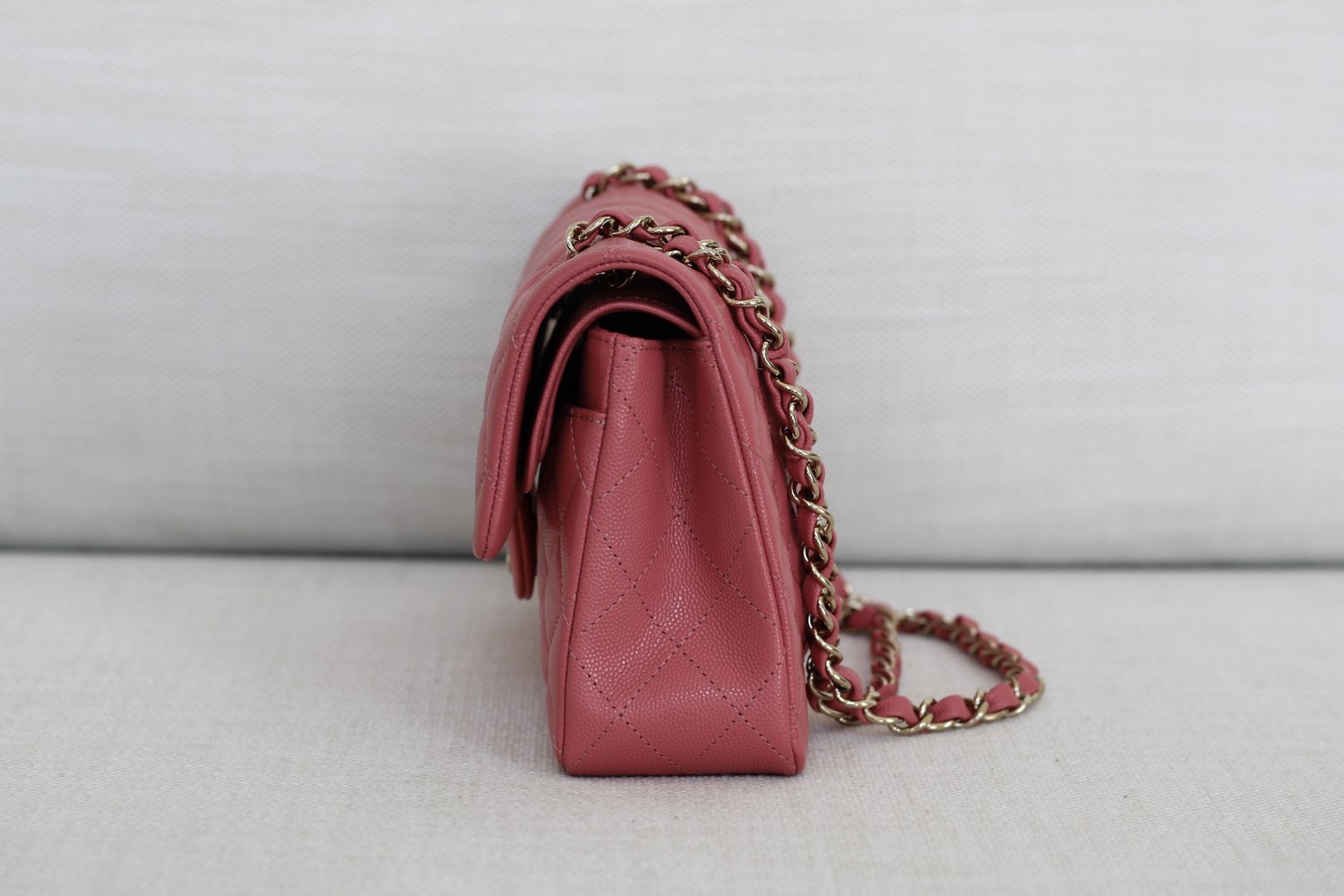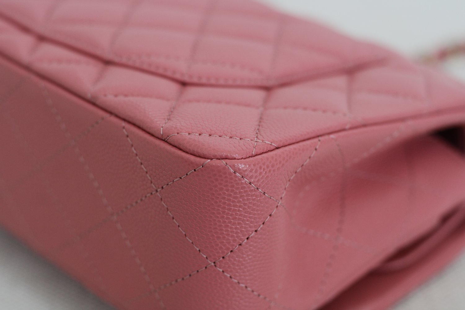 Excellent Condition. Gorgeous shade of pink in caviar with champagne gold hardware. Hairline scratches on hardware. Excellent structure and corners with minimal to no wear. Sticker on backplate.