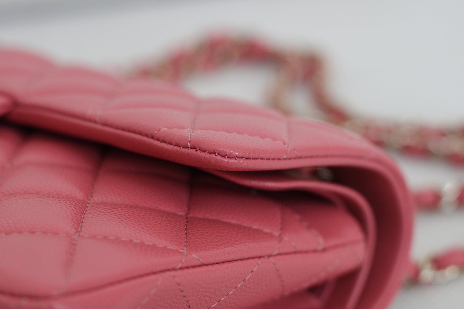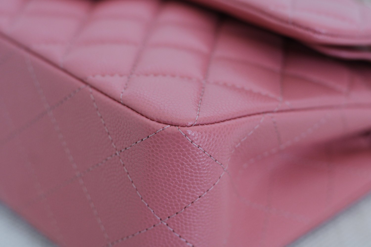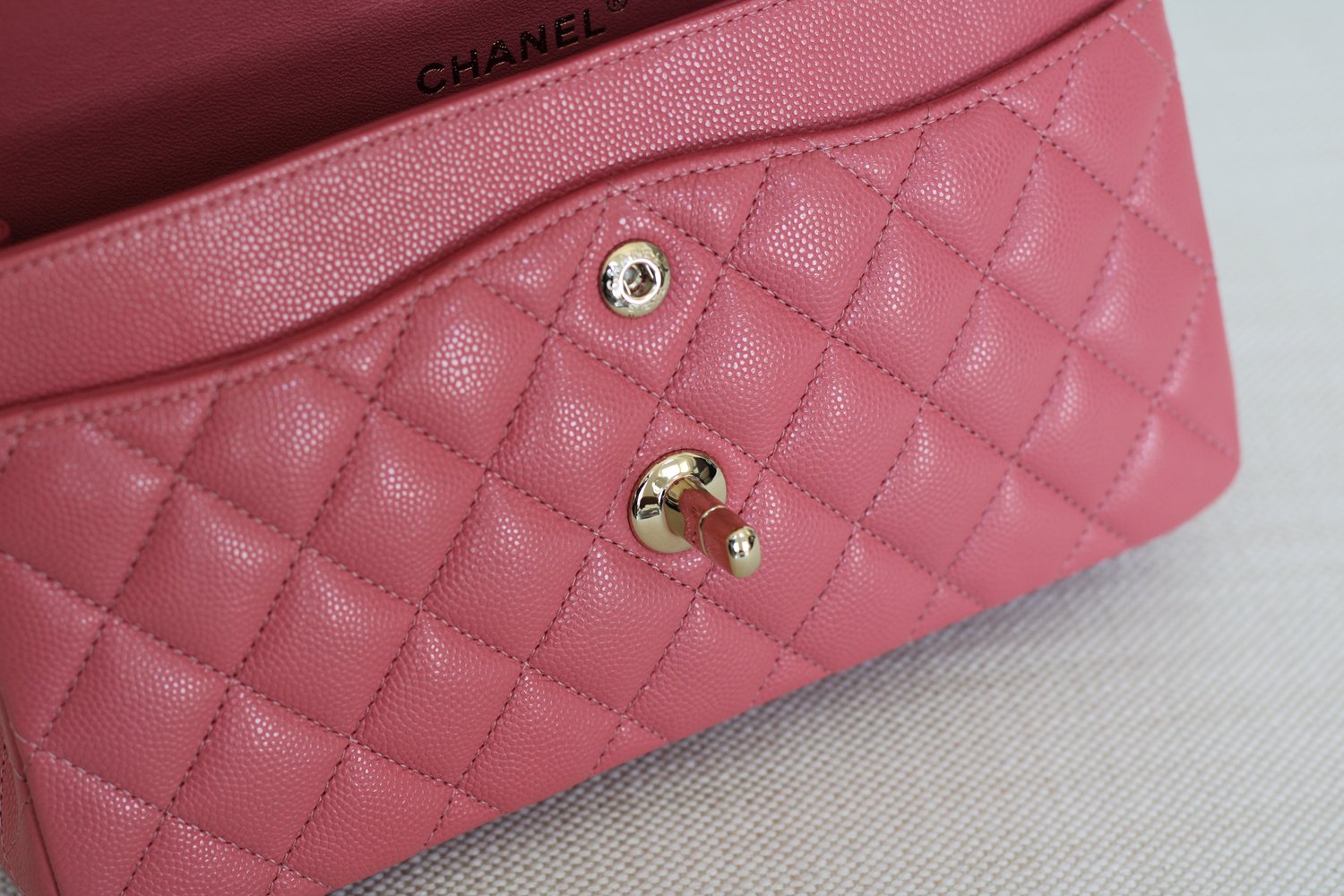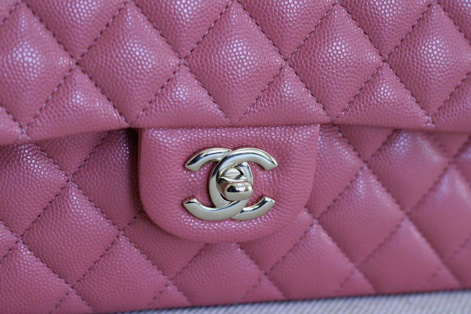 Excellent Condition. Gorgeous shade of pink in caviar with champagne gold hardware. Hairline scratches on hardware. Excellent structure and corners with minimal to no wear. Sticker on backplate.