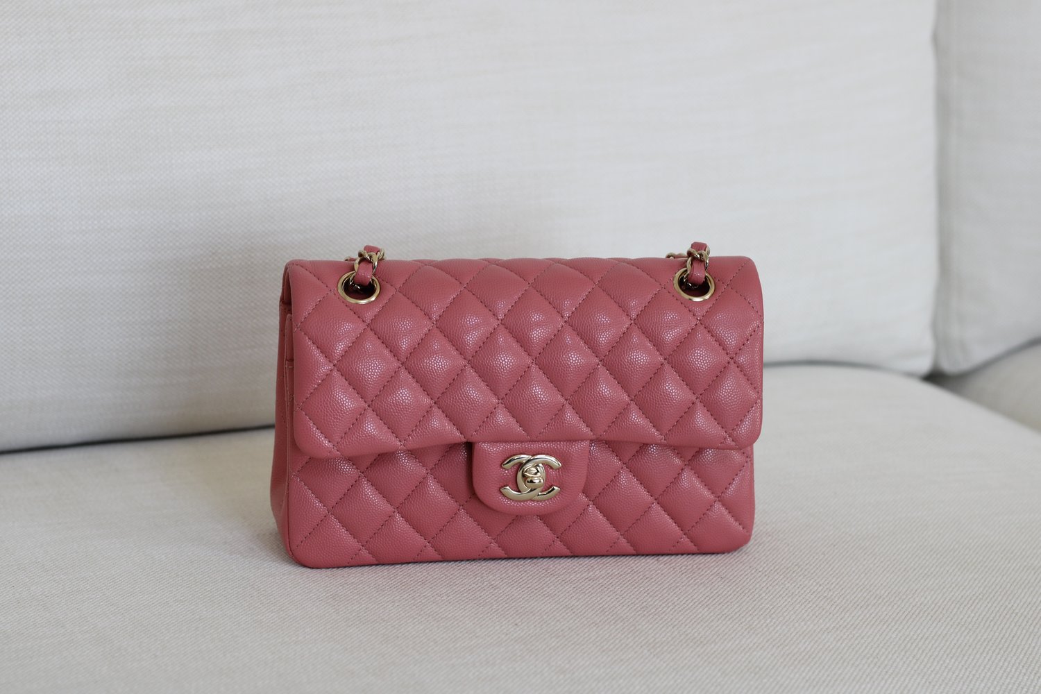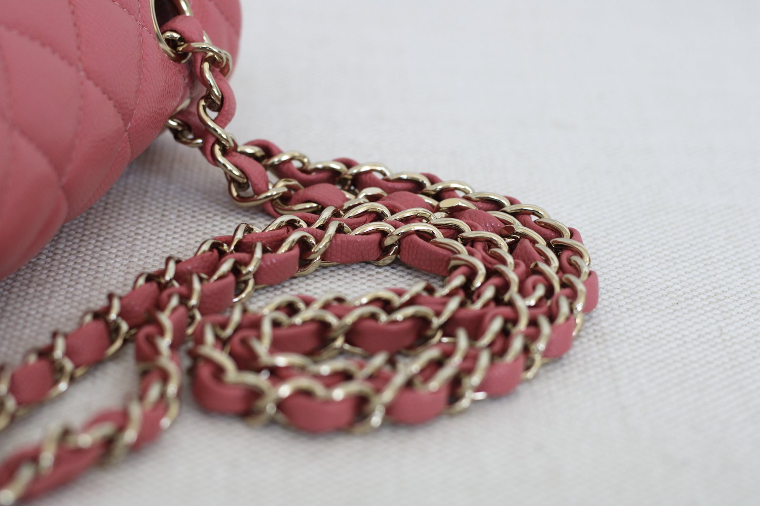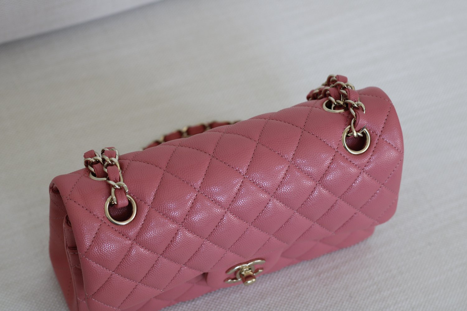 Chanel 19B Pink Caviar Small Classic Flap with Light Gold Hardware