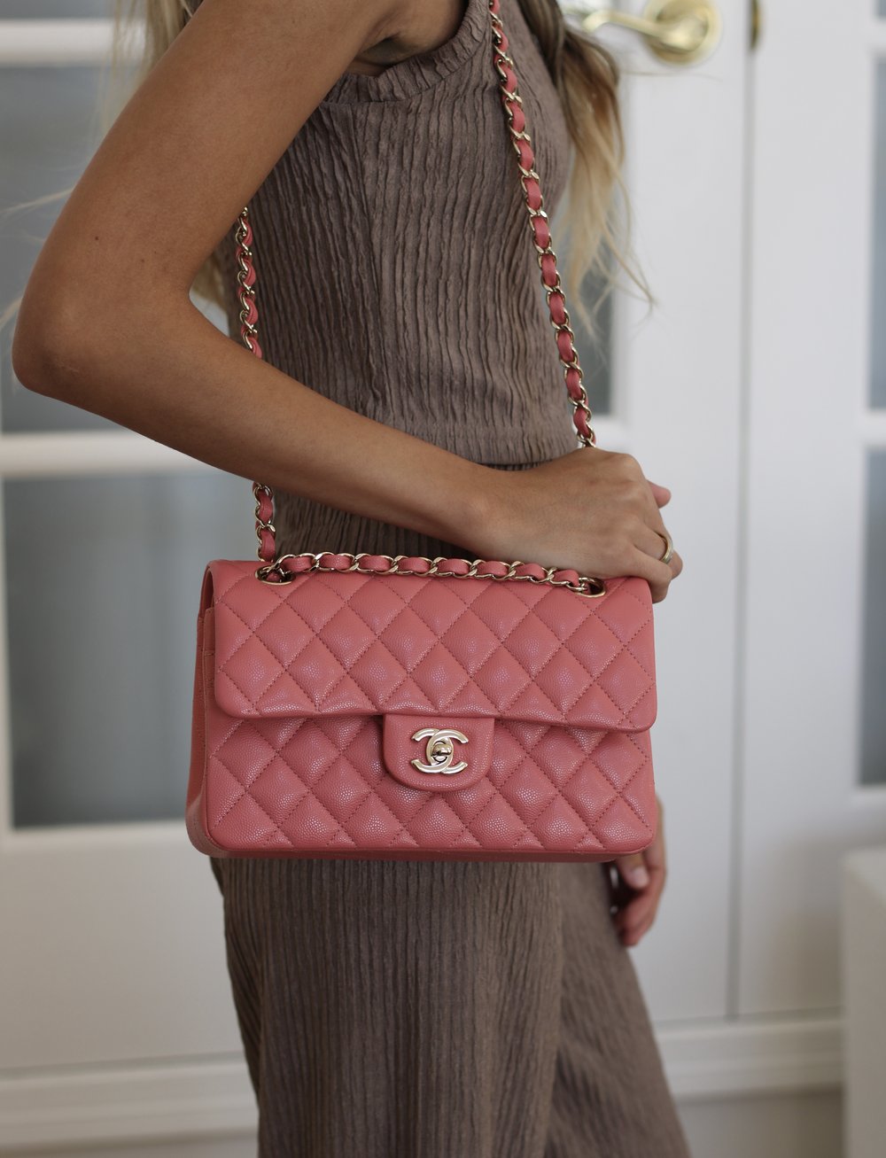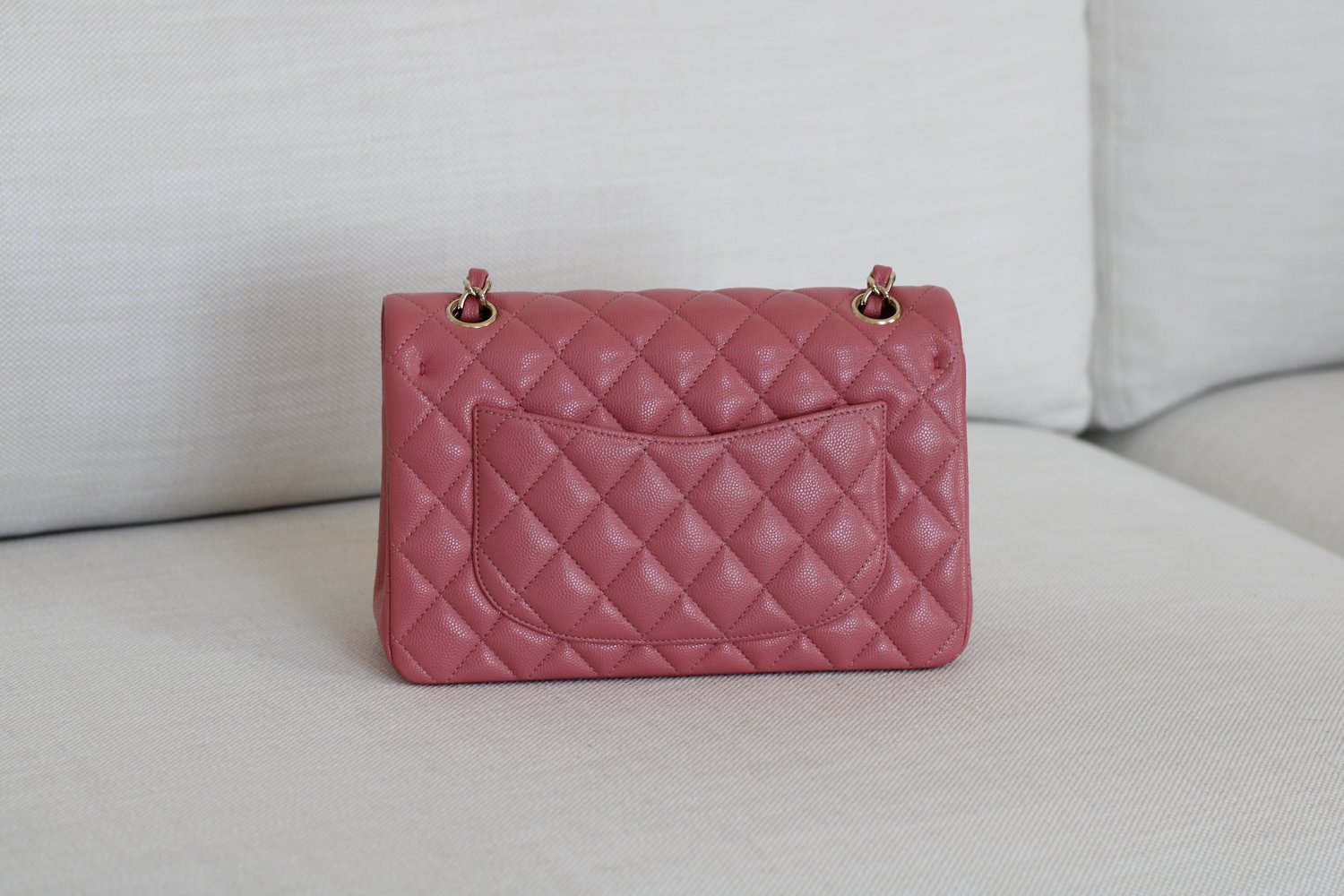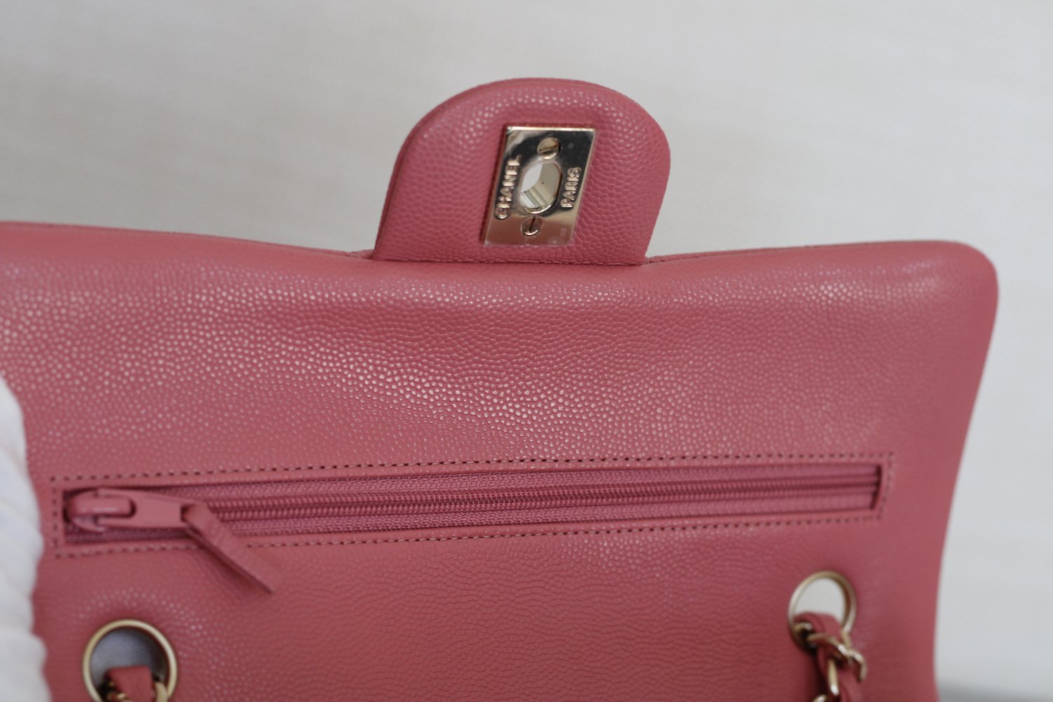 Chanel 19B Pink Caviar Small Classic Flap with Light Gold Hardware