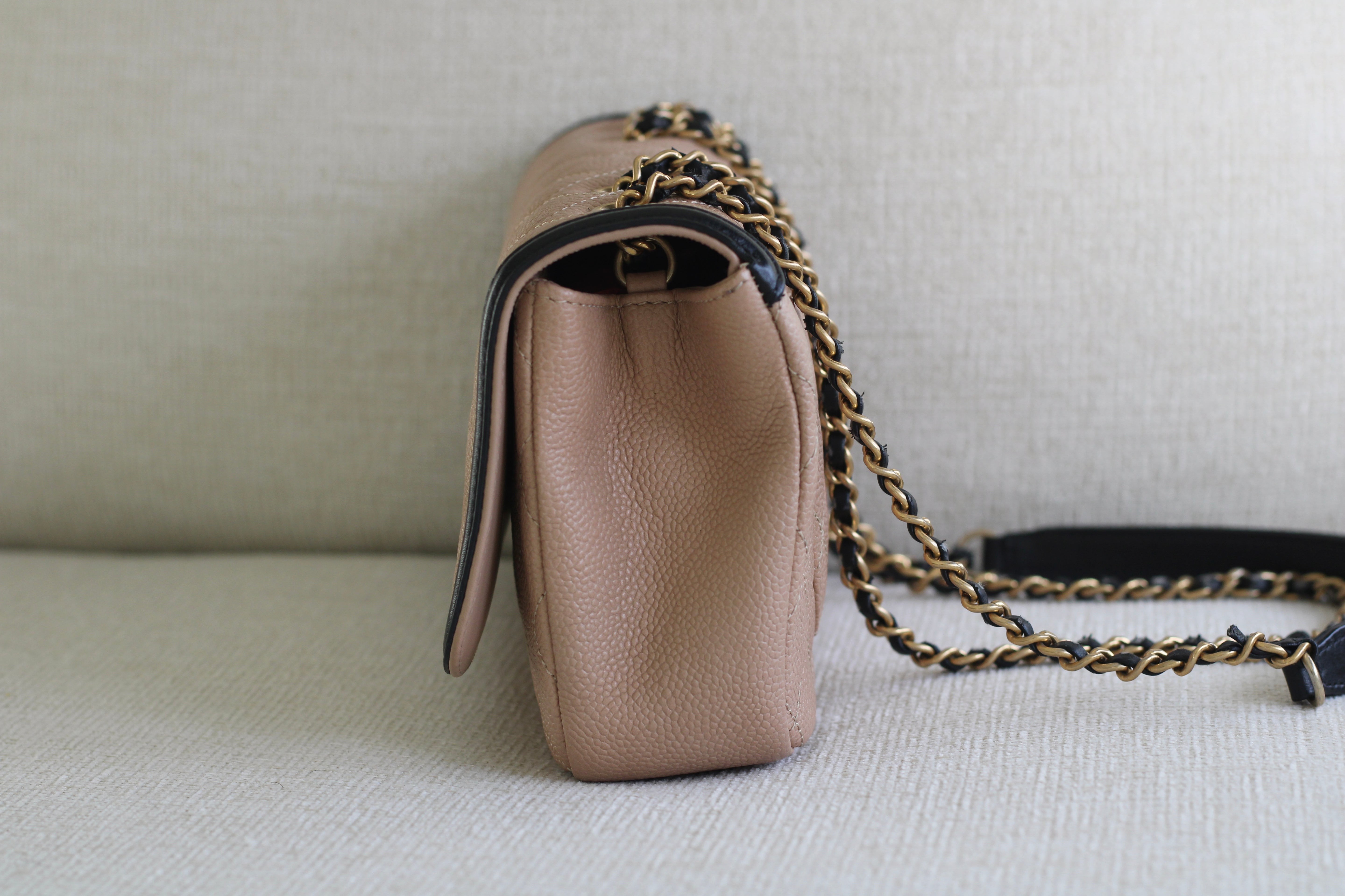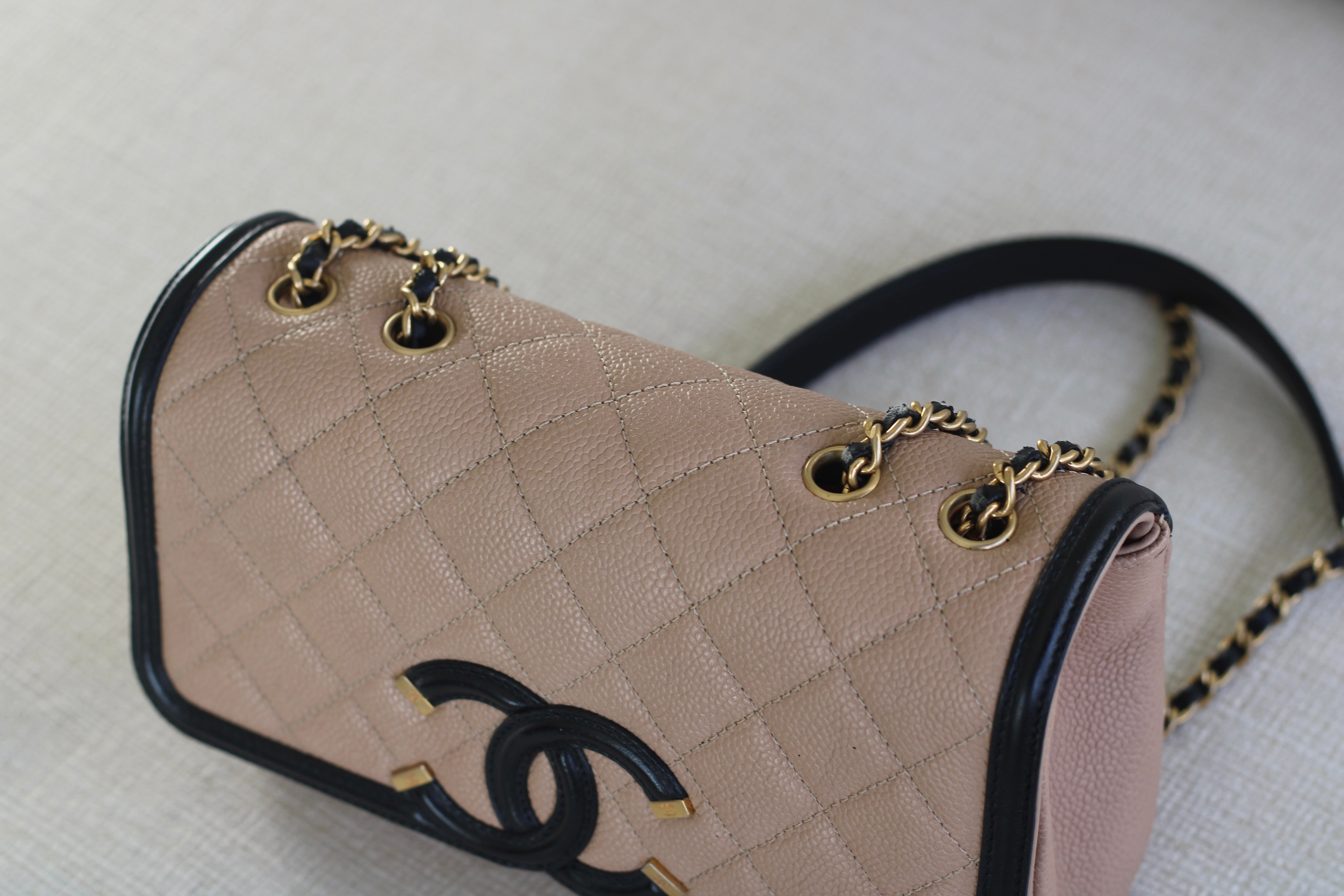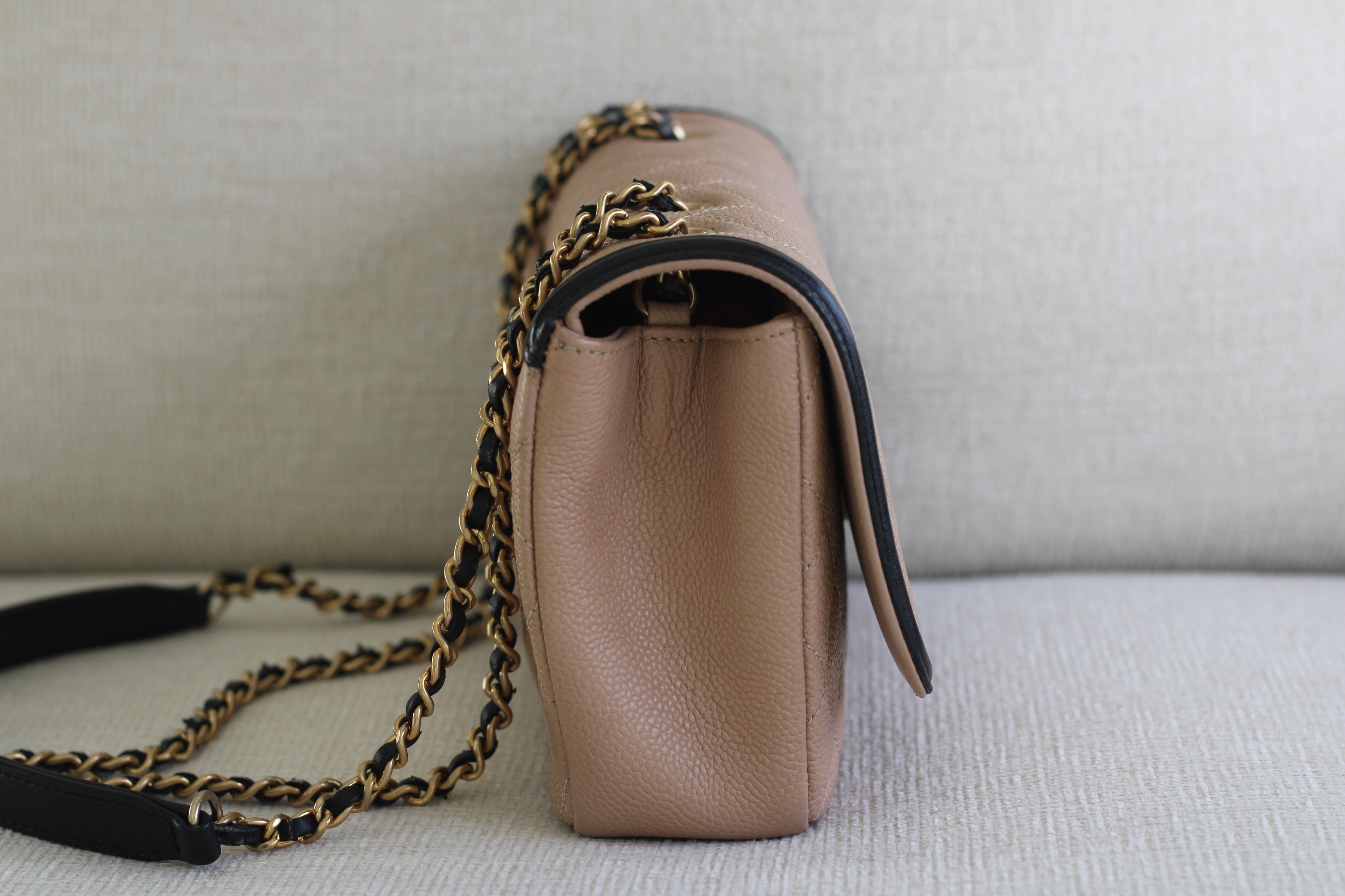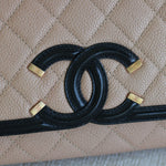 Chanel Beige & Black Caviar Small Filigree Flap with Aged Gold Hardware