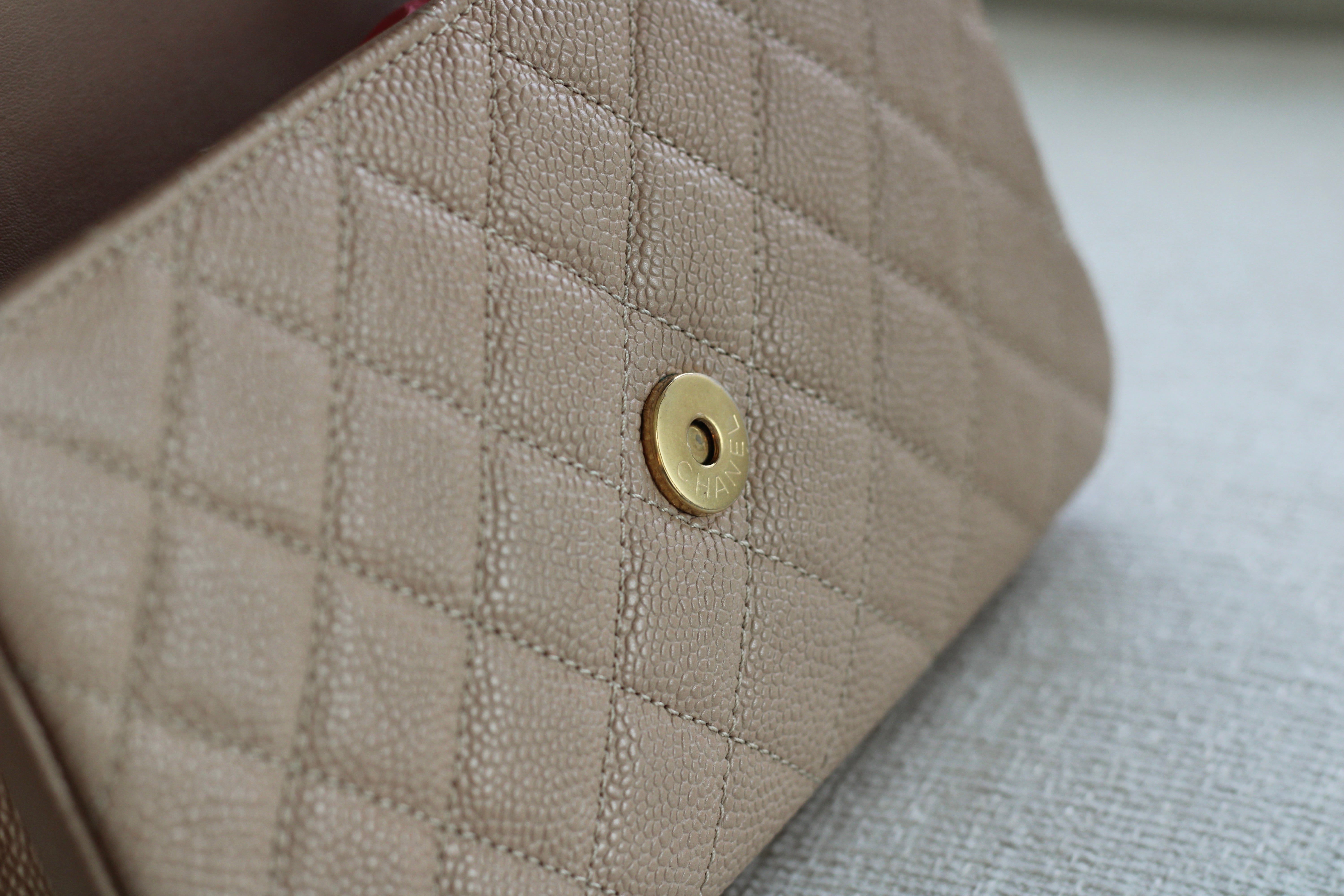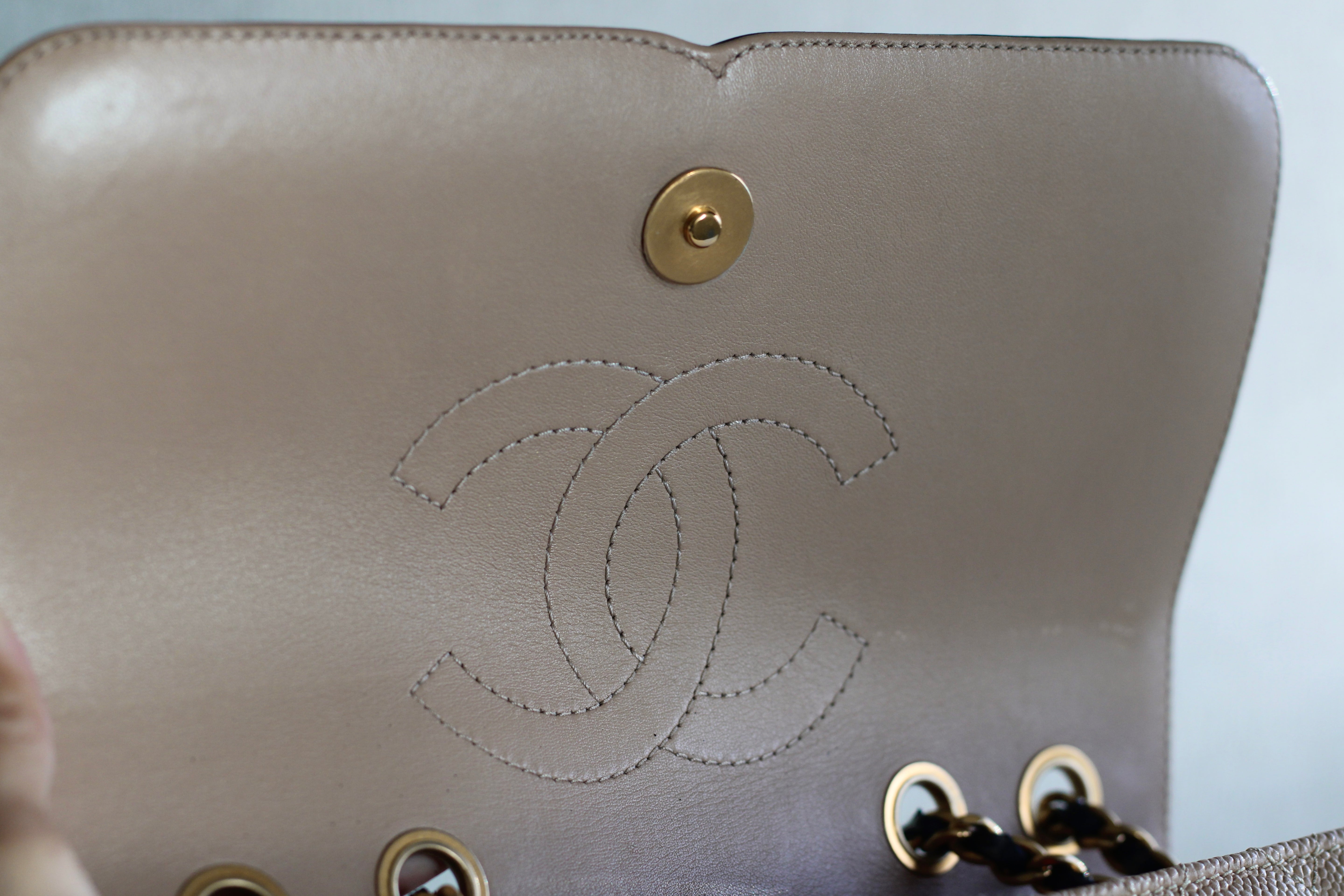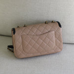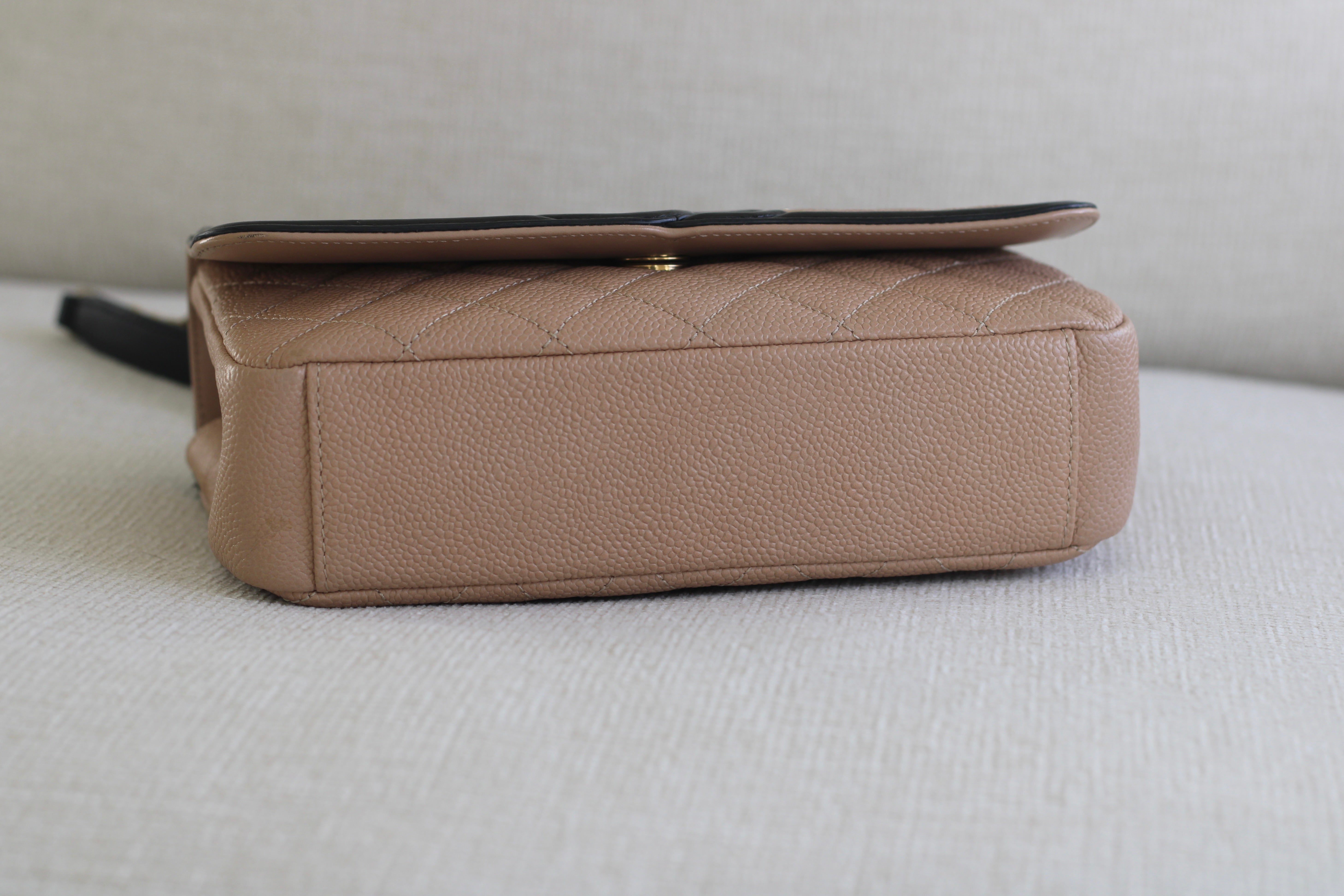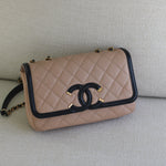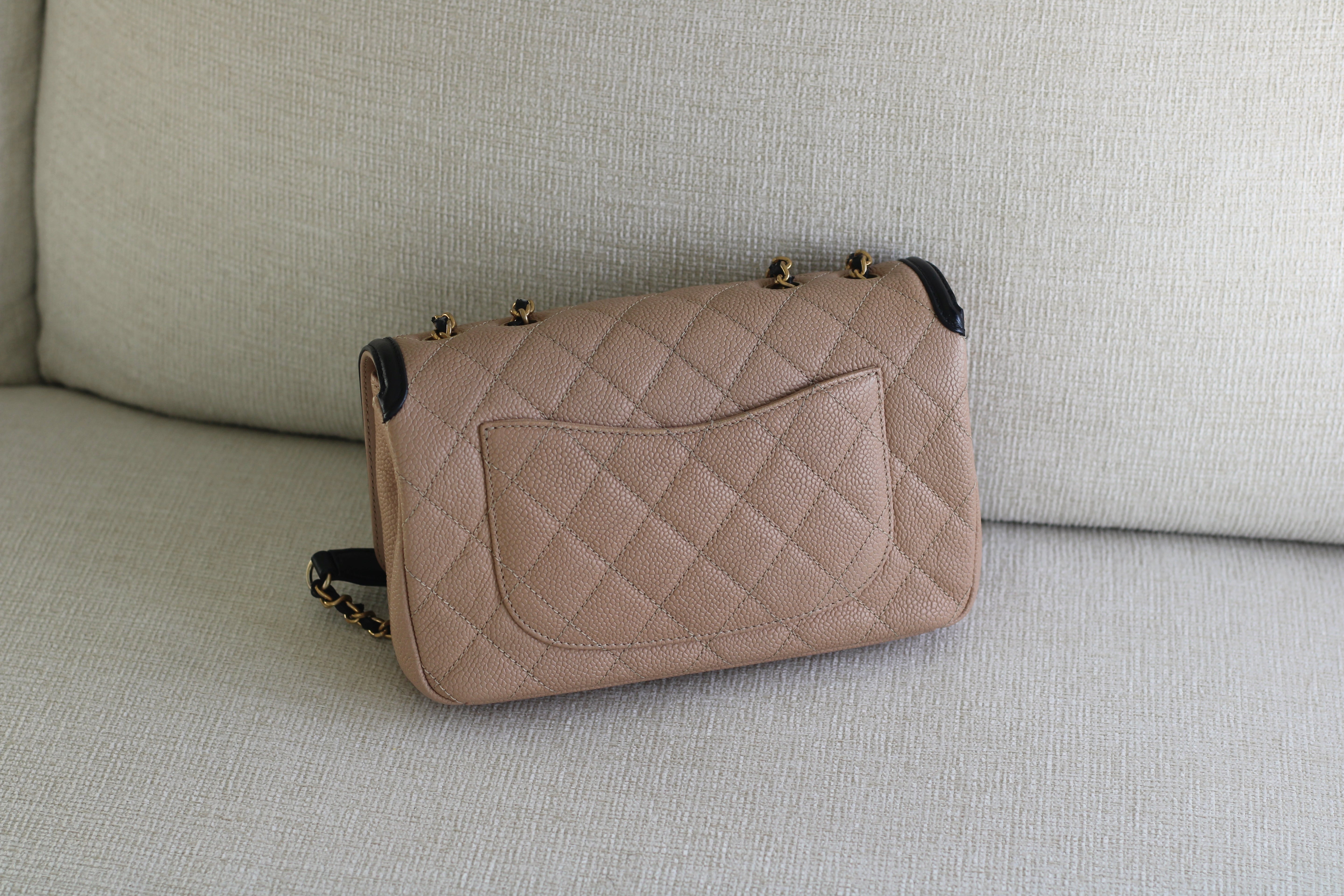 Chanel Beige & Black Caviar Small Filigree Flap with Aged Gold Hardware