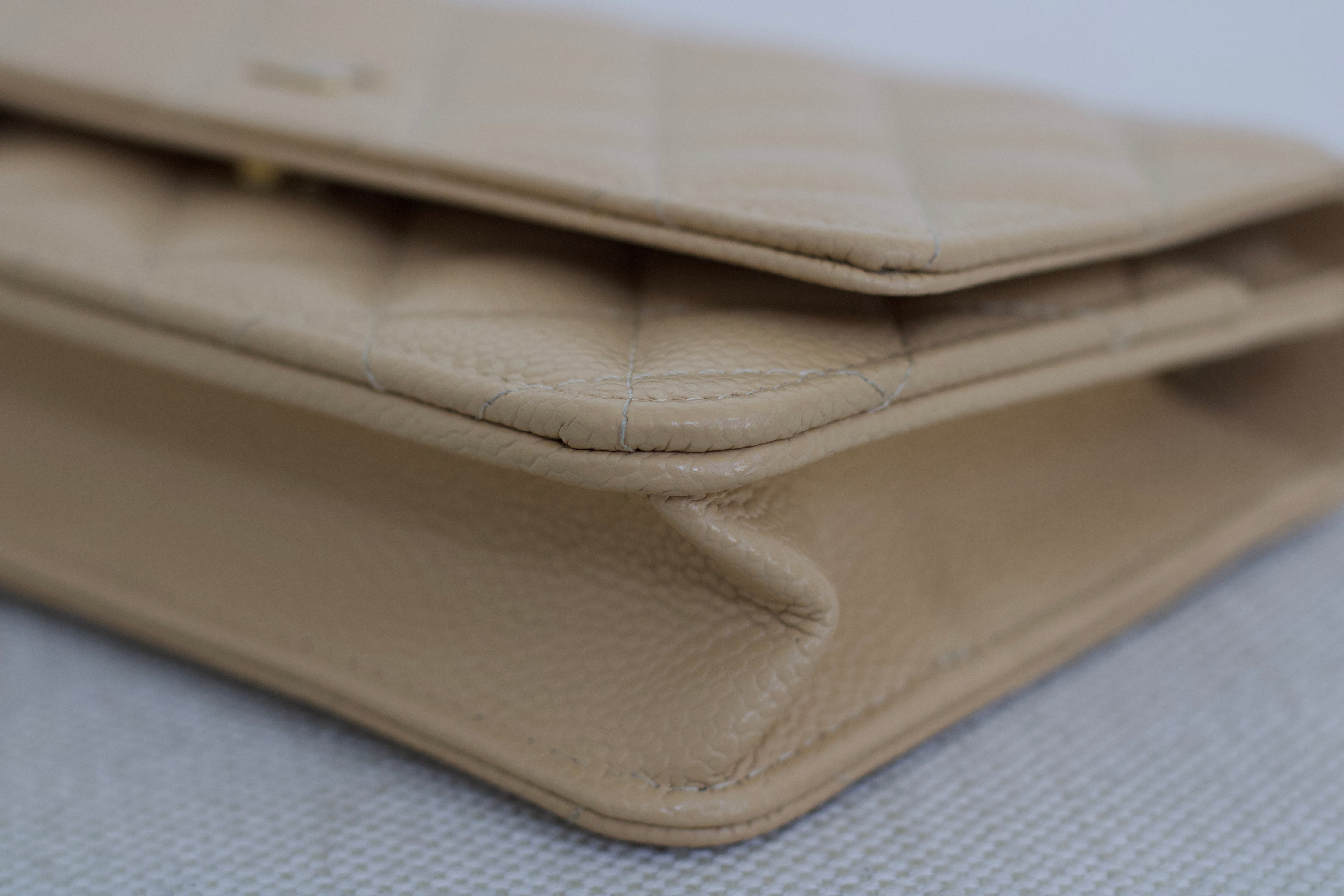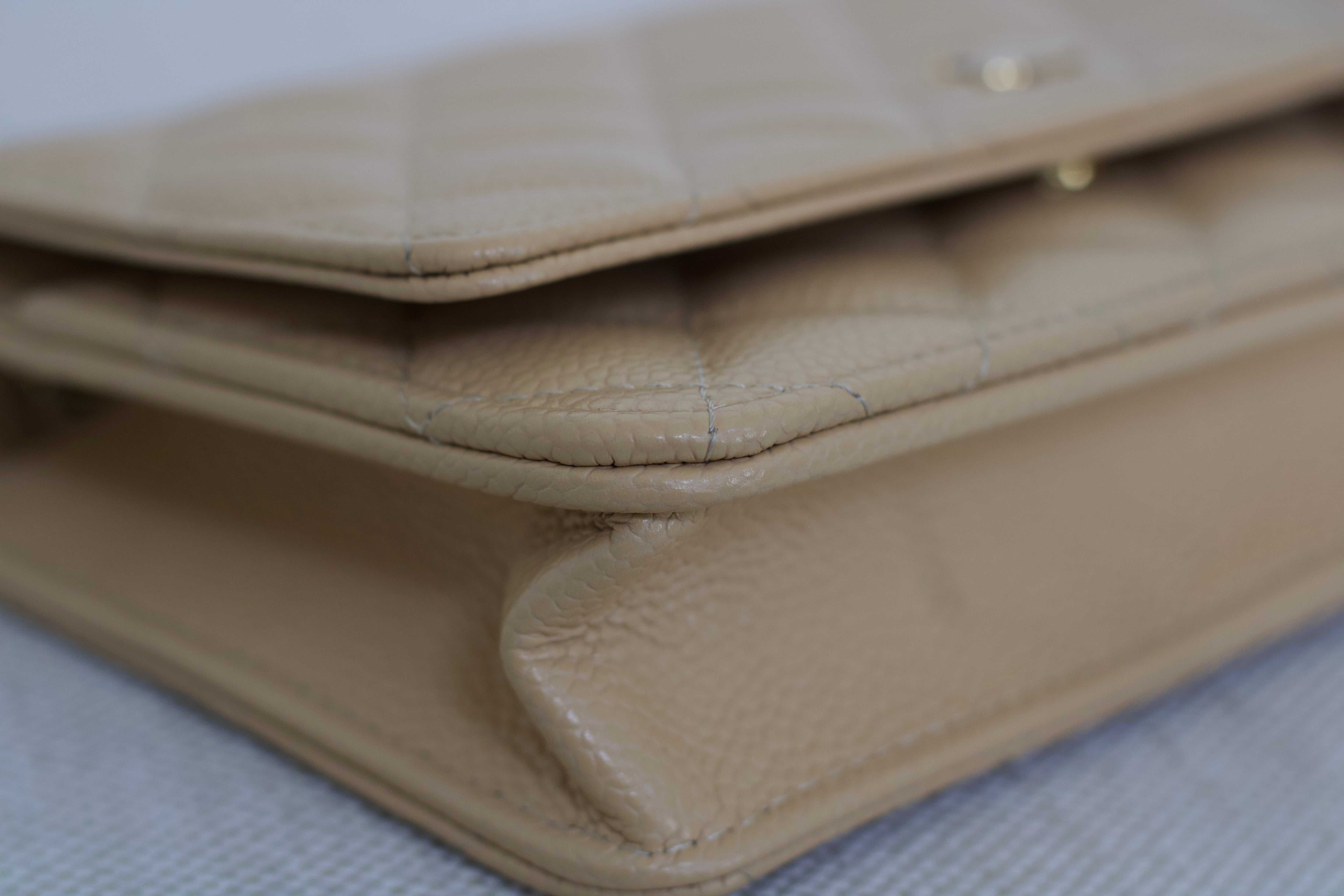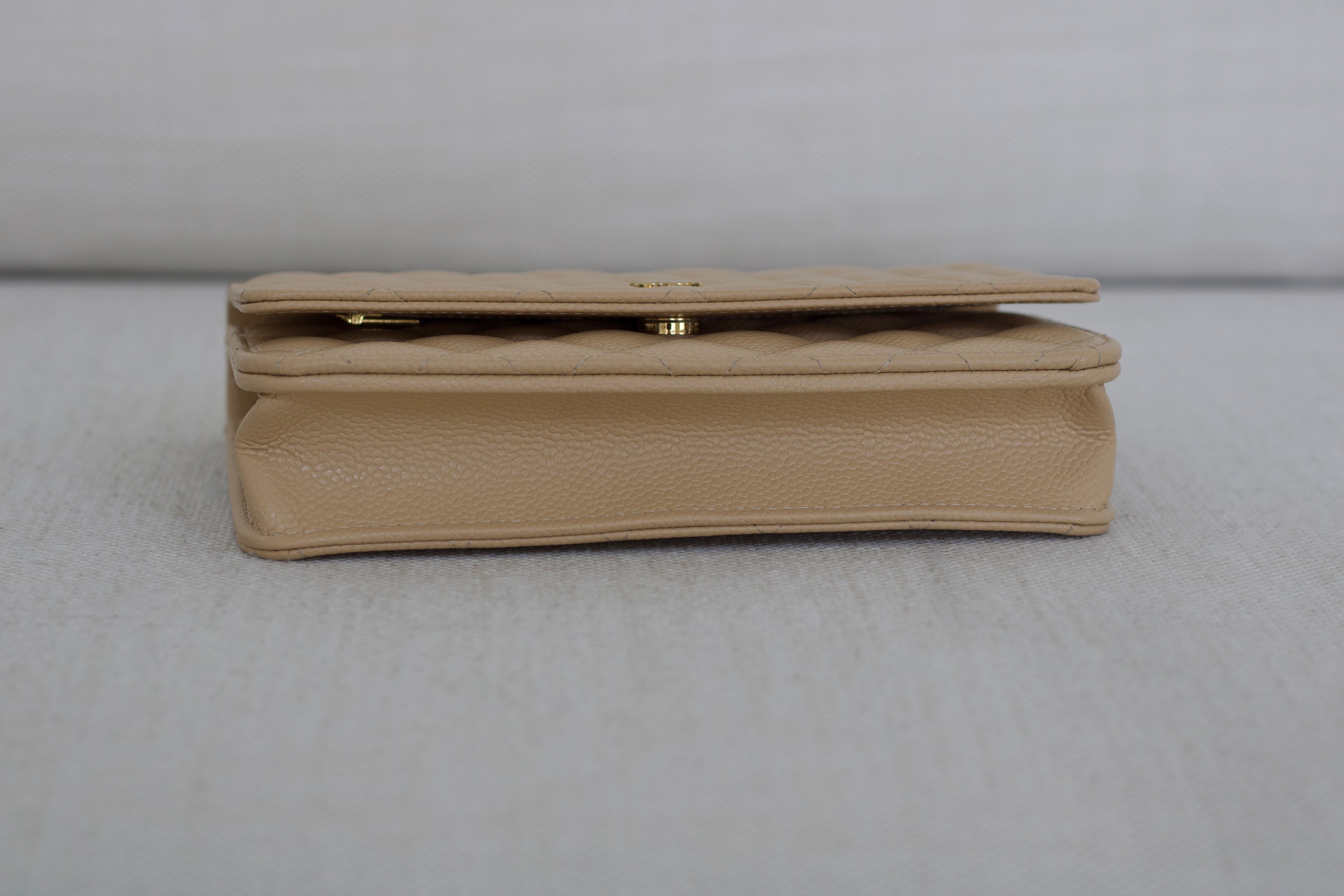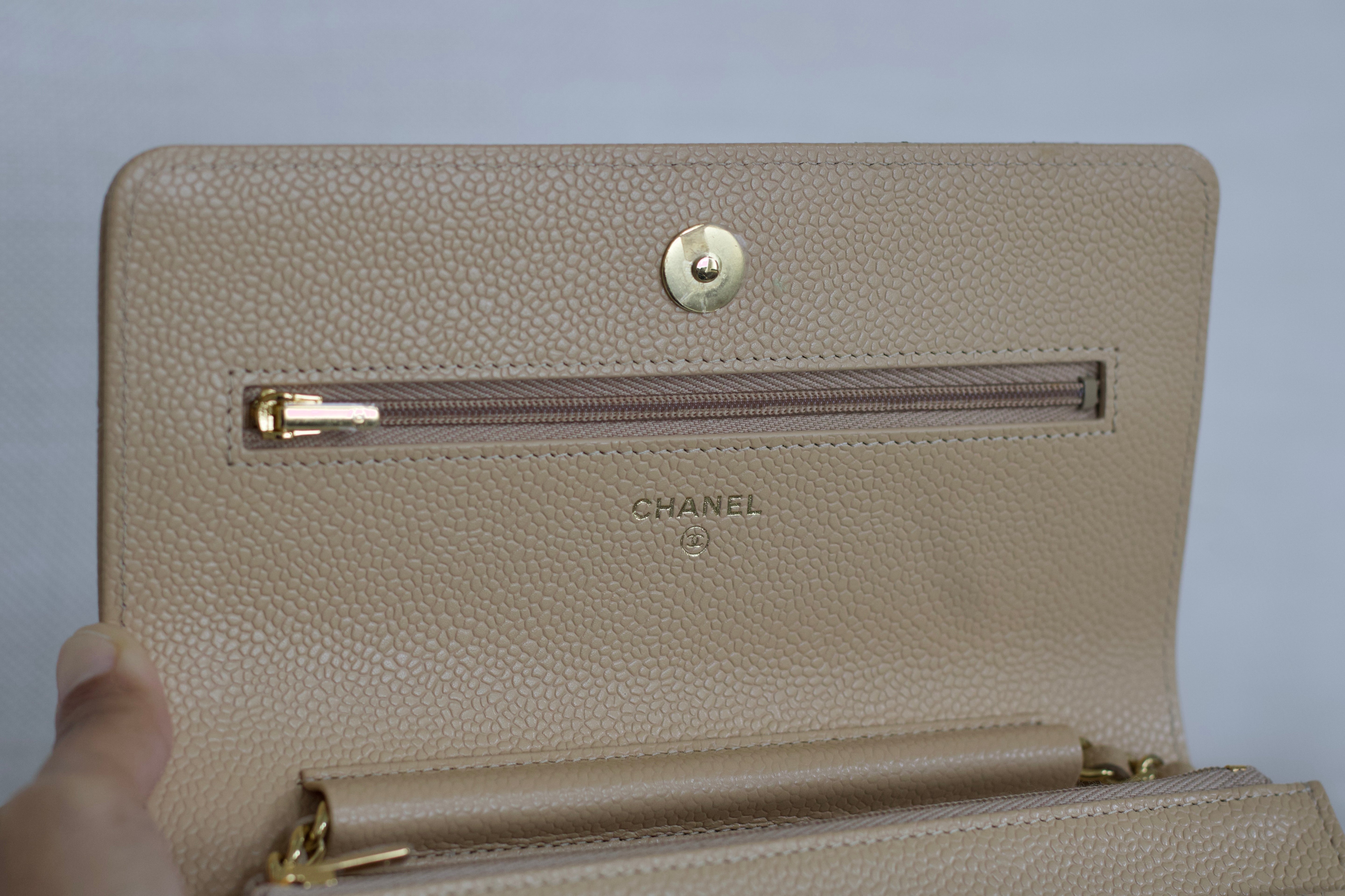 Chanel Beige Clair Caviar Wallet on Chain with Gold Hardware