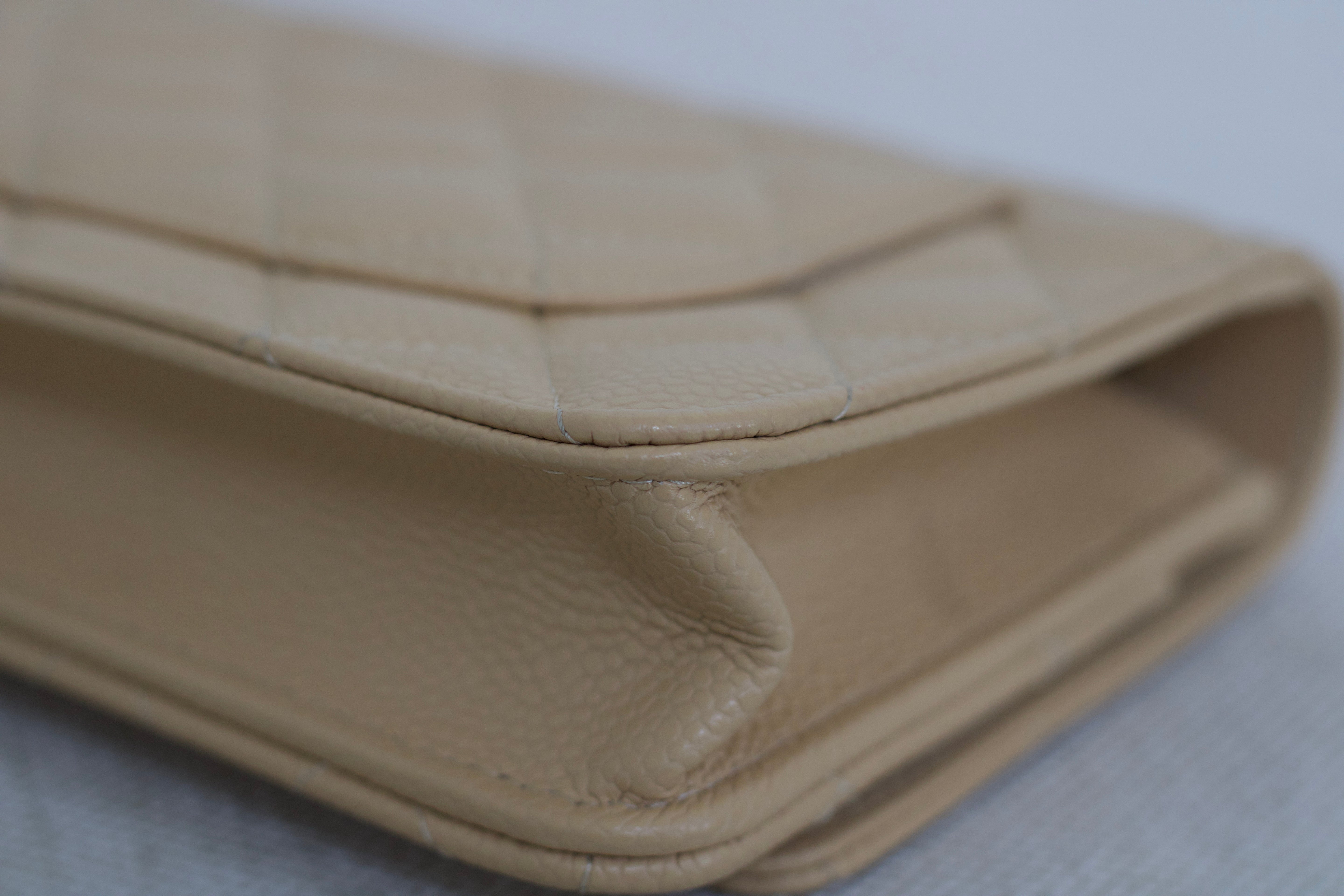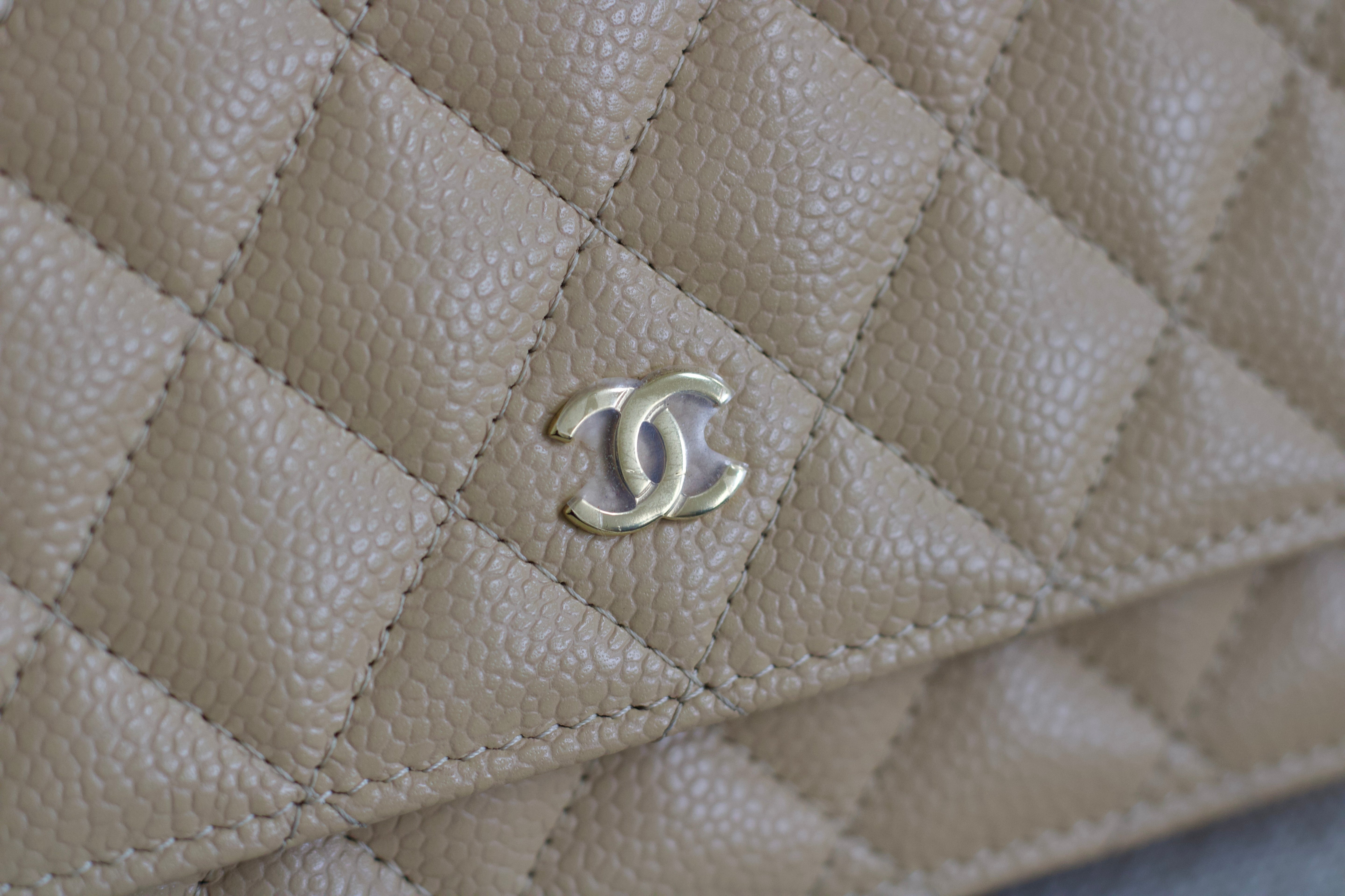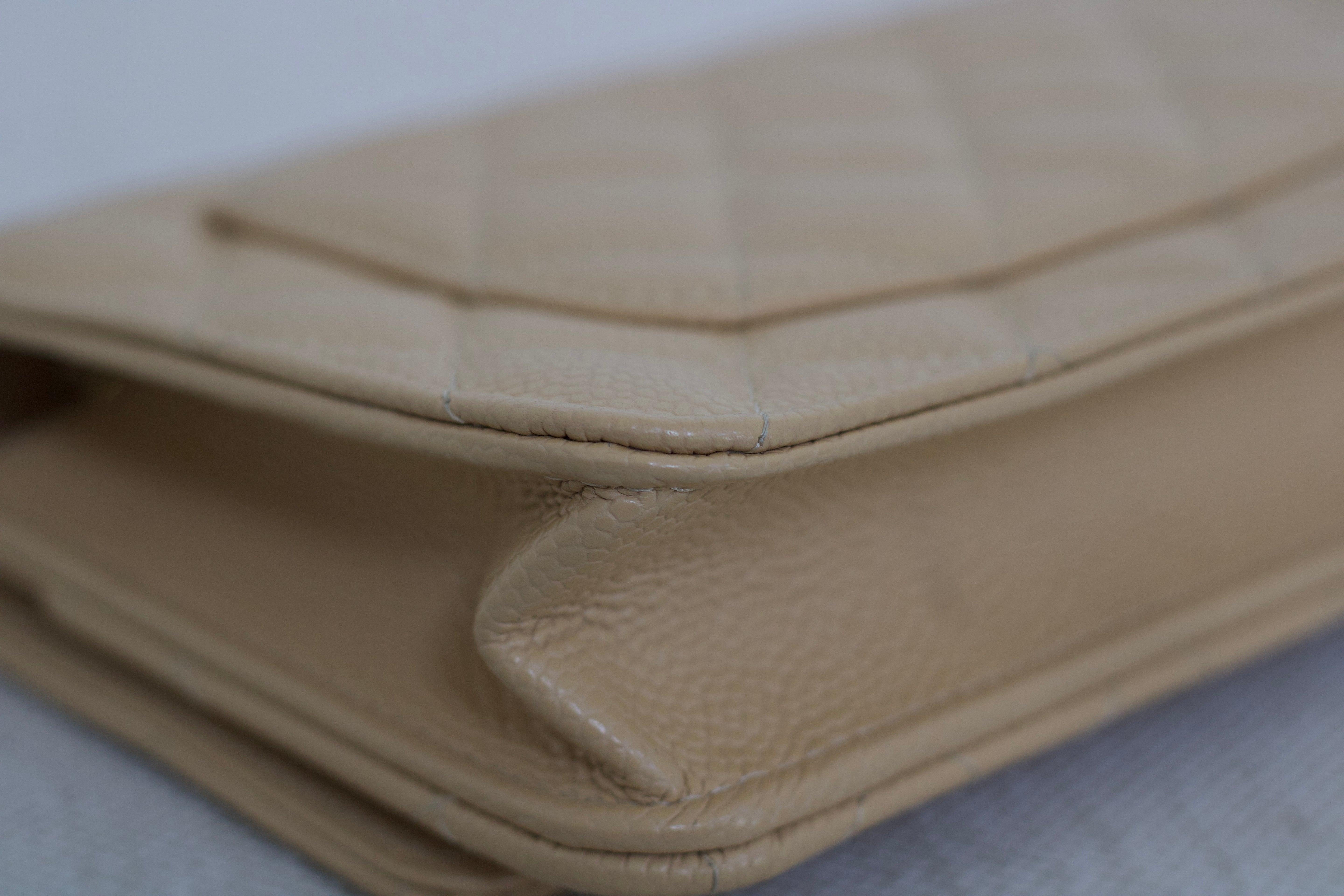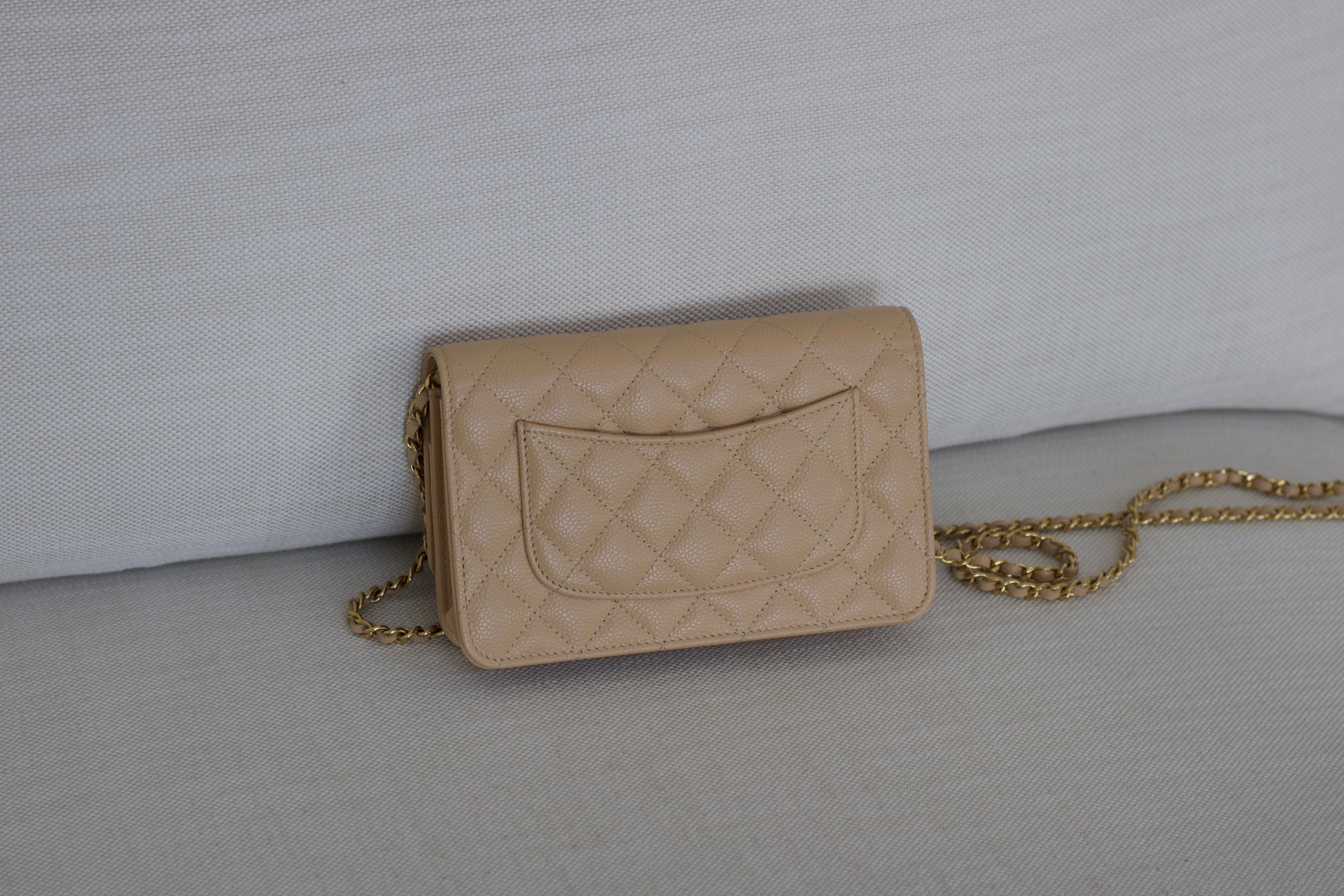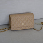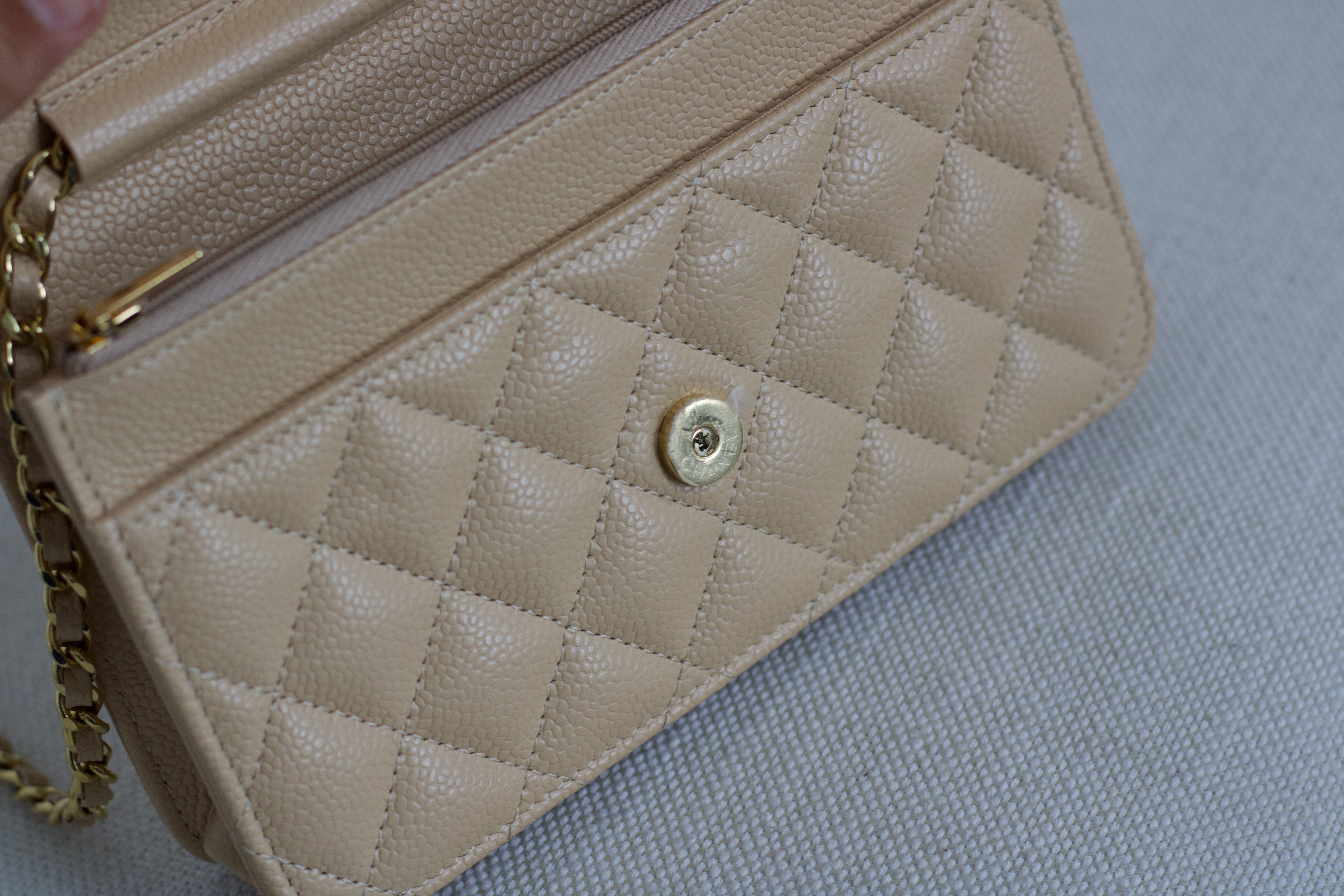 Chanel Beige Clair Caviar Wallet on Chain with Gold Hardware