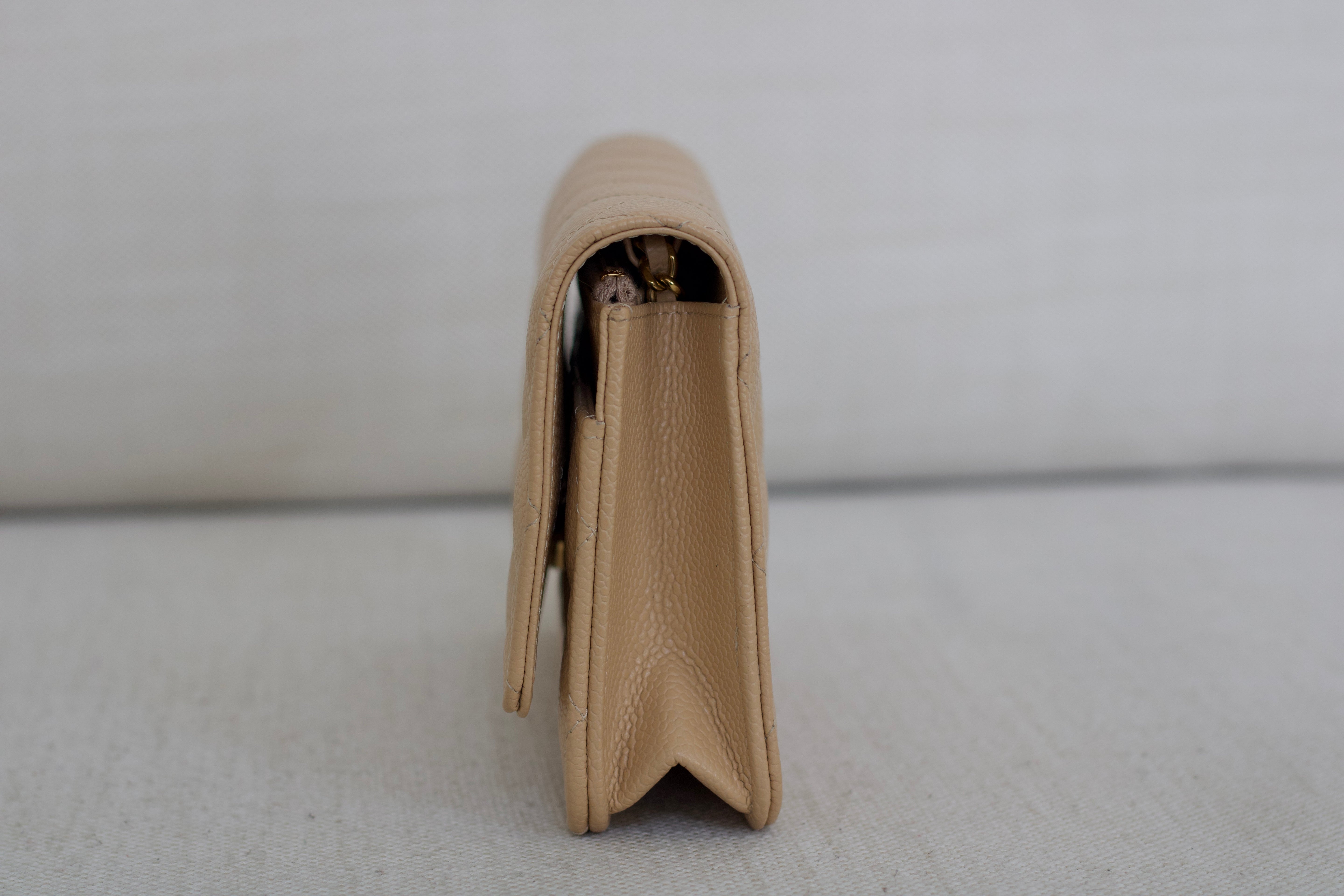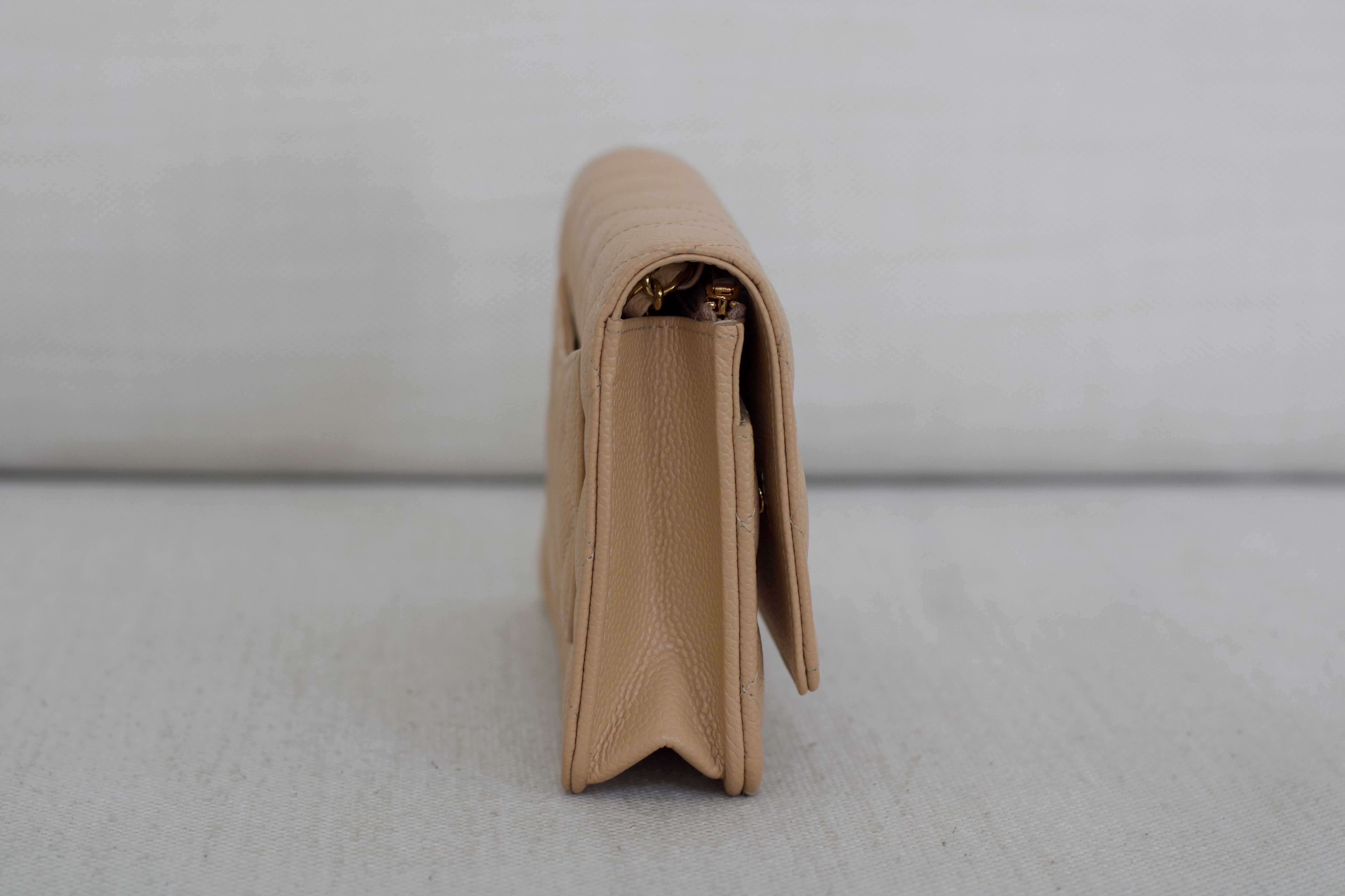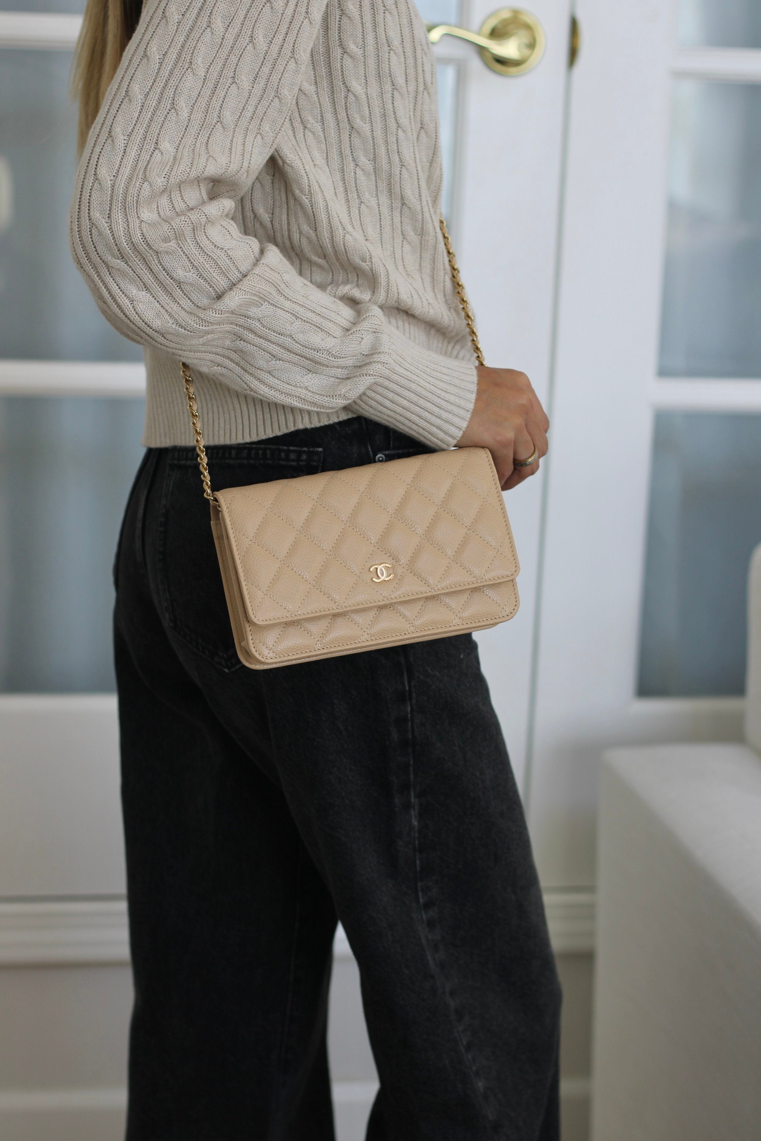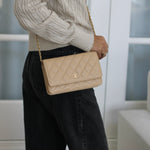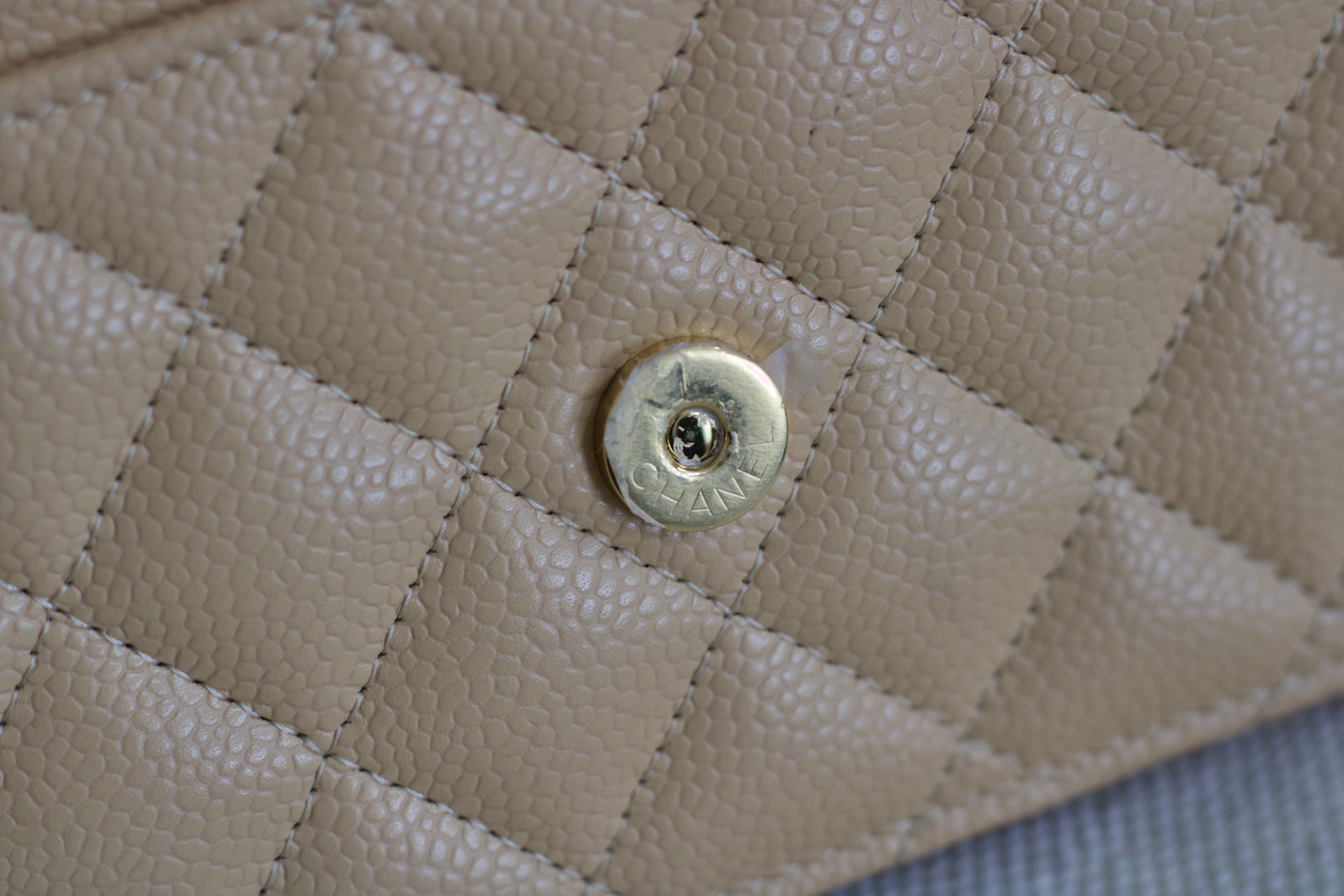 Chanel Beige Clair Caviar Wallet on Chain with Gold Hardware