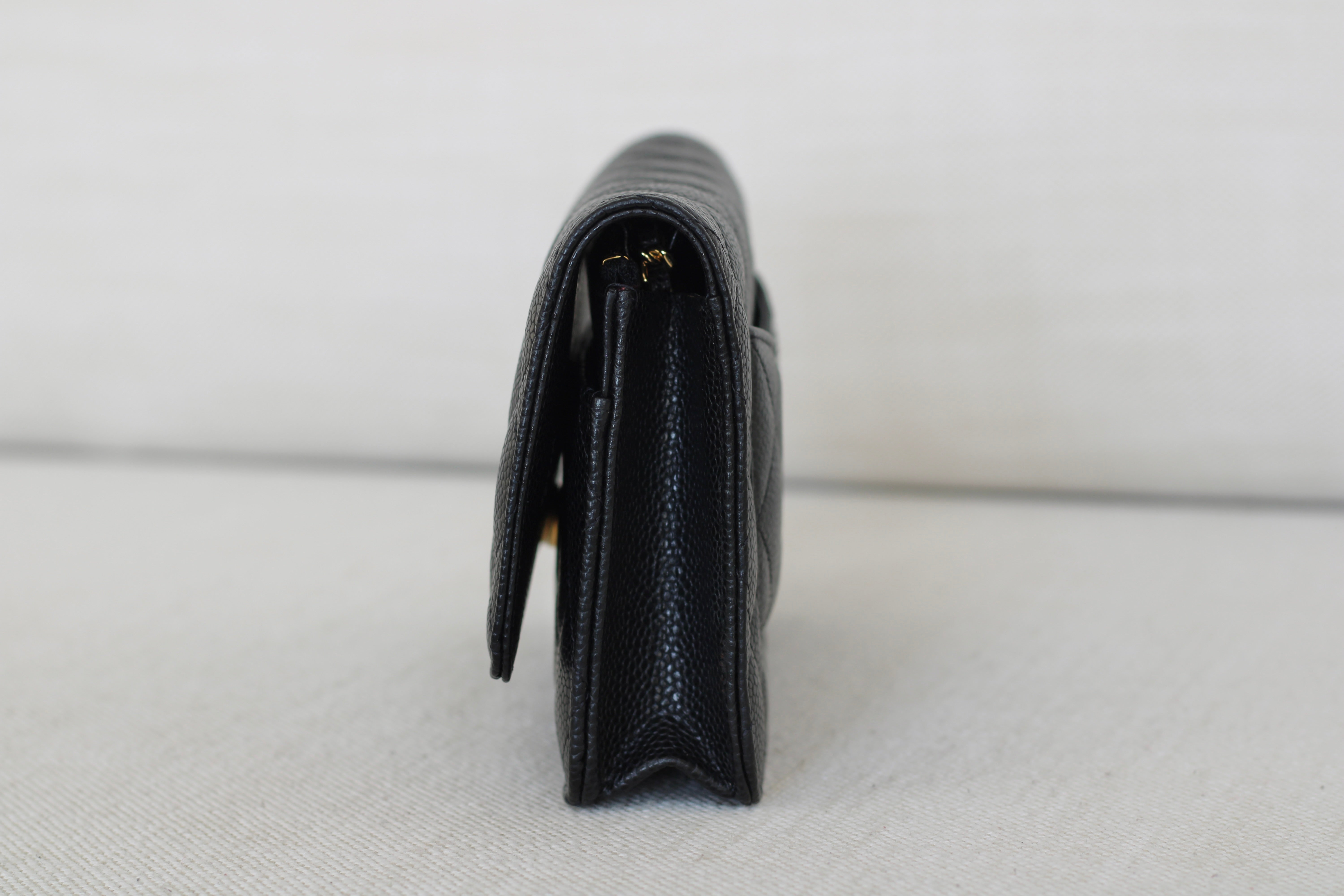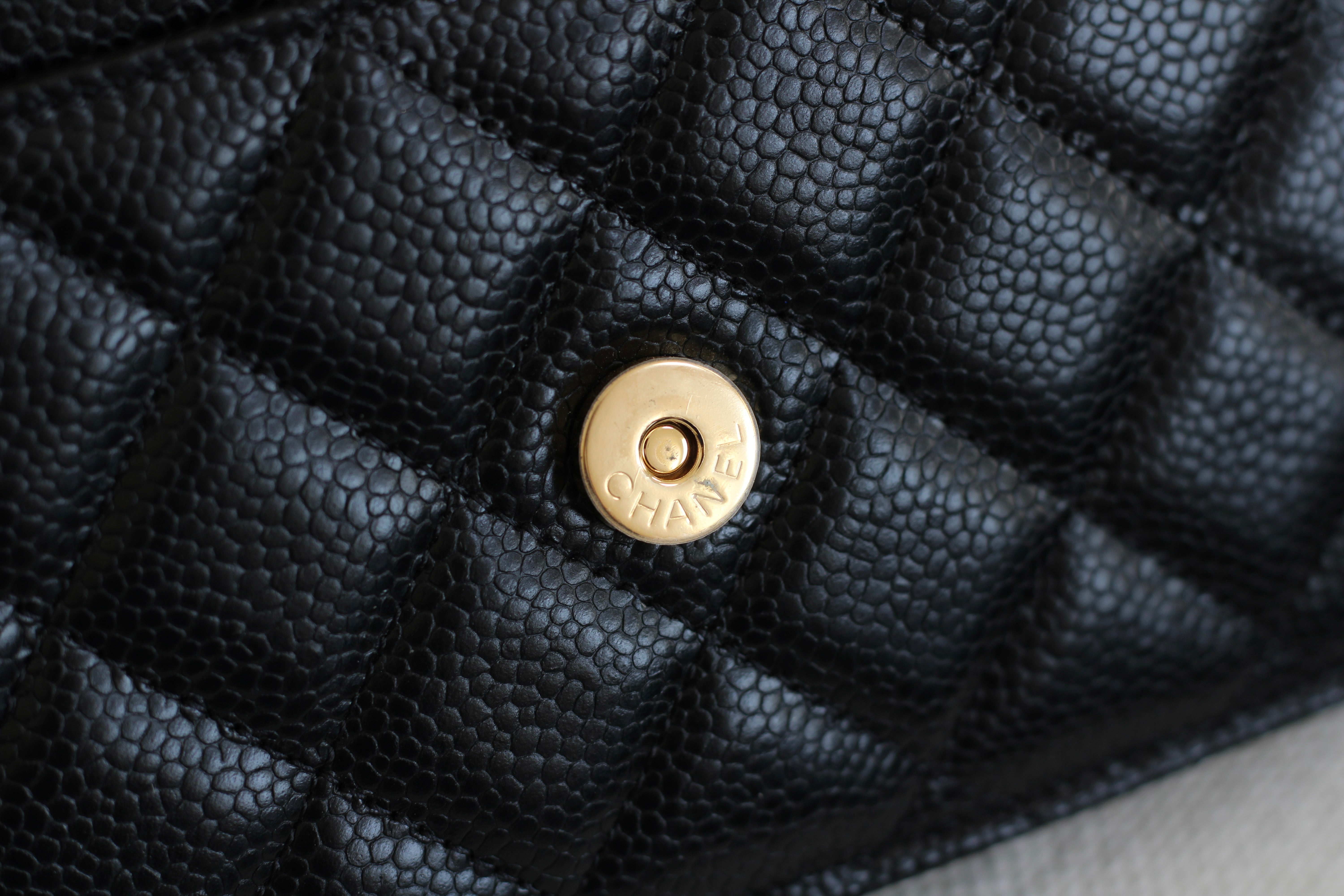 Excellent/Pristine Condition. Stunning black caviar leather with a gorgeous sheen. Excellent structure and corners. Brilliant gold hardware with sticker still attached on CC.