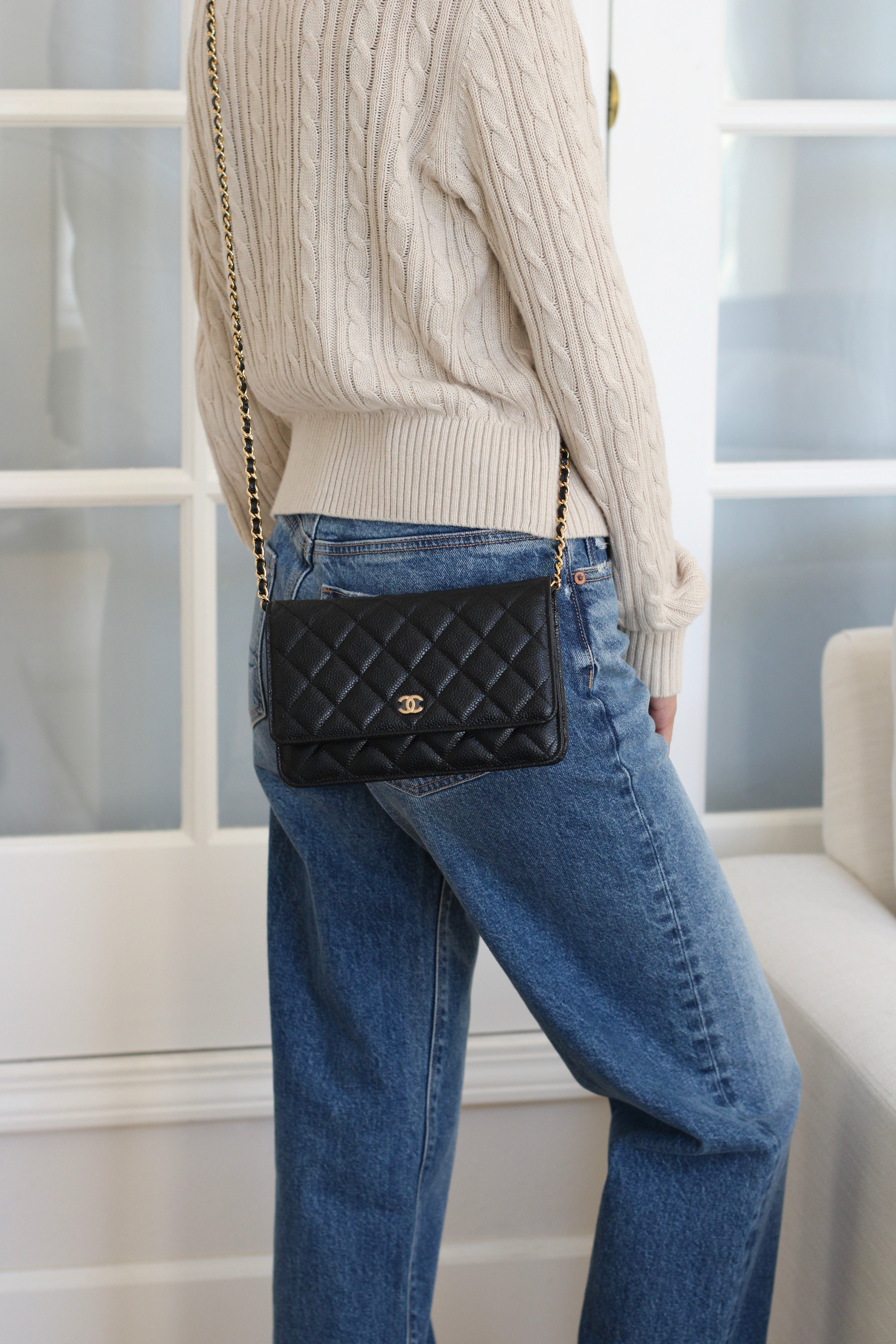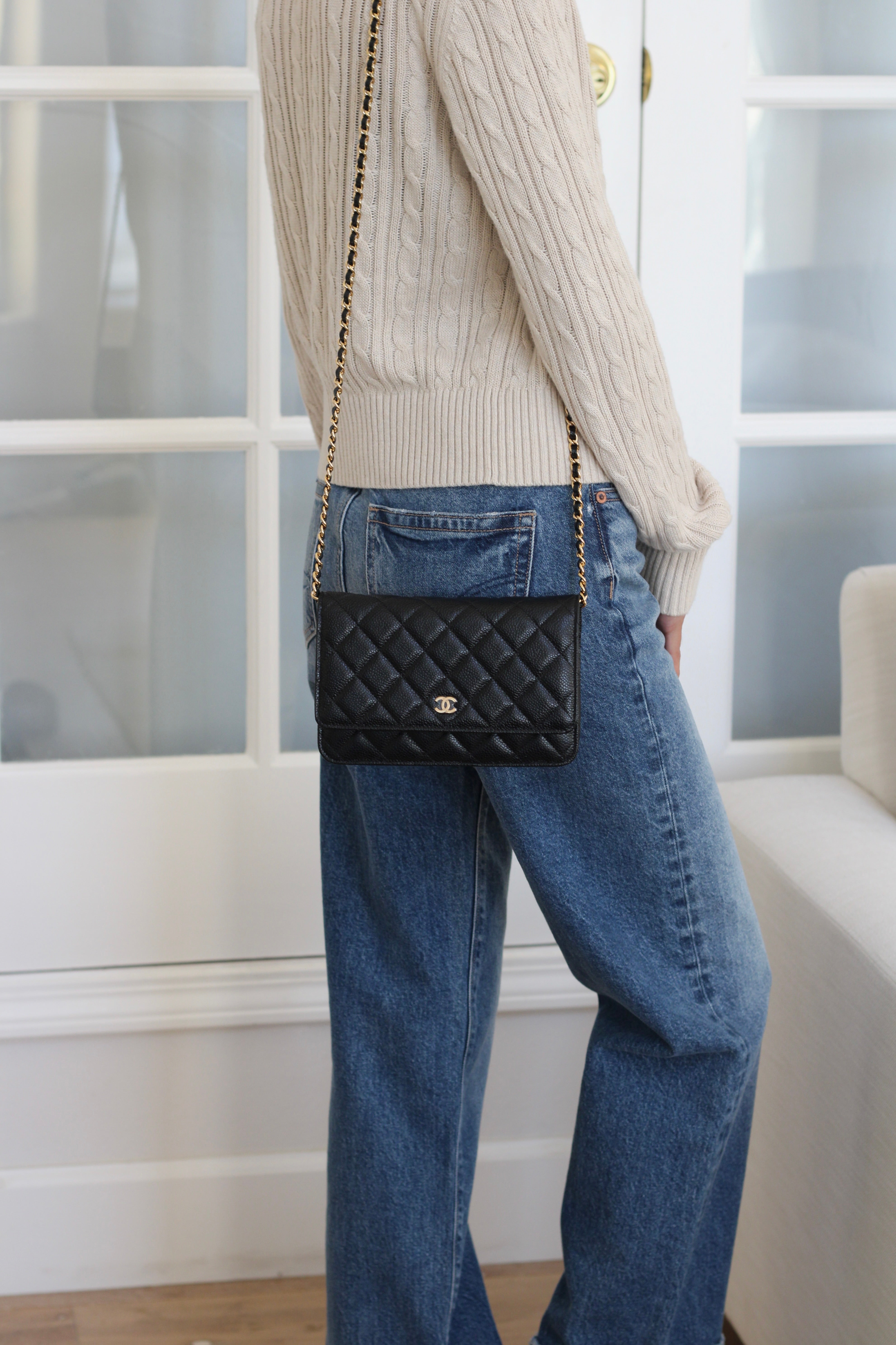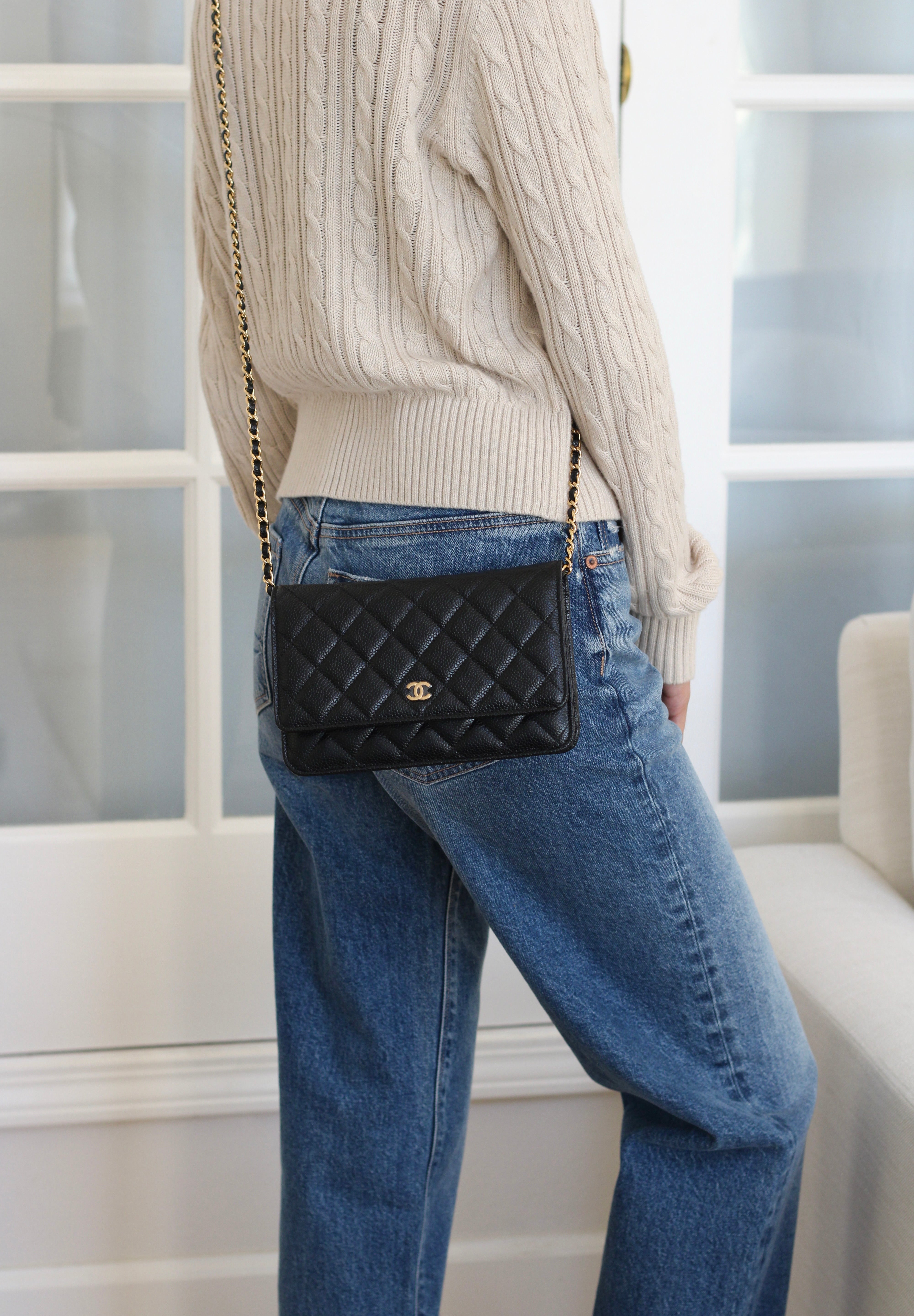 Chanel Black Caviar Wallet on Chain with Gold Hardware