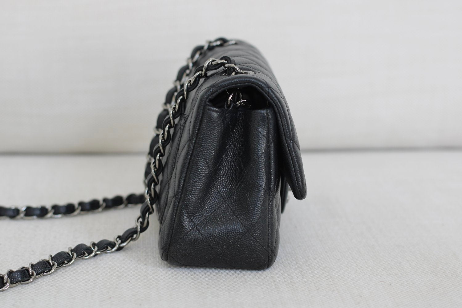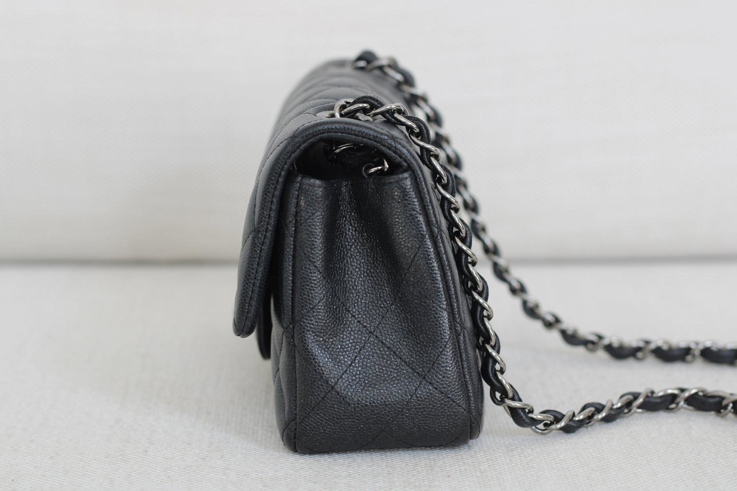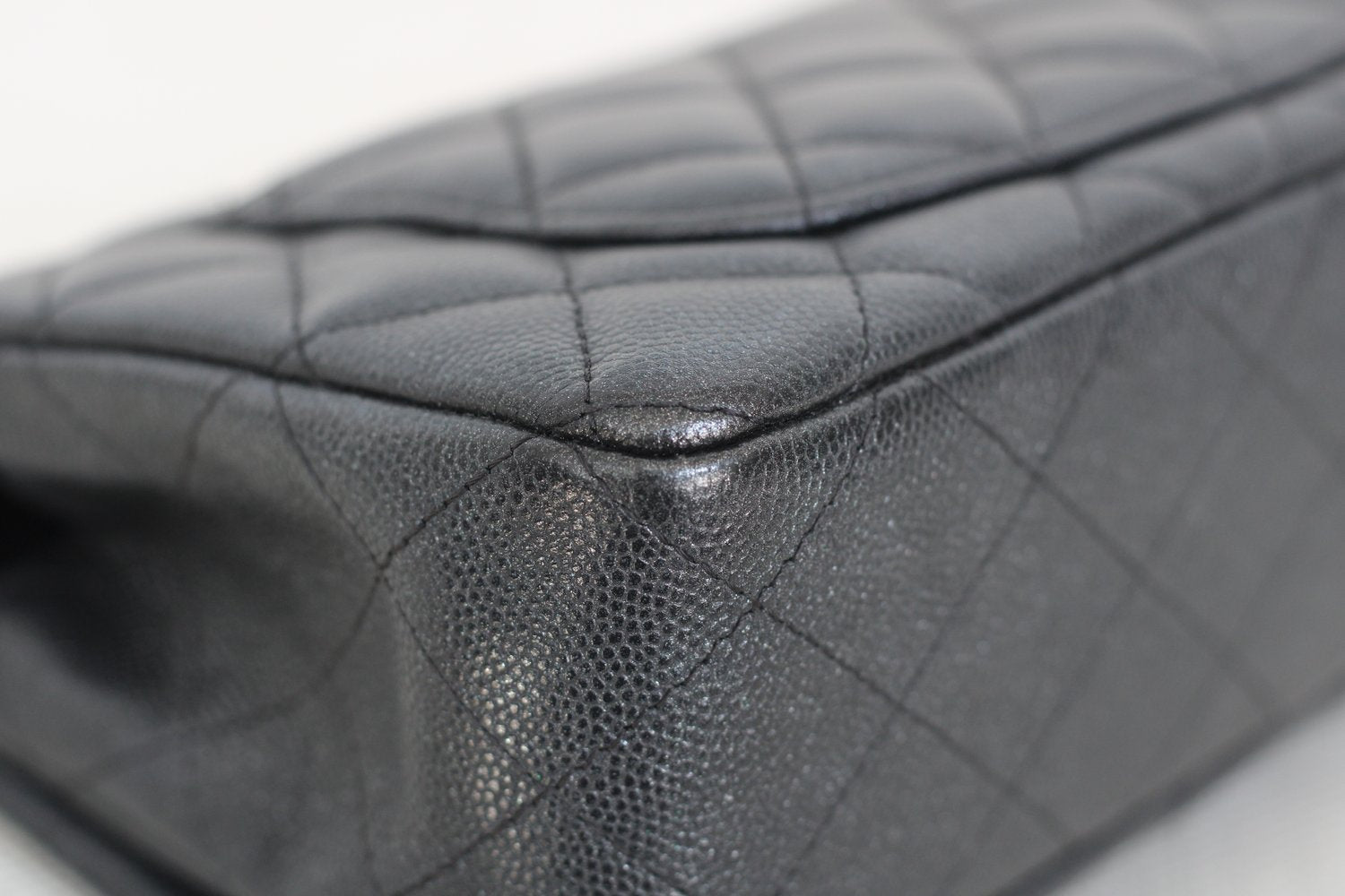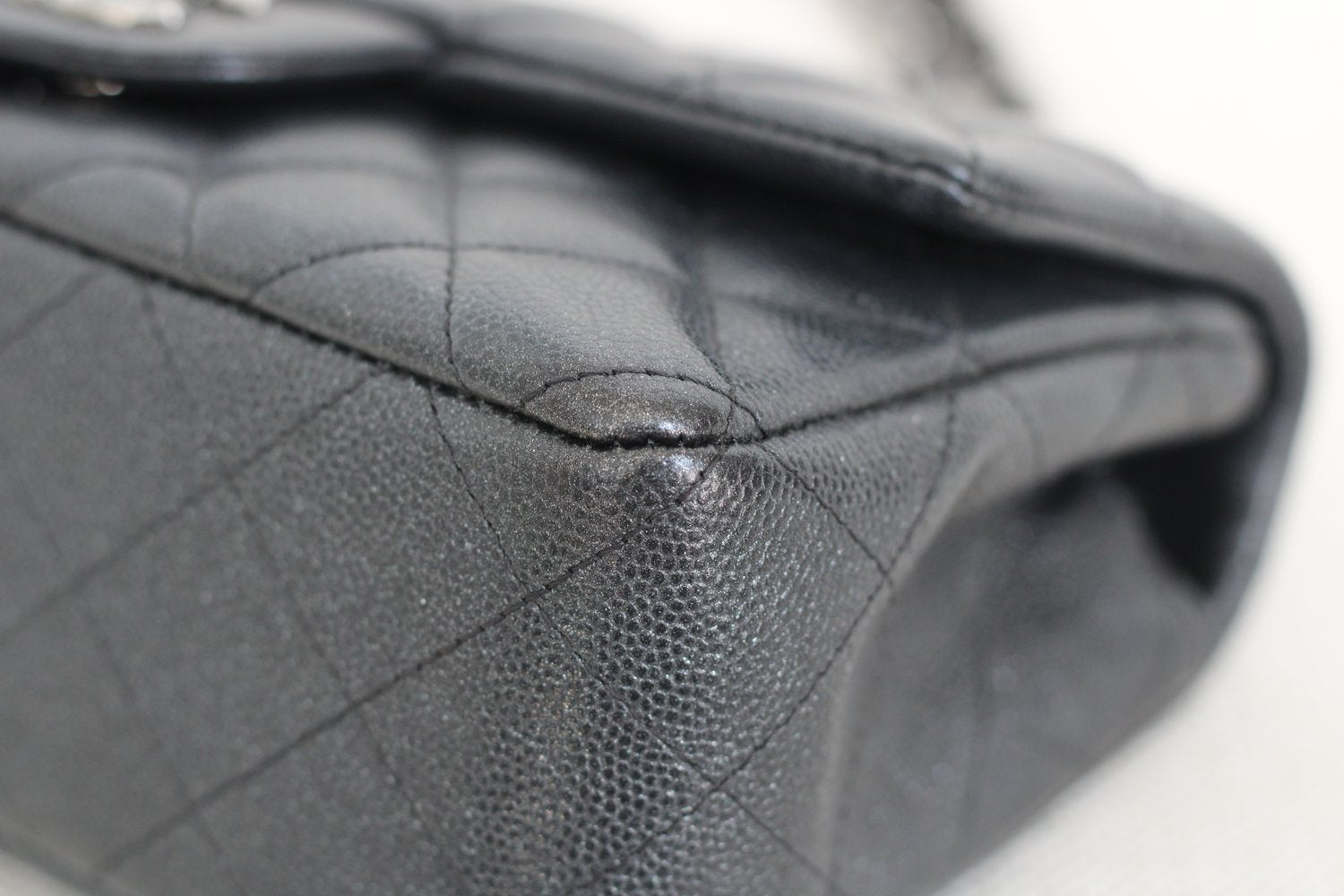 Excellent Condition. Excellent structure and corners. Stunning iridescent black caviar complimented by brilliant ruthenium hardware. Light hairline scratches on hardware. Sticker on CC hardware. Minimal to no wear on corners. Some tiny lightening in the middle of male part of cc lock.
