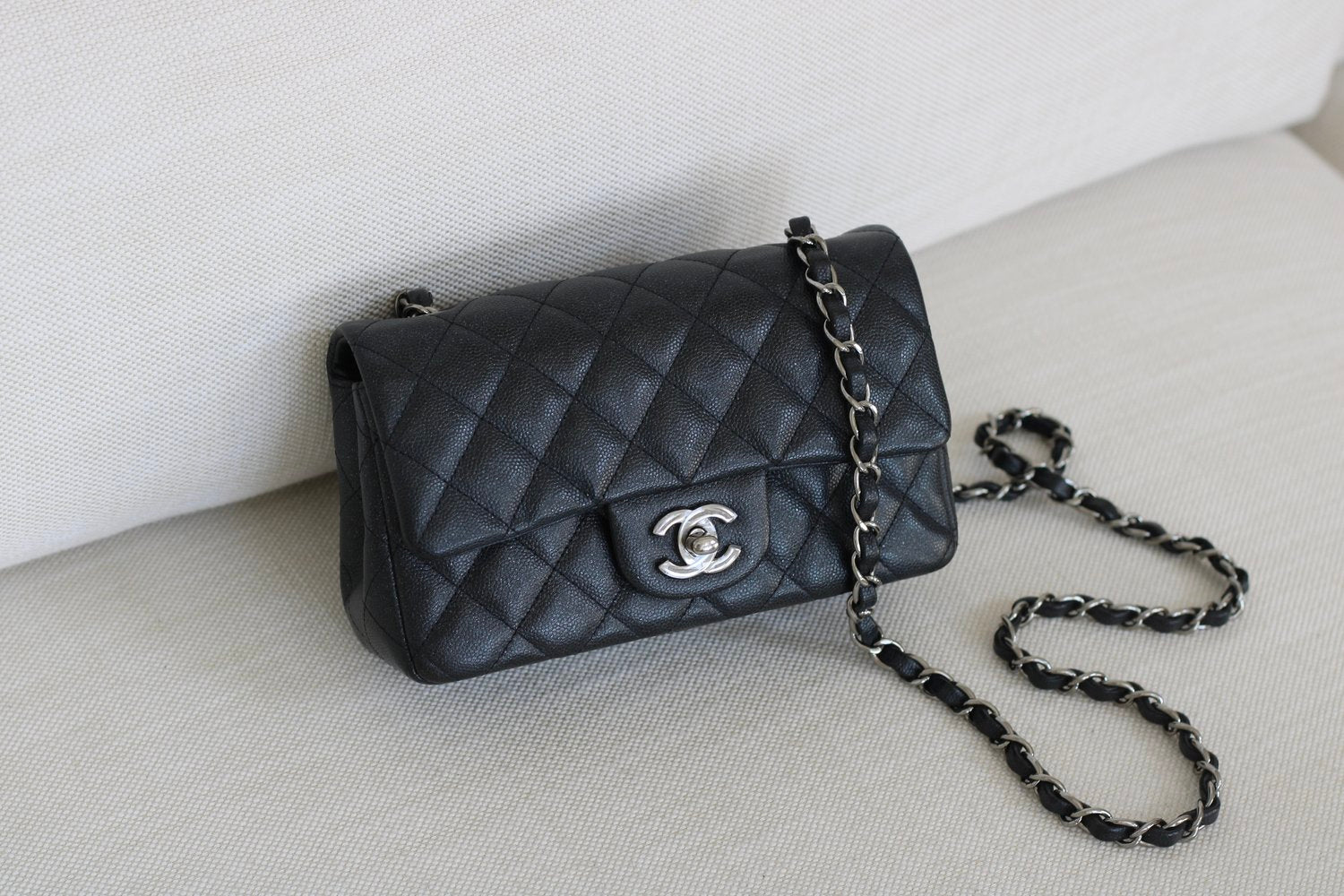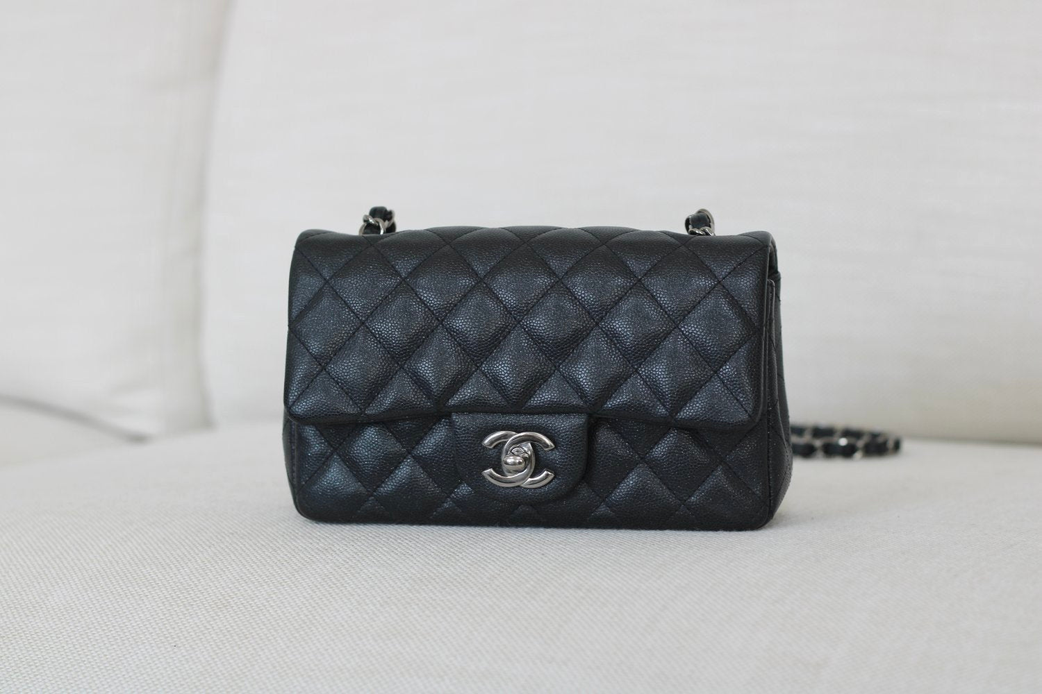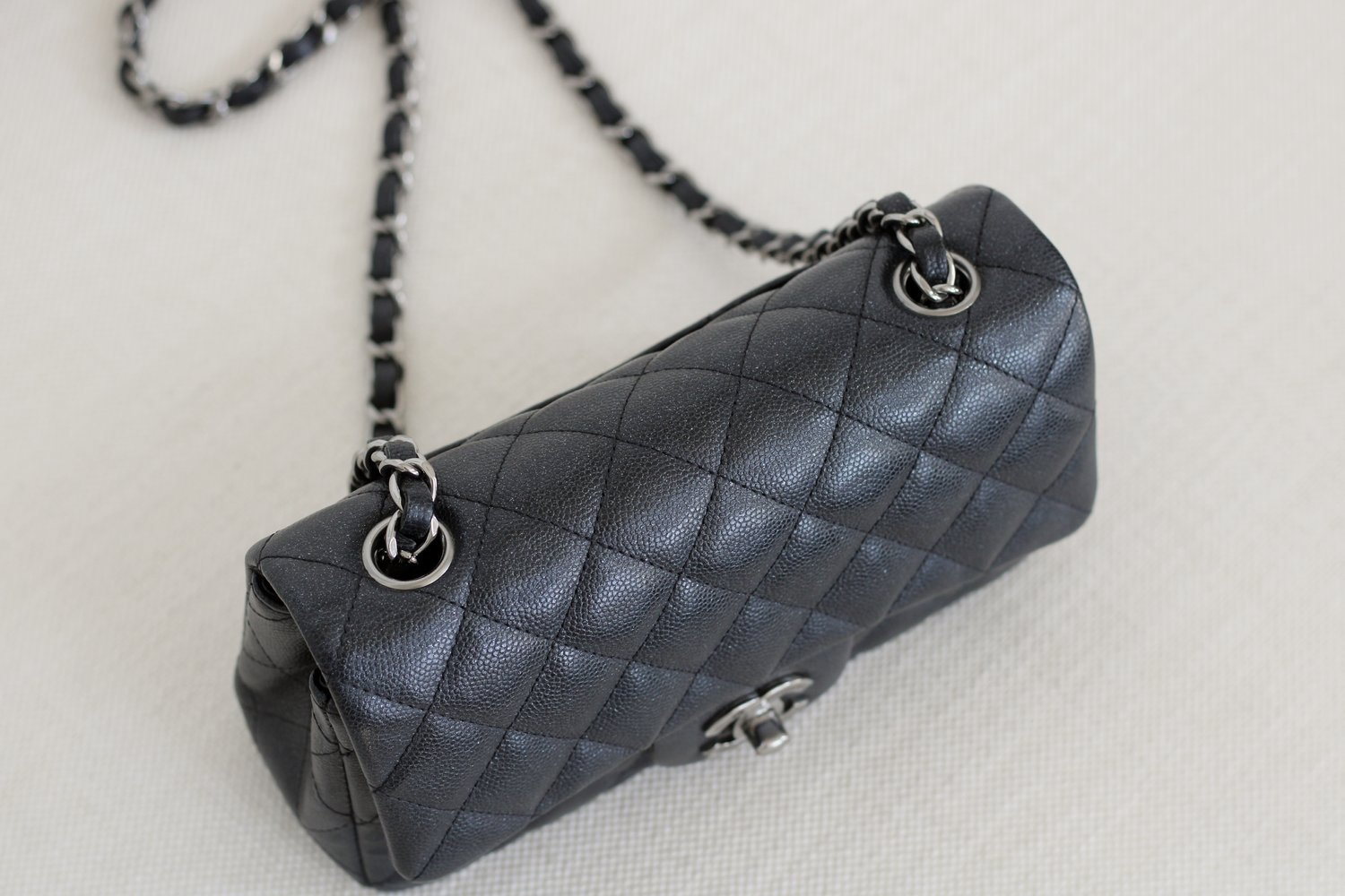 Chanel 18C Iridescent Black Caviar Mini Rectangle with Shiny Ruthenium Hardware