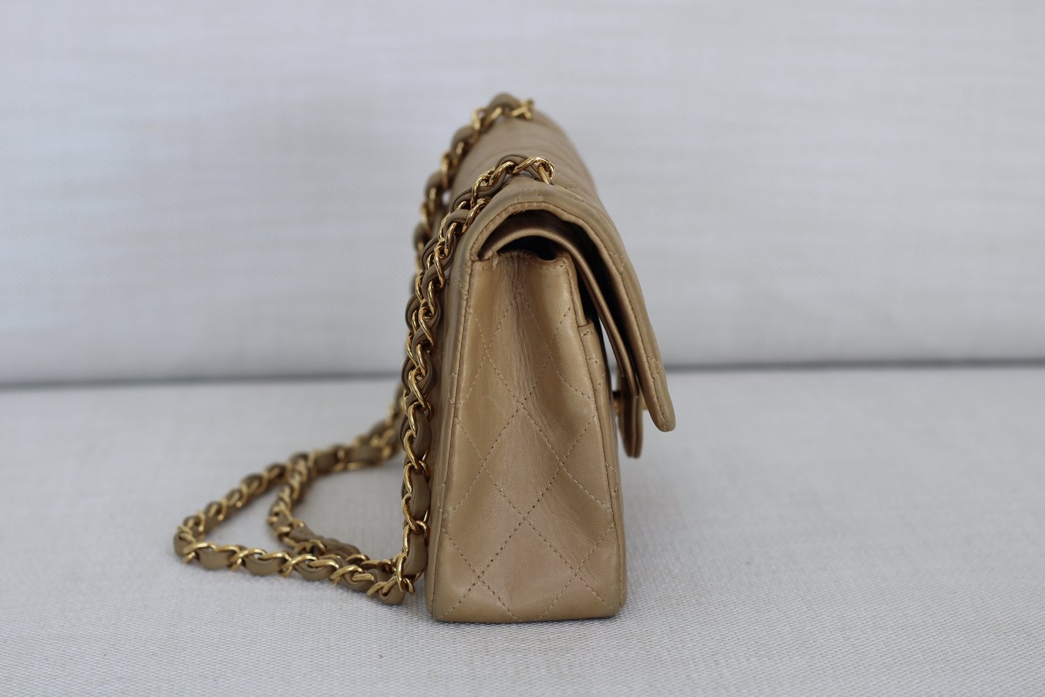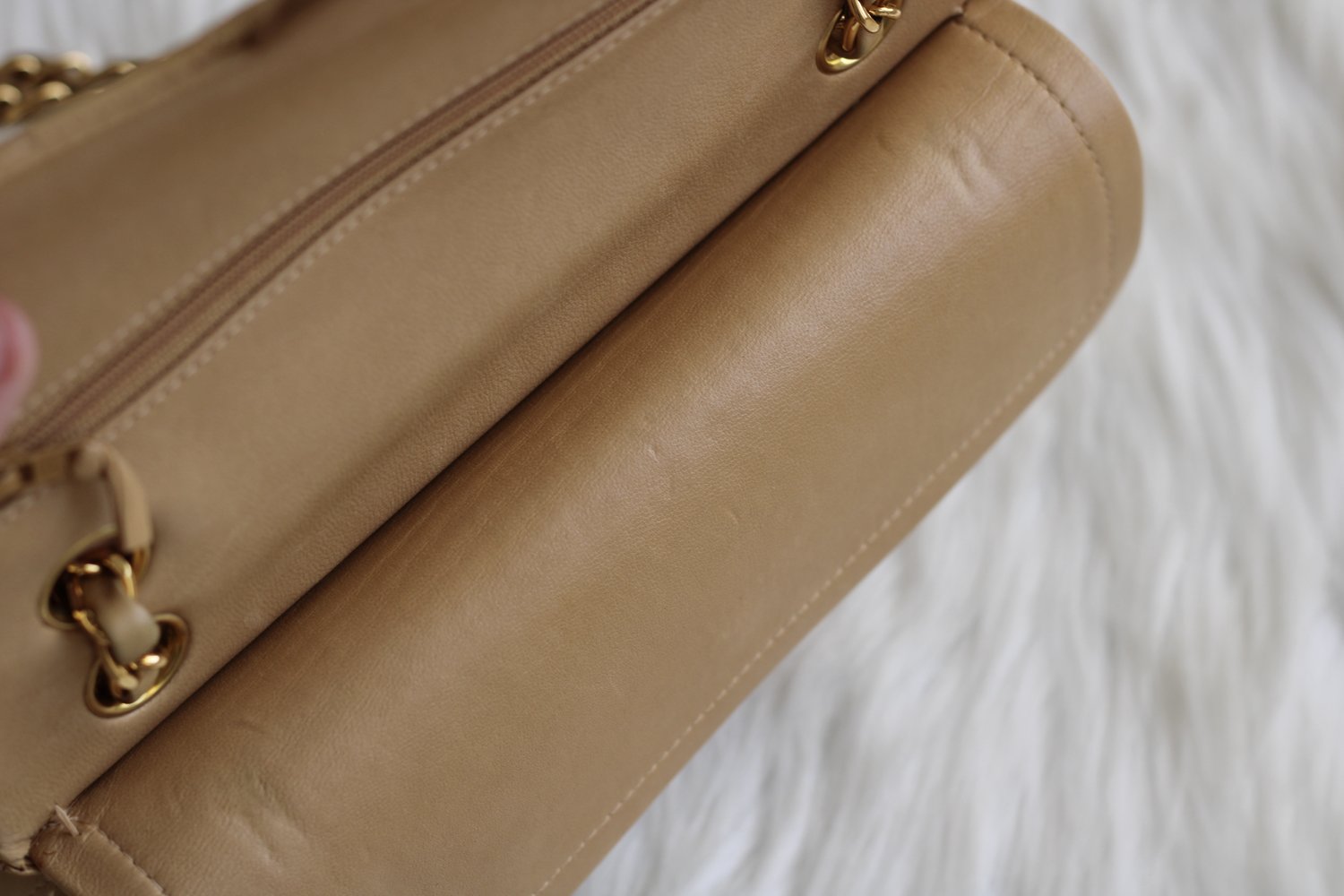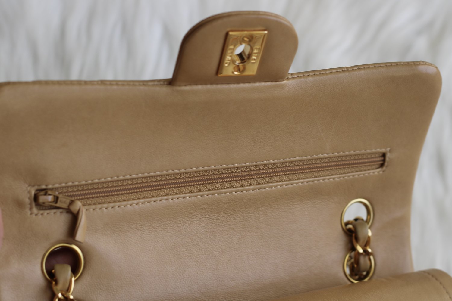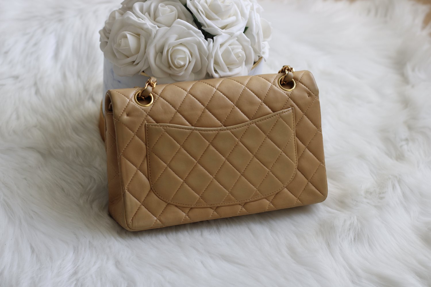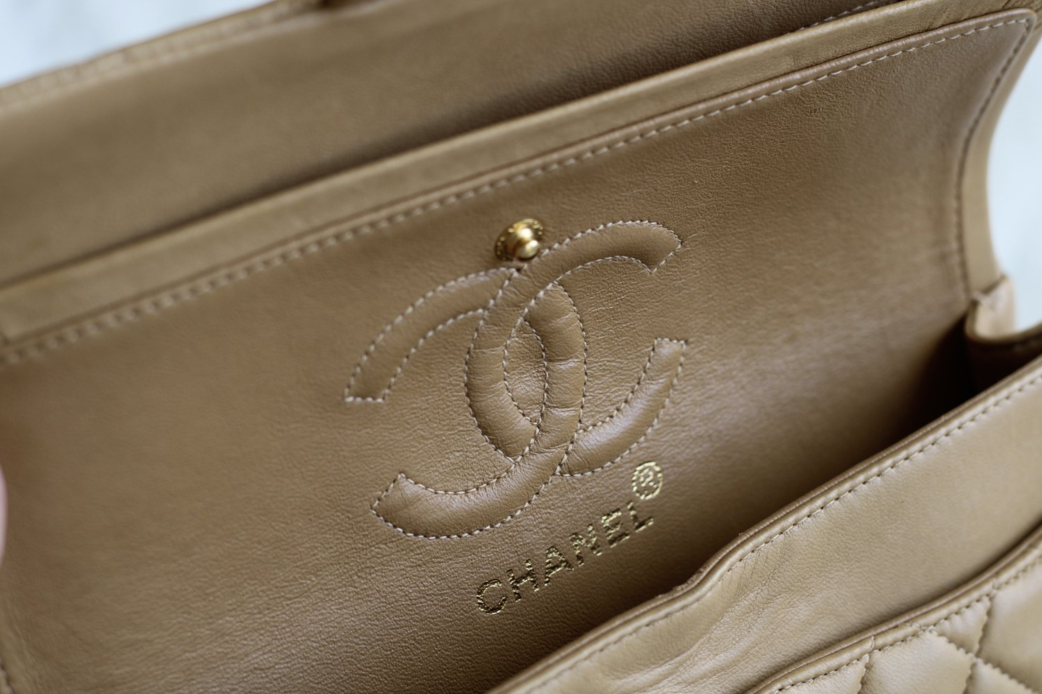 Vintage Chanel Beige Lambskin Small Classic Flap with 24k Gold Hardware