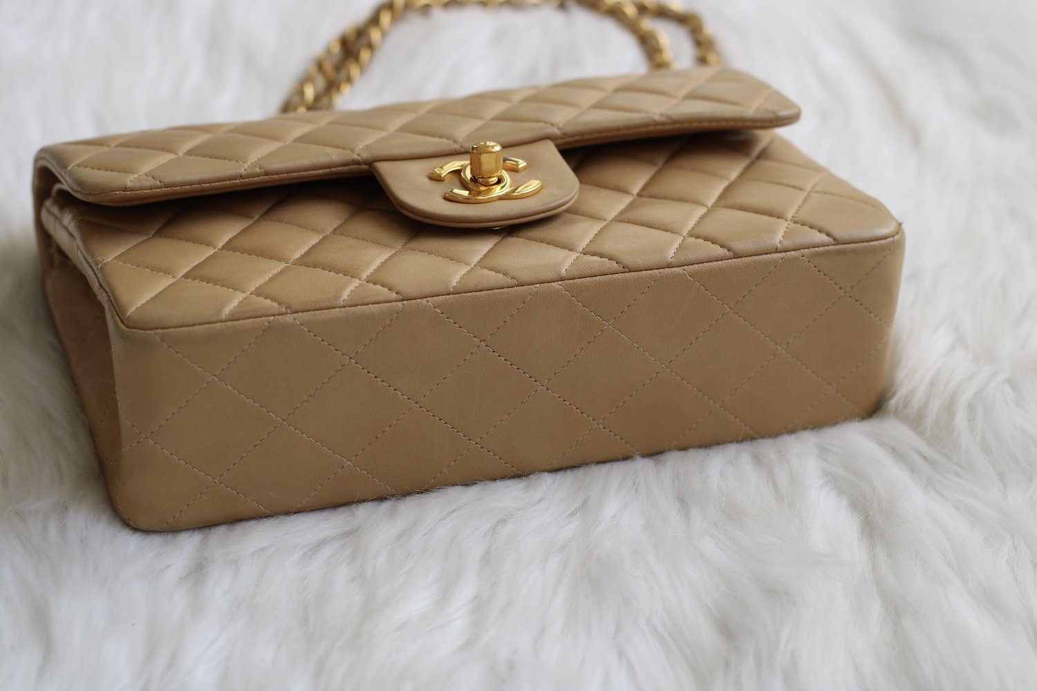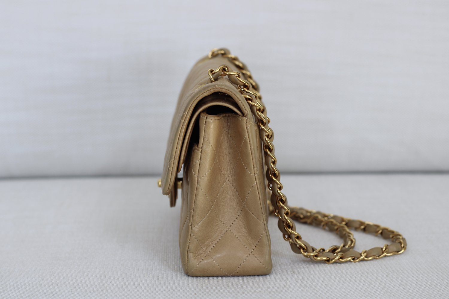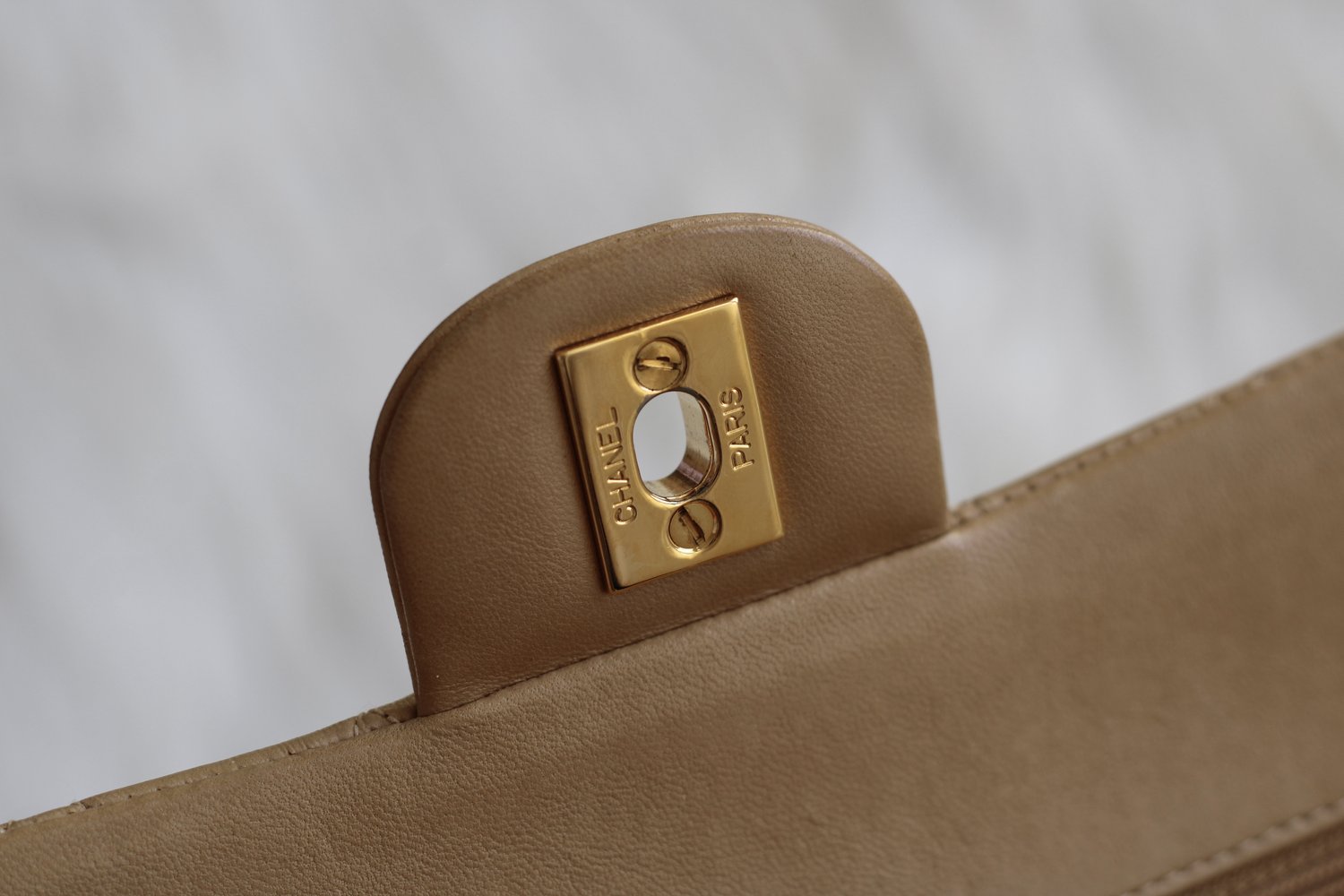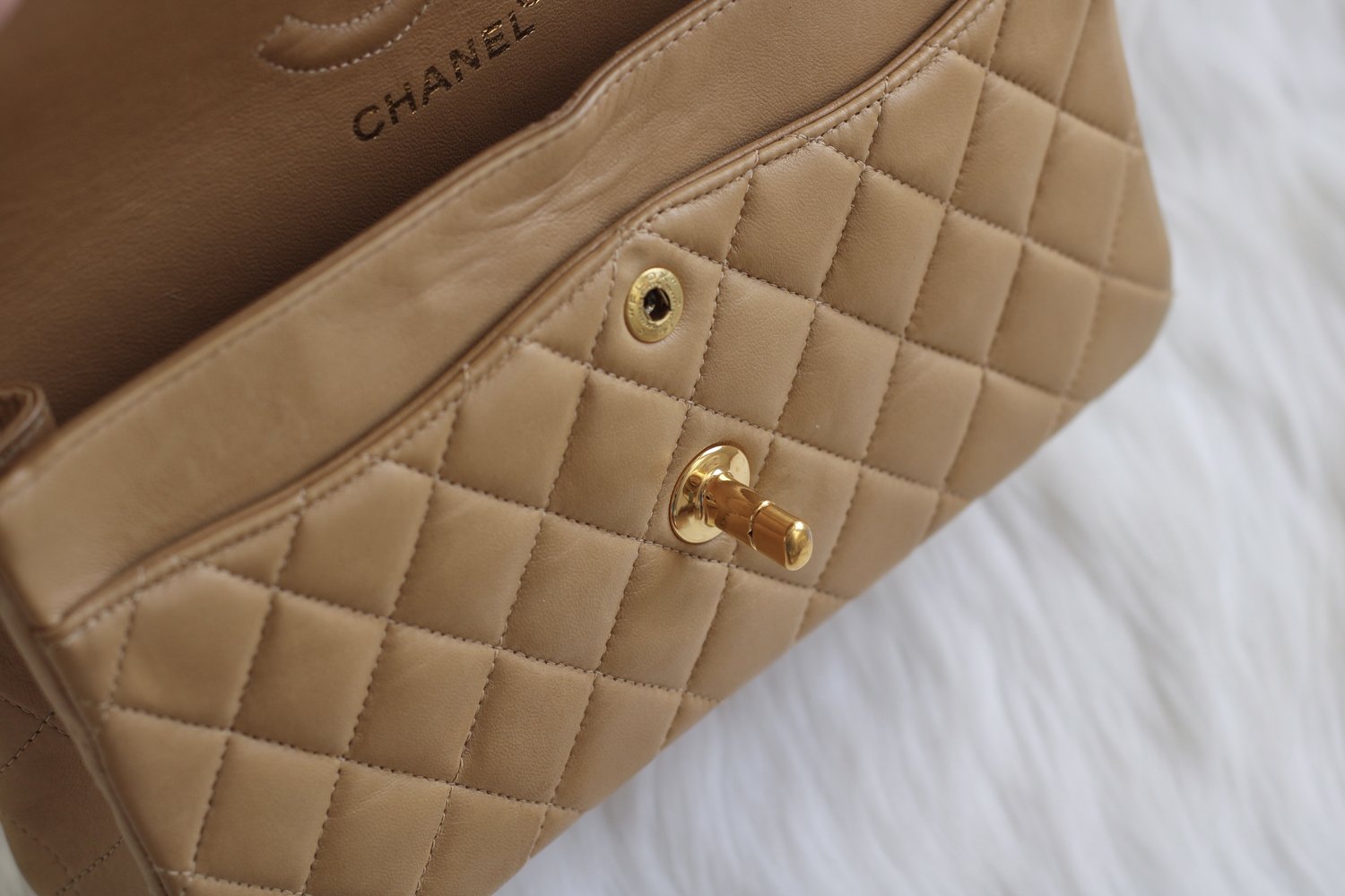 Vintage Chanel Beige Lambskin Small Classic Flap with 24k Gold Hardware