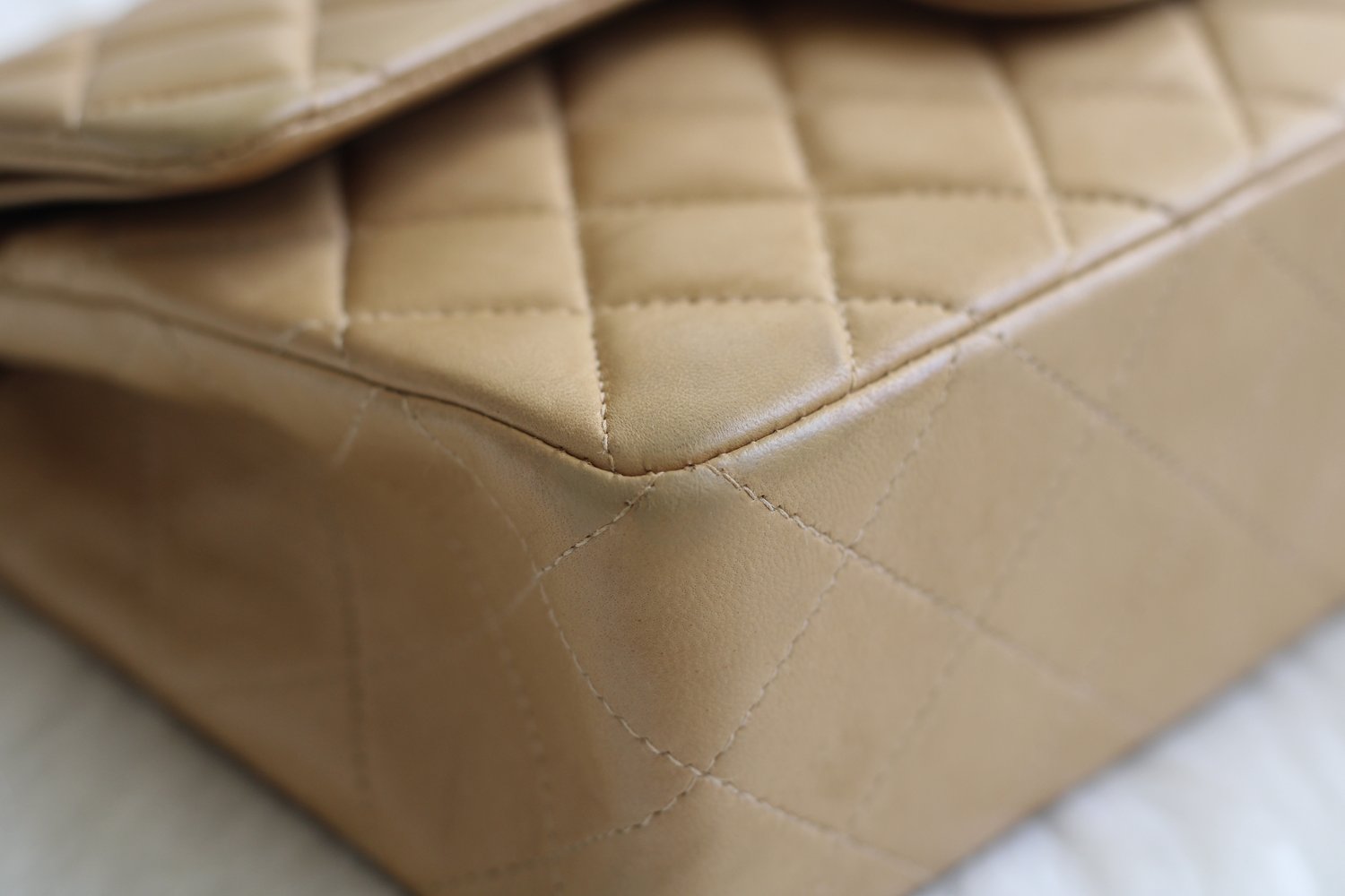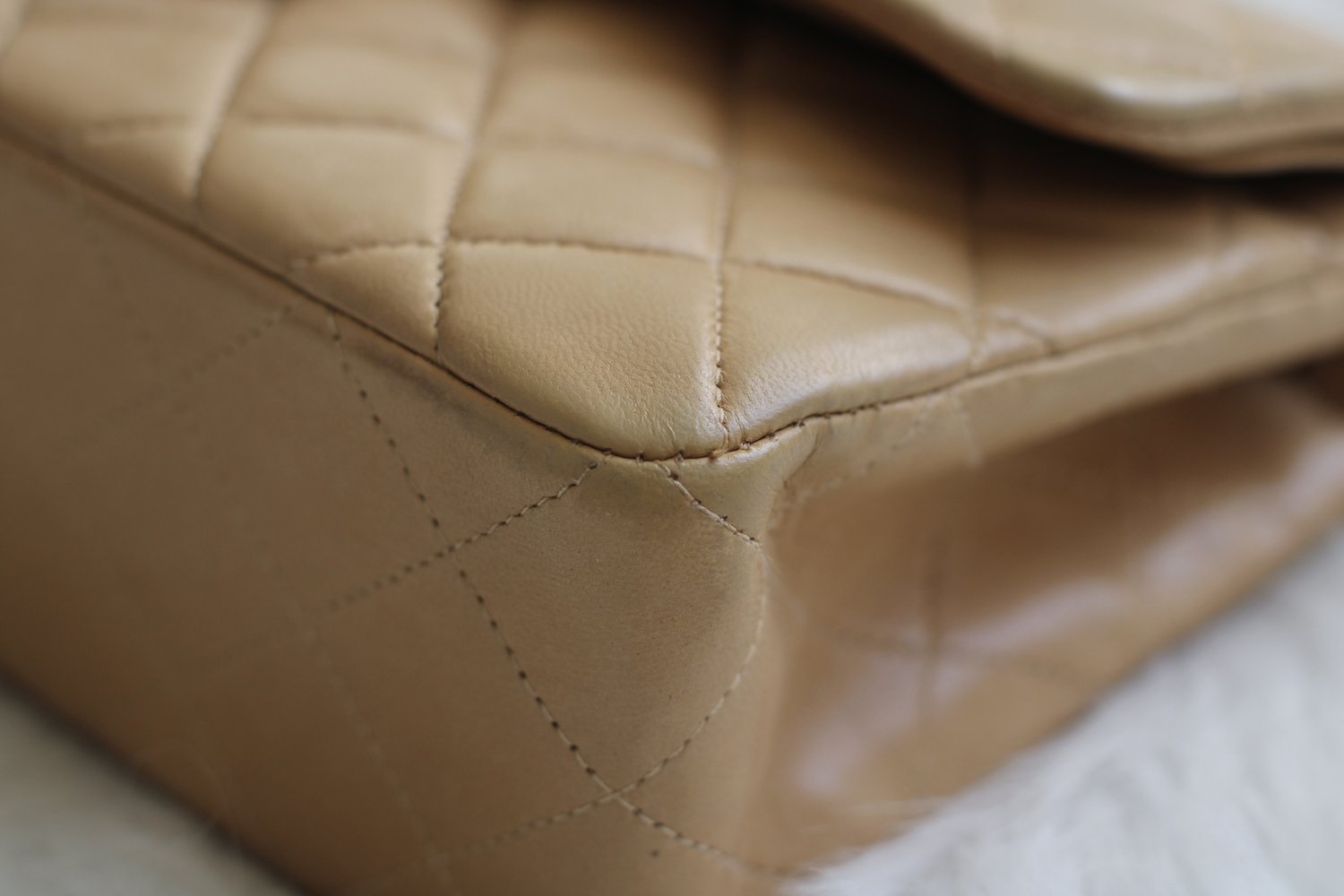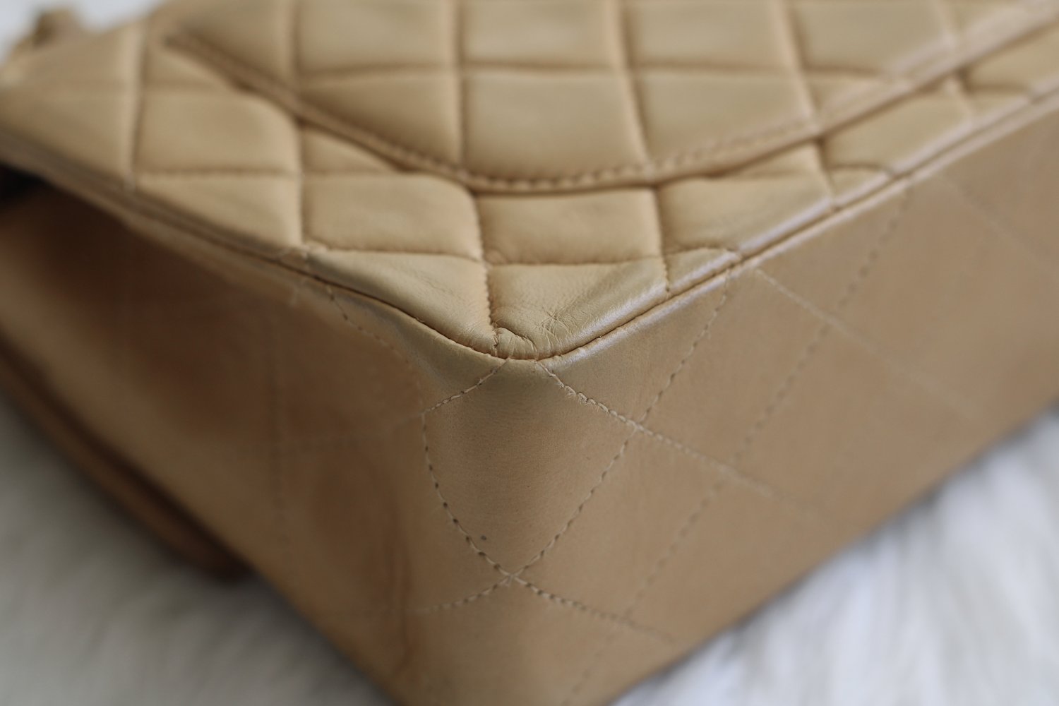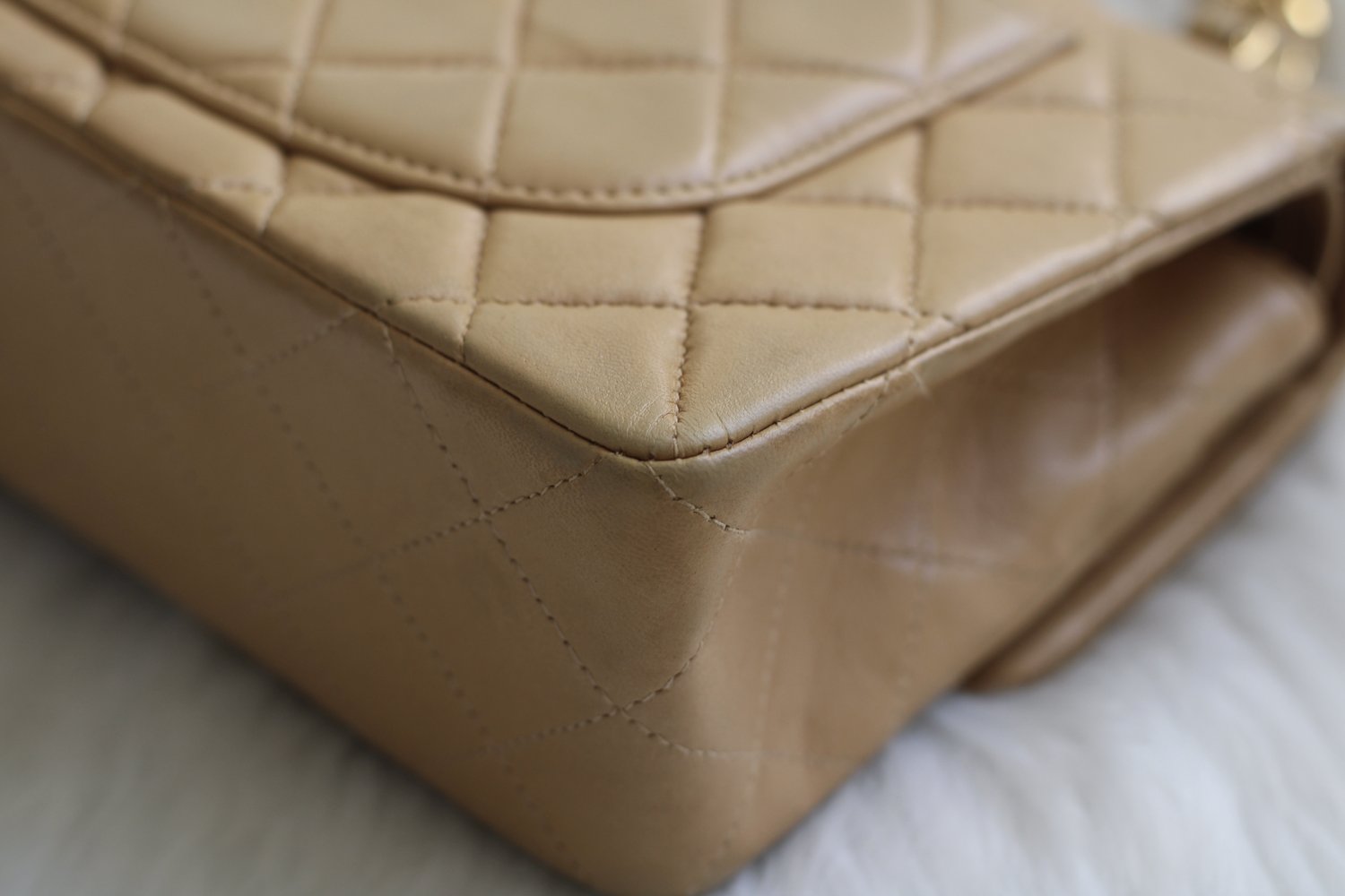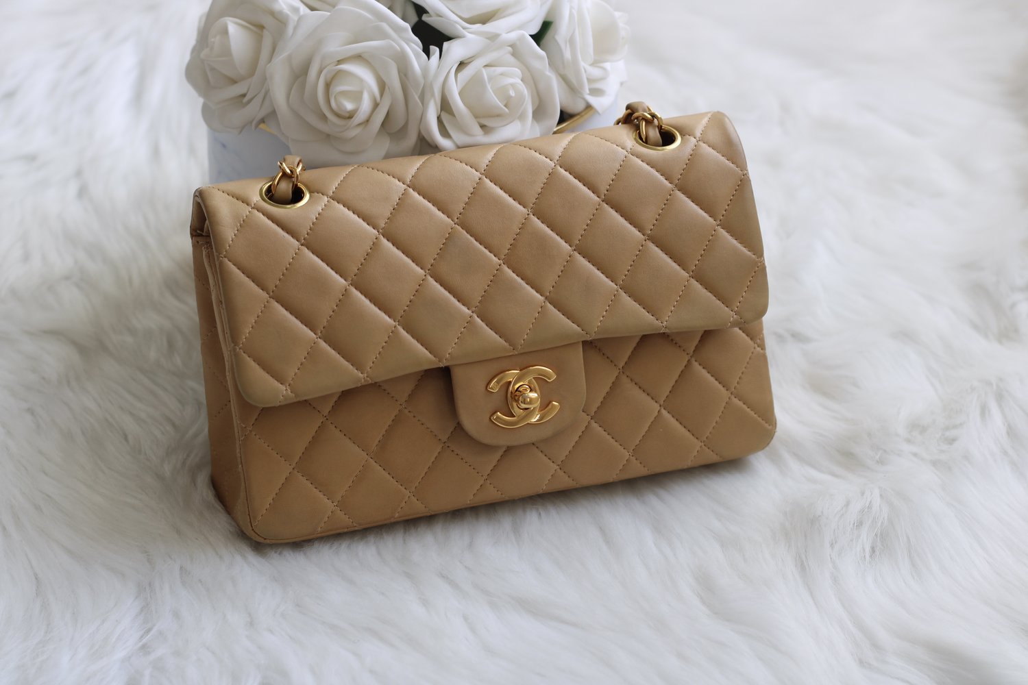 Vintage Chanel Beige Lambskin Small Classic Flap with 24k Gold Hardware