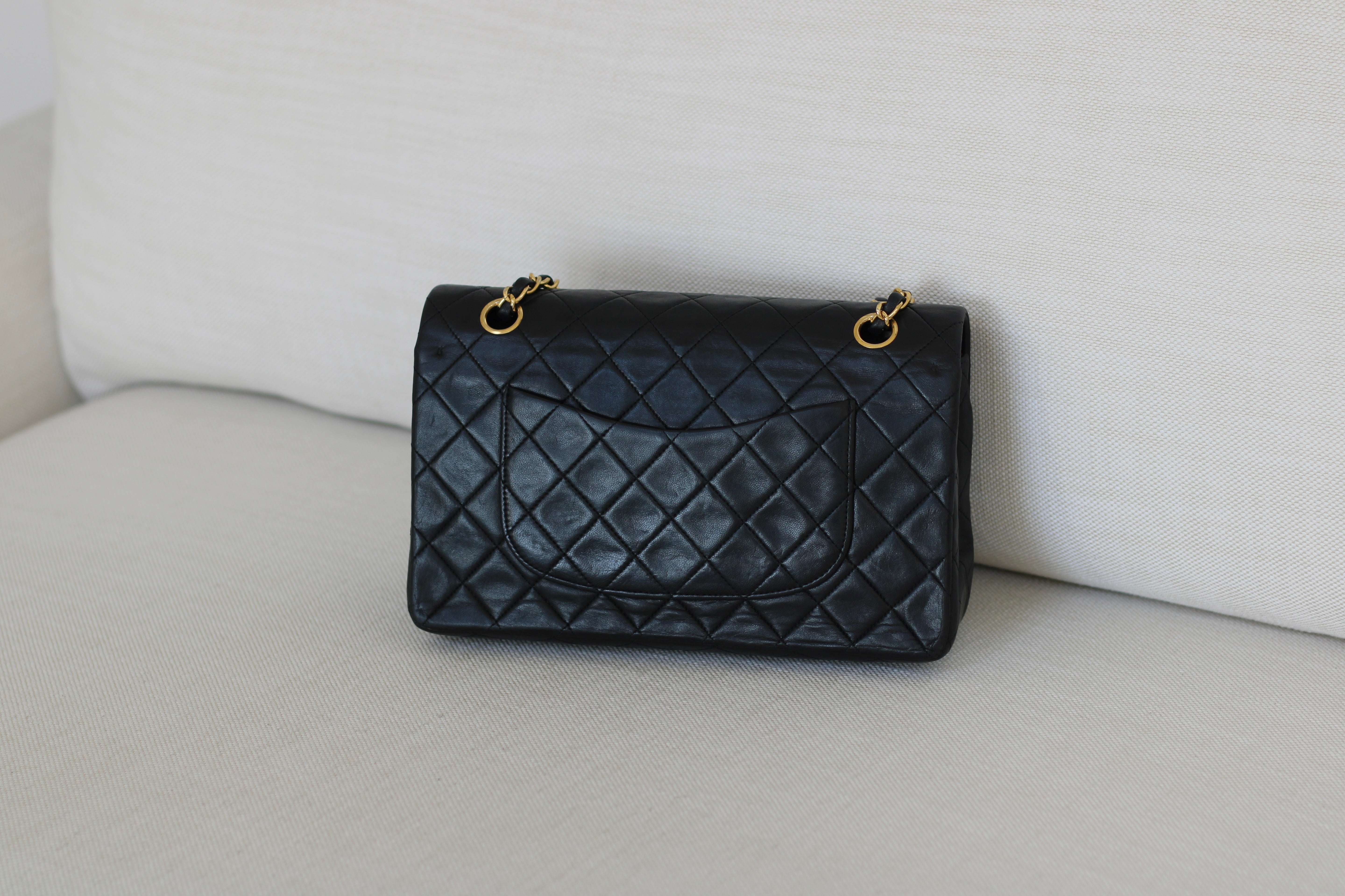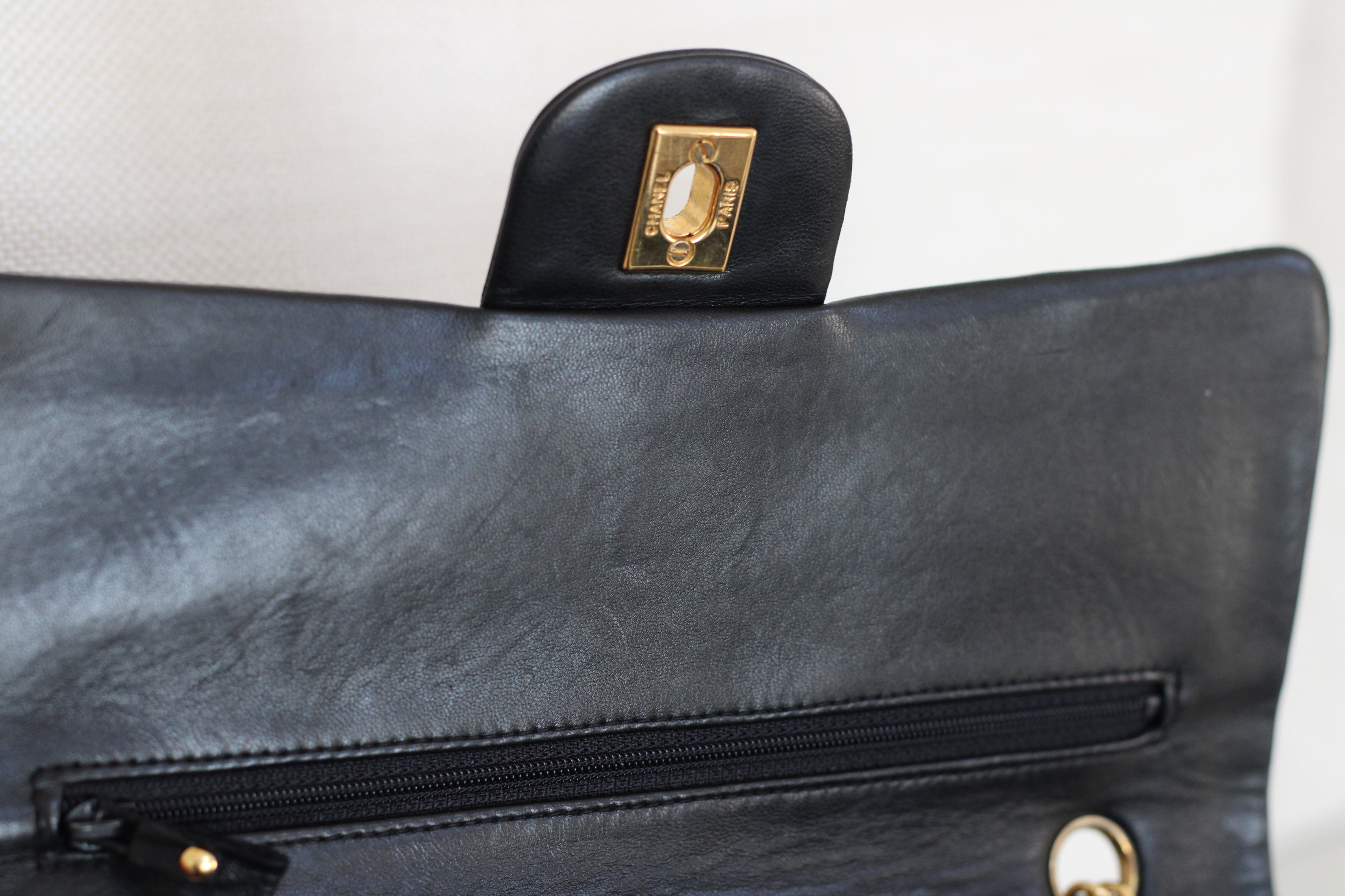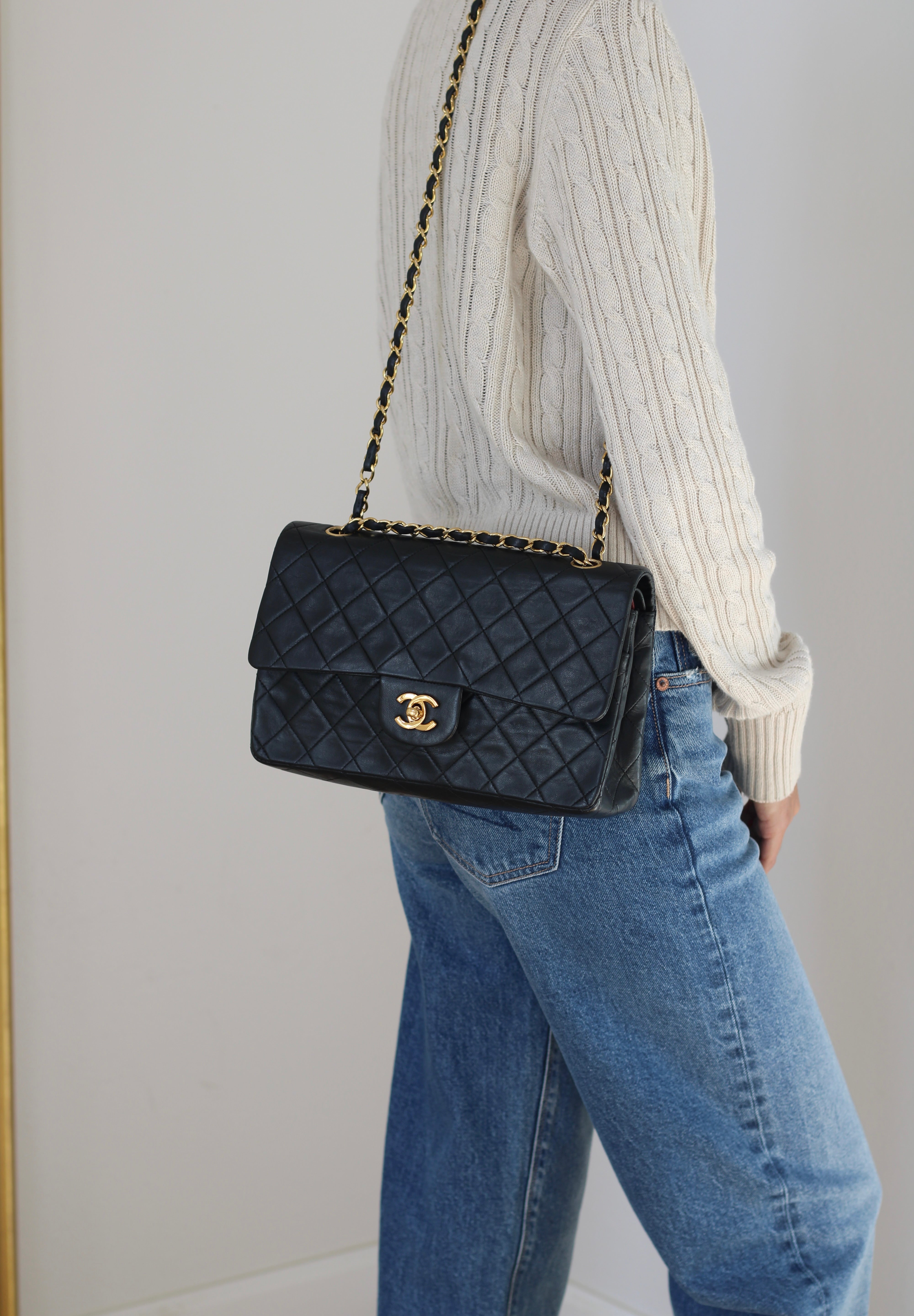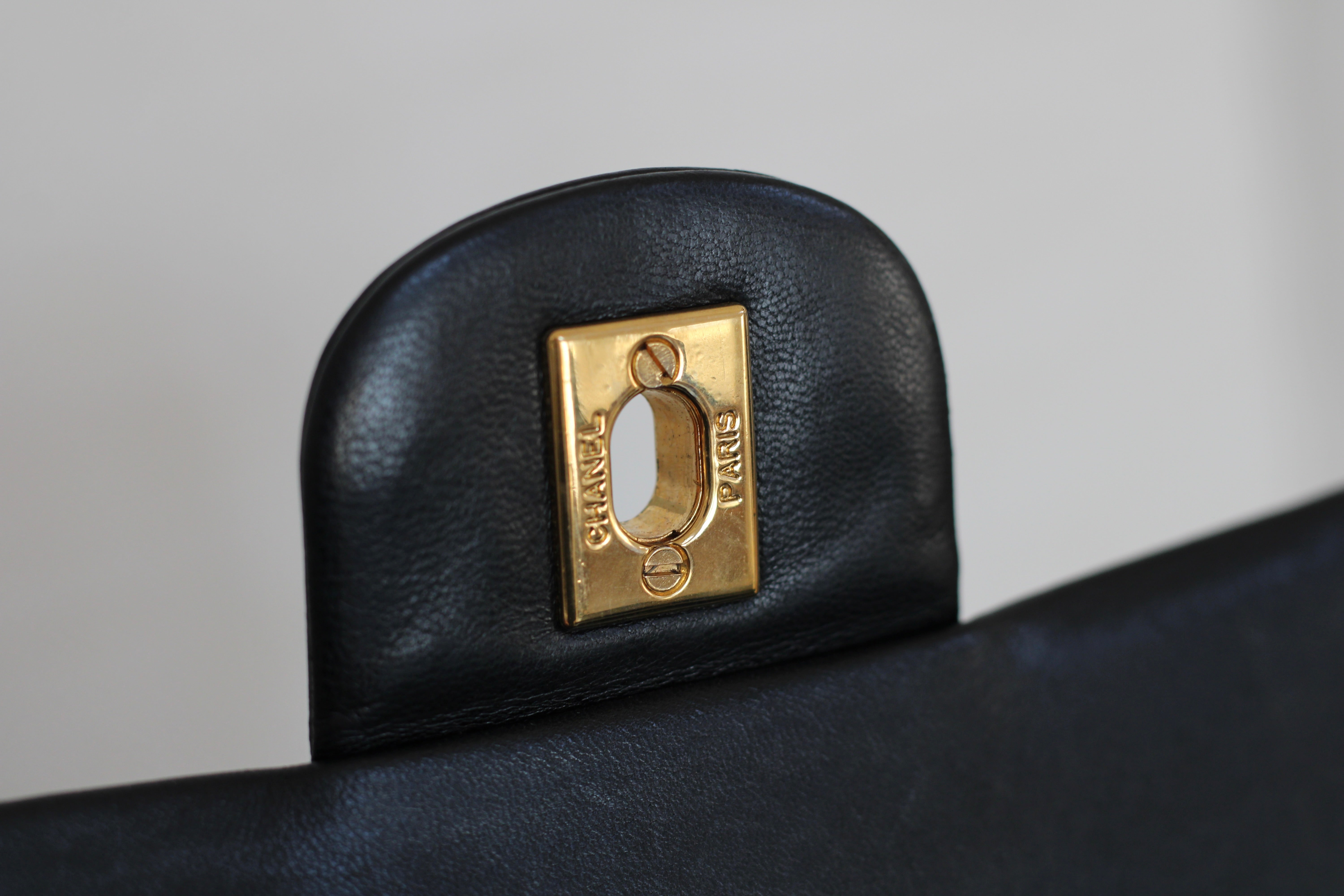 Vintage Chanel Black Lambskin Medium Classic Flap with 24k Gold Hardware