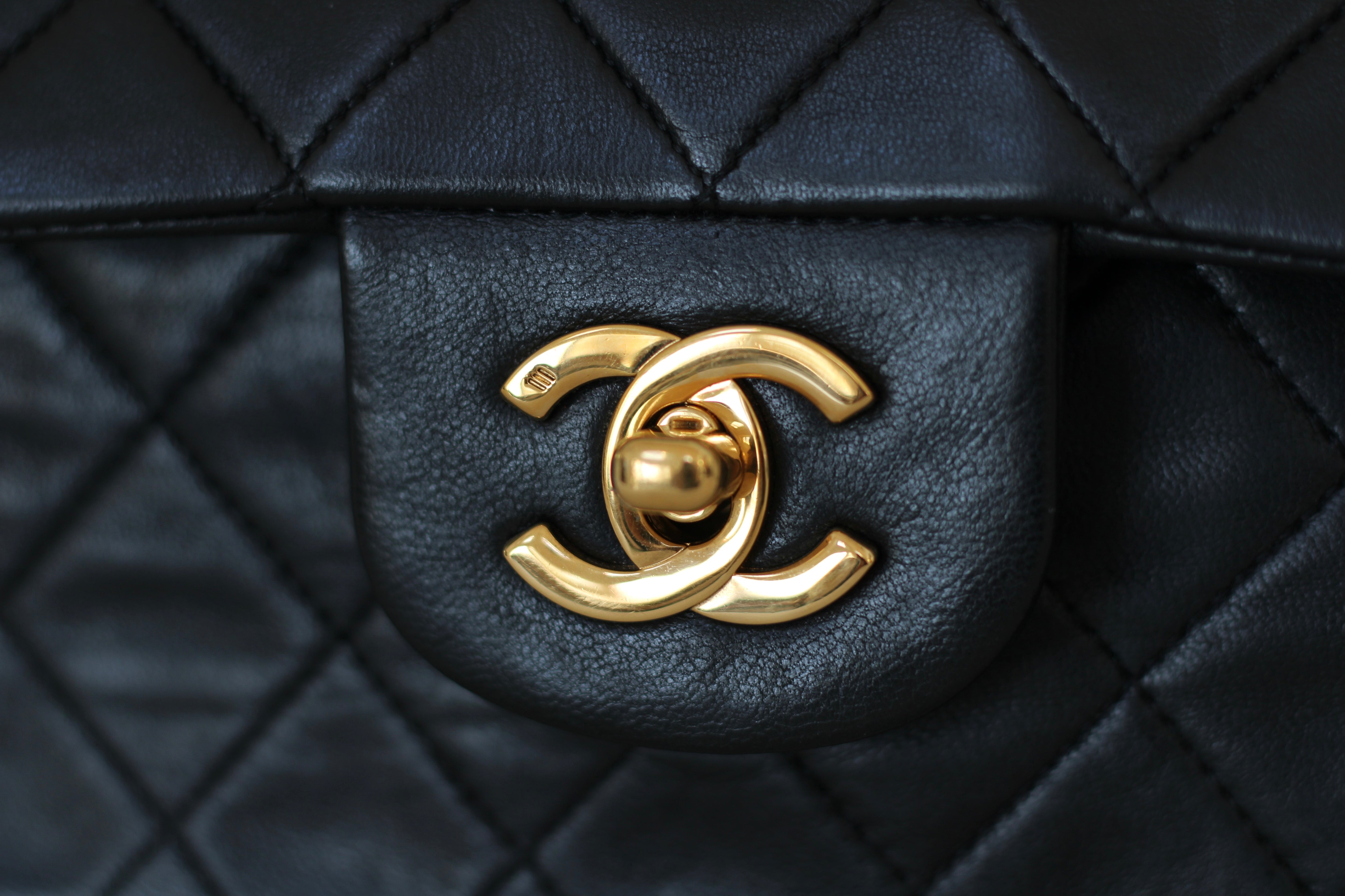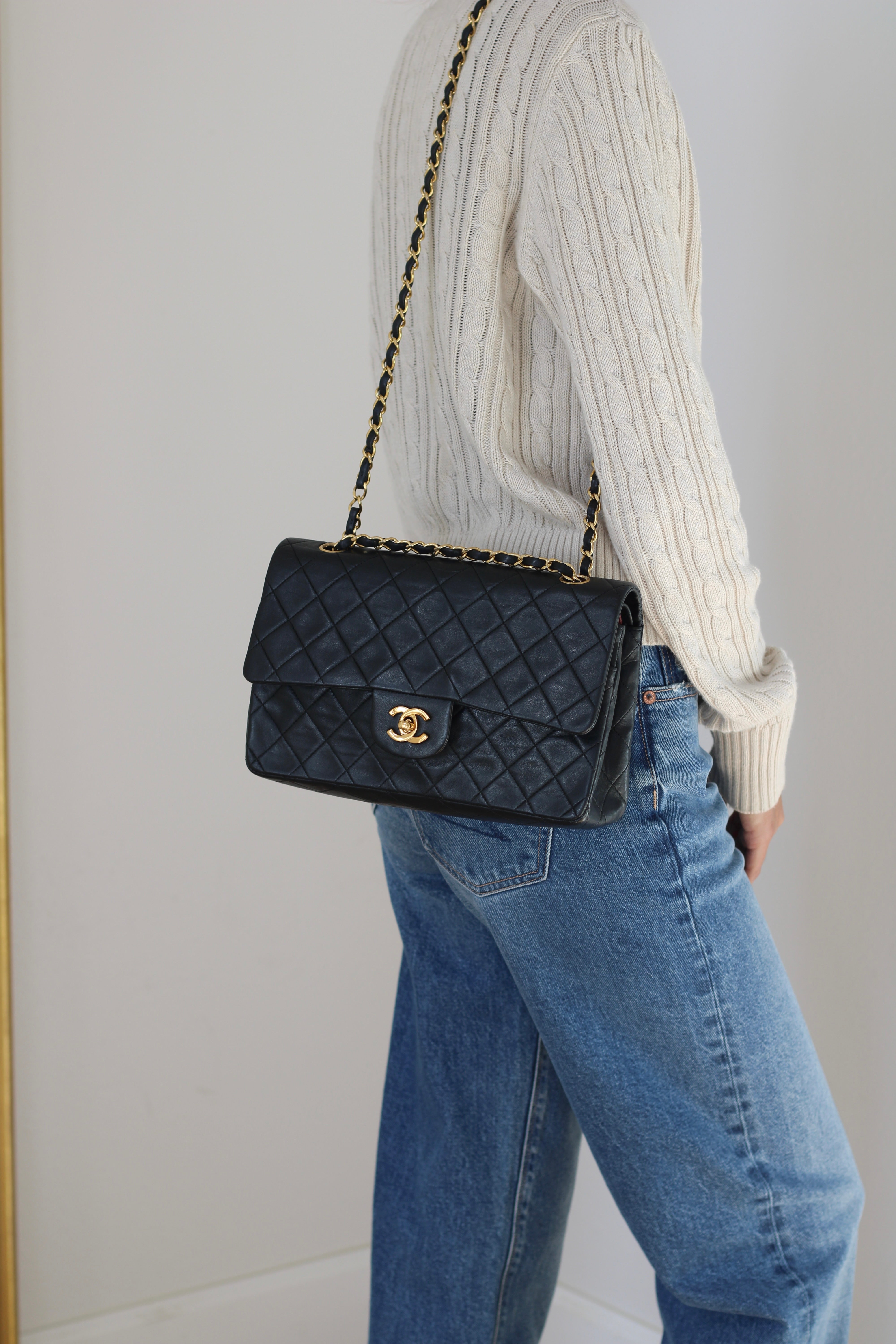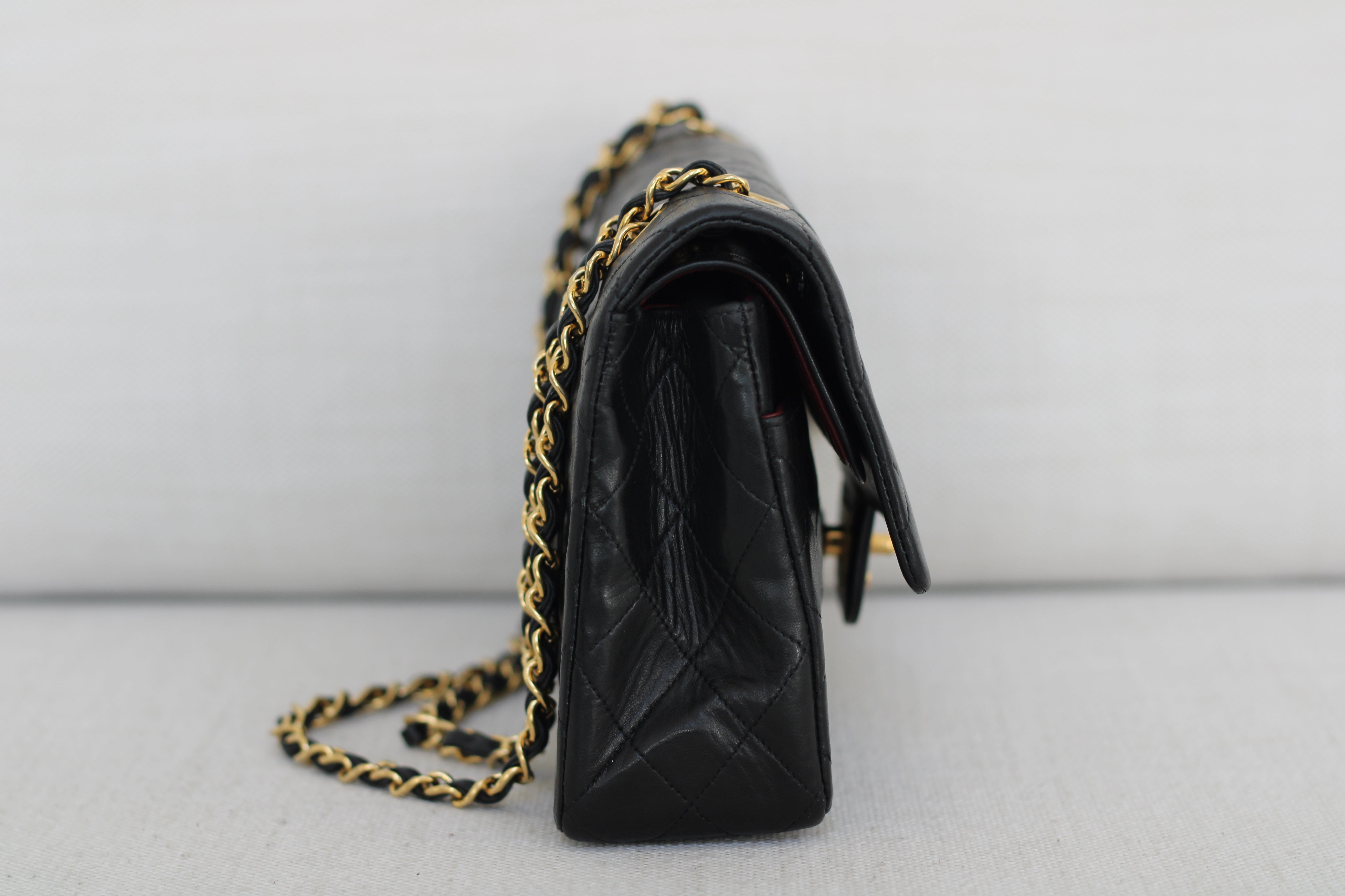 Vintage Chanel Black Lambskin Medium Classic Flap with 24k Gold Hardware