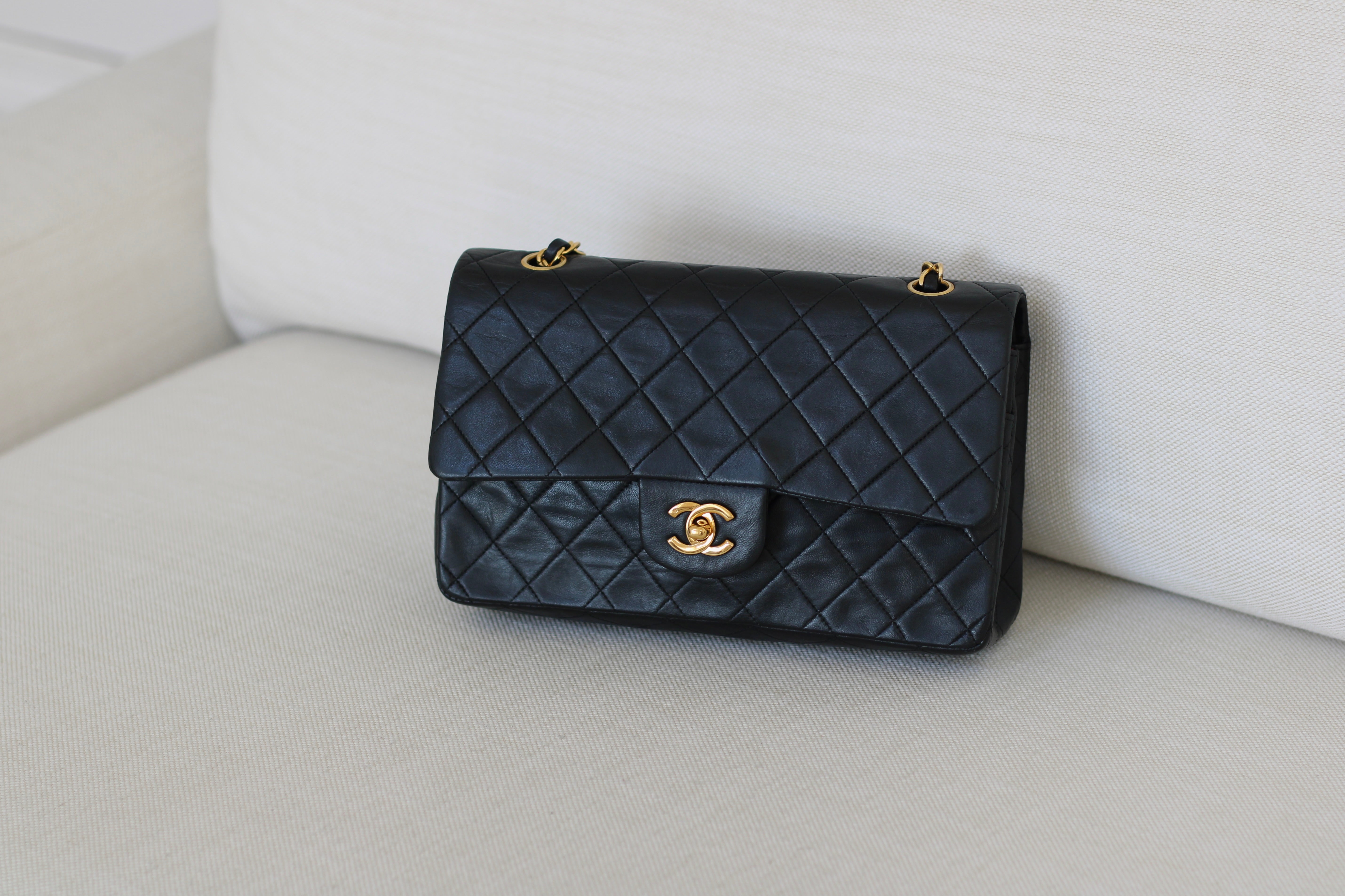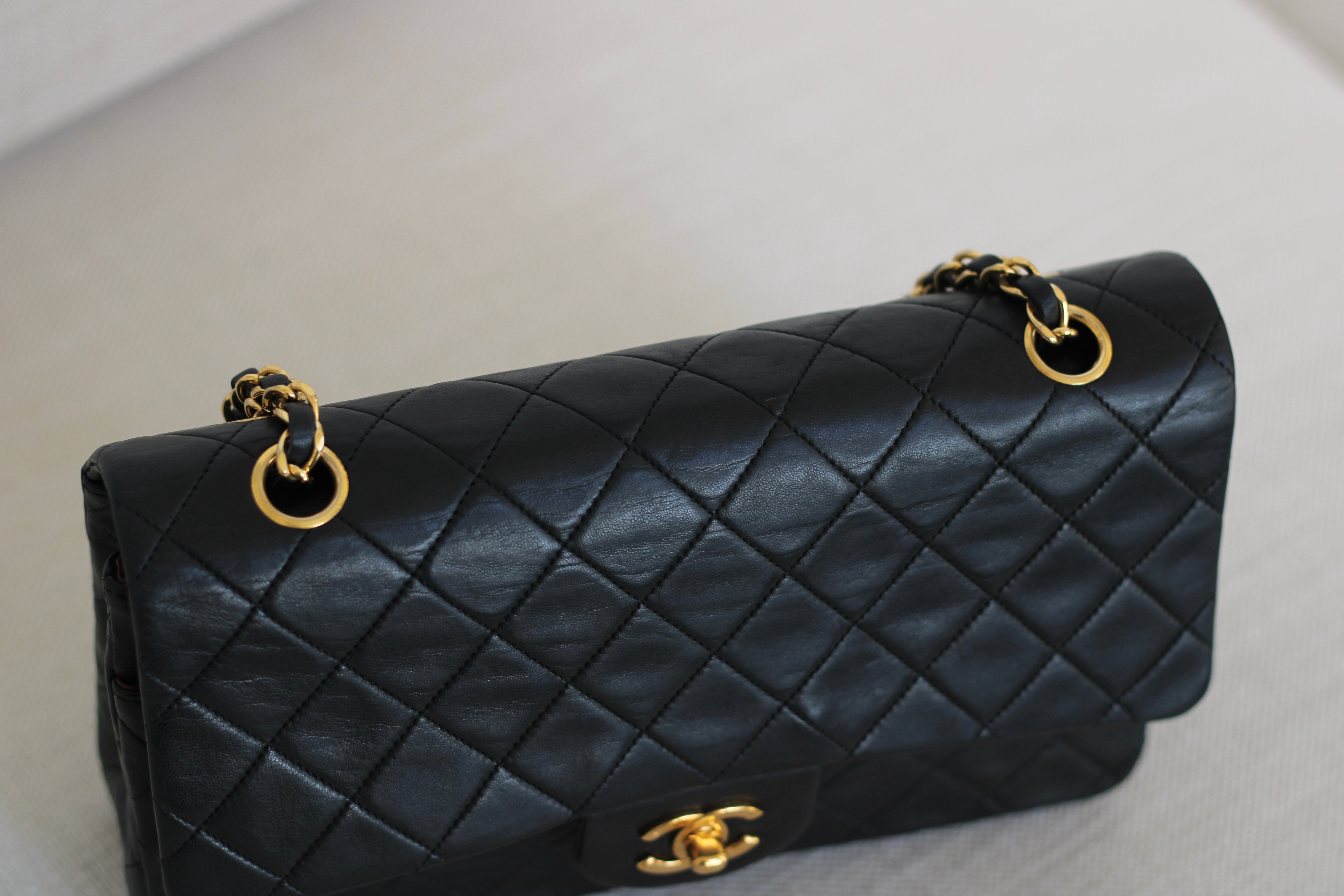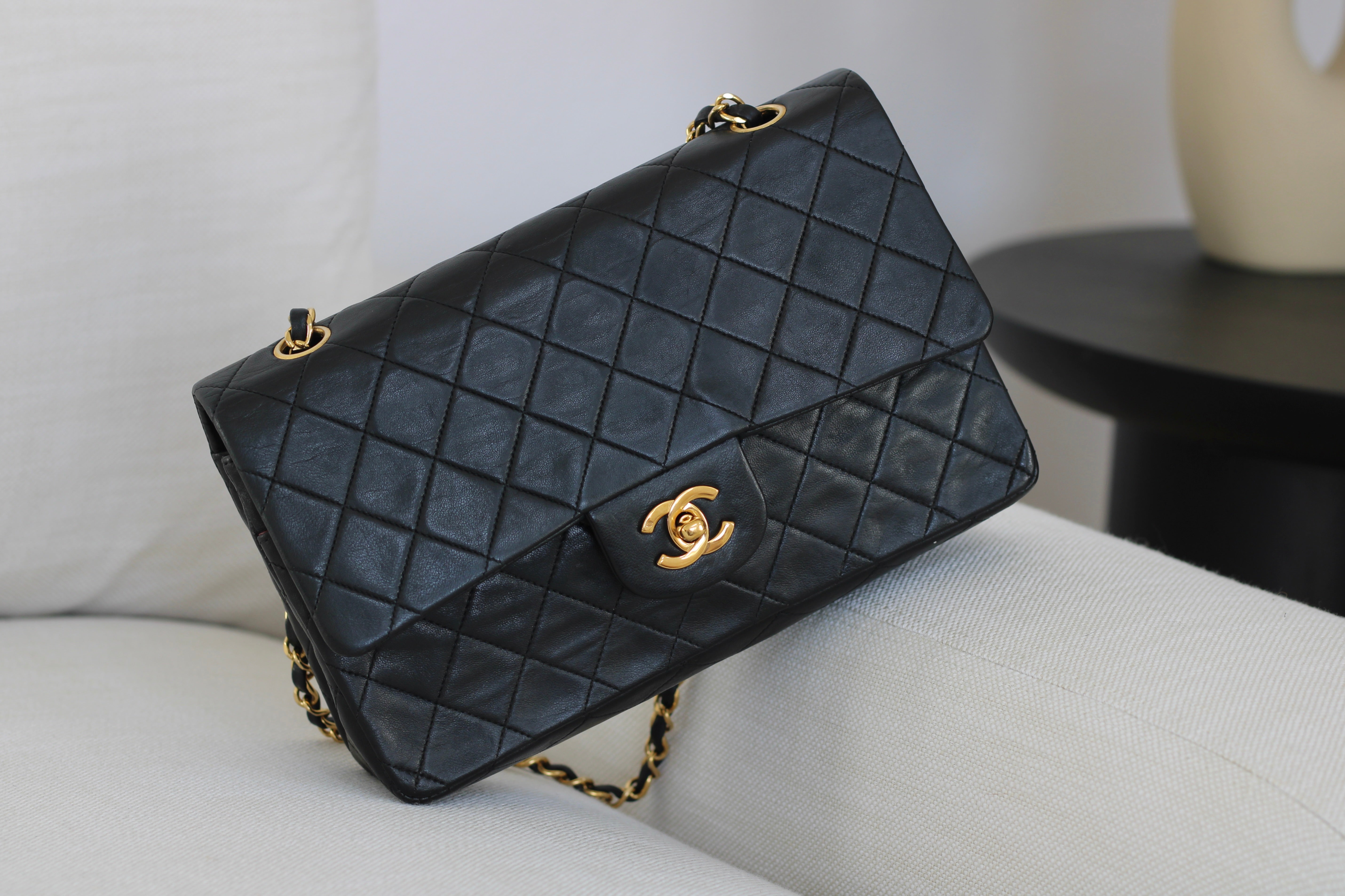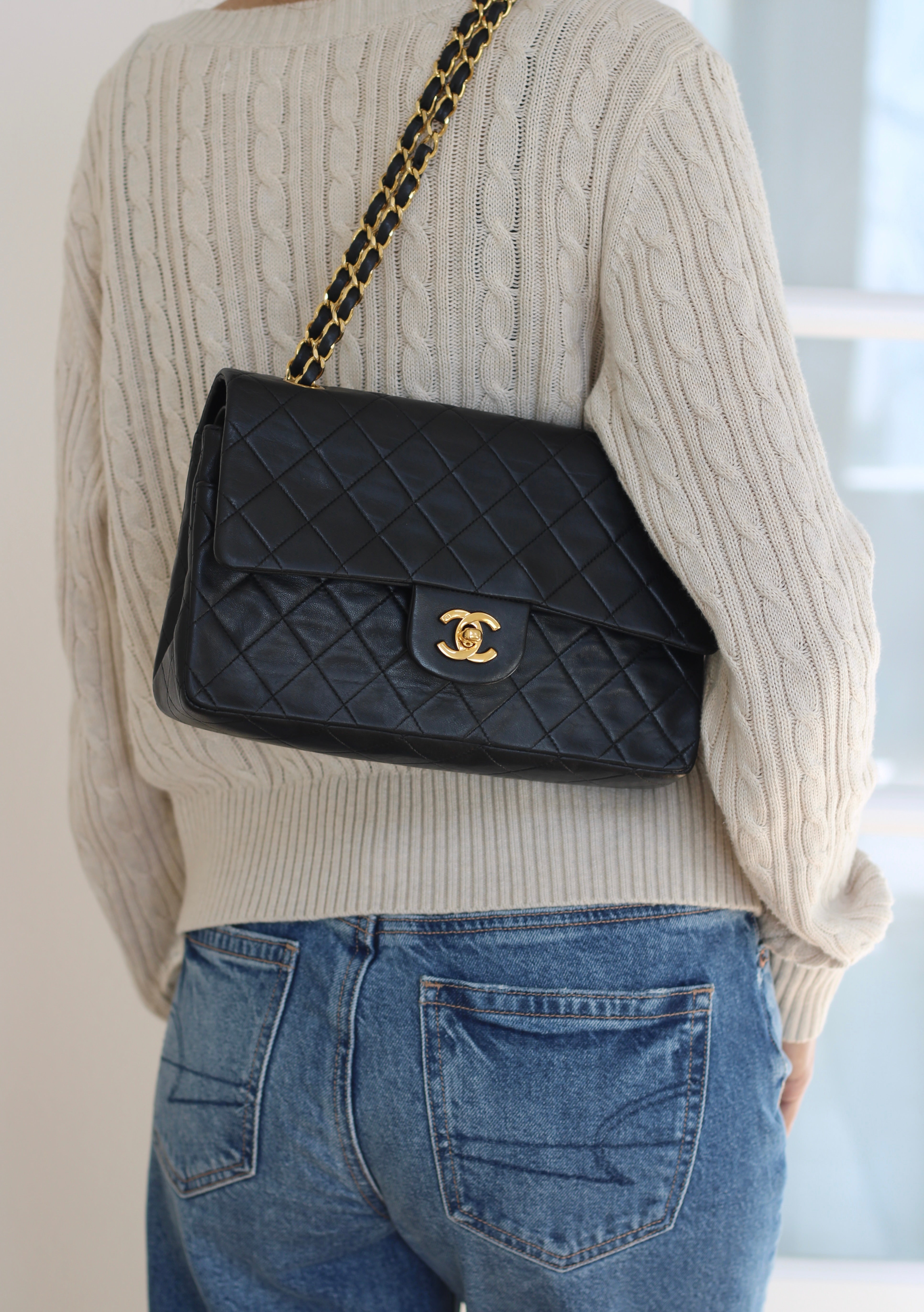 Vintage Chanel Black Lambskin Medium Classic Flap with 24k Gold Hardware
