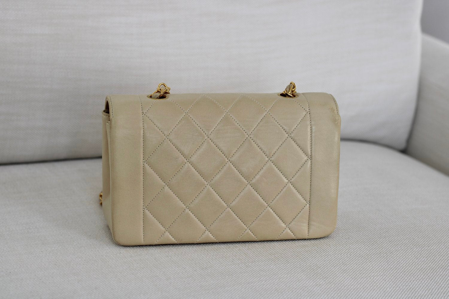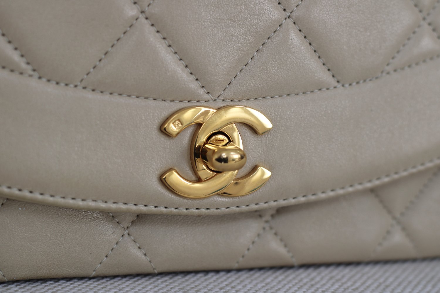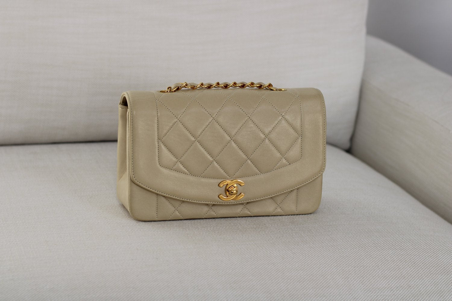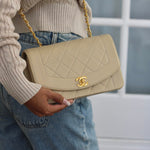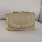 Vintage Chanel Light Beige Lambskin Small Diana with 24k Gold Hardware