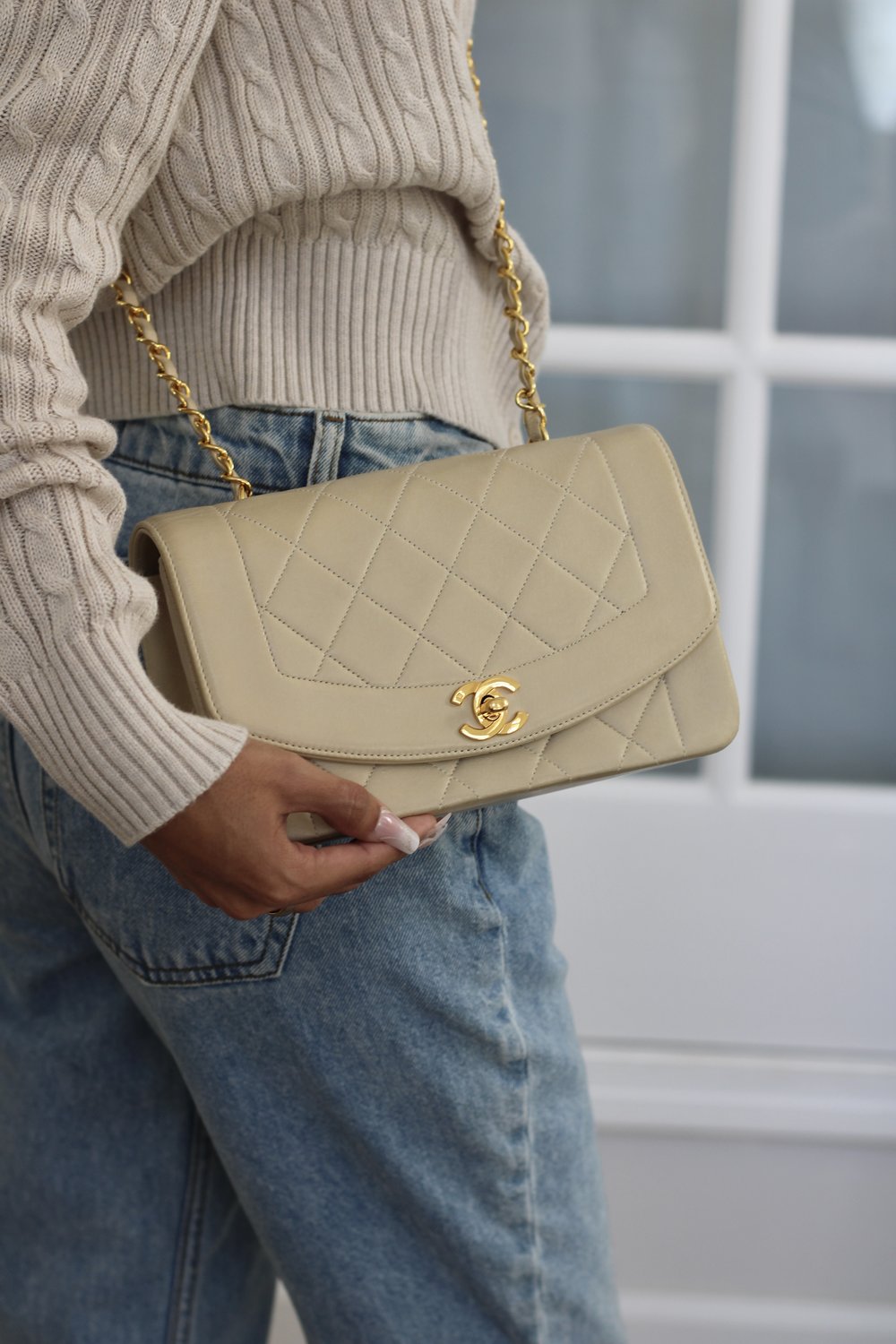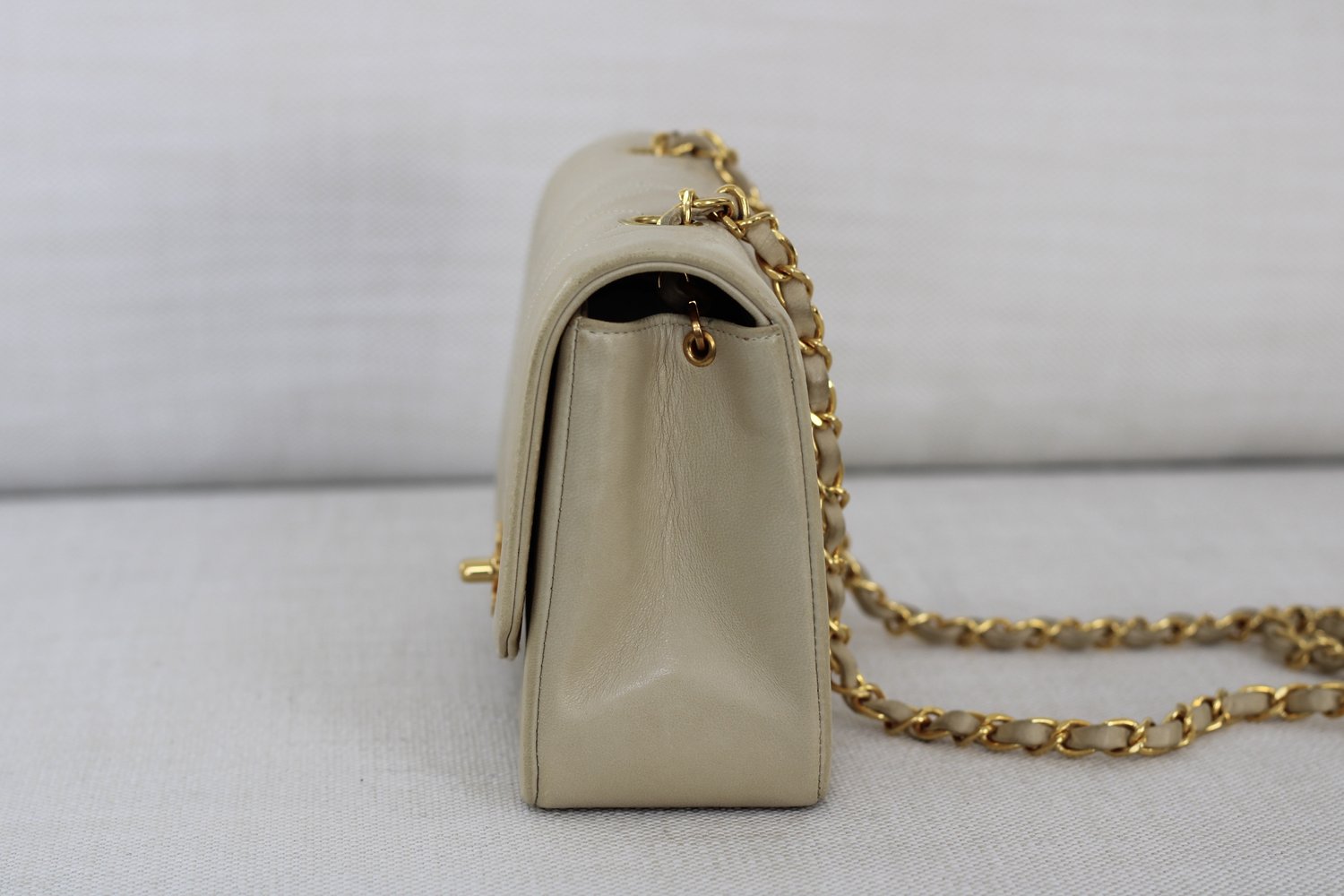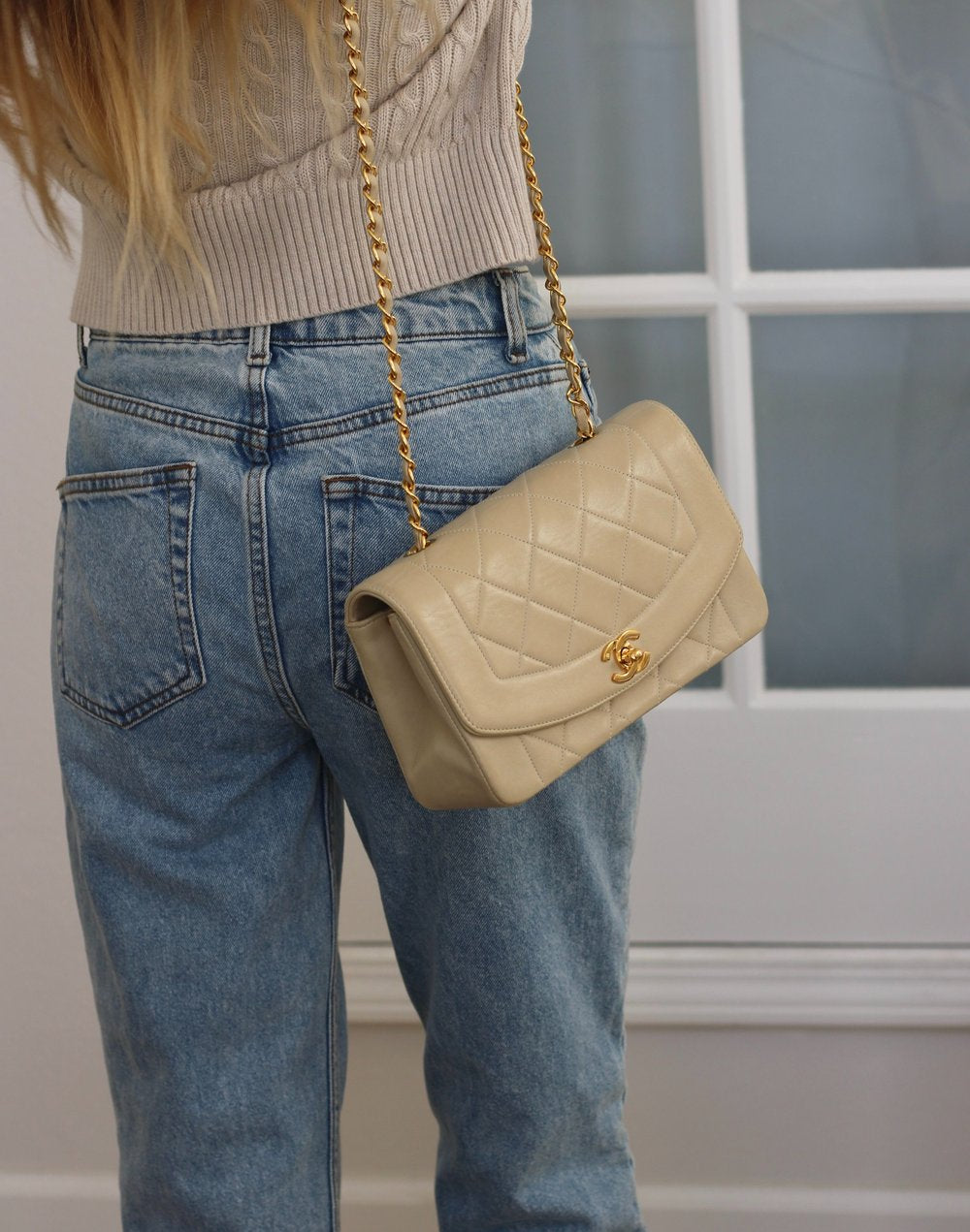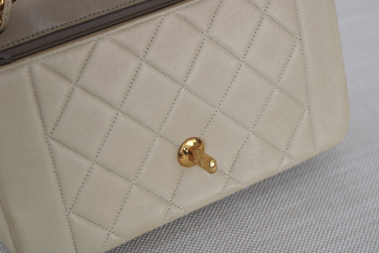 Vintage Chanel Light Beige Lambskin Small Diana with 24k Gold Hardware
