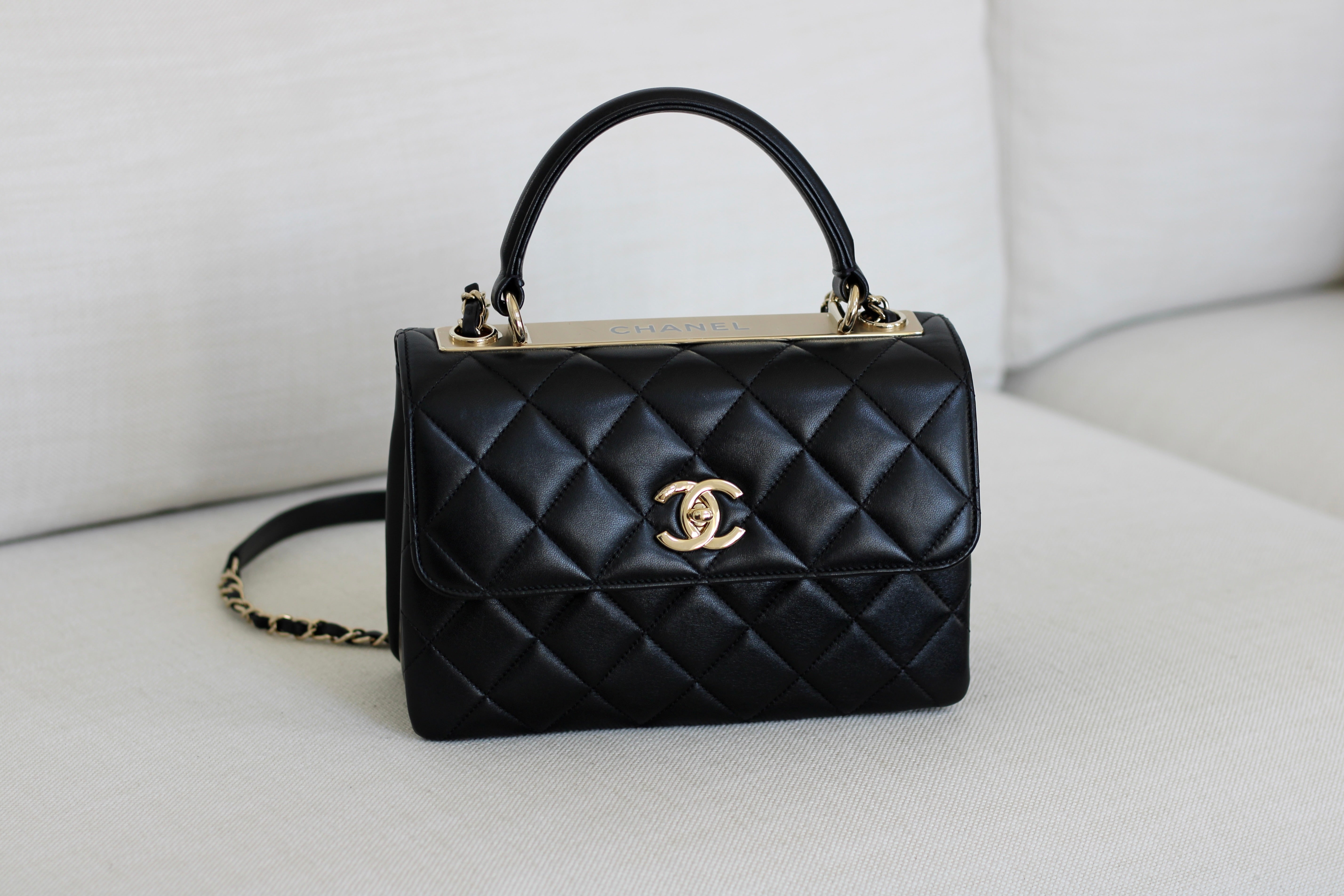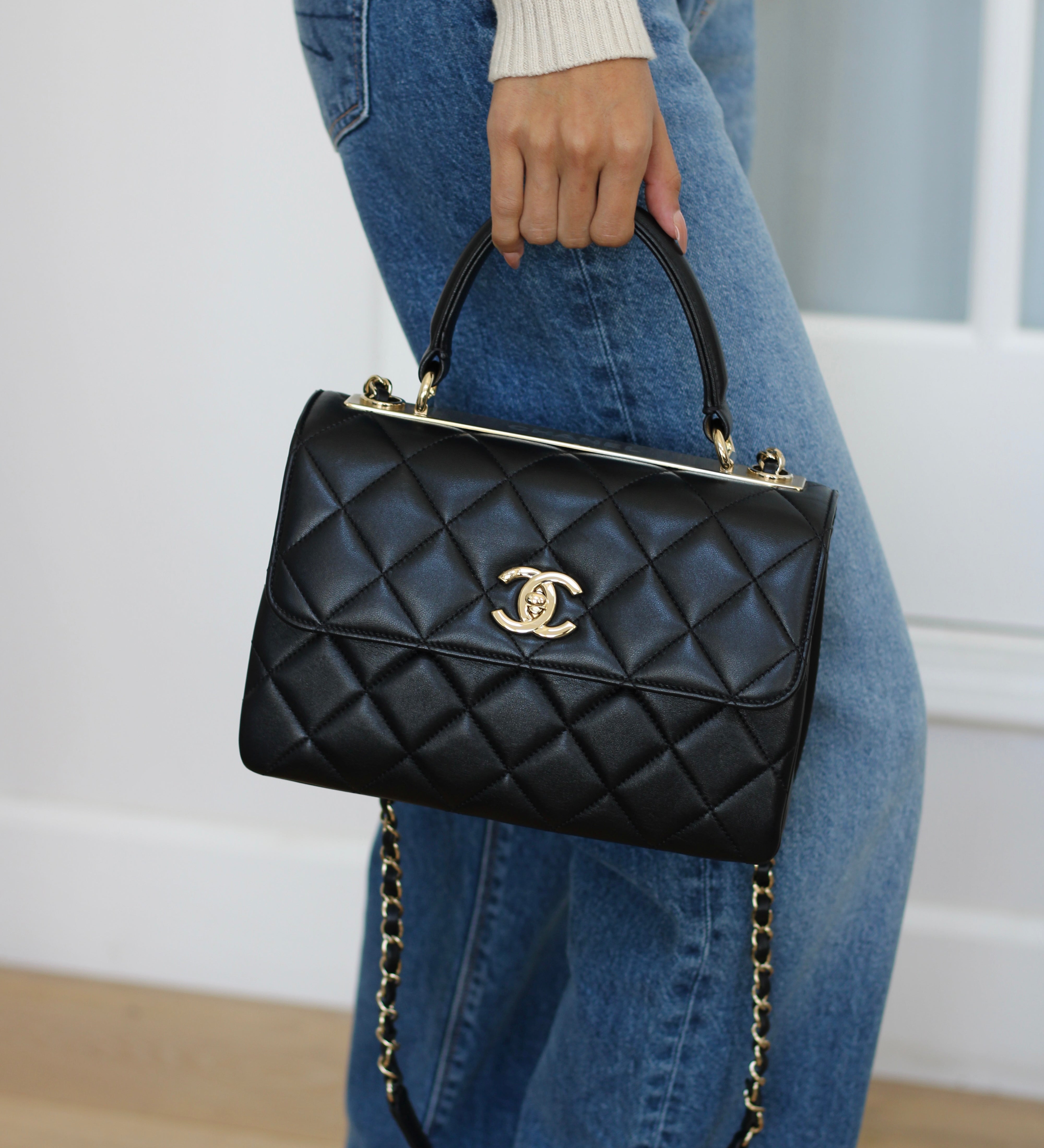 Chanel Black Lambskin Small Trendy Top Handle with Light Gold Hardware