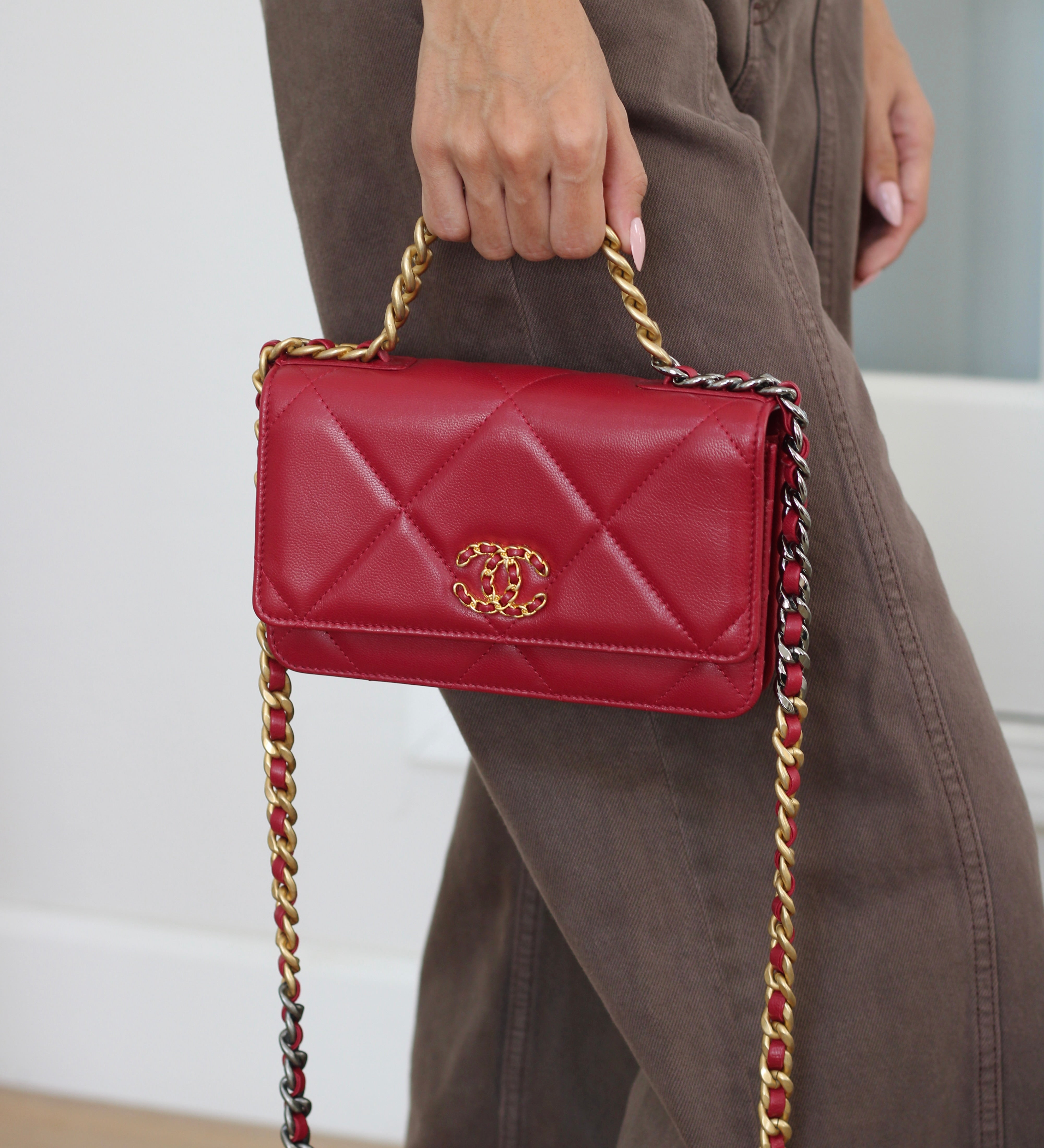 Chanel 19K Red Goatskin 19 Wallet on Chain with Mixed-Metal Hardware