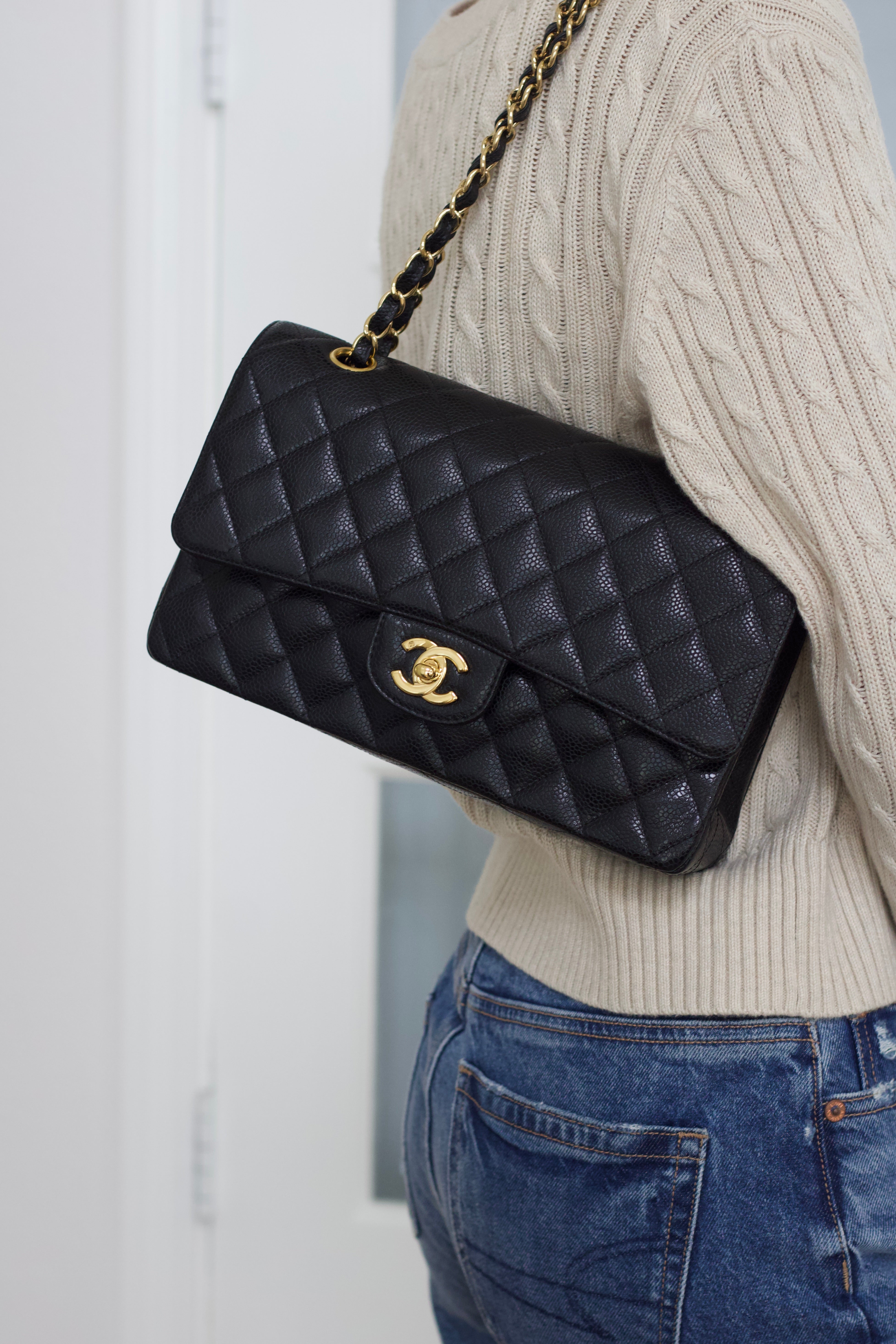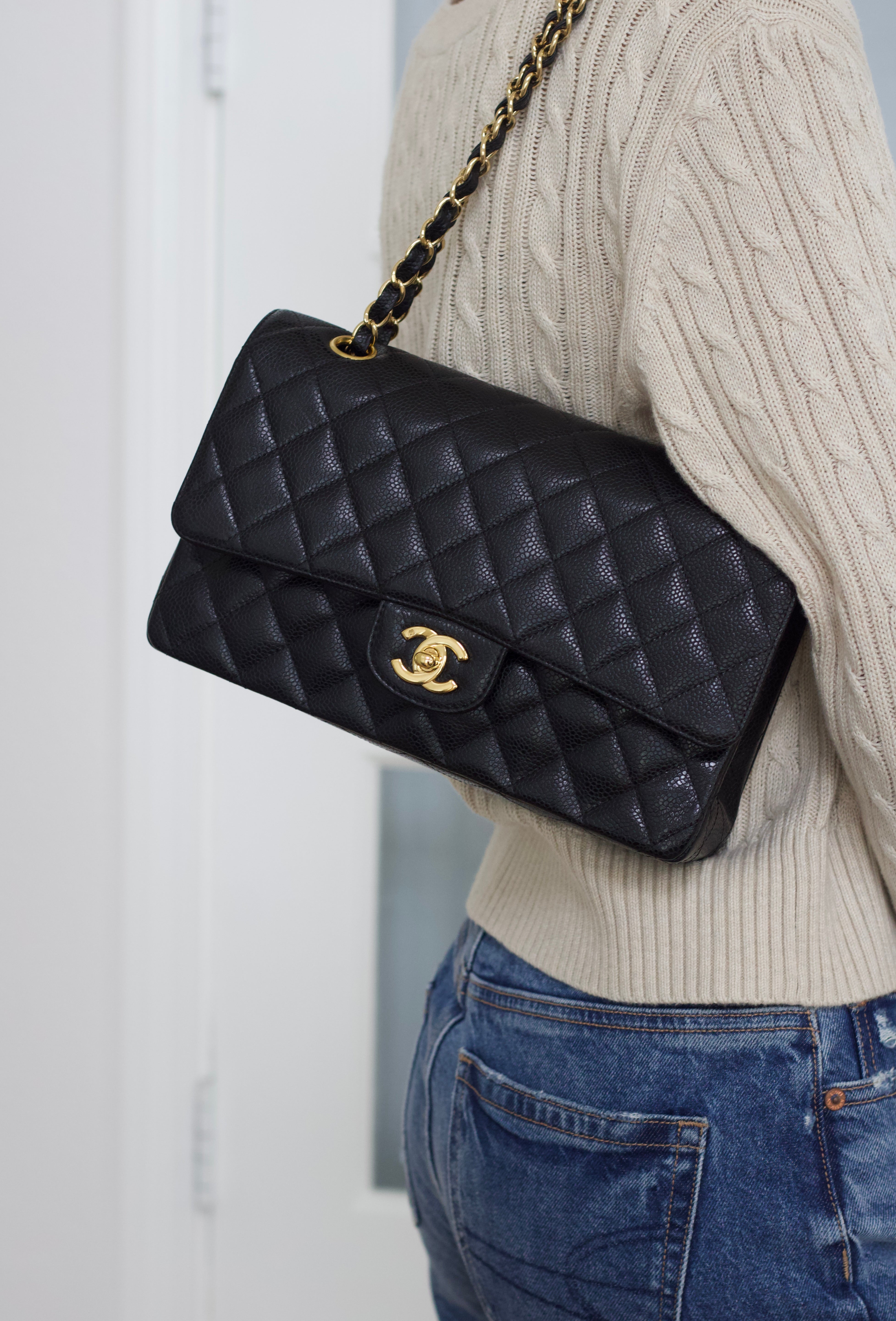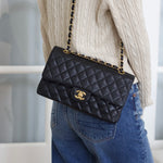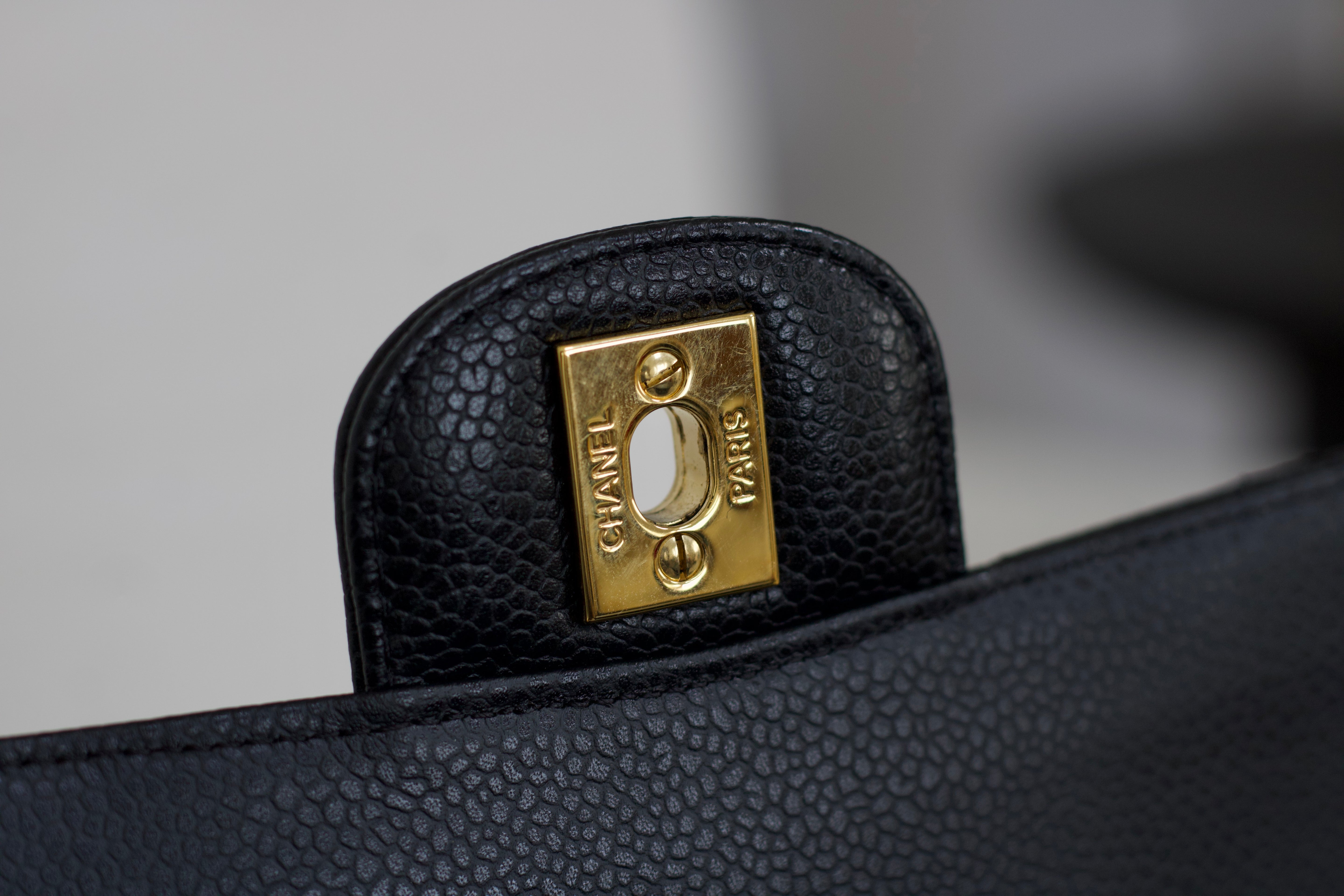 Vintage Chanel Black Caviar Medium Classic Flap with 24k Gold Hardware
