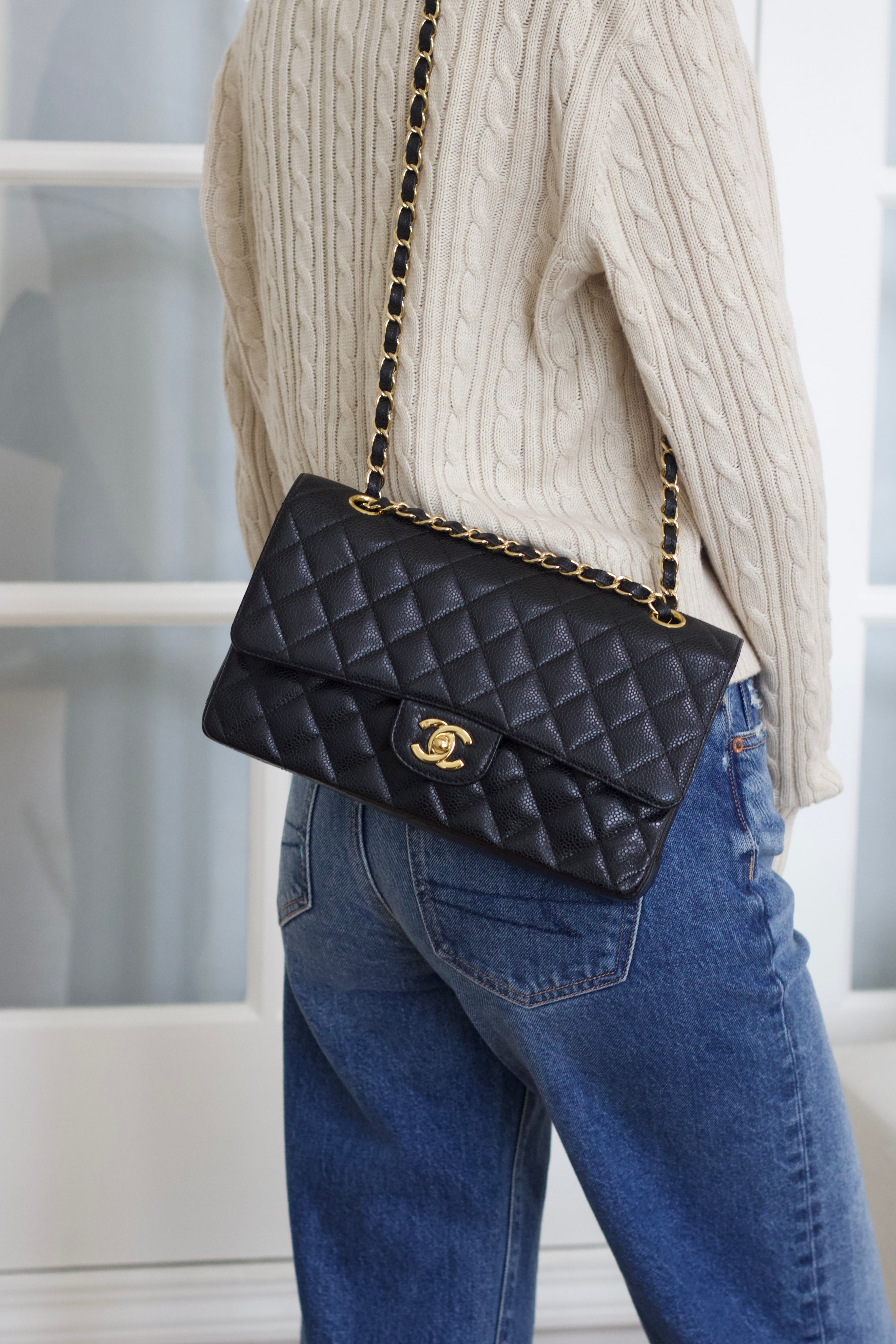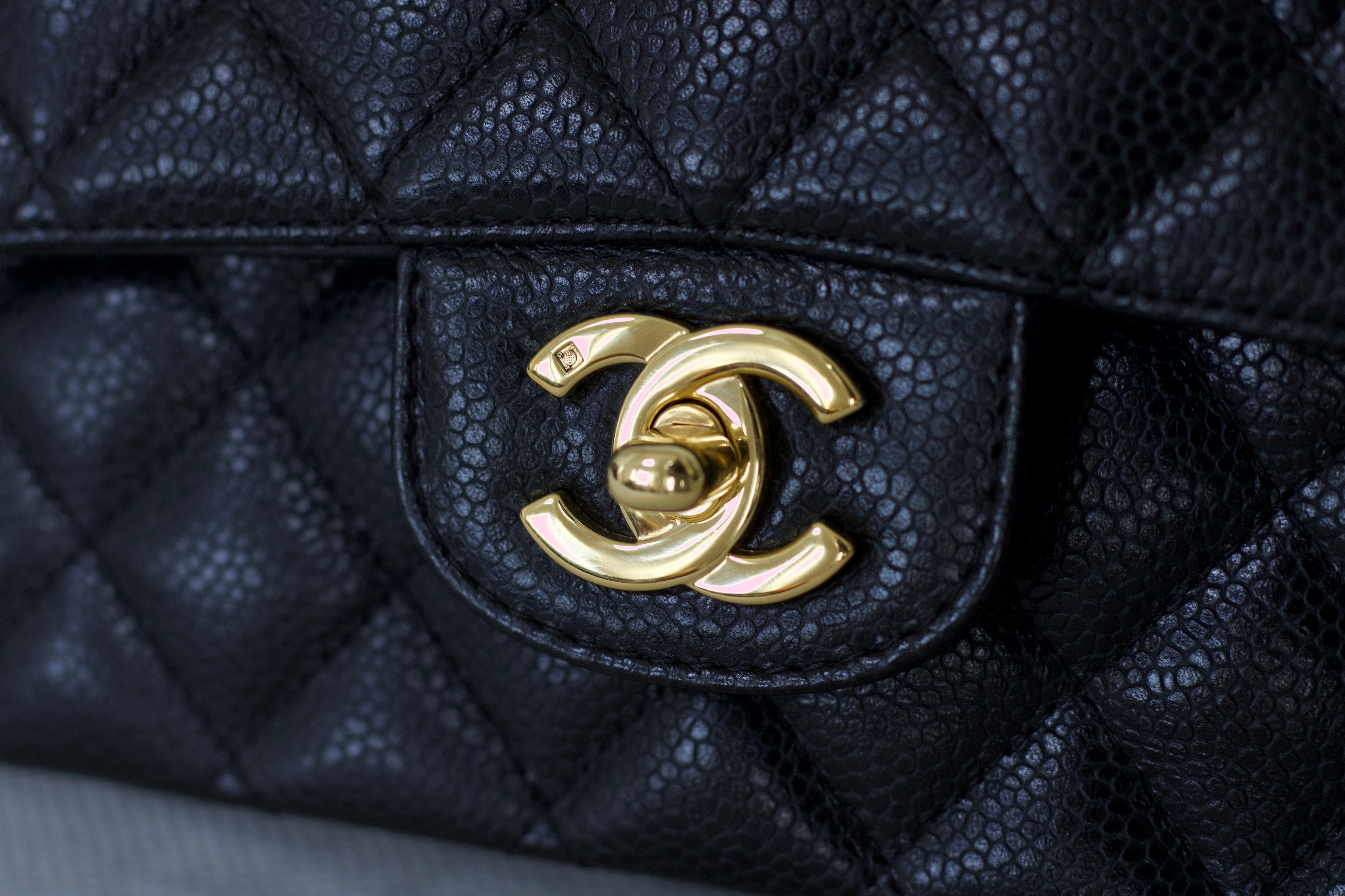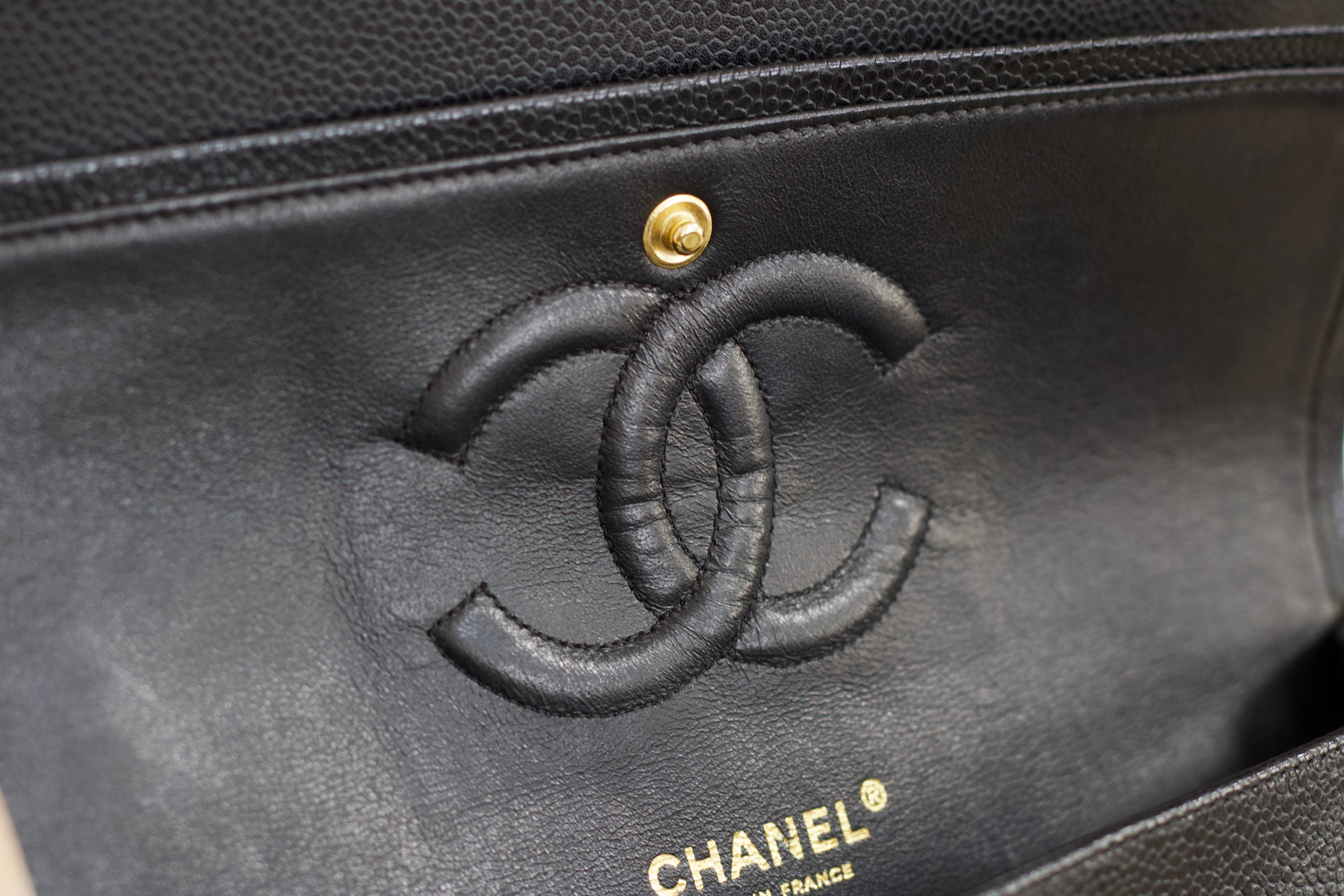 Vintage Chanel Black Caviar Medium Classic Flap with 24k Gold Hardware