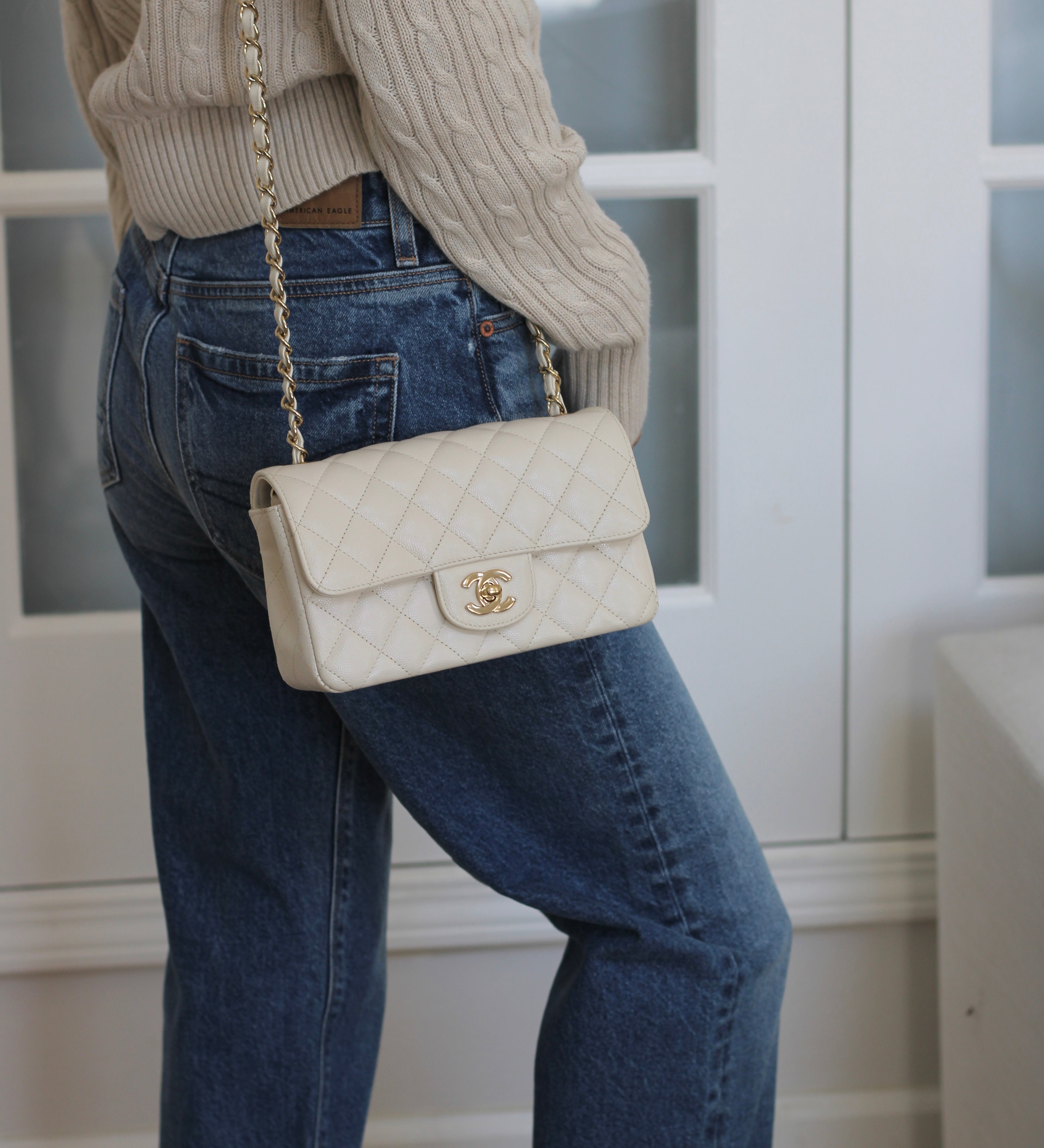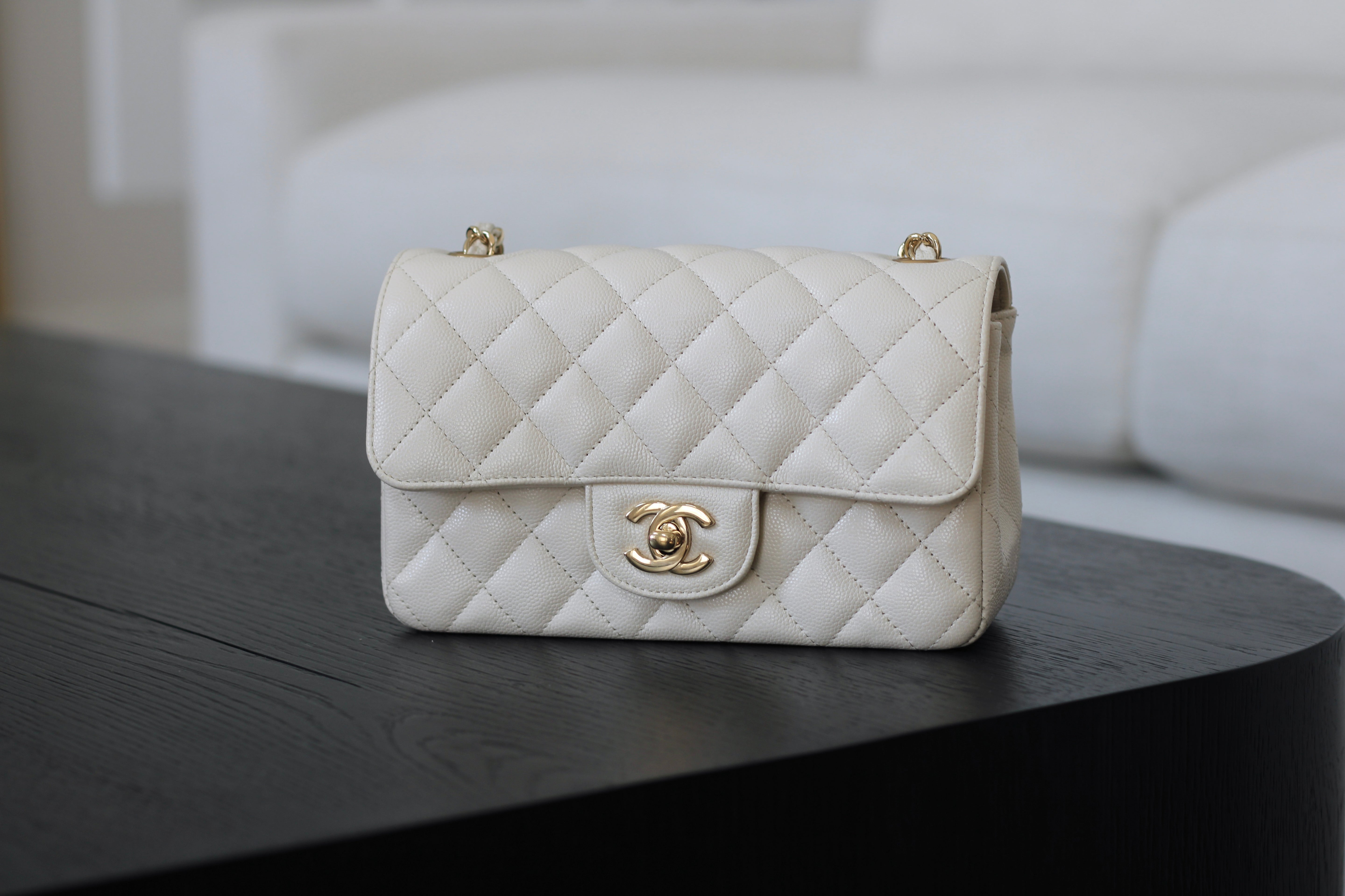 Chanel 17C Ivory Caviar Mini Rectangle with Light Gold Hardware