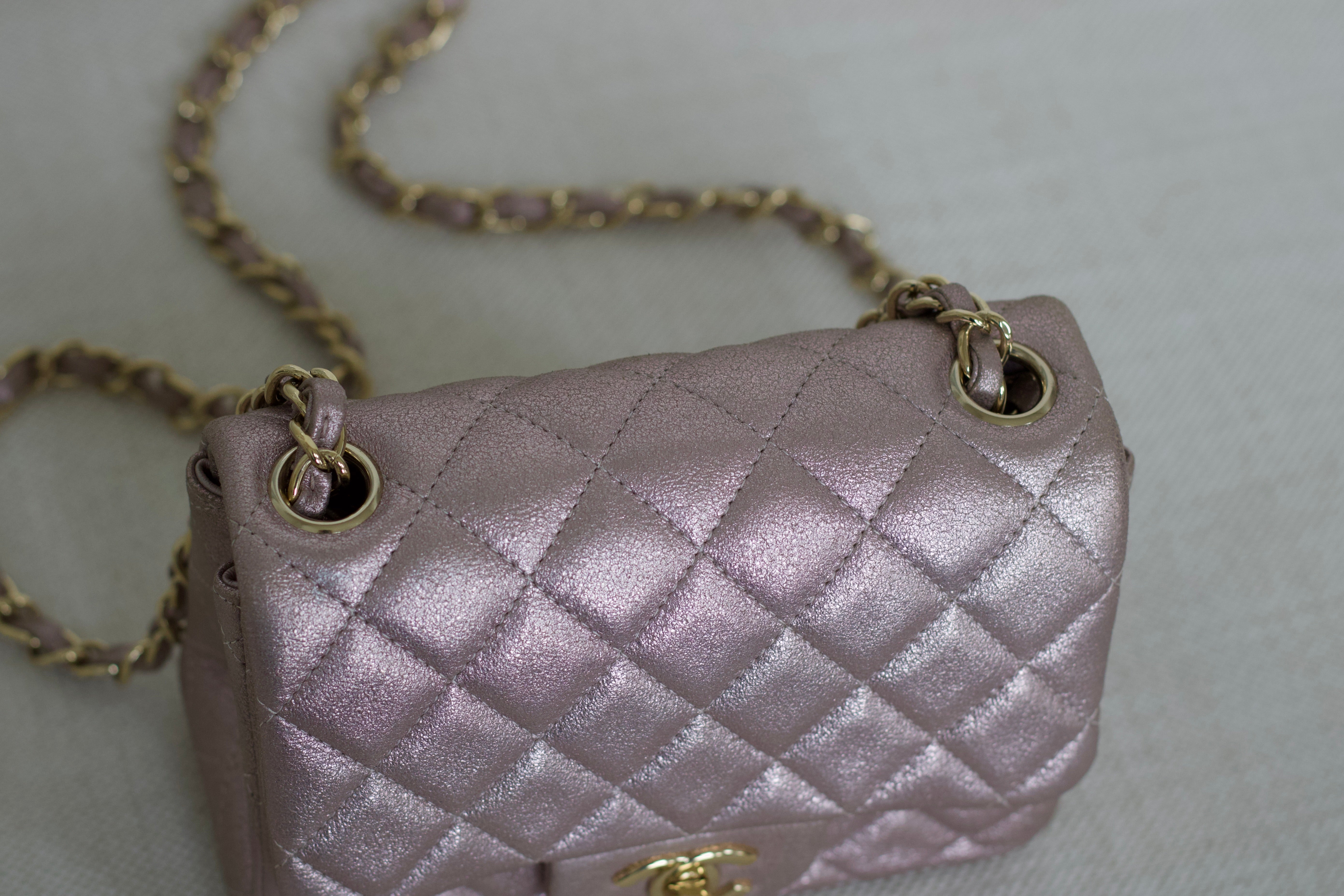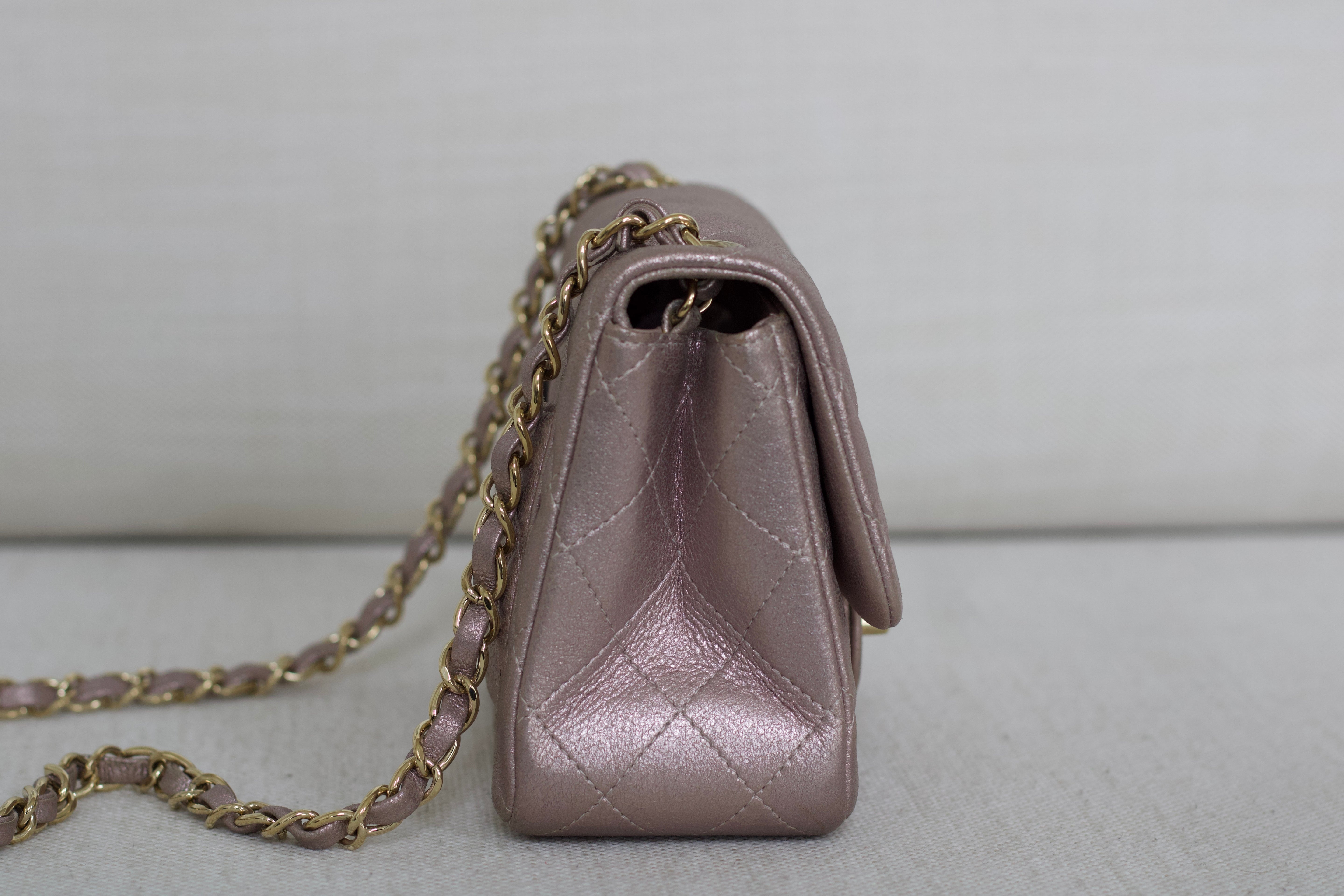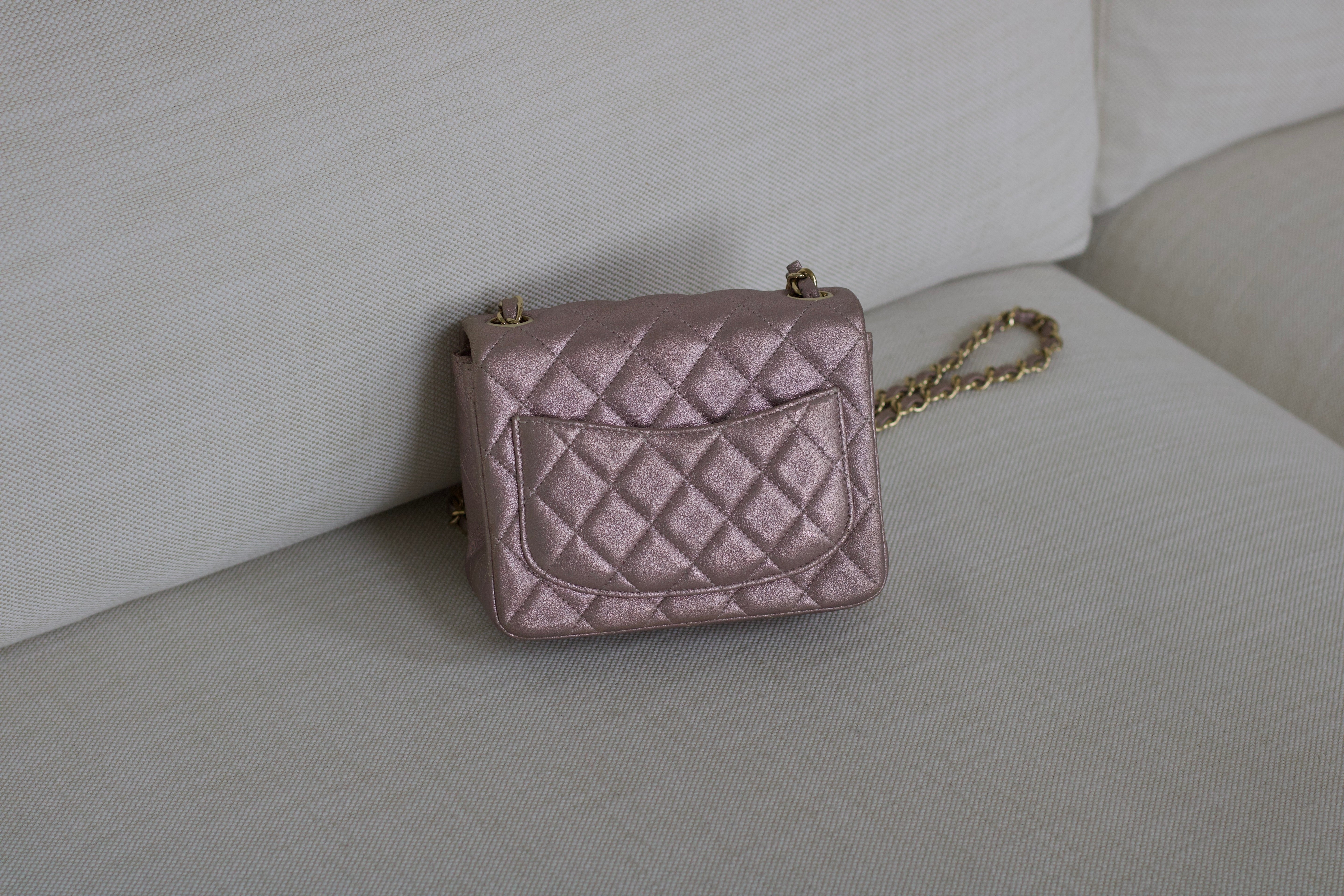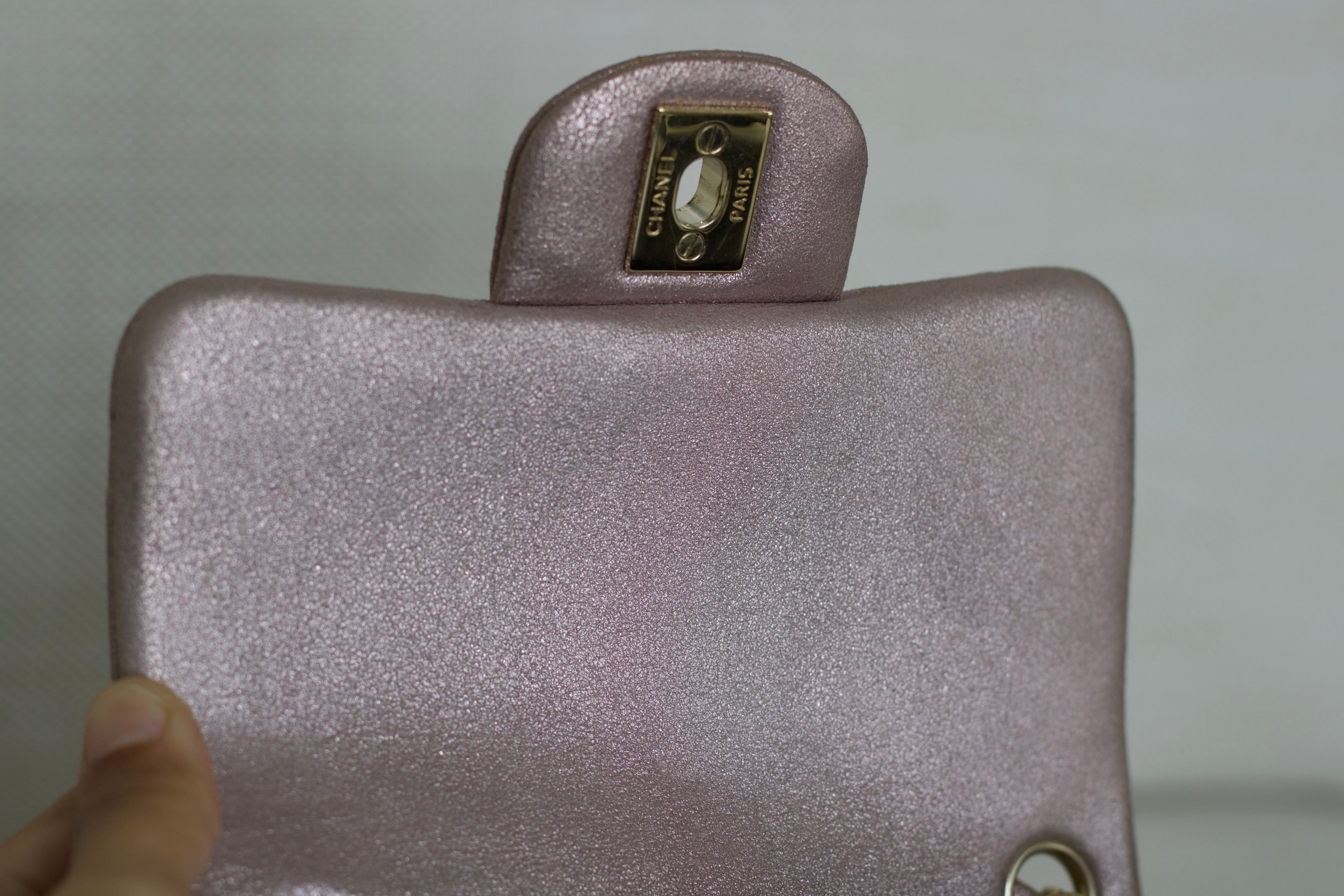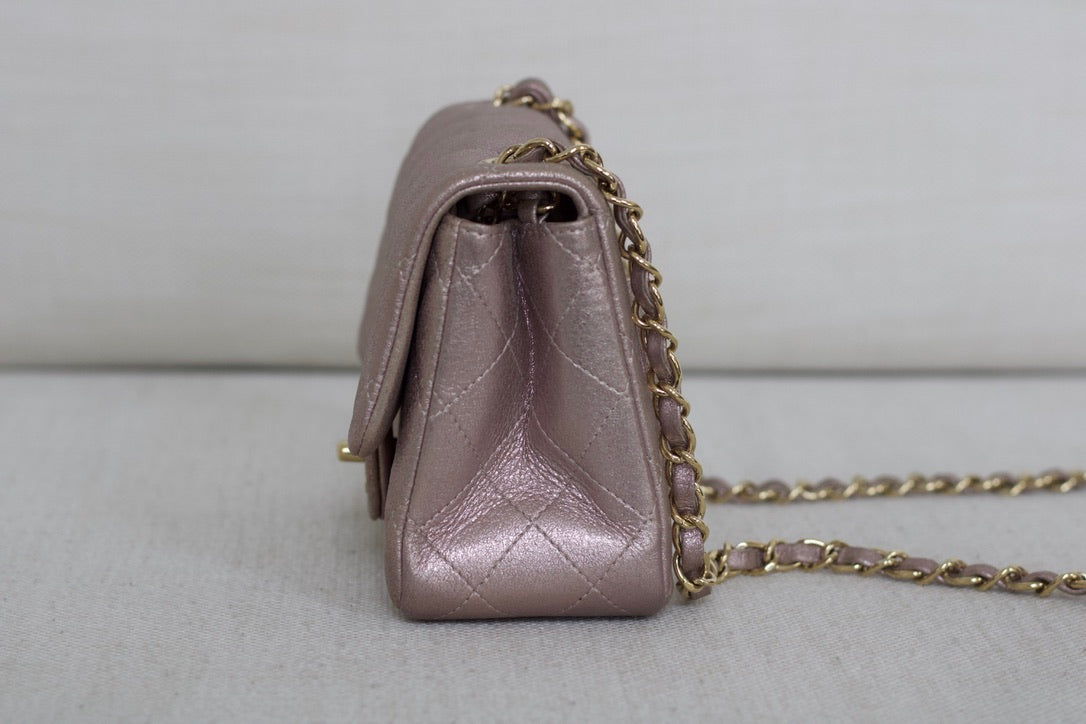 Chanel 14B Metallic Pink Goatskin Mini Square with Light Gold Hardware