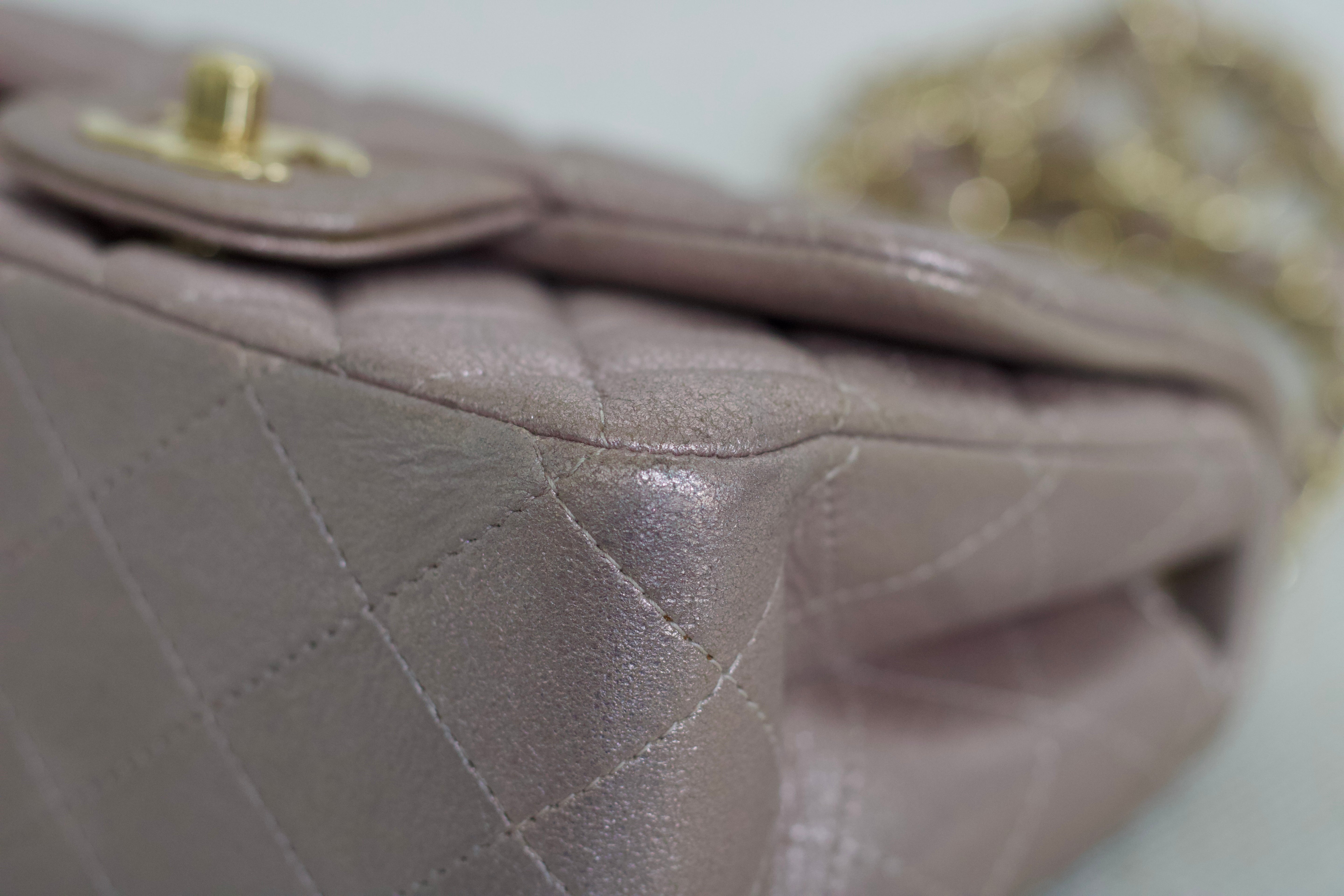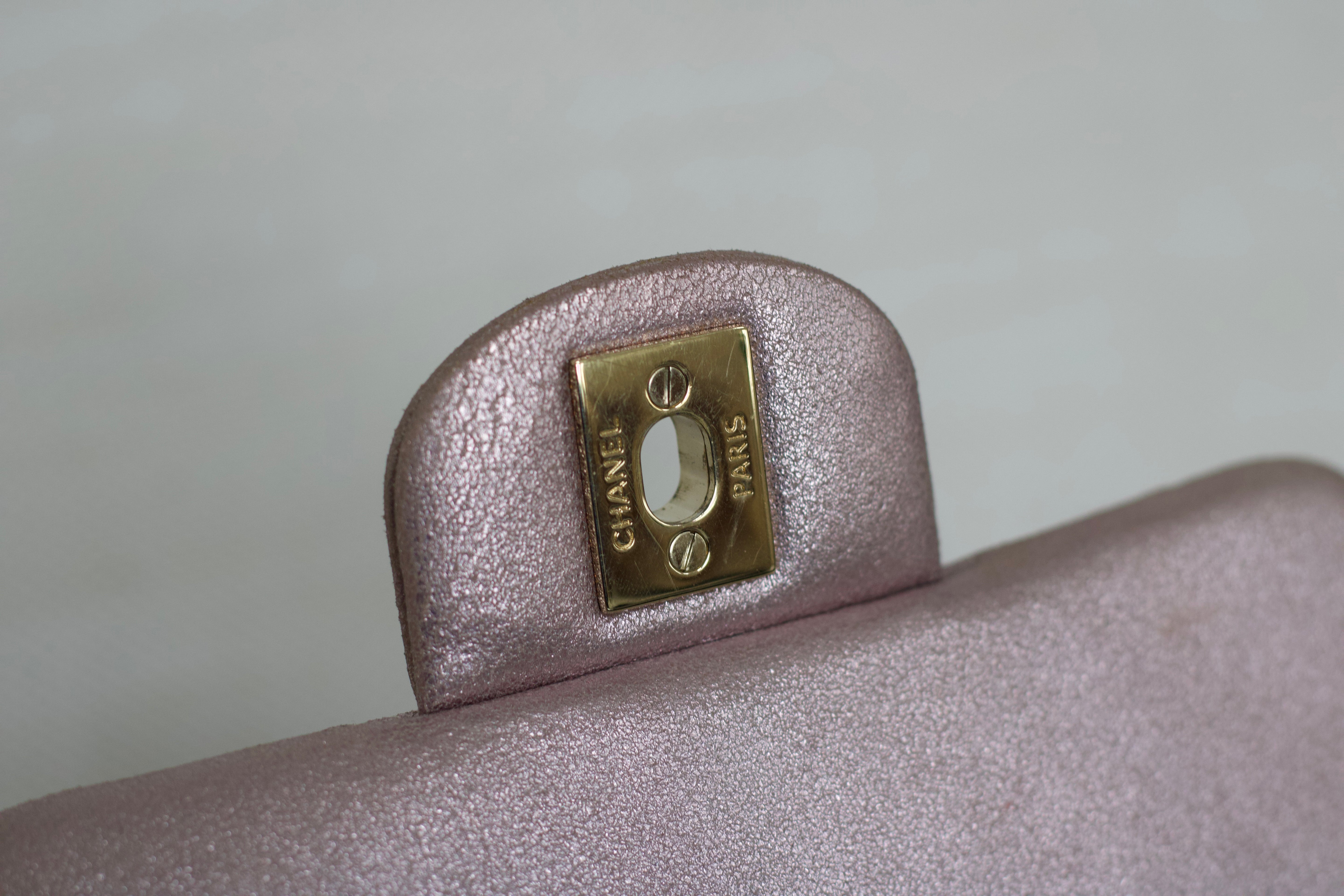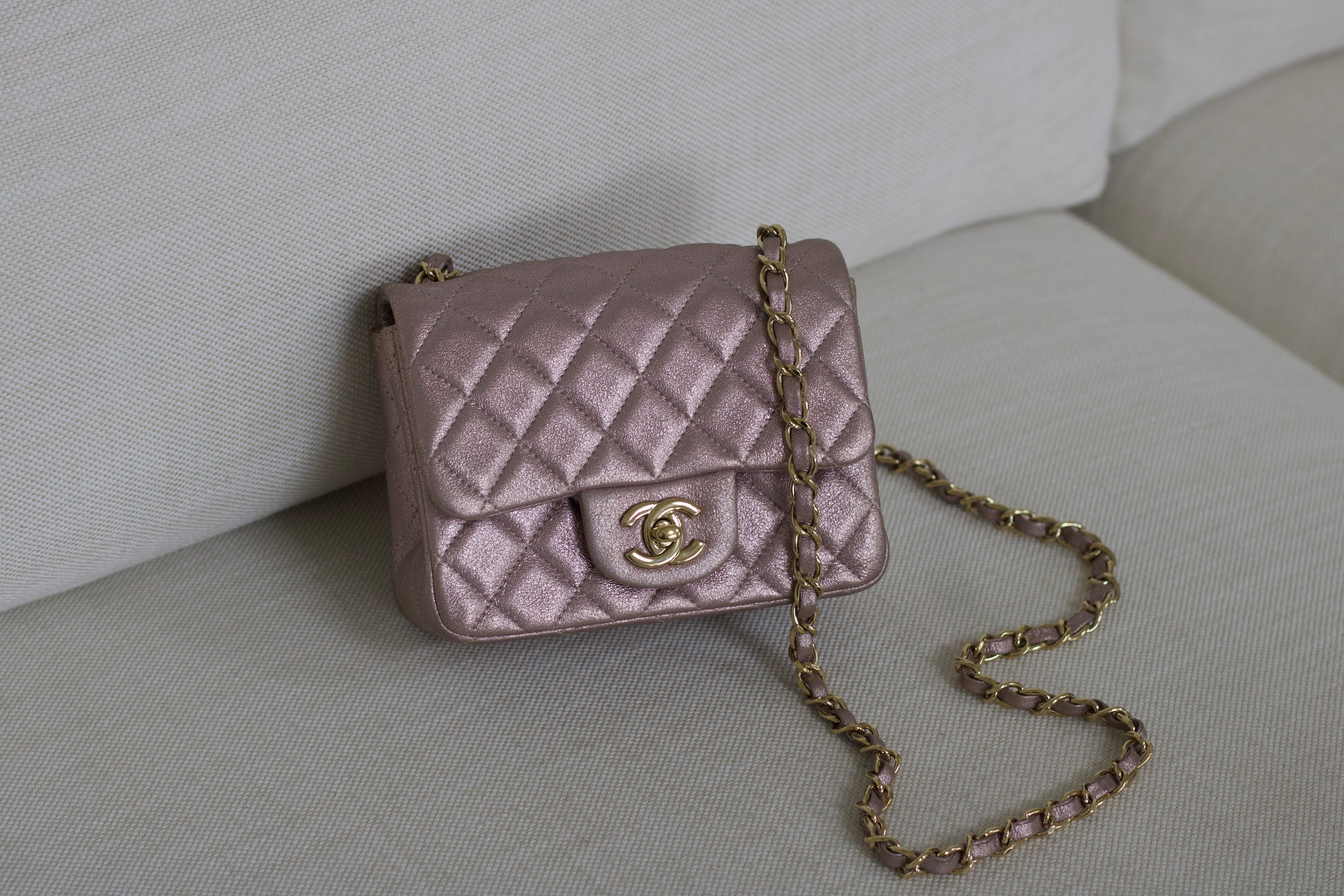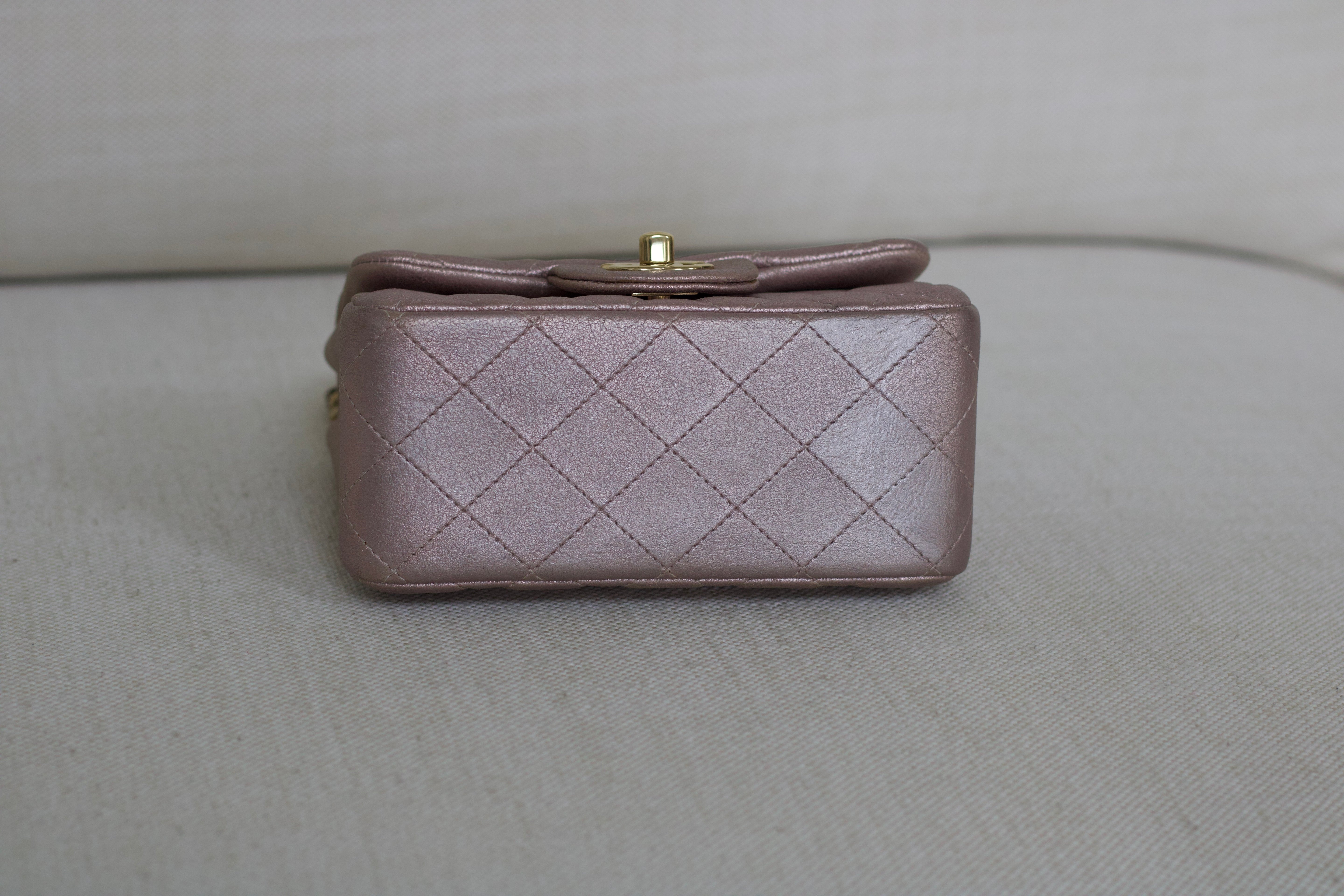 Chanel 14B Metallic Pink Goatskin Mini Square with Light Gold Hardware