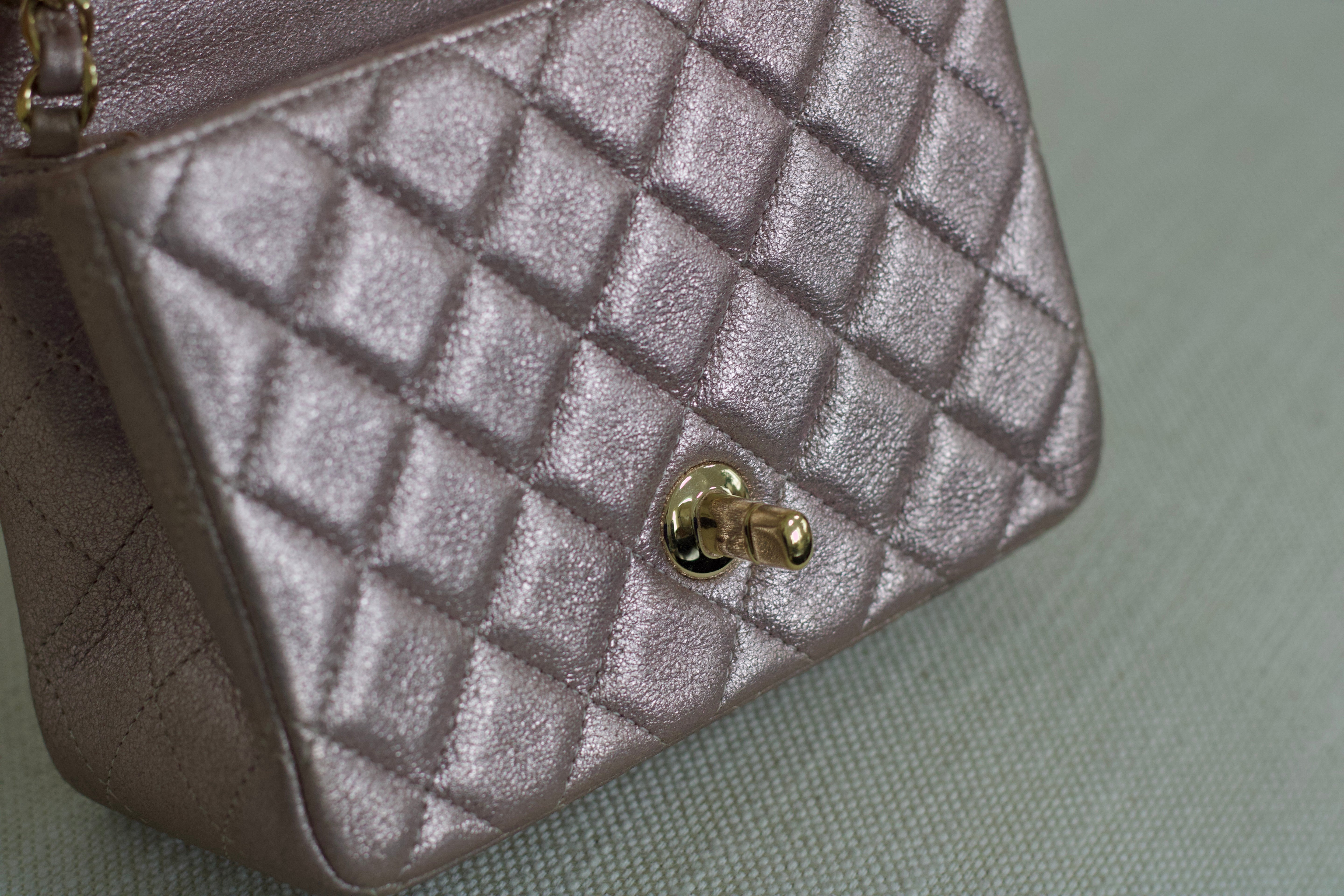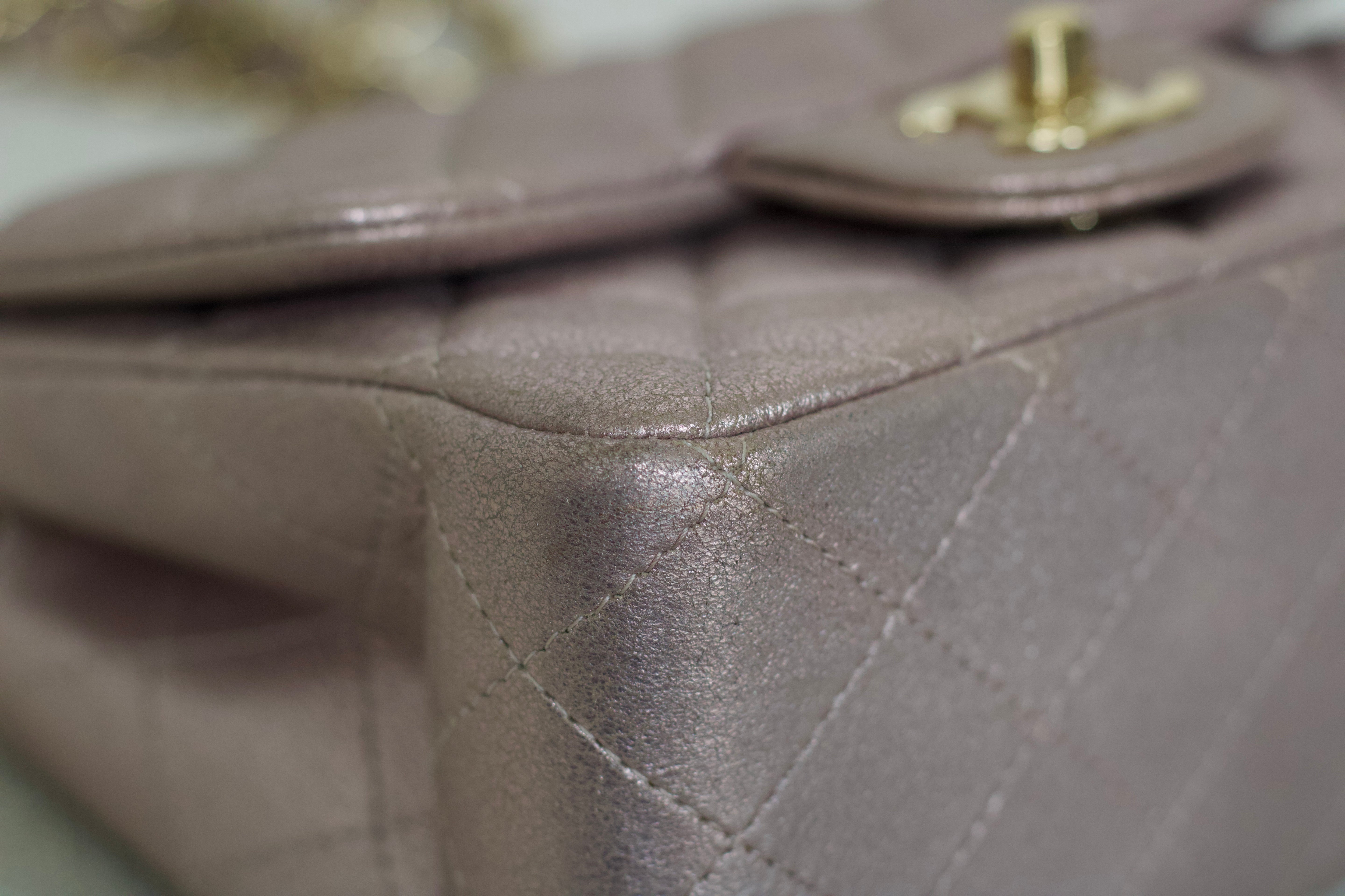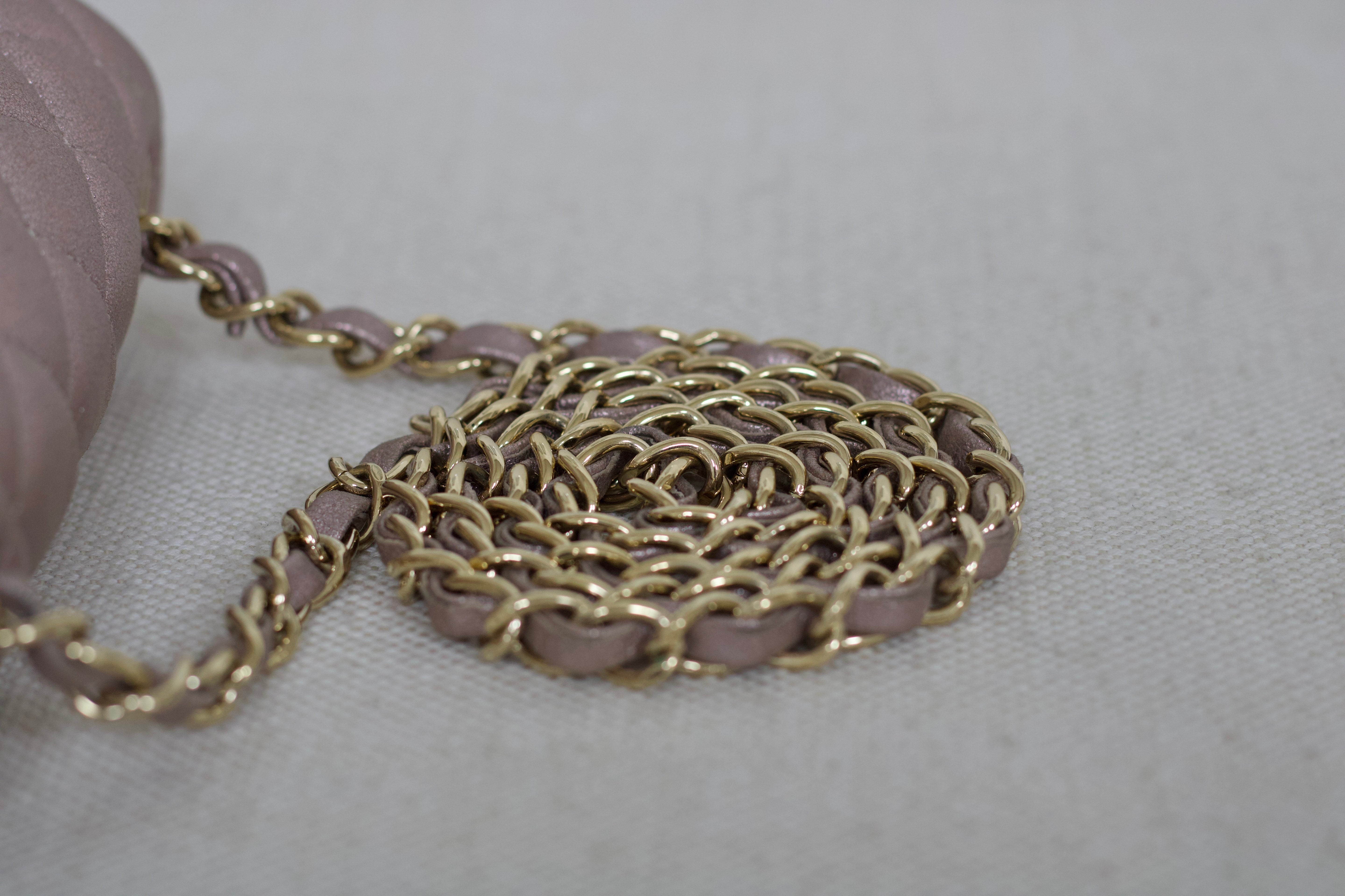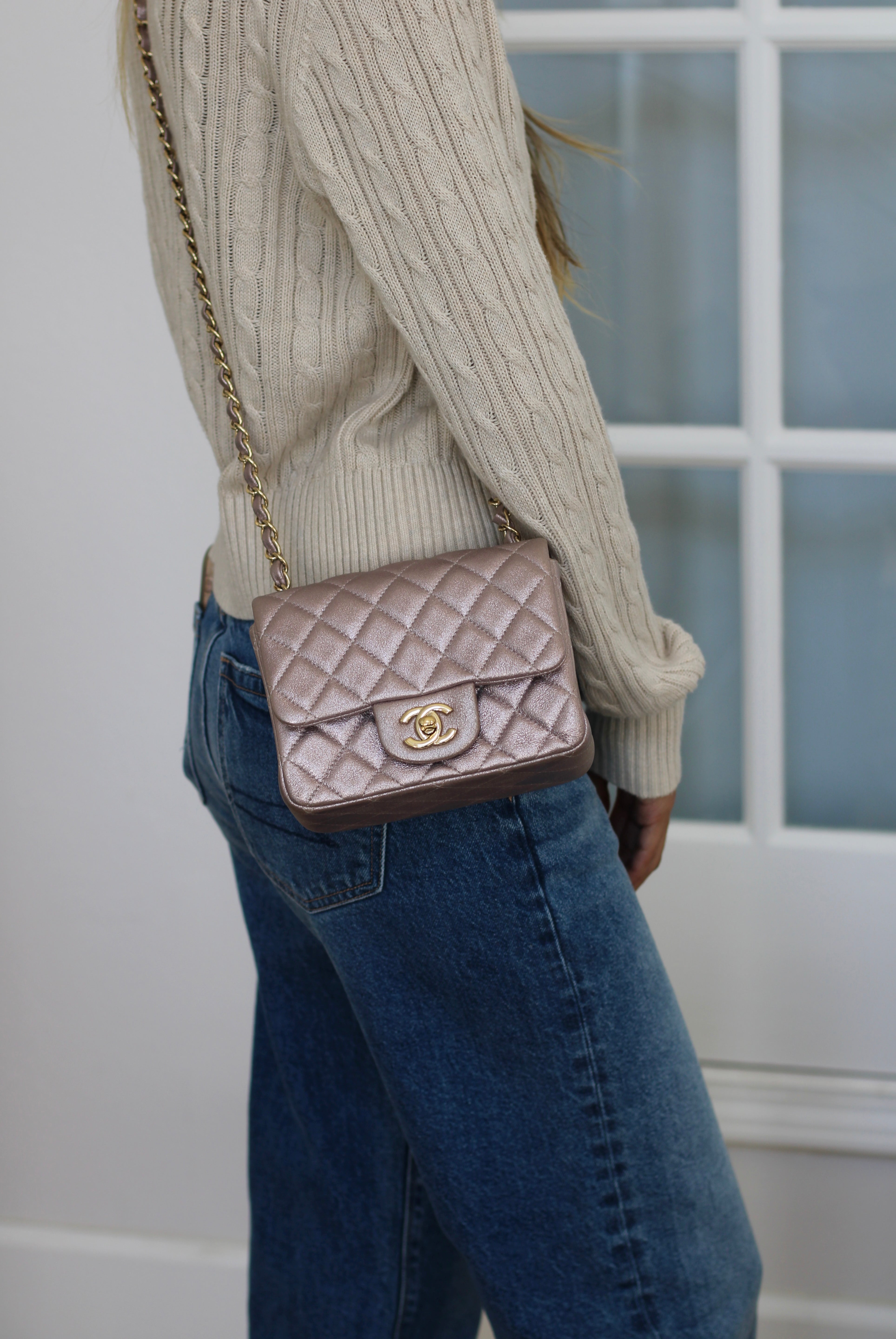Chanel 14B Metallic Pink Goatskin Mini Square with Light Gold Hardware