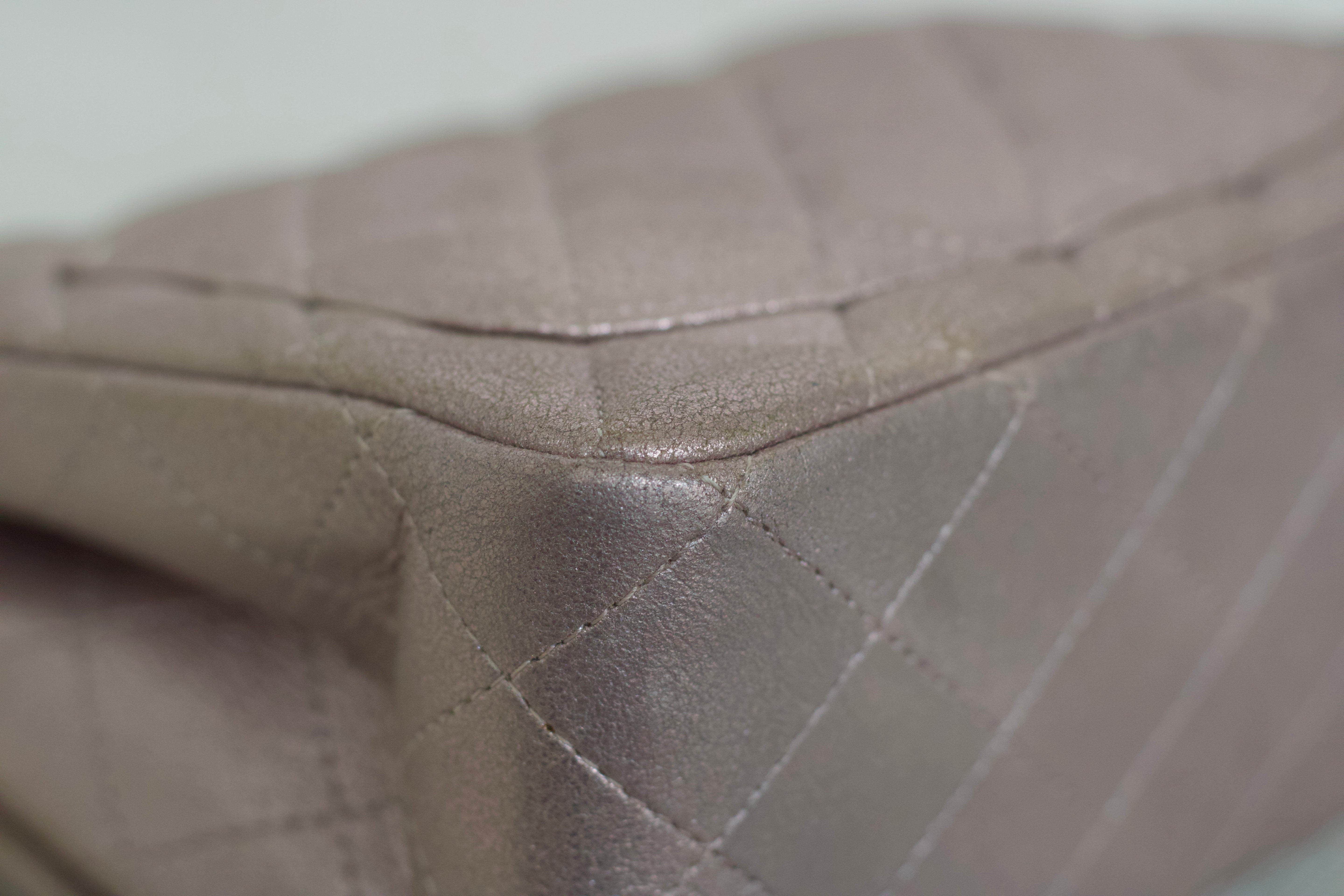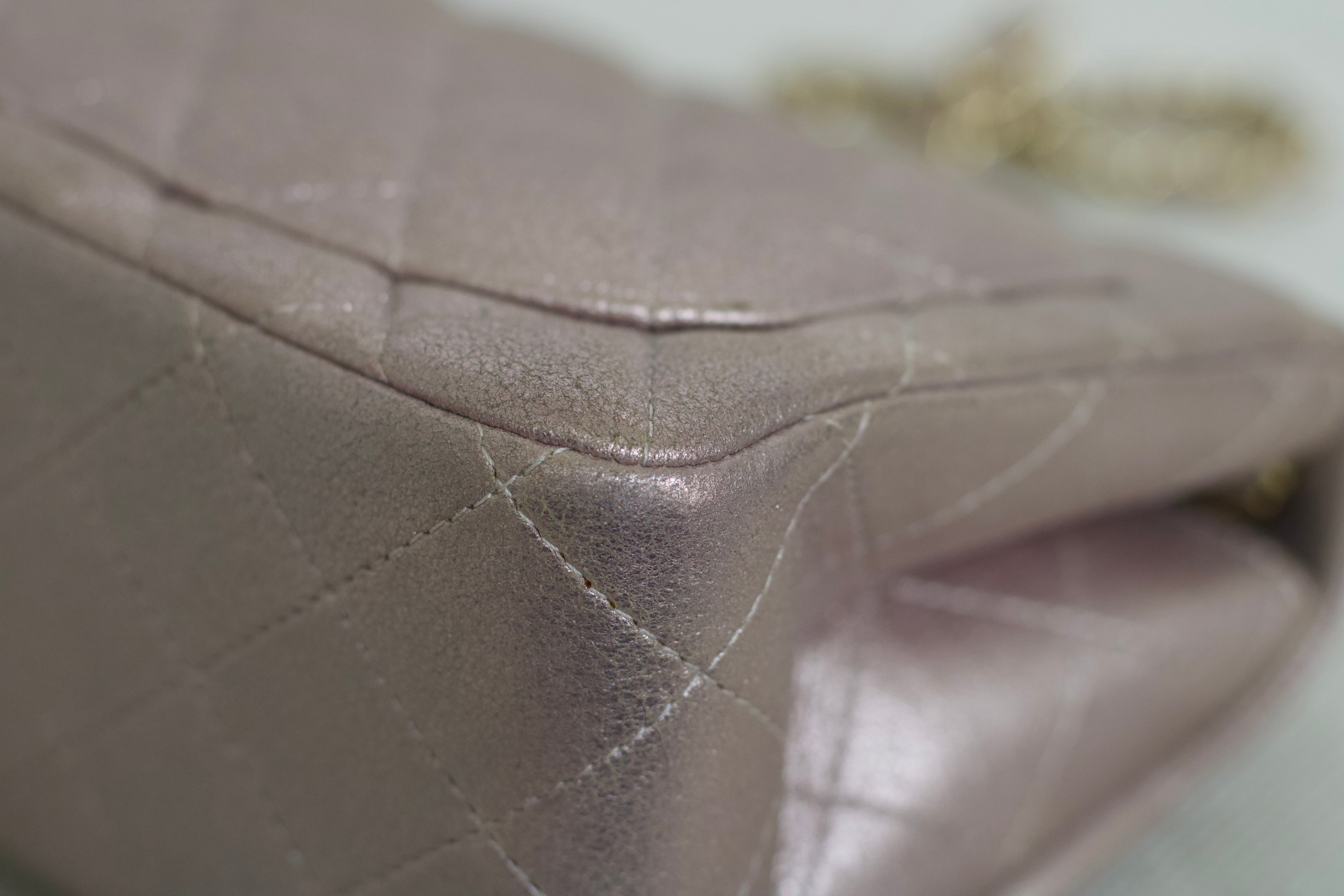 Excellent Condition. Gorgeous metallic pink goatskin adorned with brilliant light gold hardware with fine hairline scratches. Excellent structure and some minor wear/darkening on corners as pictured.