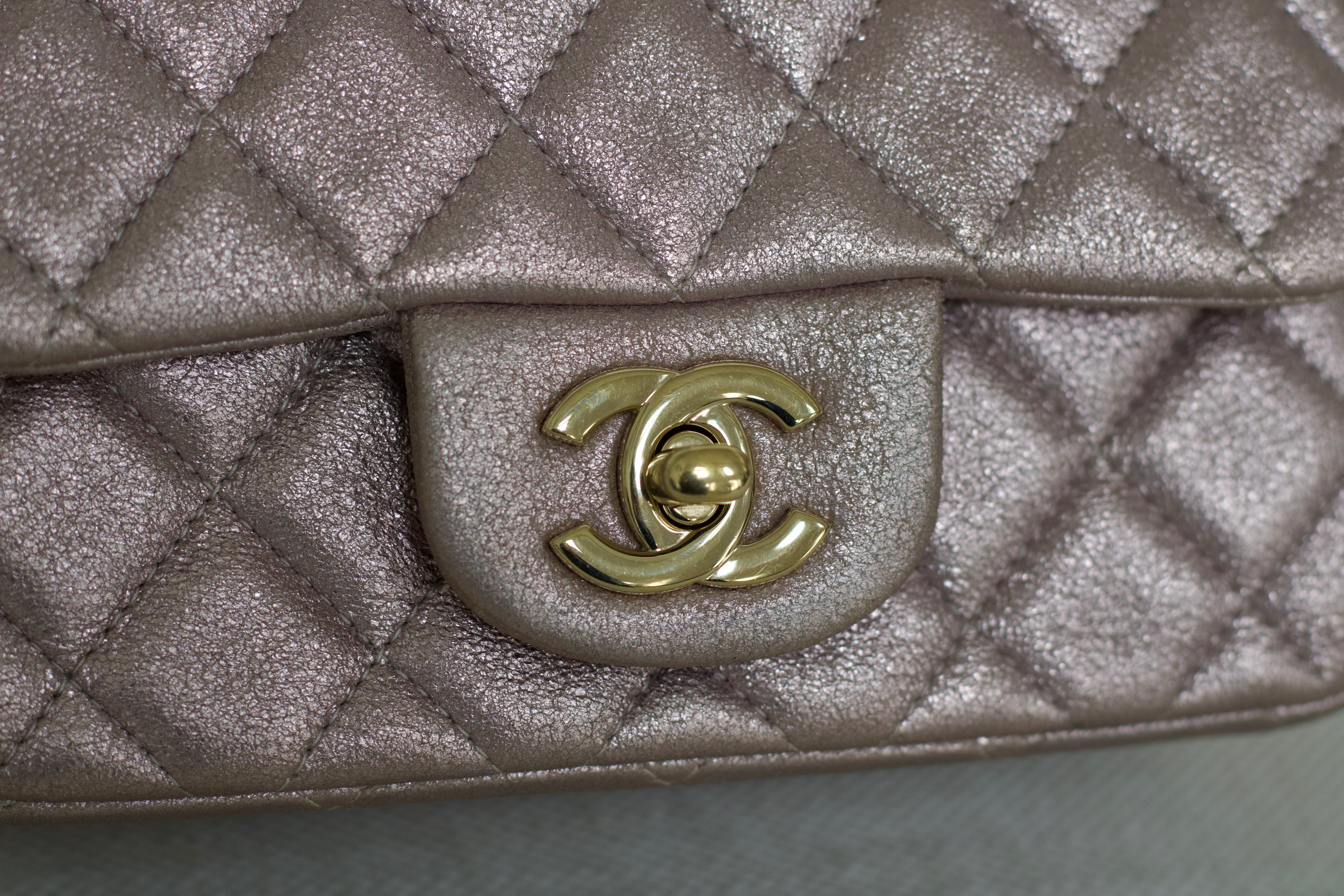 - Light gold-tone hardware with iconic CC turn-lock closure