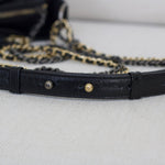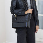 - Adjustable leather-threaded chain strap allows shoulder or crossbody wear