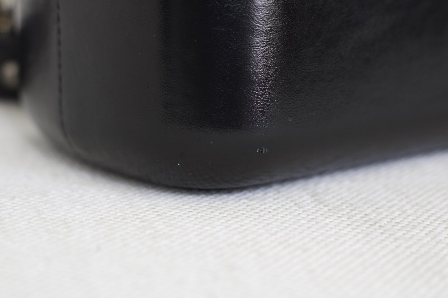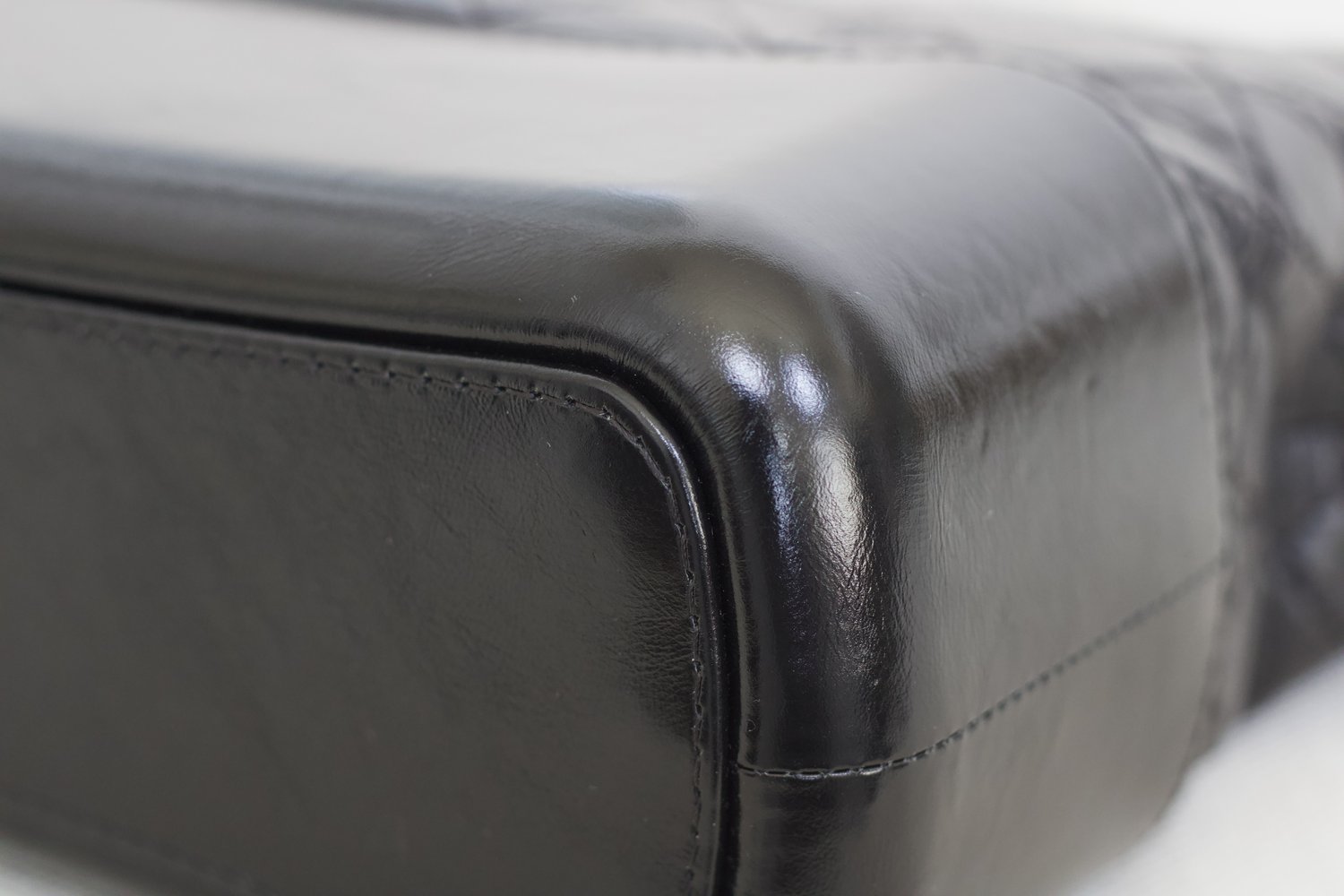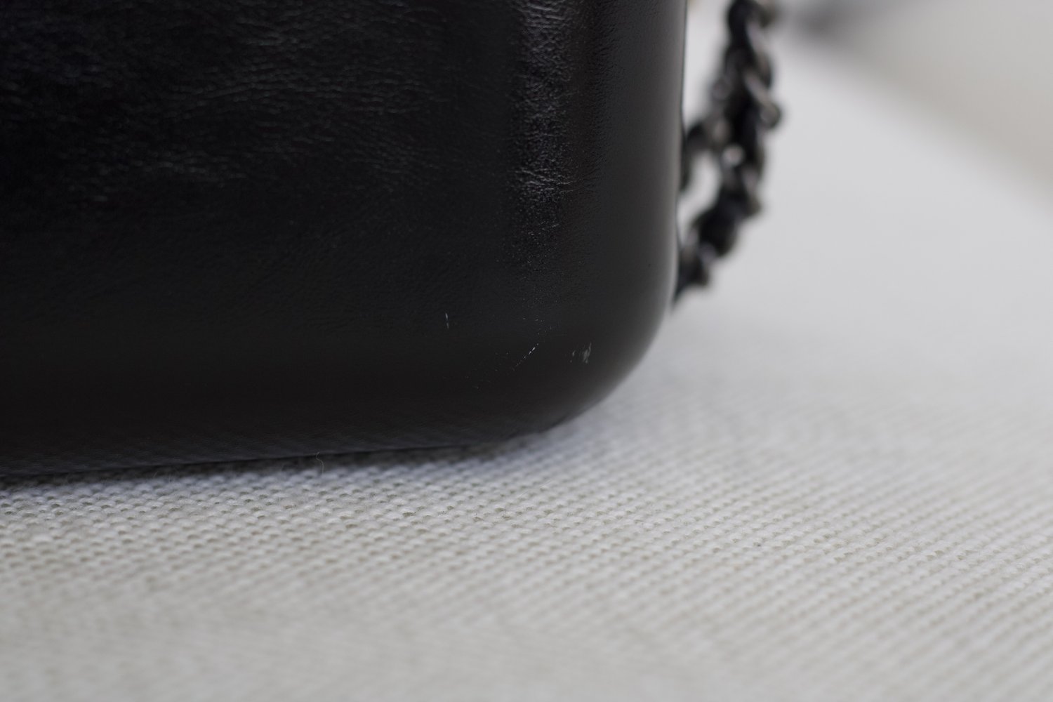 Great Condition. Buttery lambskin leather and gorgeous mixed-metal hardware with light hairline scratches. Some creases throughout as pictured and some small scuffs along the base as pictured.
