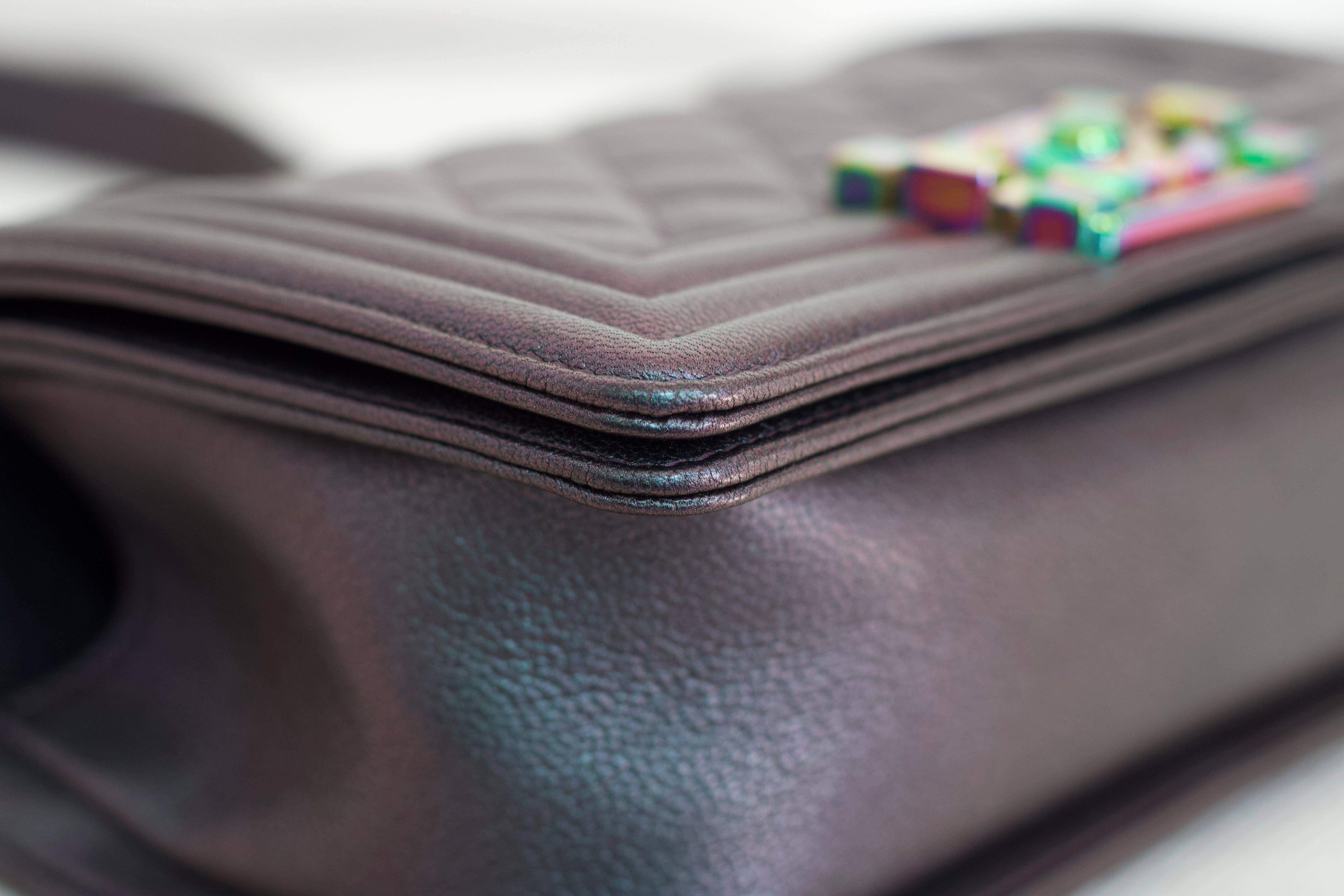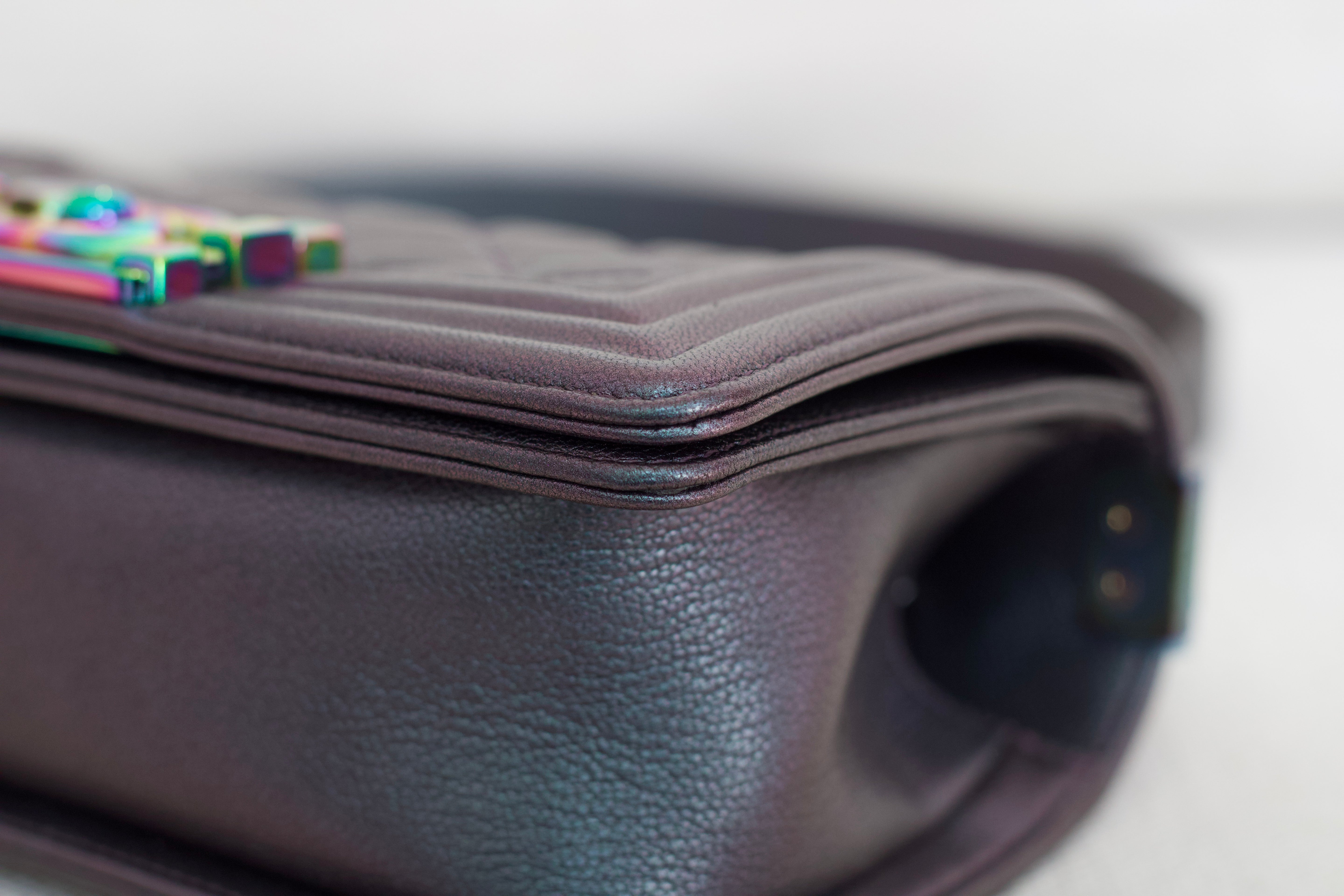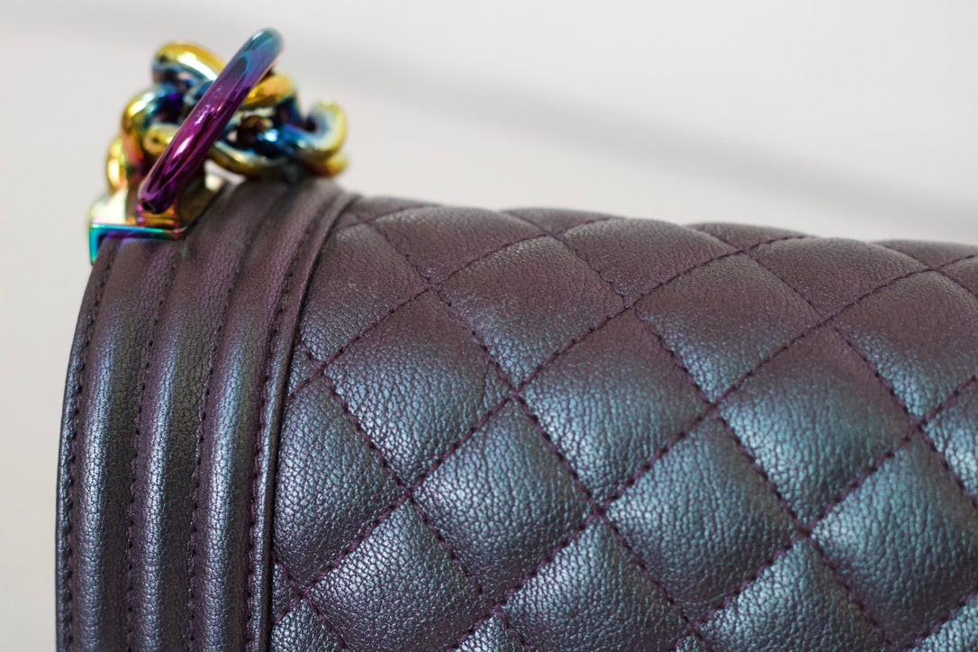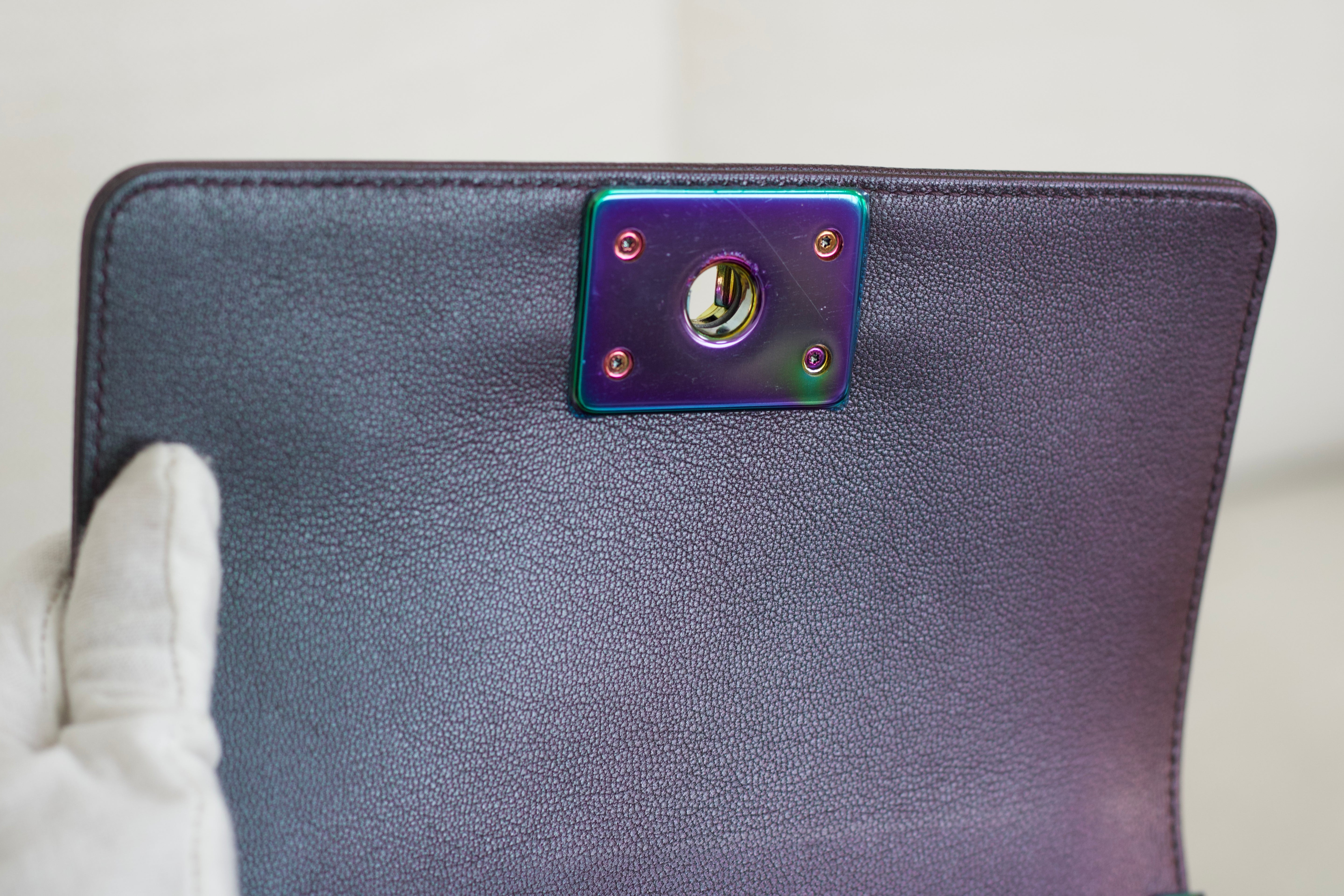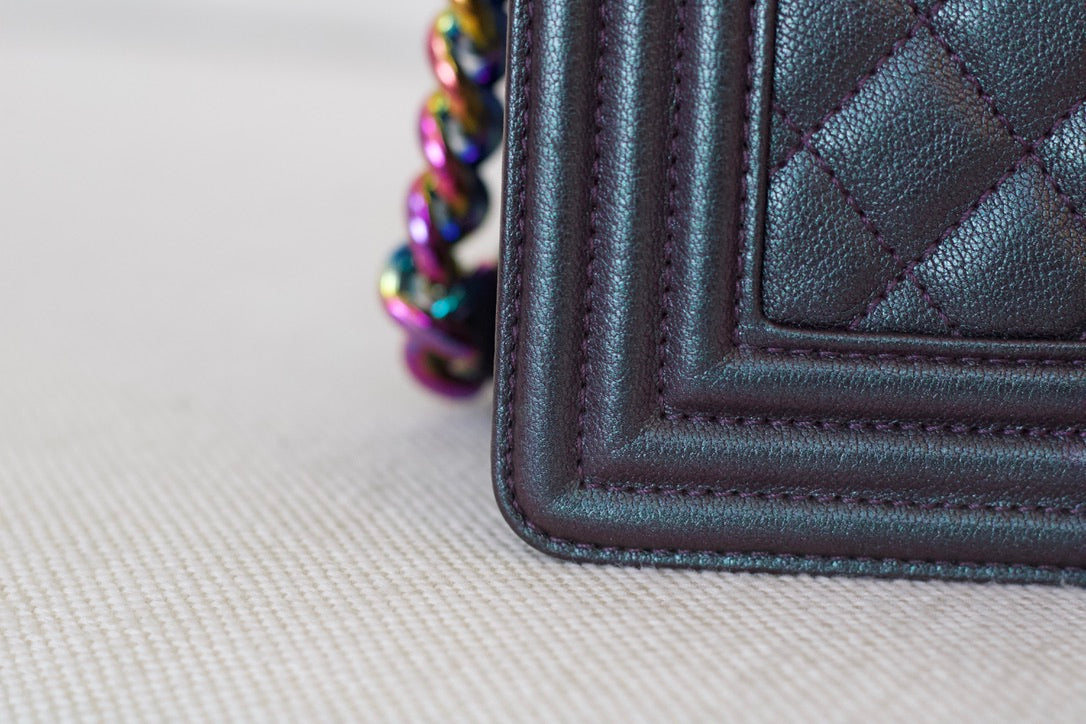 Chanel Iridescent Purple Goatskin Small Boy with Iridescent Rainbow Hardware