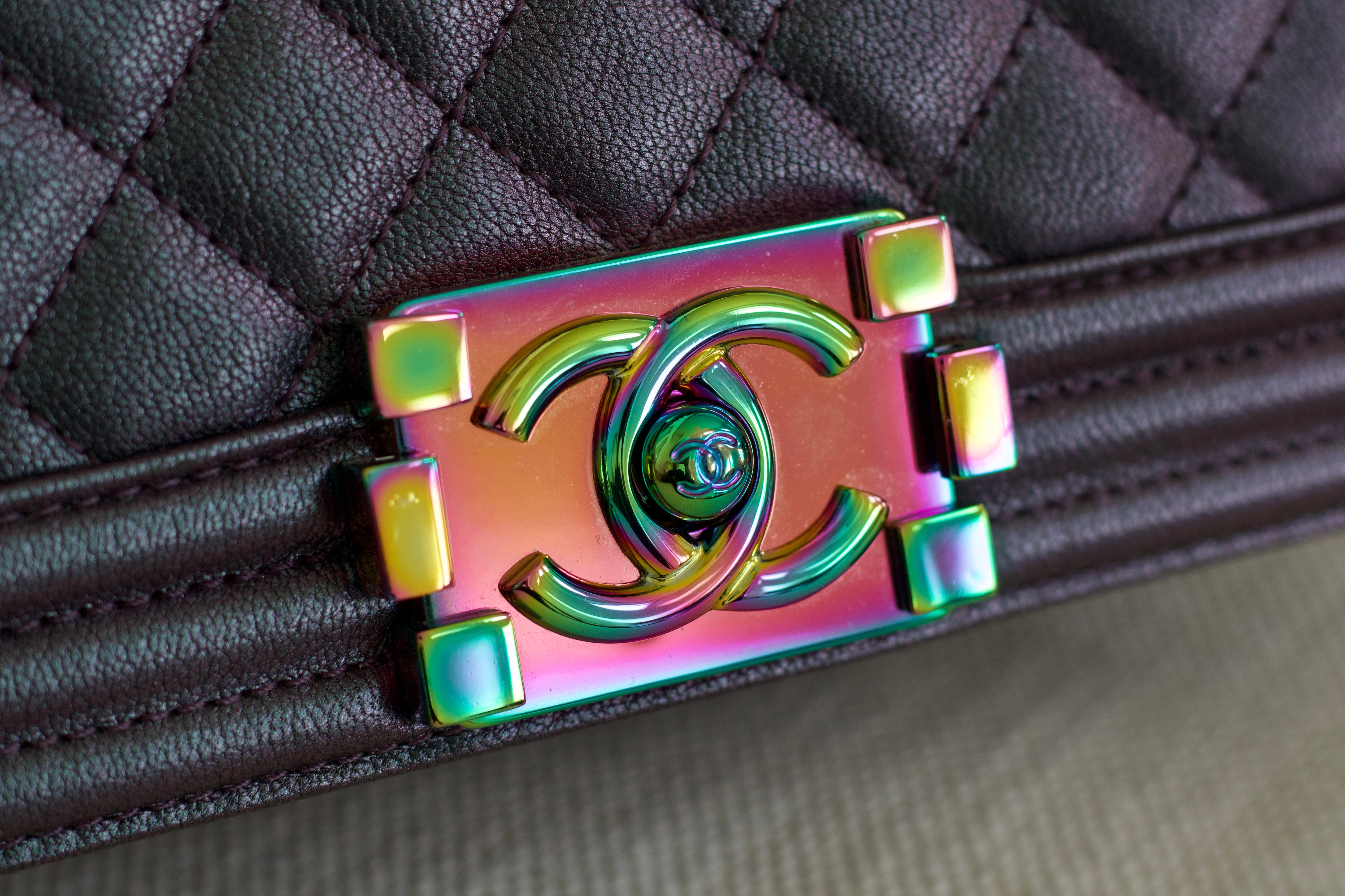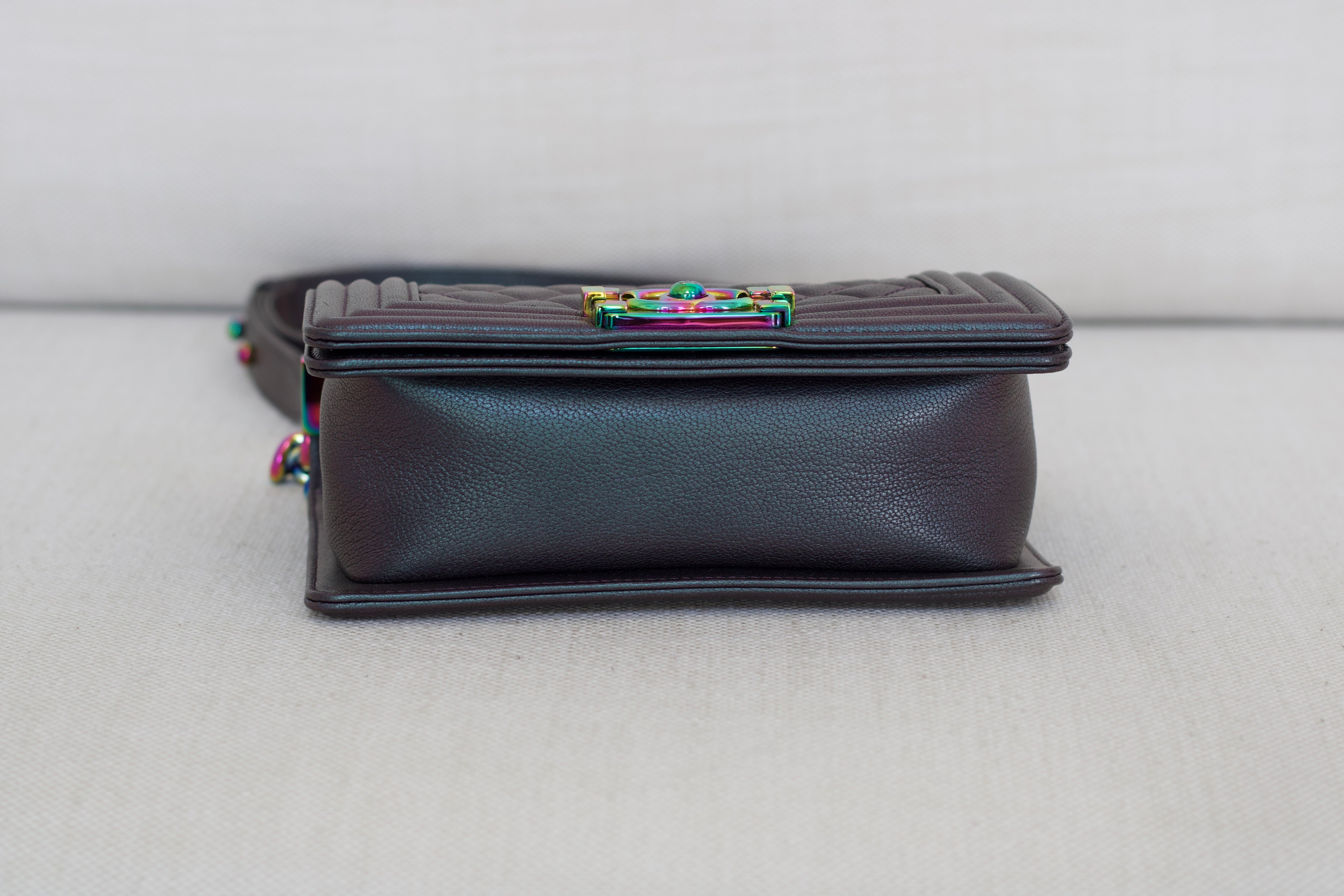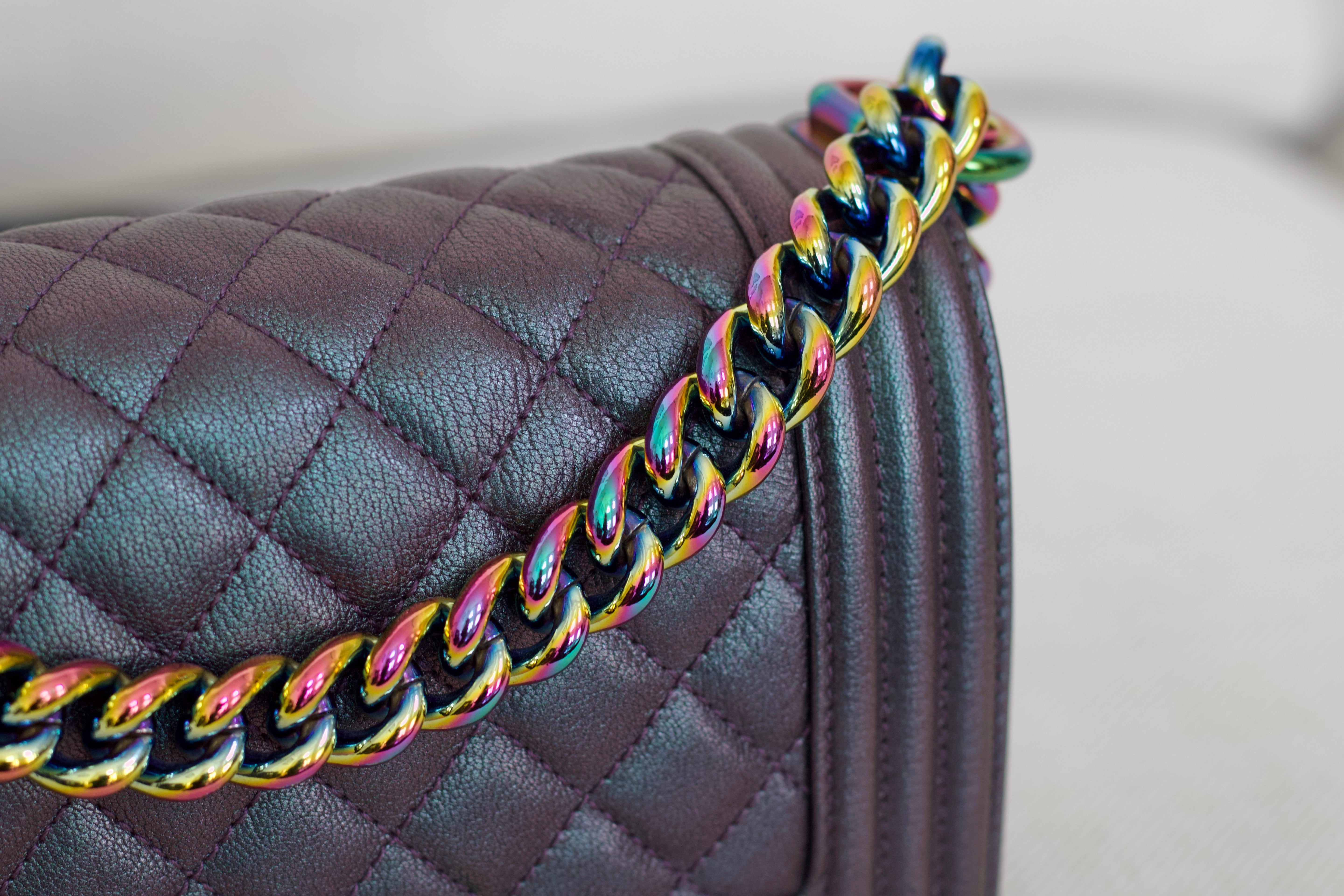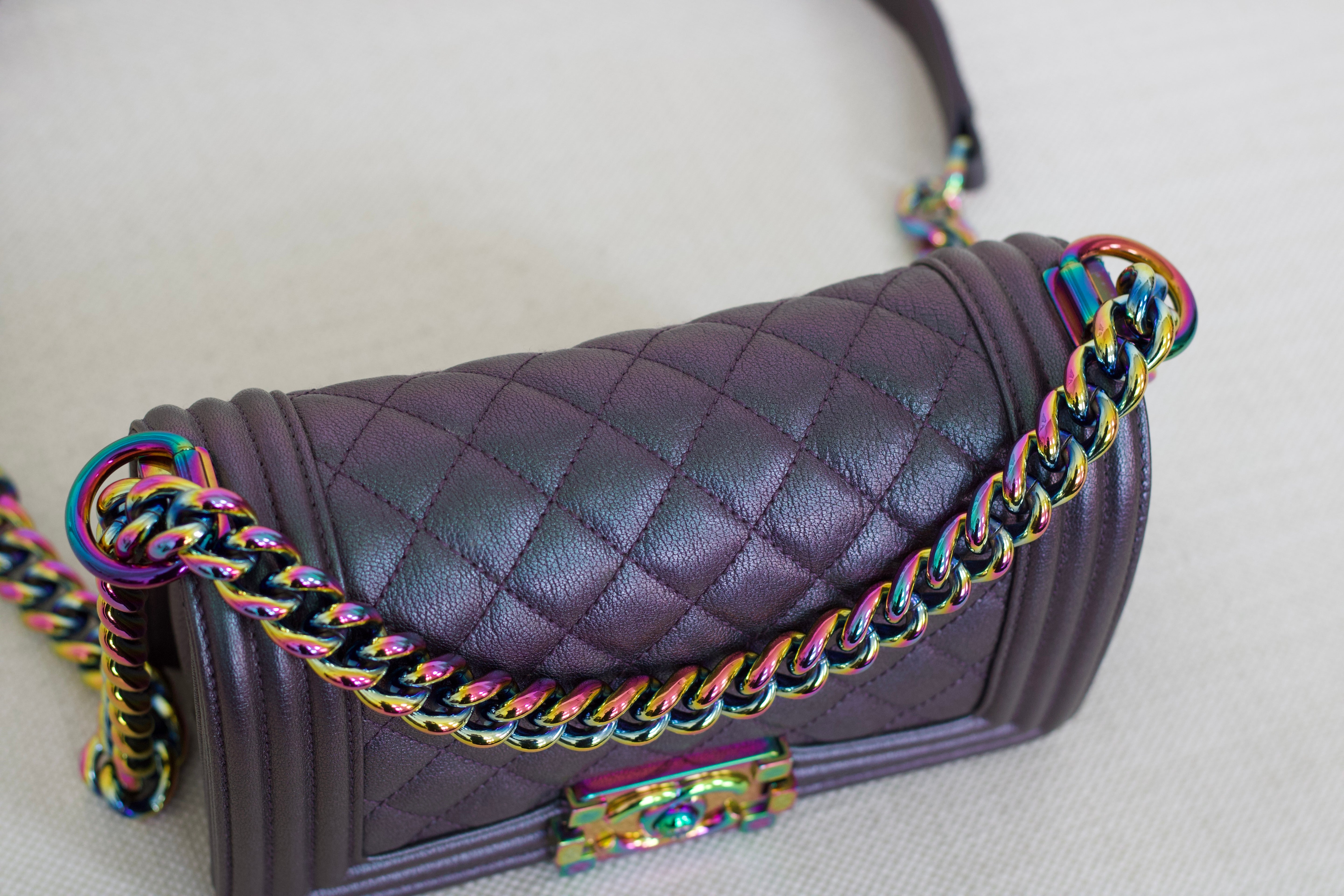 Chanel Iridescent Purple Goatskin Small Boy with Iridescent Rainbow Hardware