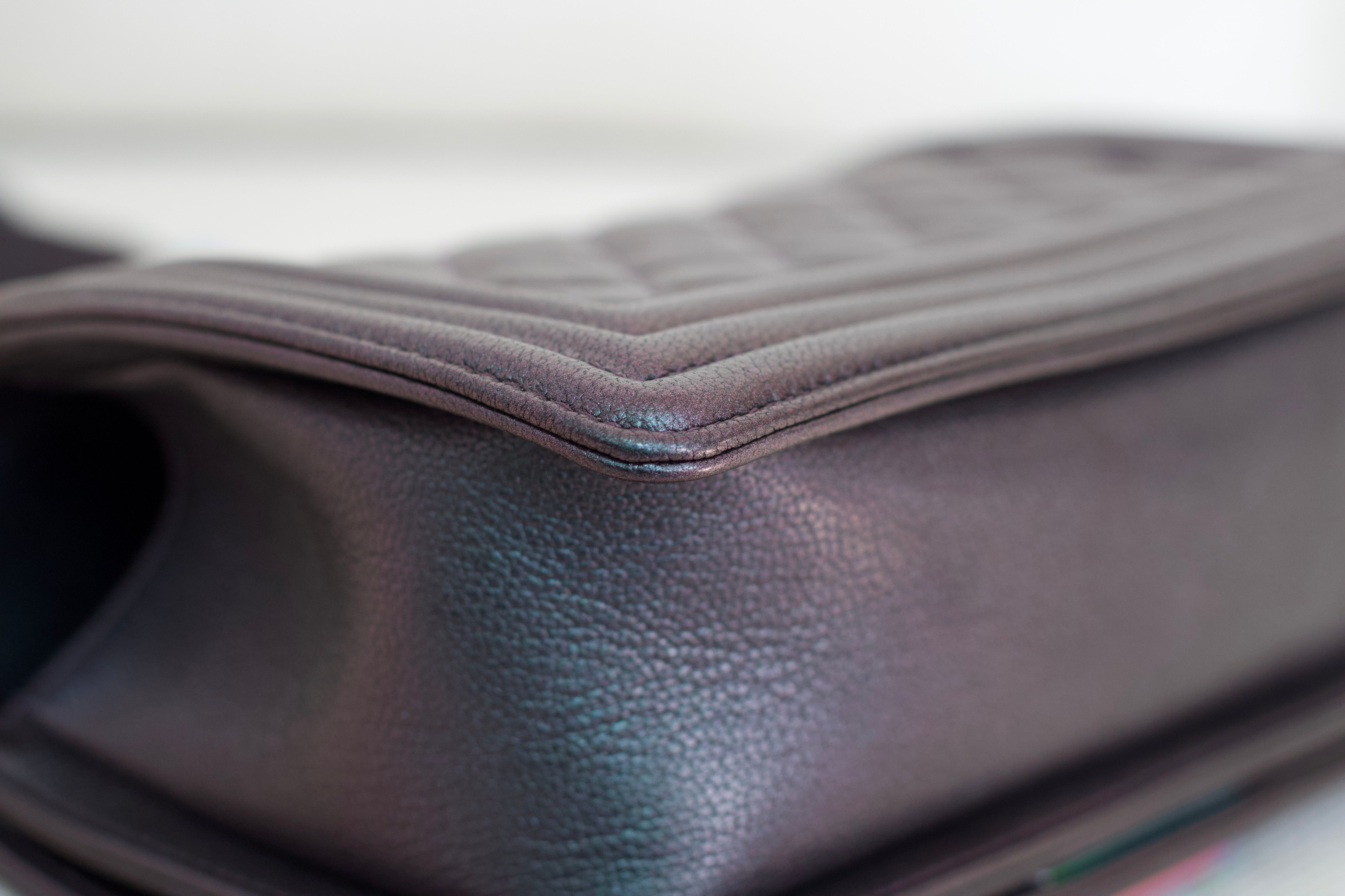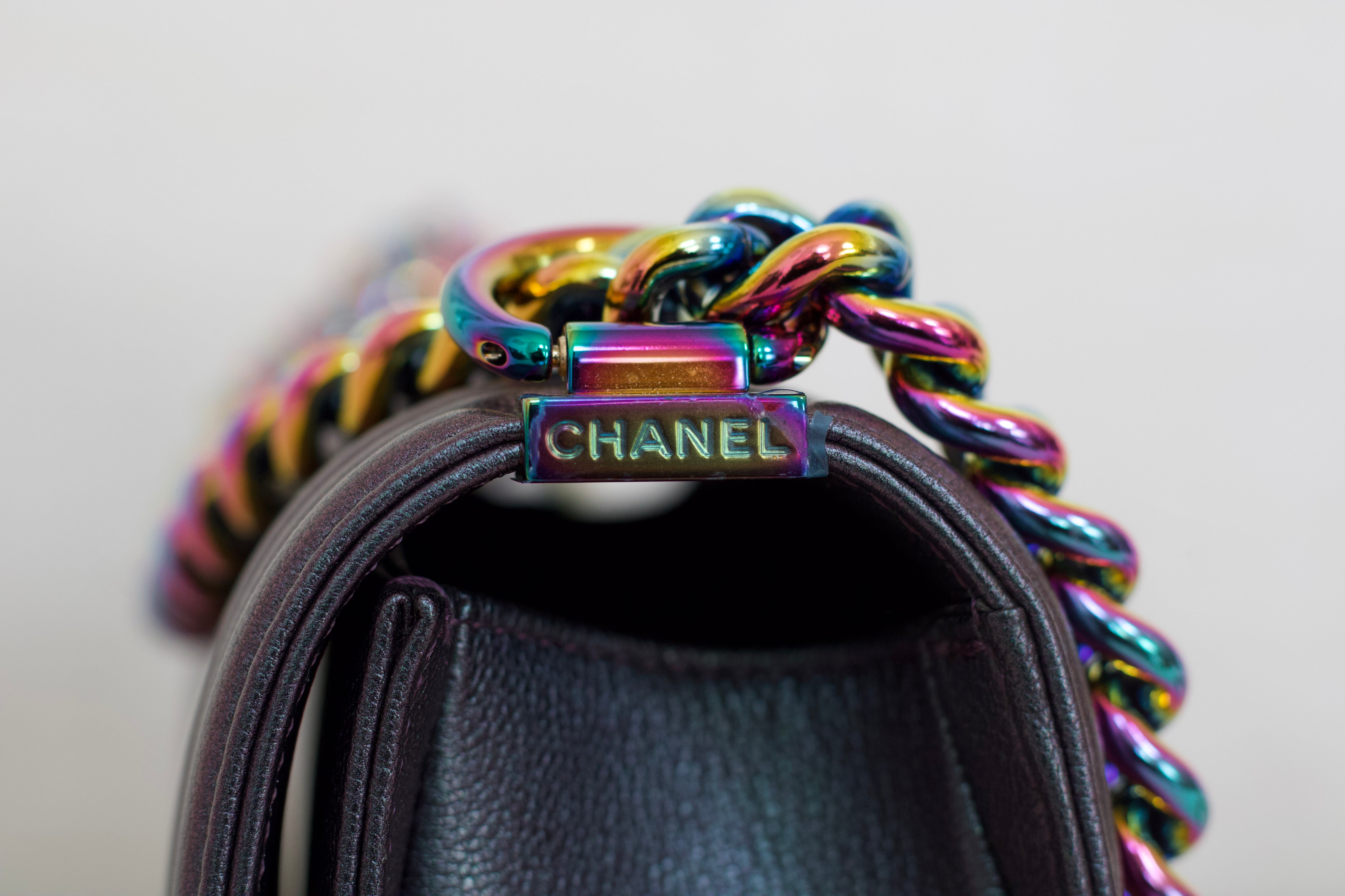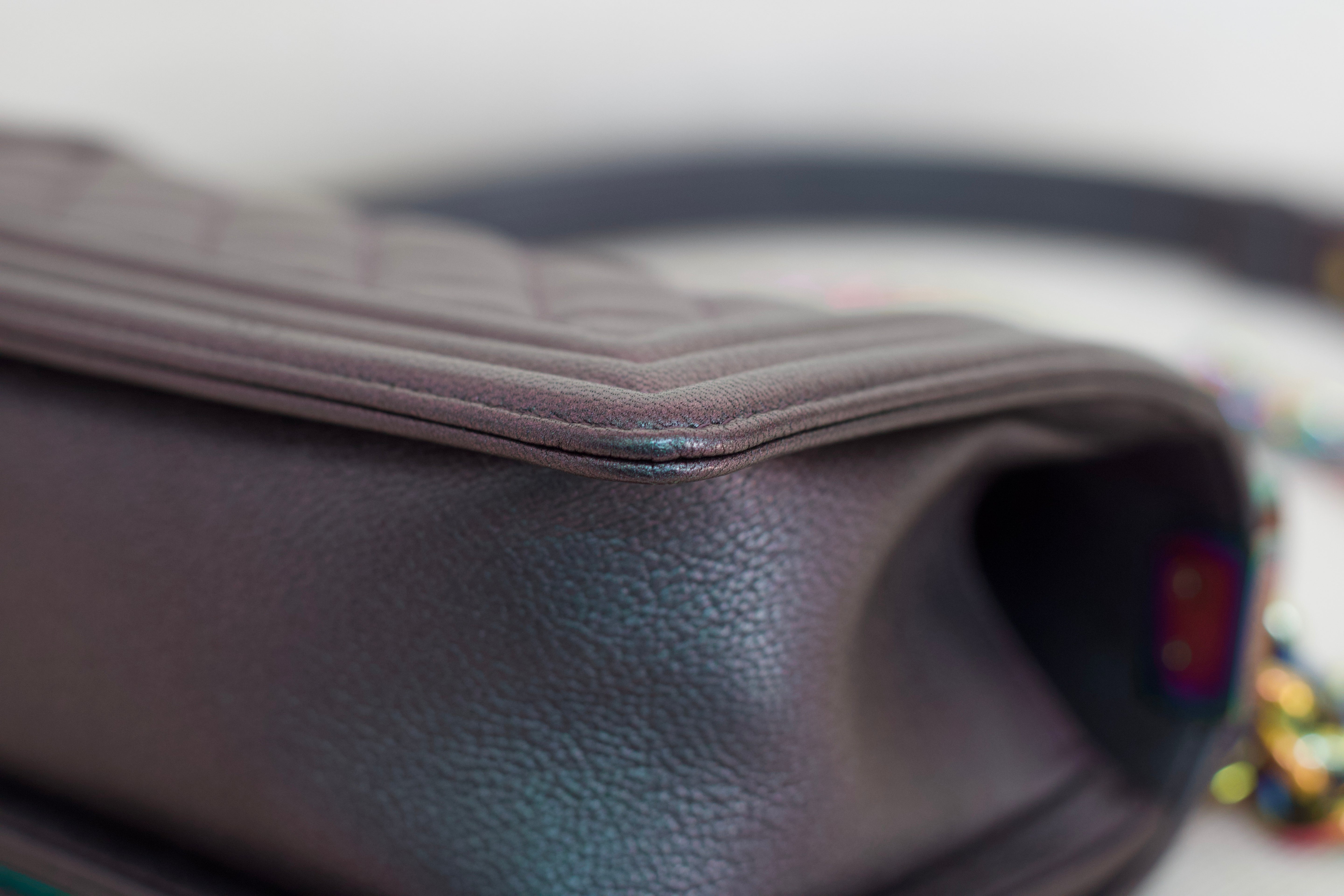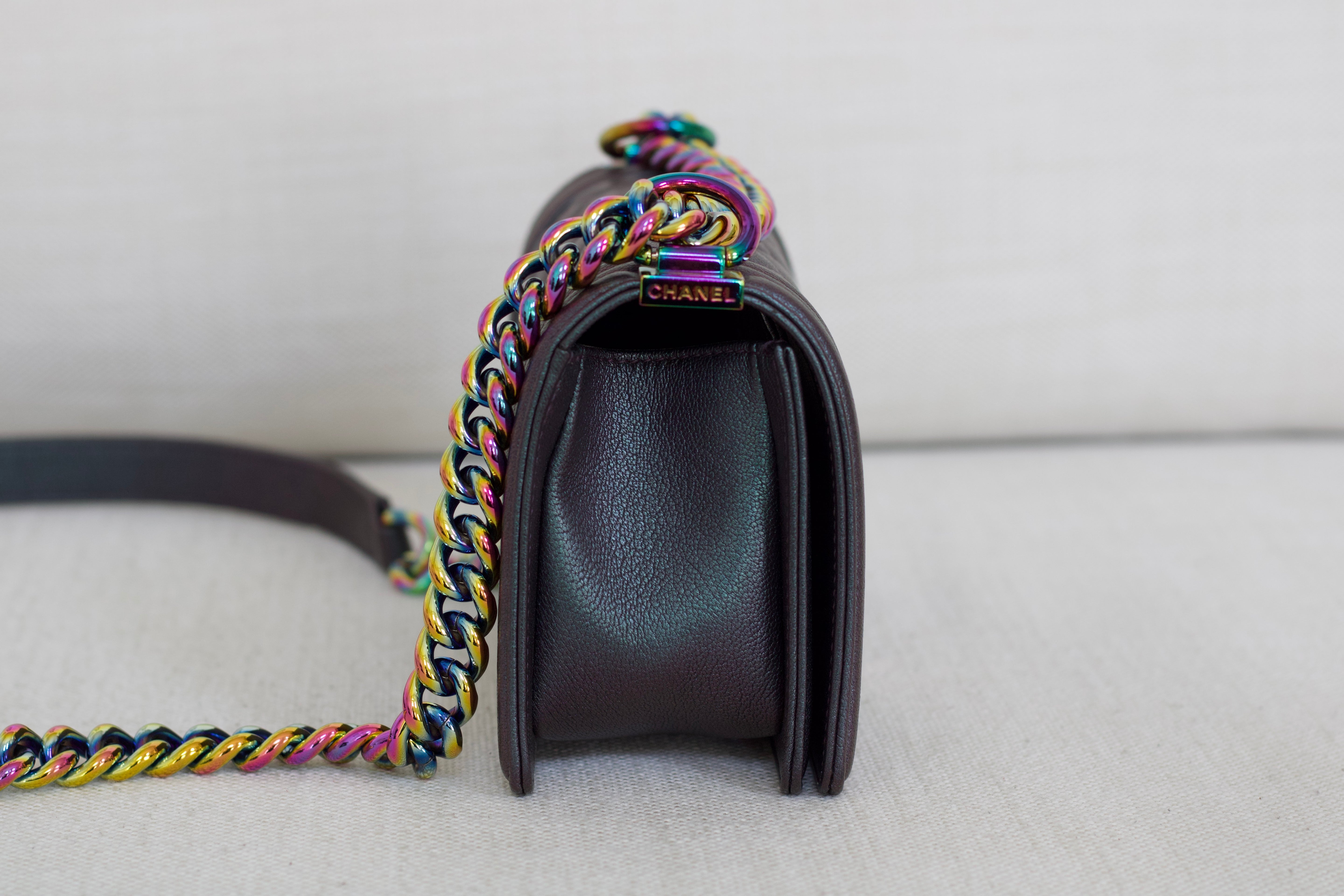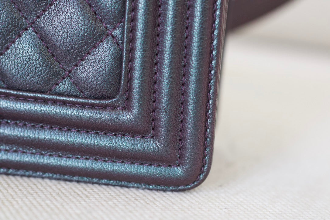 Chanel Iridescent Purple Goatskin Small Boy with Iridescent Rainbow Hardware