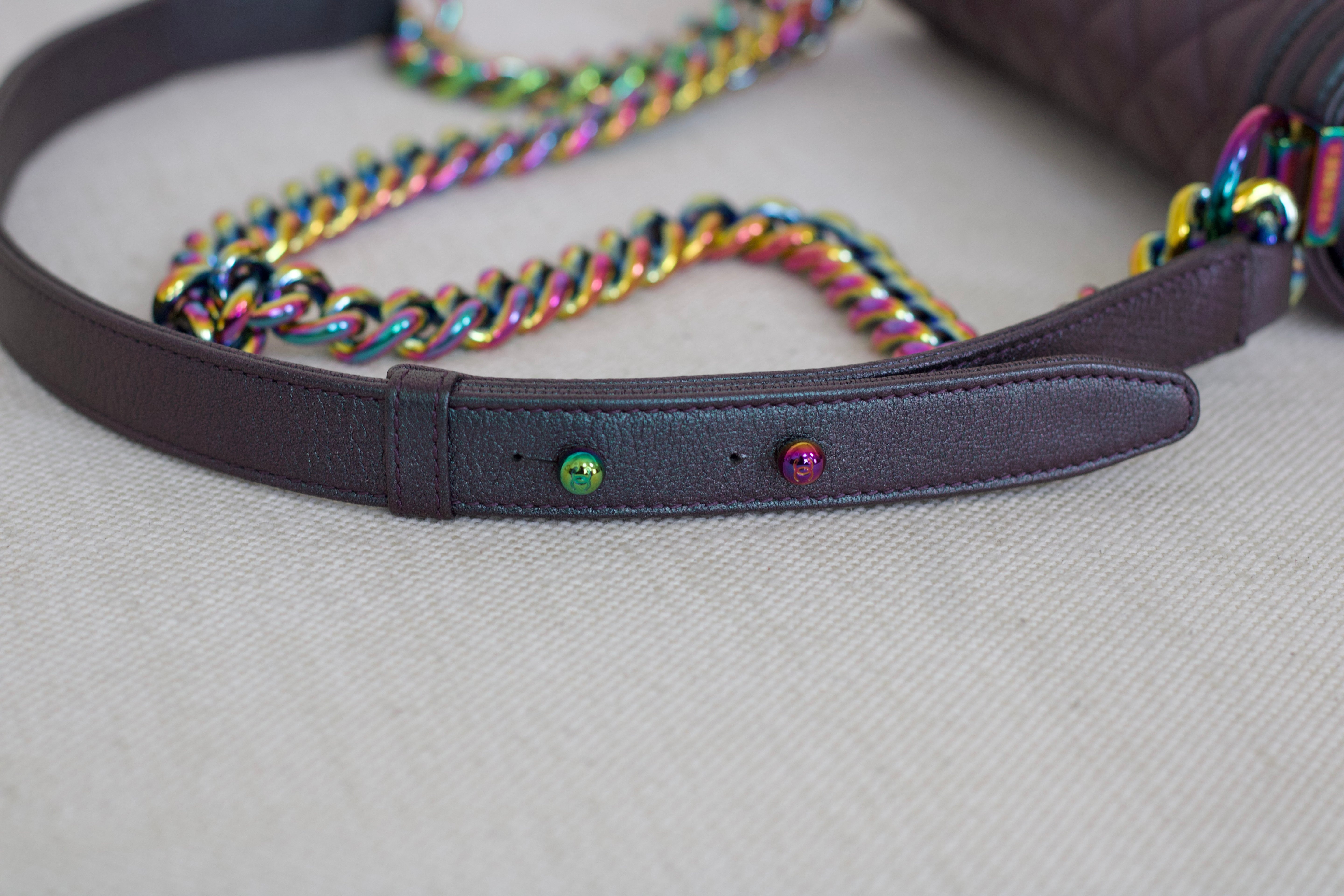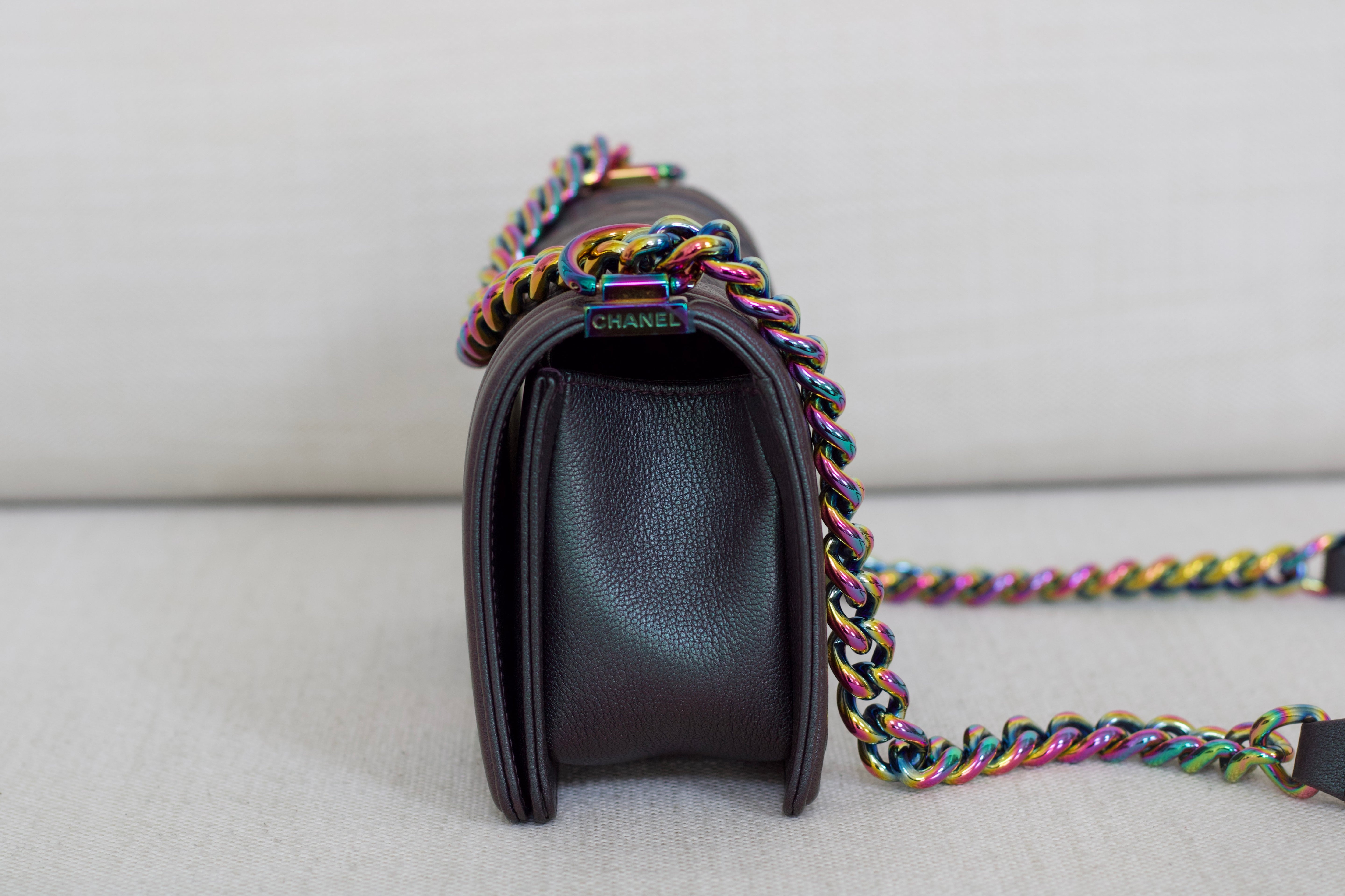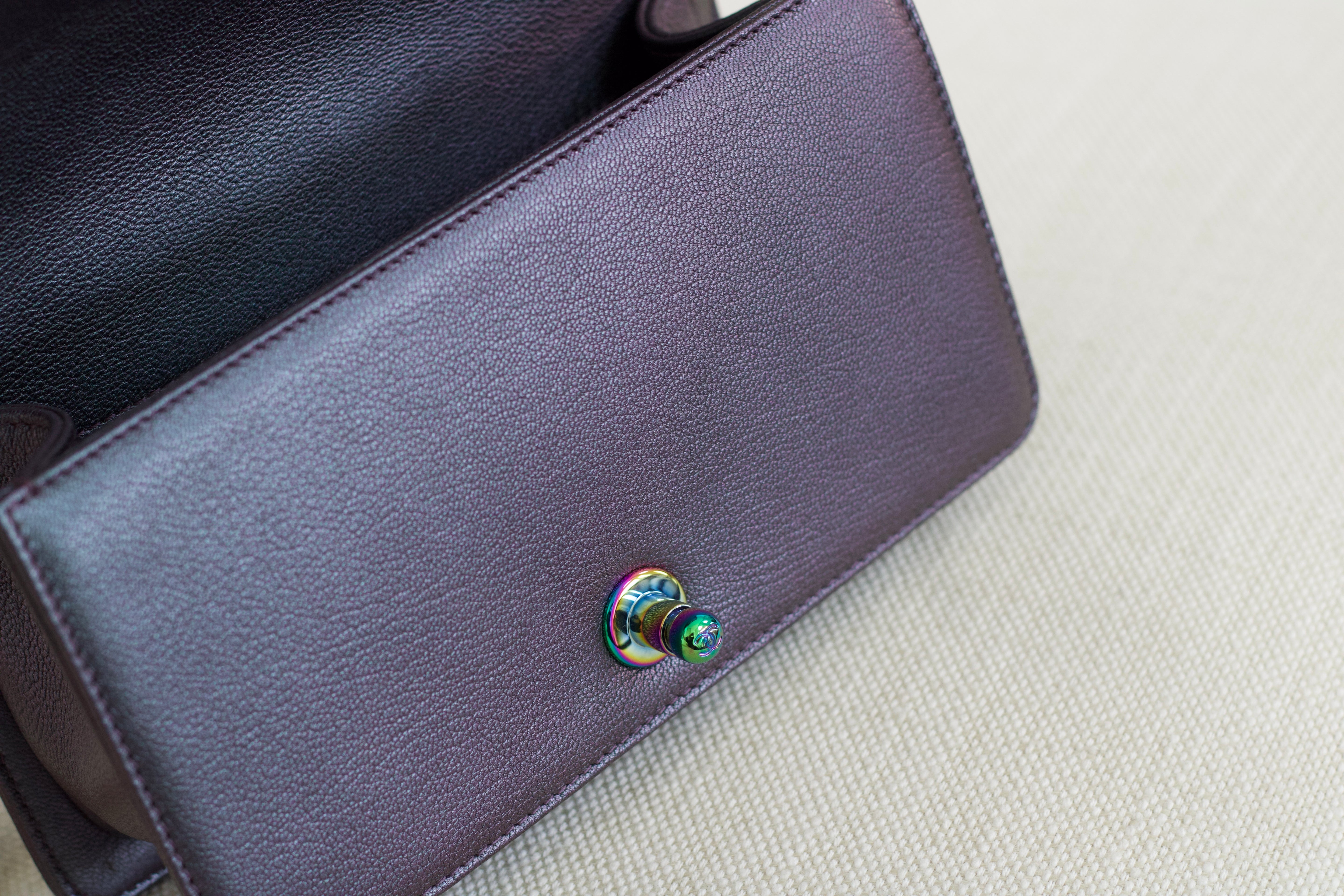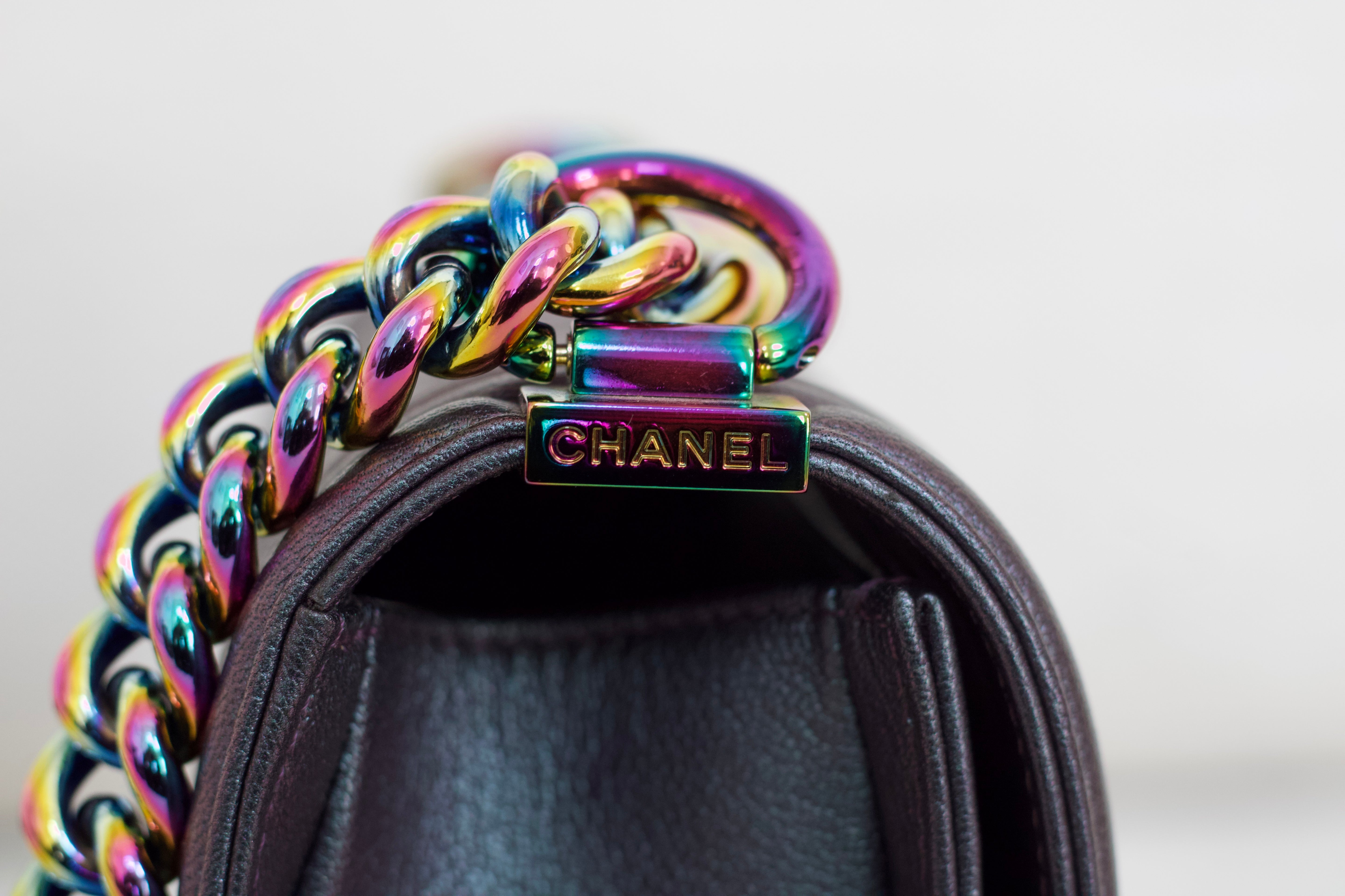 Chanel Iridescent Purple Goatskin Small Boy with Iridescent Rainbow Hardware