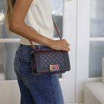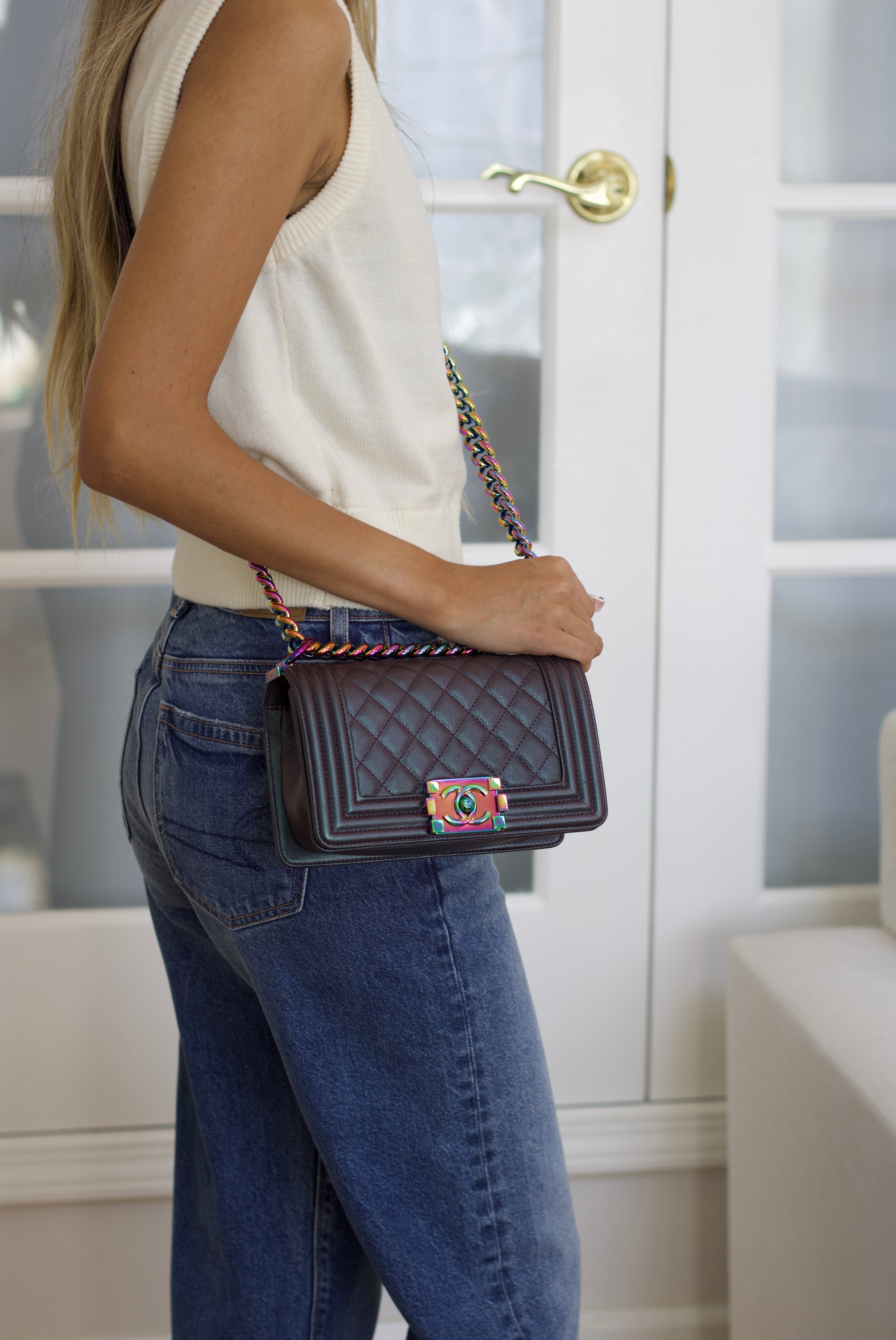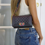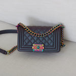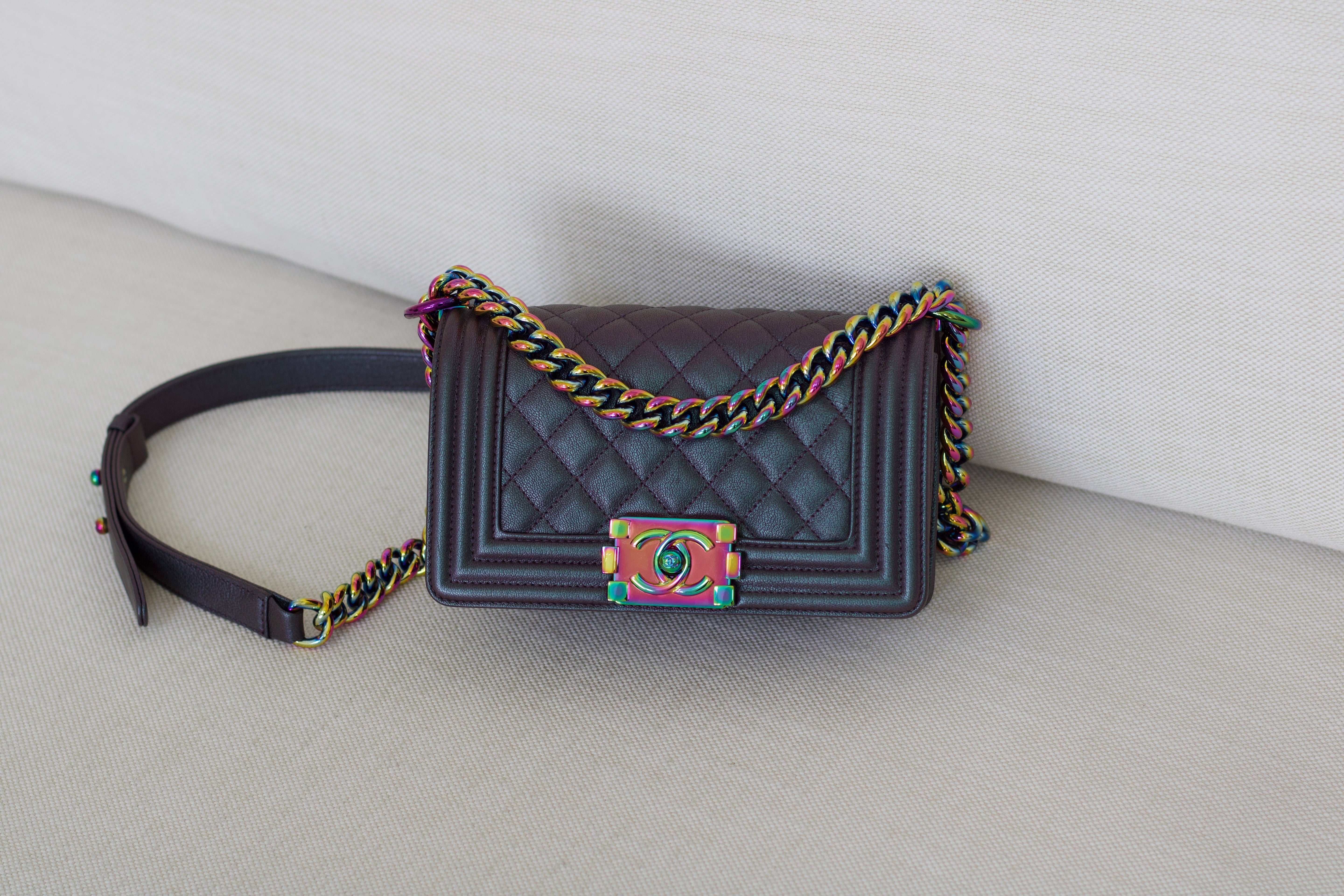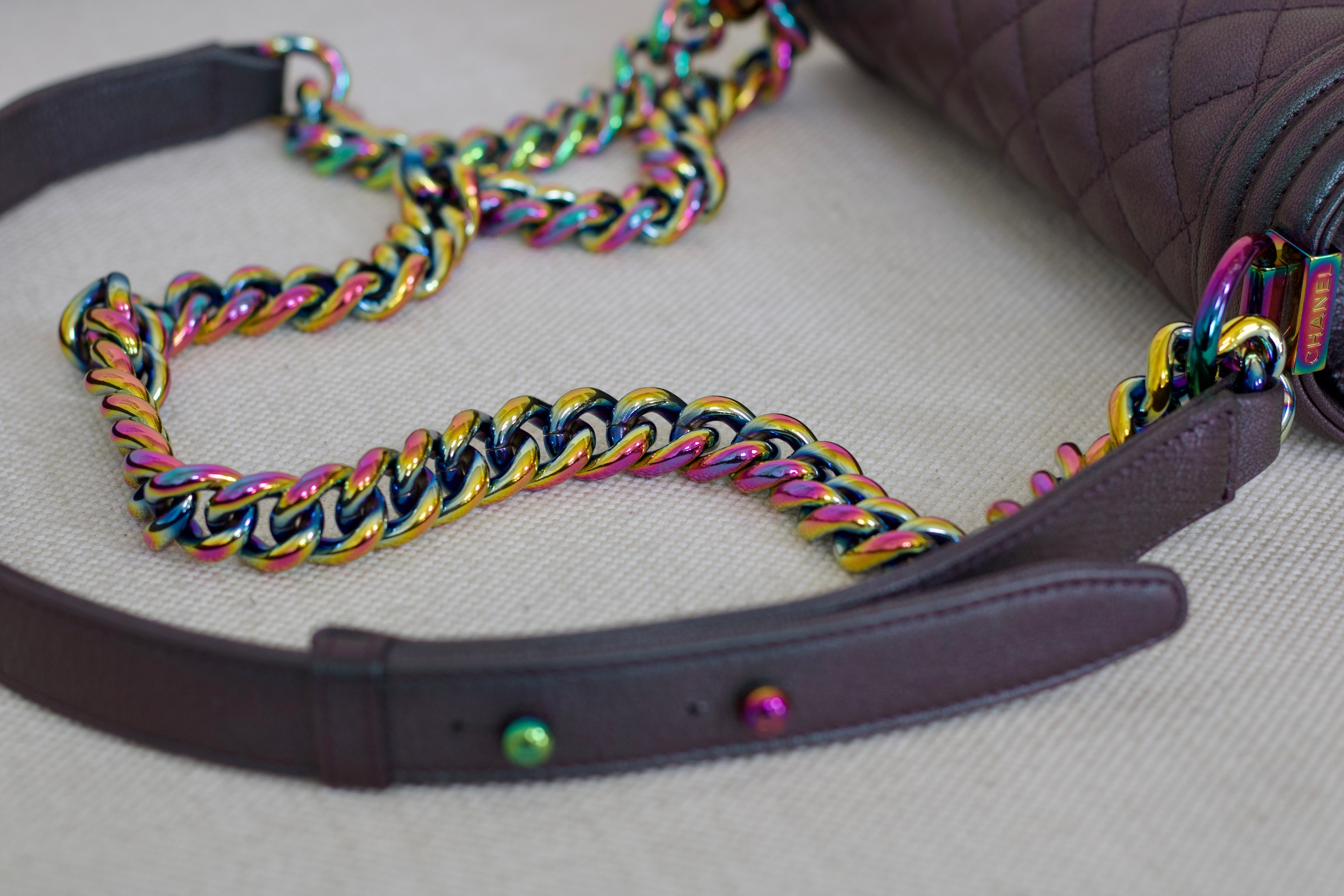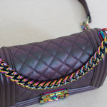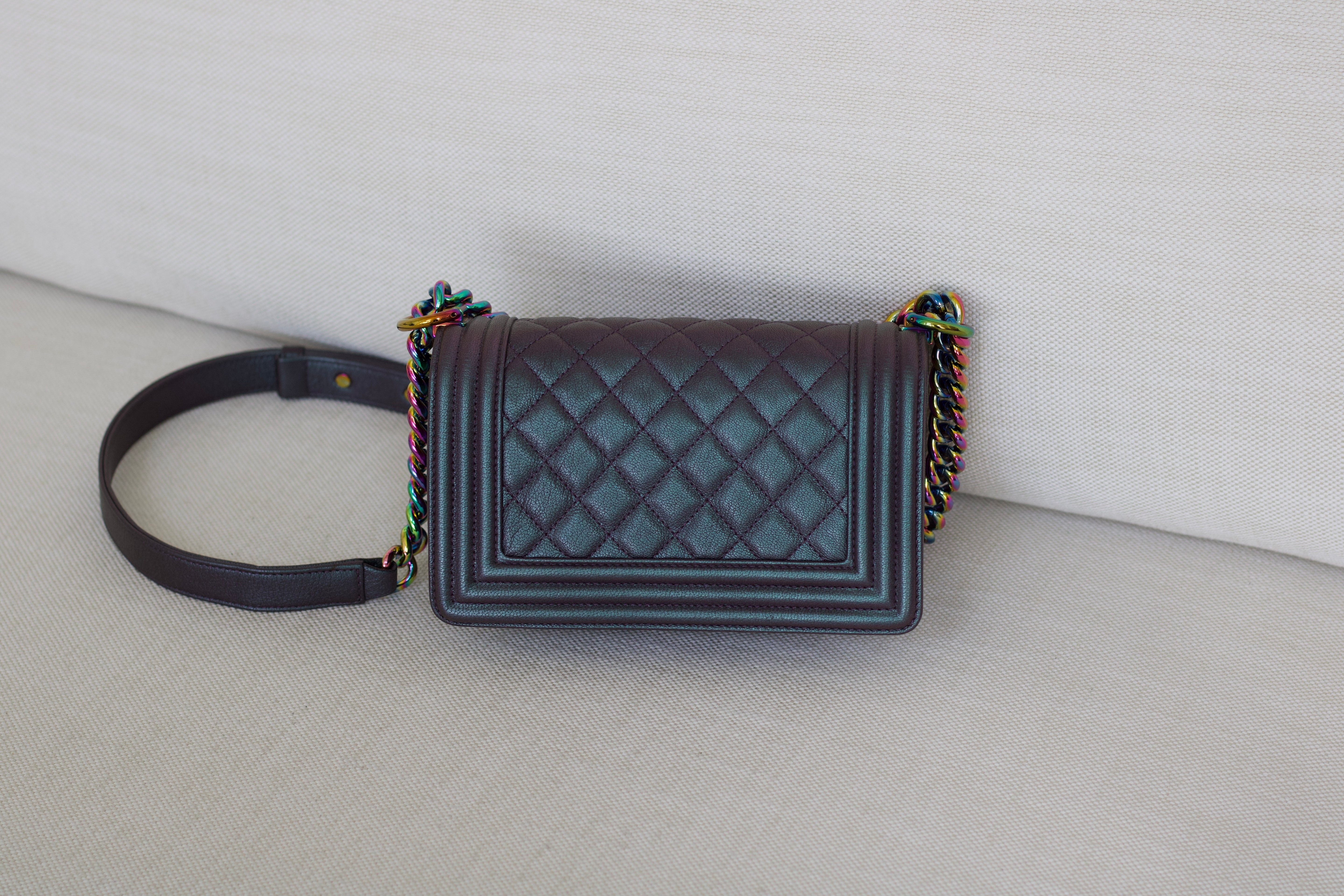 Chanel Iridescent Purple Goatskin Small Boy with Iridescent Rainbow Hardware
