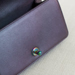 Excellent condition. Beautiful iridescent purple shade, complemented by eye-catching iridescent rainbow hardware. Excellent structure and corners. Some faint marks/scuffs on the front (as pictured), not very noticeable and only visible upon close inspection.
