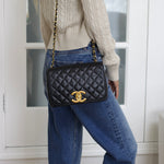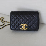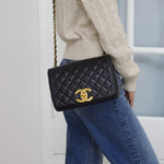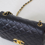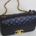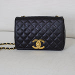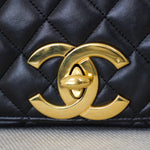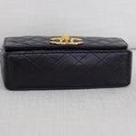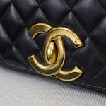 Vintage Chanel Black Lambskin Full Flap XL Logo with 24k Gold Hardware