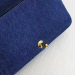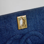 Great/Excellent Vintage Condition. Stunning denim material in a dark blue shade. Excellent structure and some darkening on corners. Some light fading on denim. Brilliant 24k gold hardware with scratches and some minor lightening on male part of turnlock.