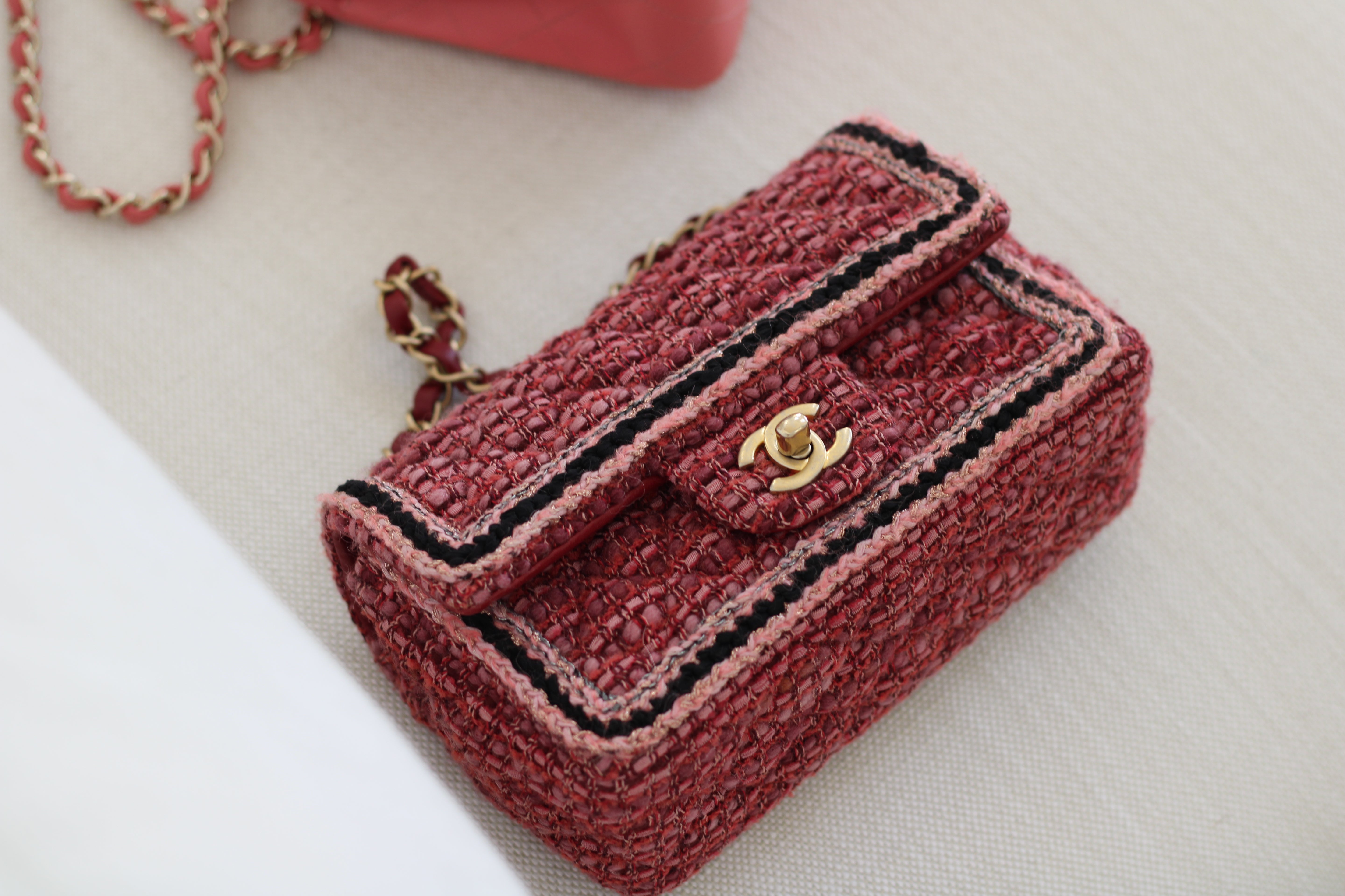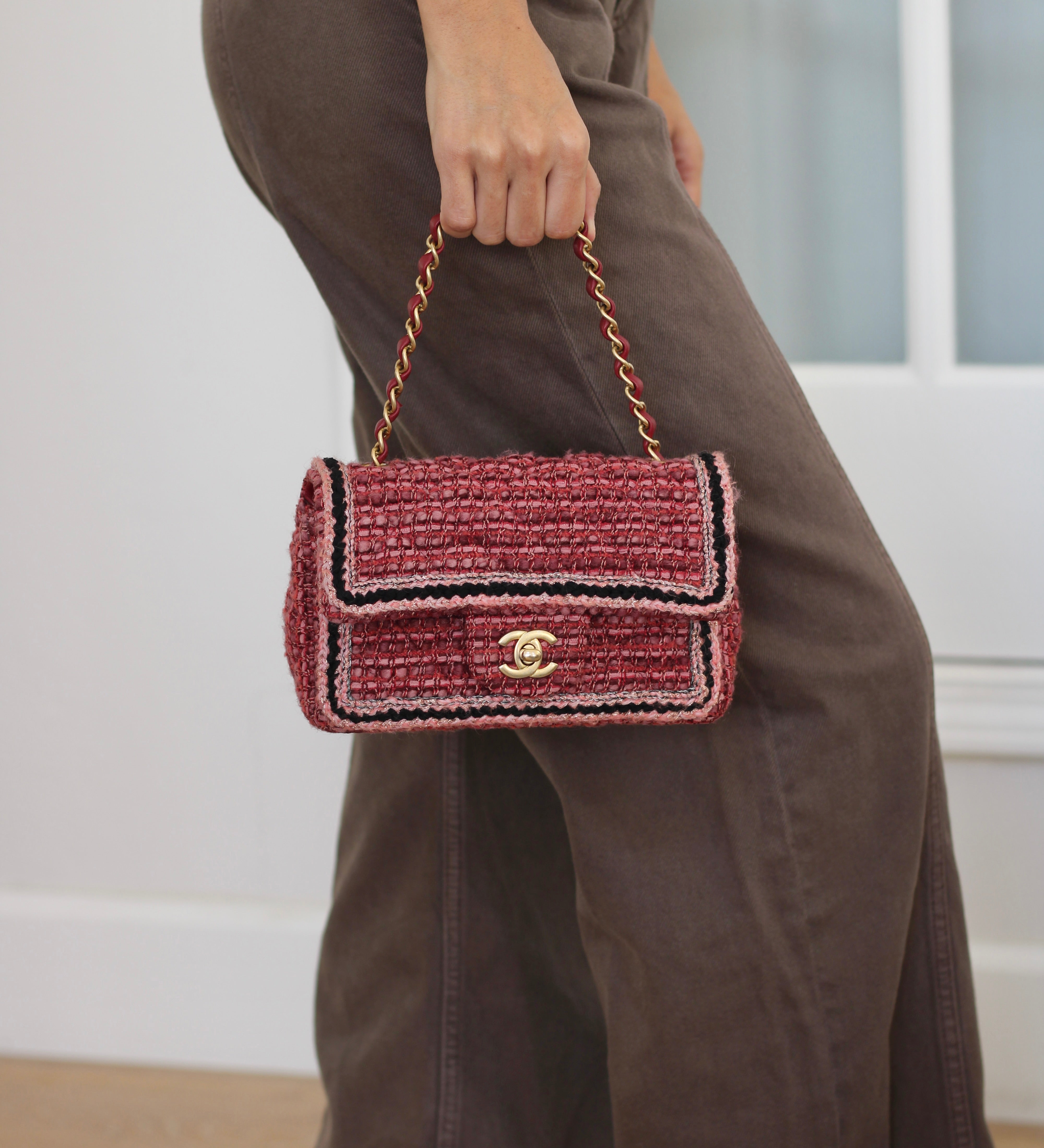 Chanel Braided Pink Tweed Mini Rectangle with Aged Gold Hardware