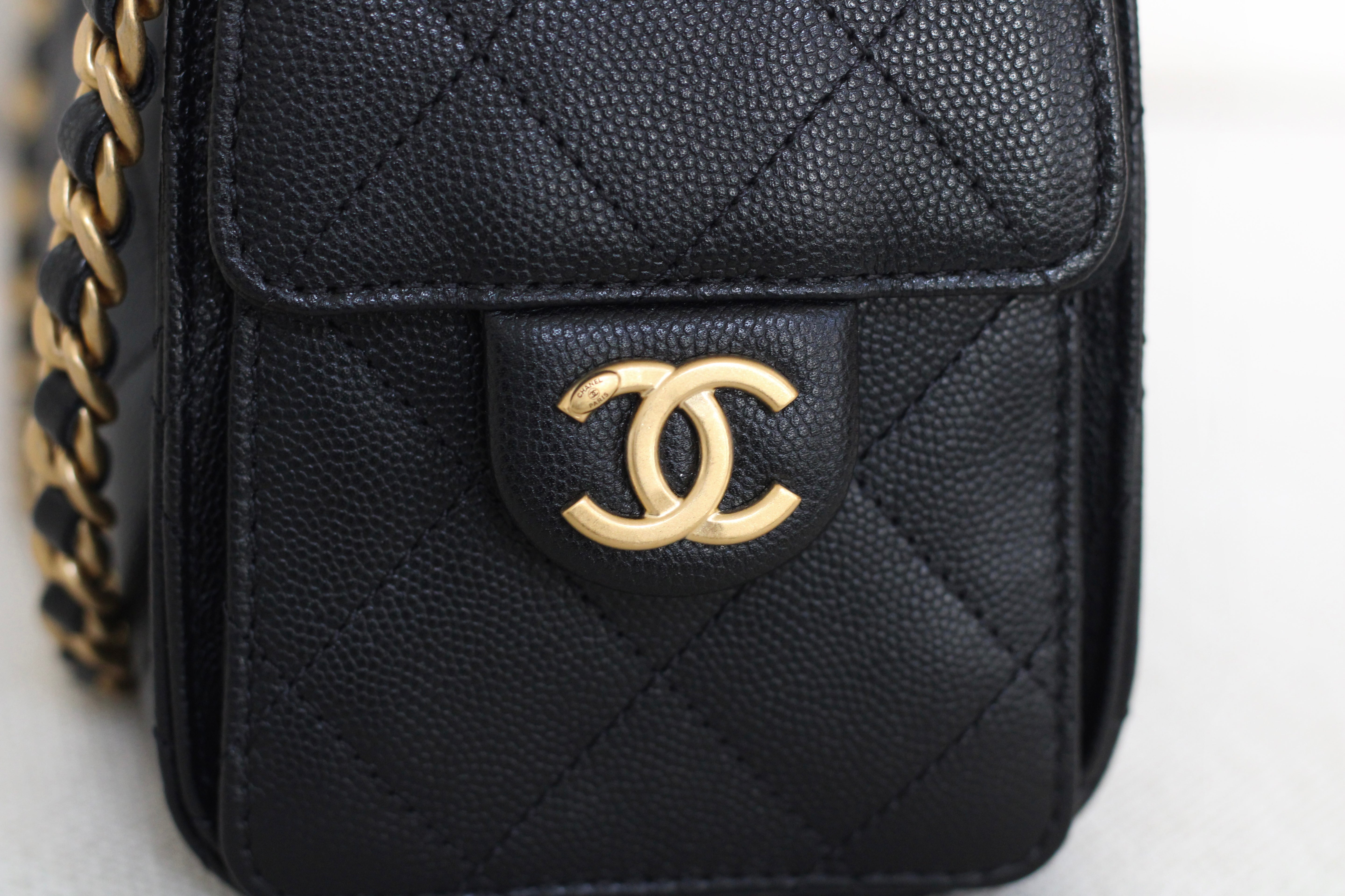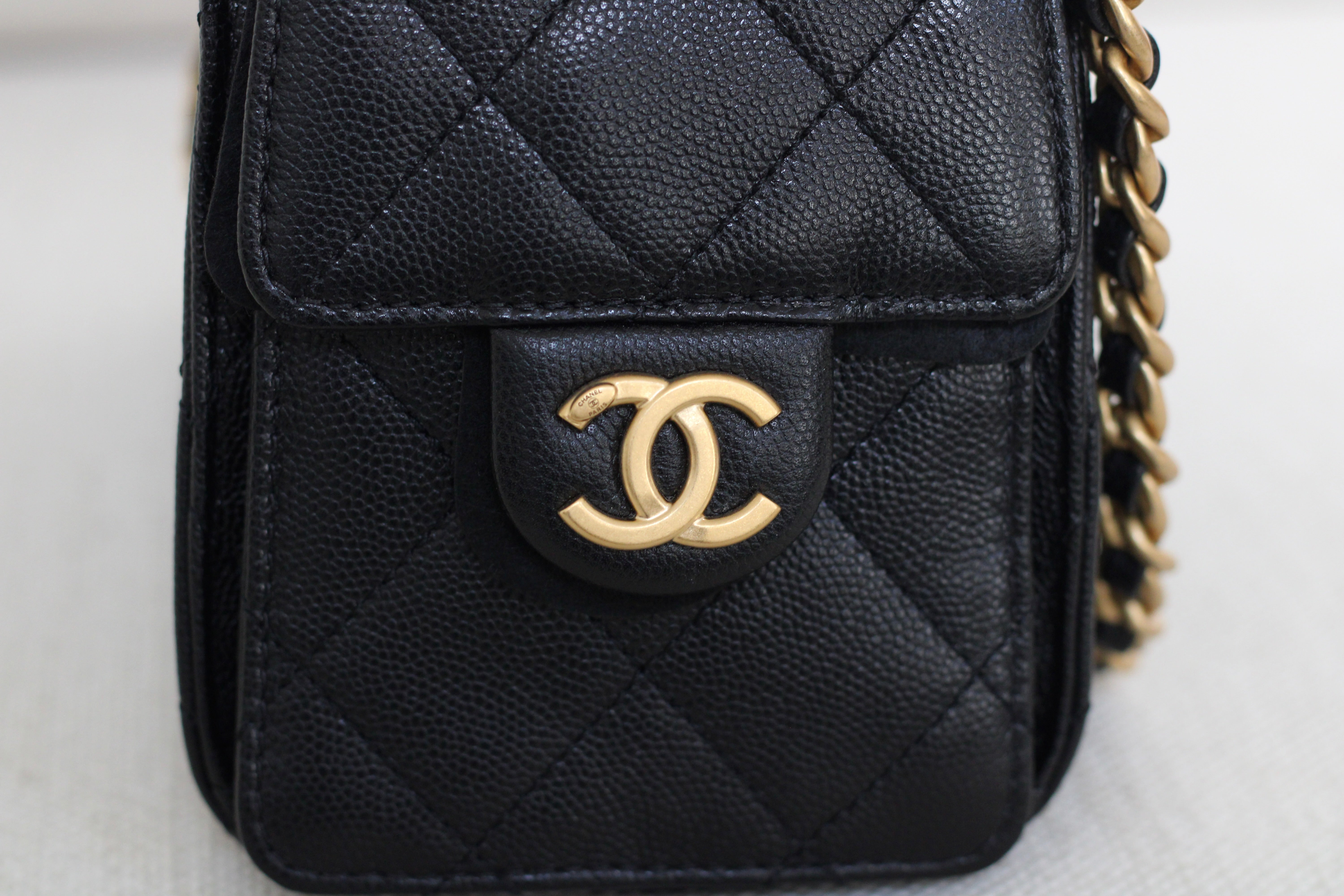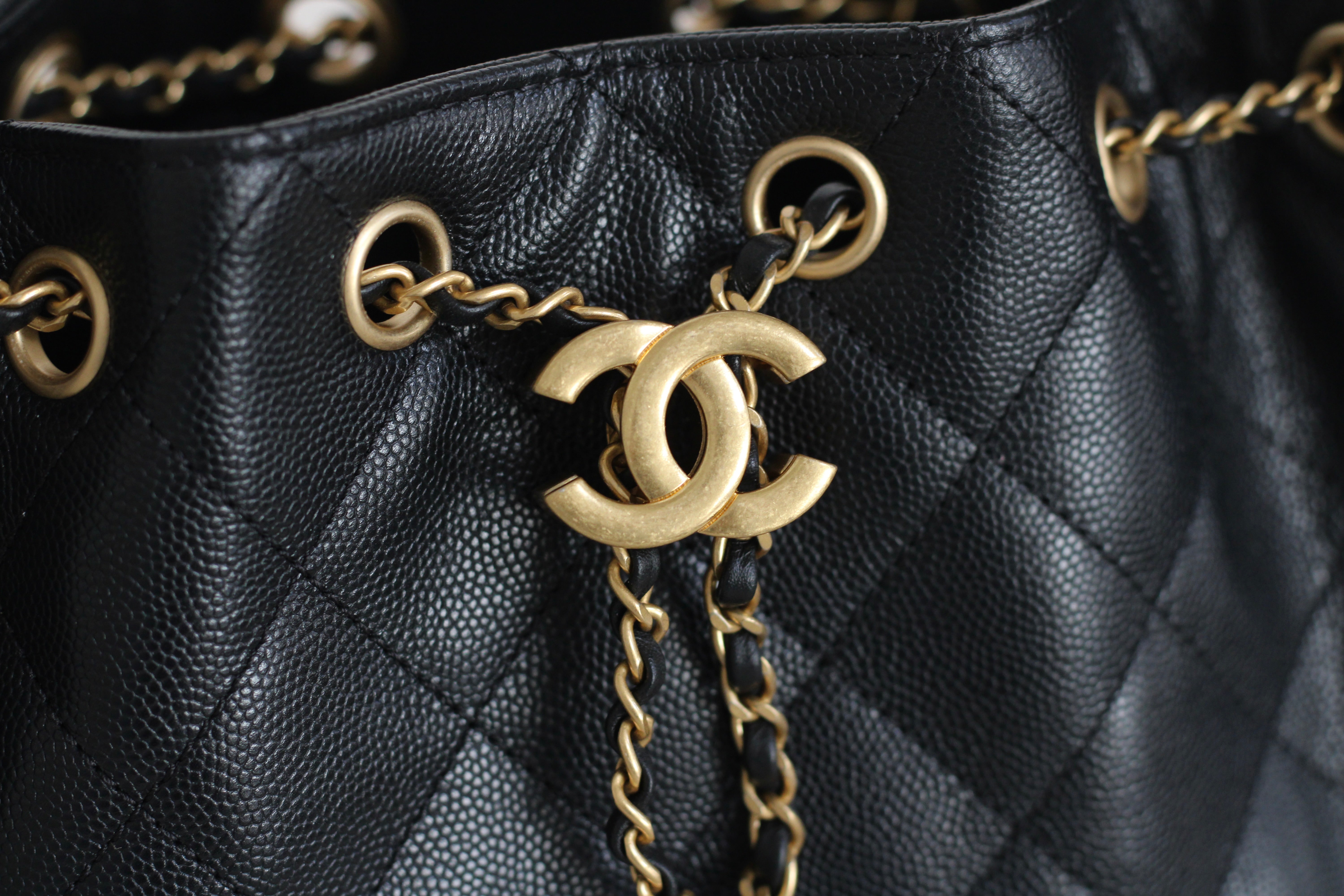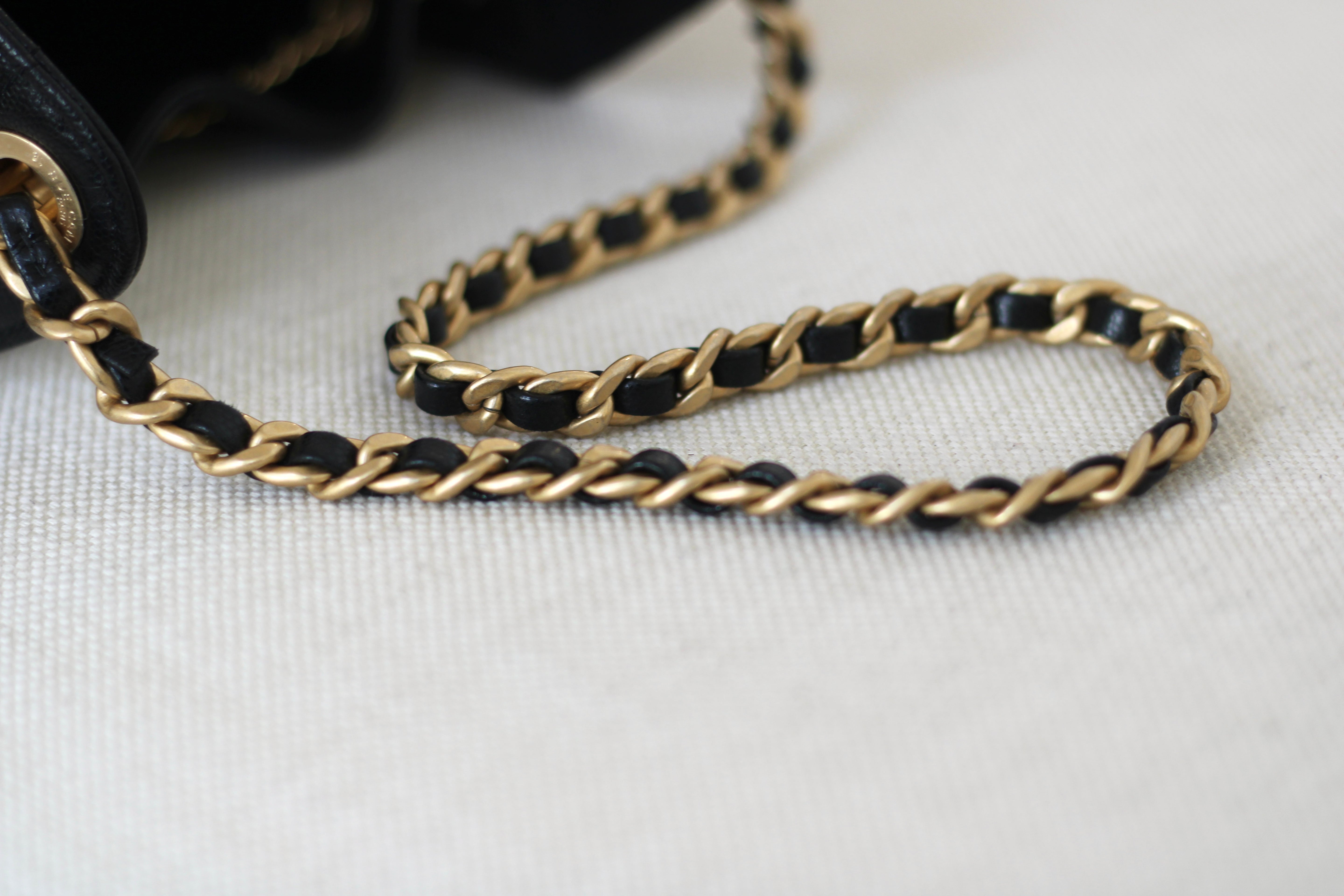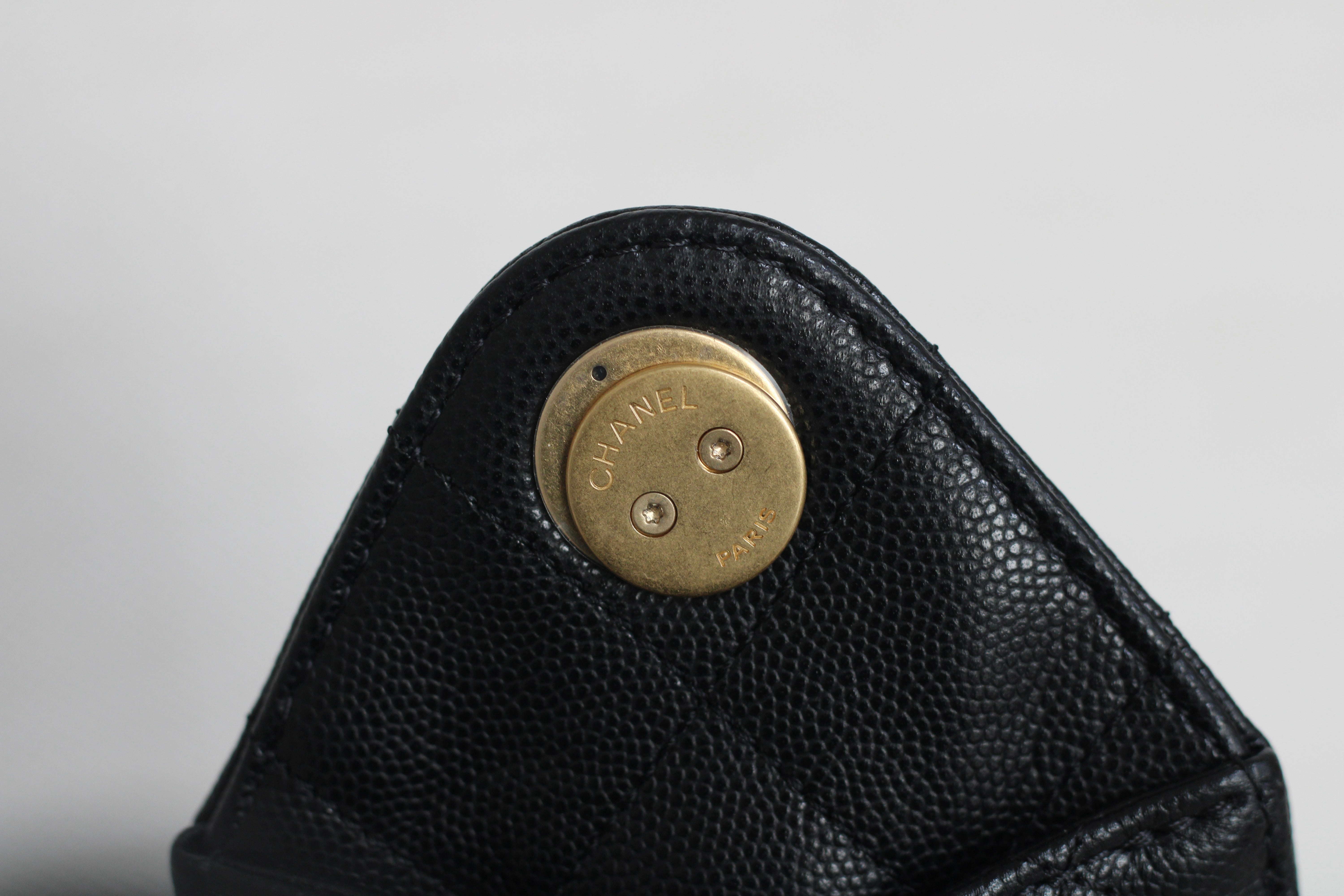 Pristine Condition. Beautifully pebbly black caviar leather with a gorgeous sheen. Stunning aged gold hardware with fine hairline scratches.