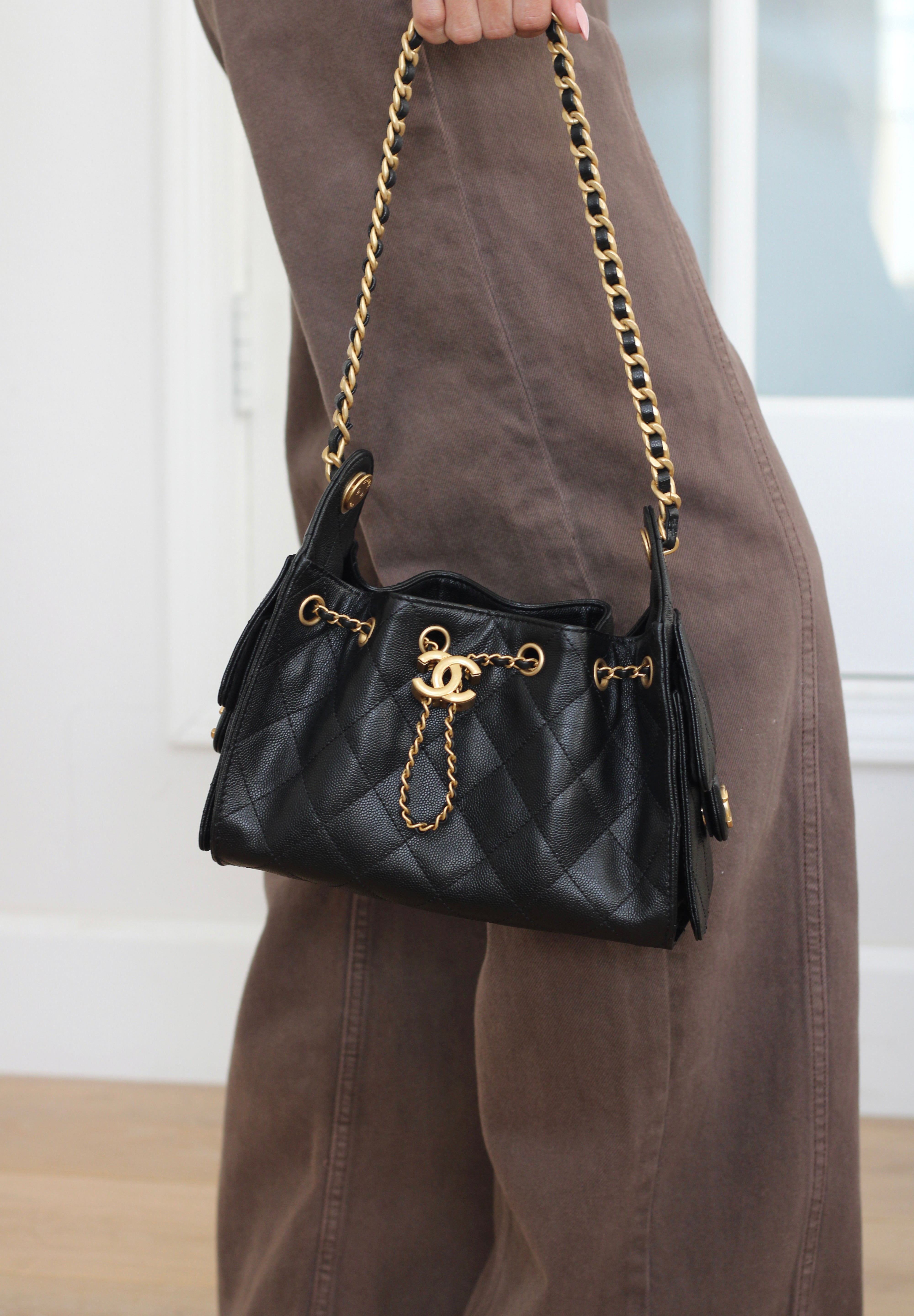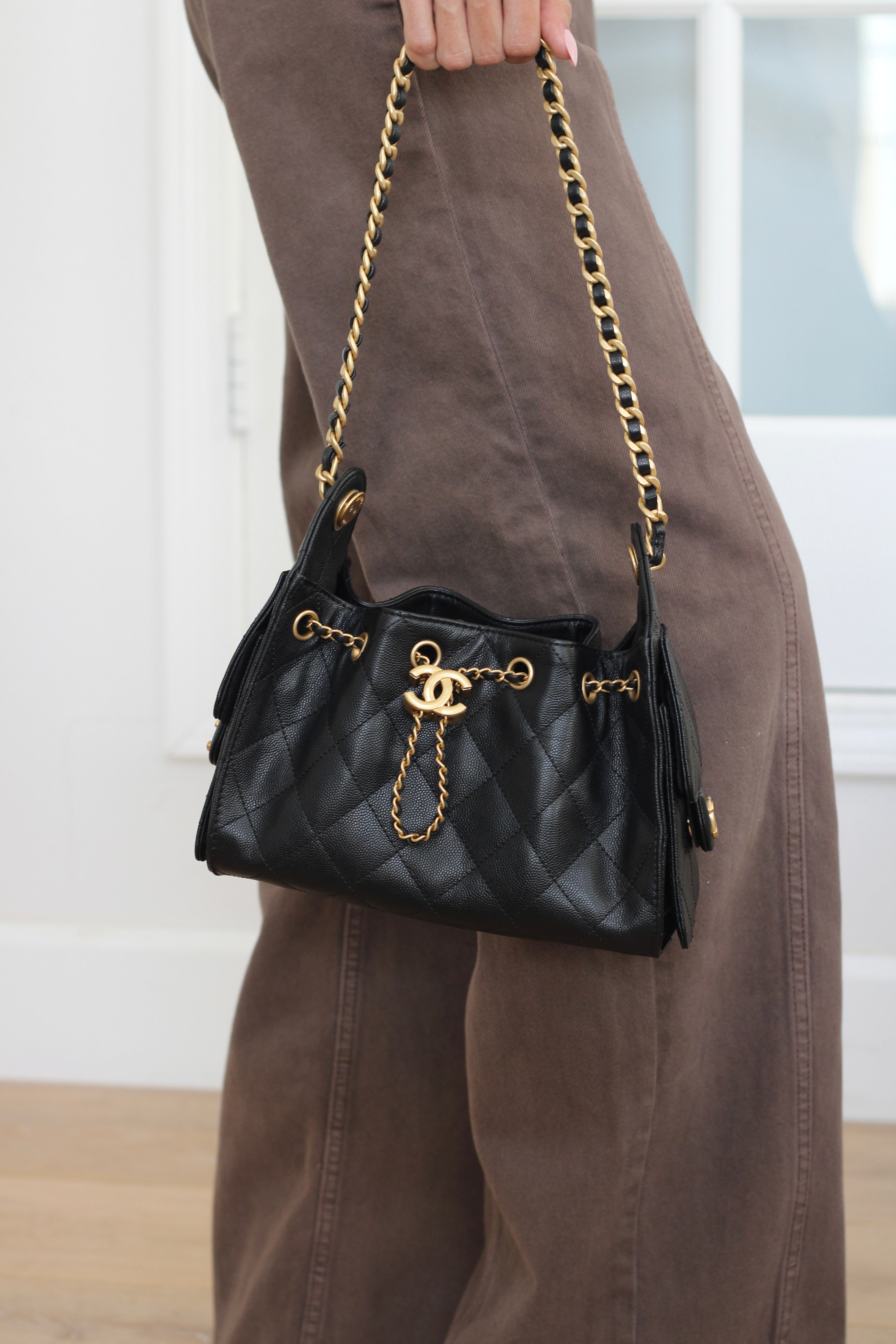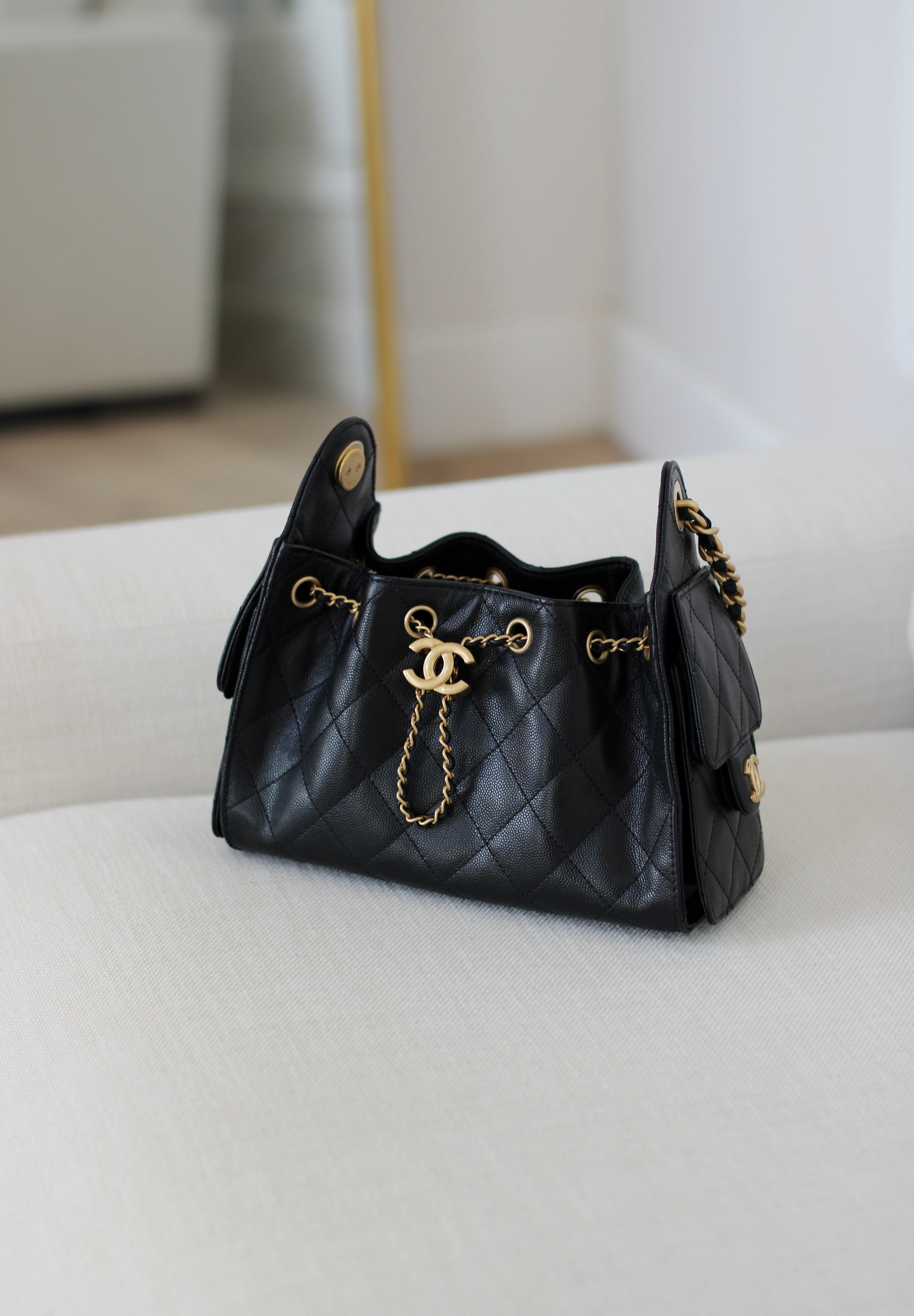 Chanel 26C Black Caviar Mini 25 Hobo with Aged Gold Hardware