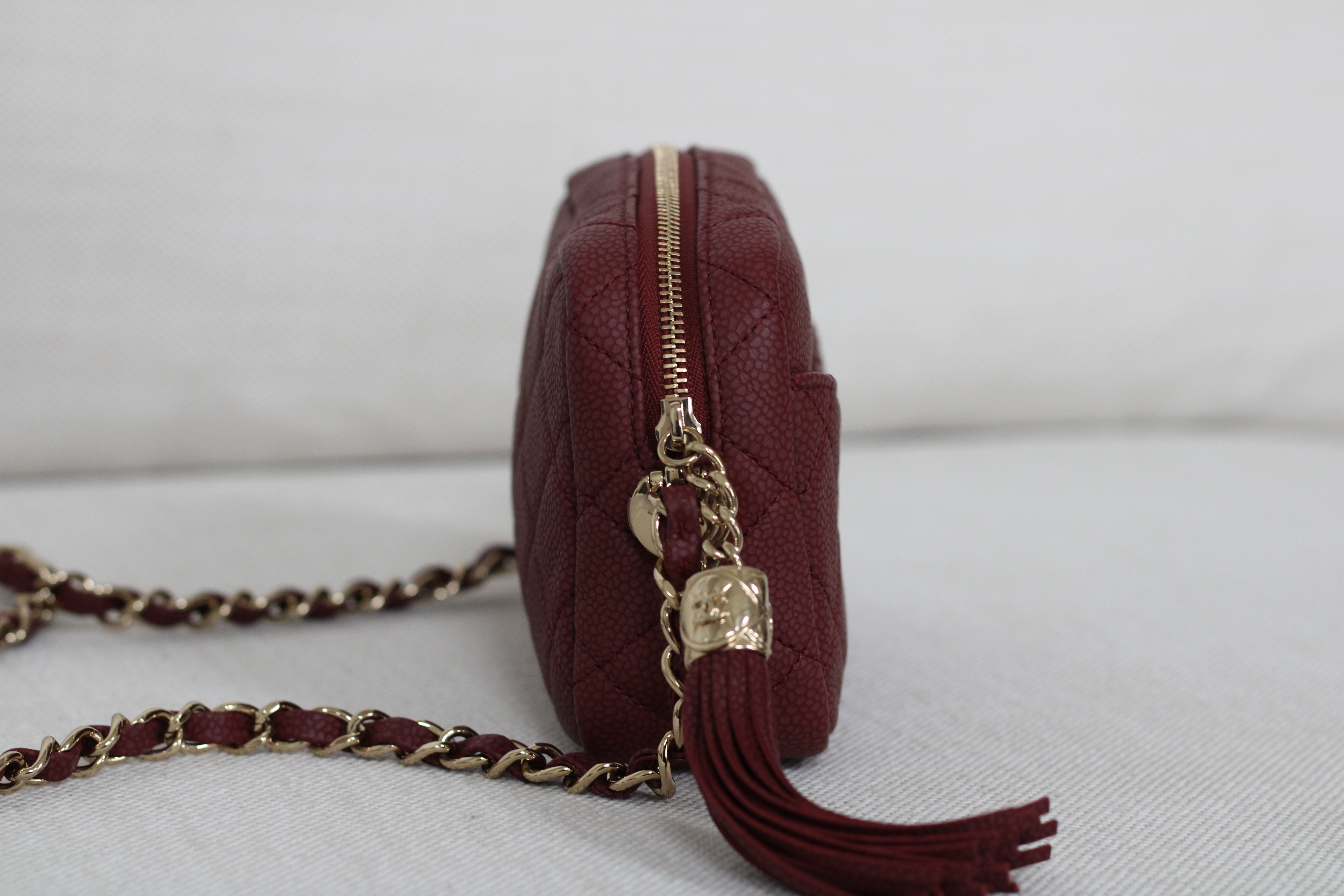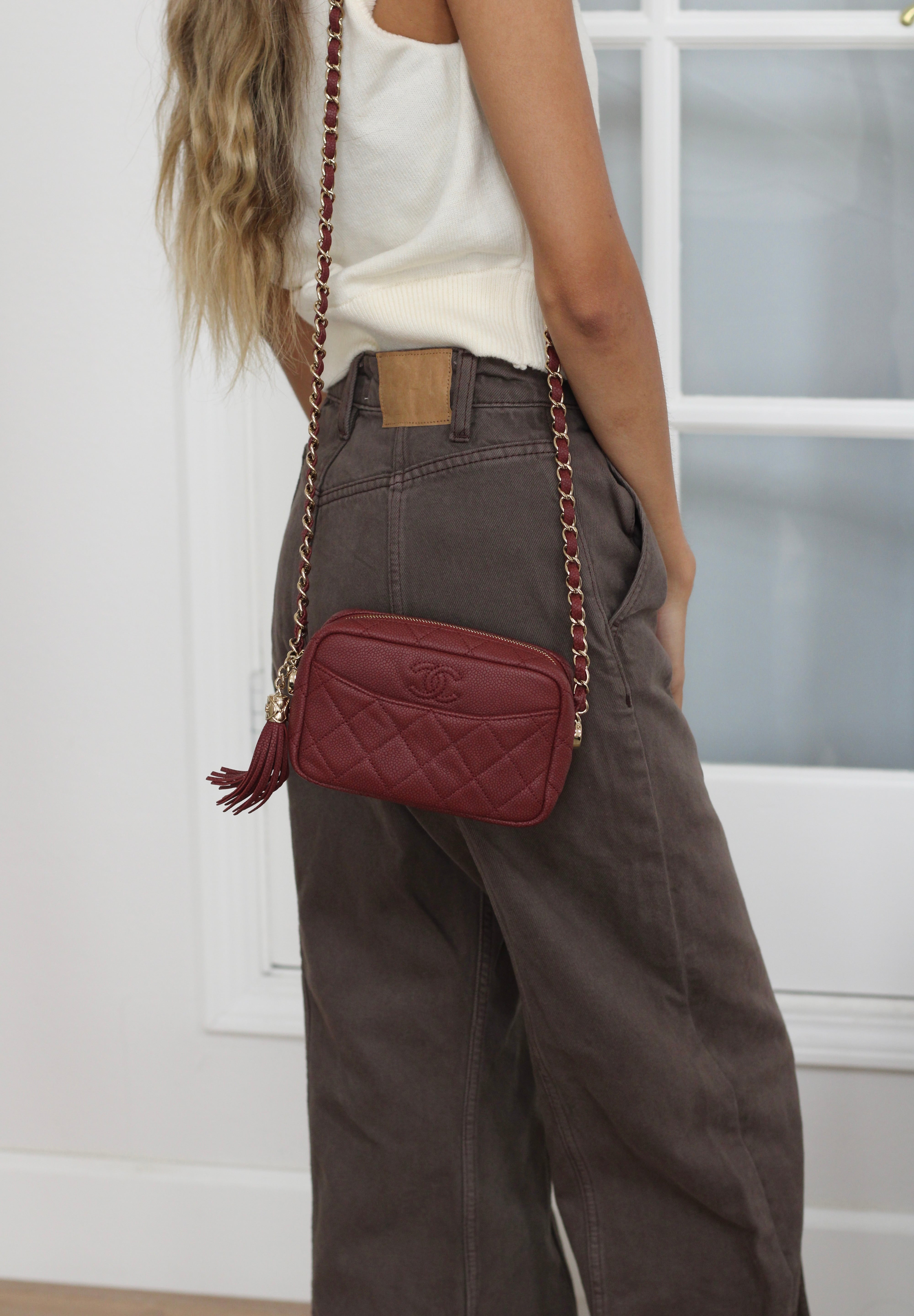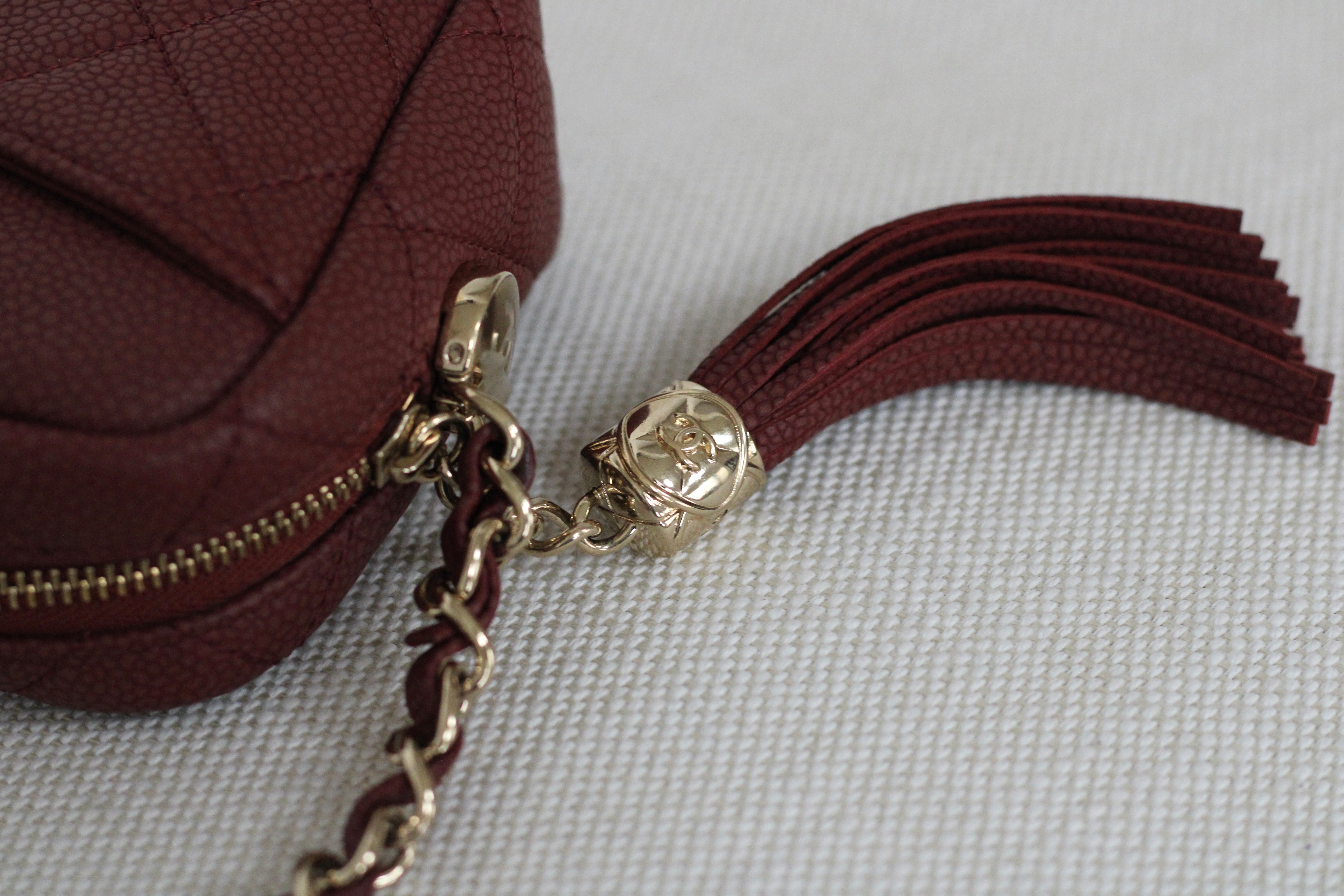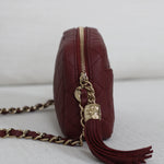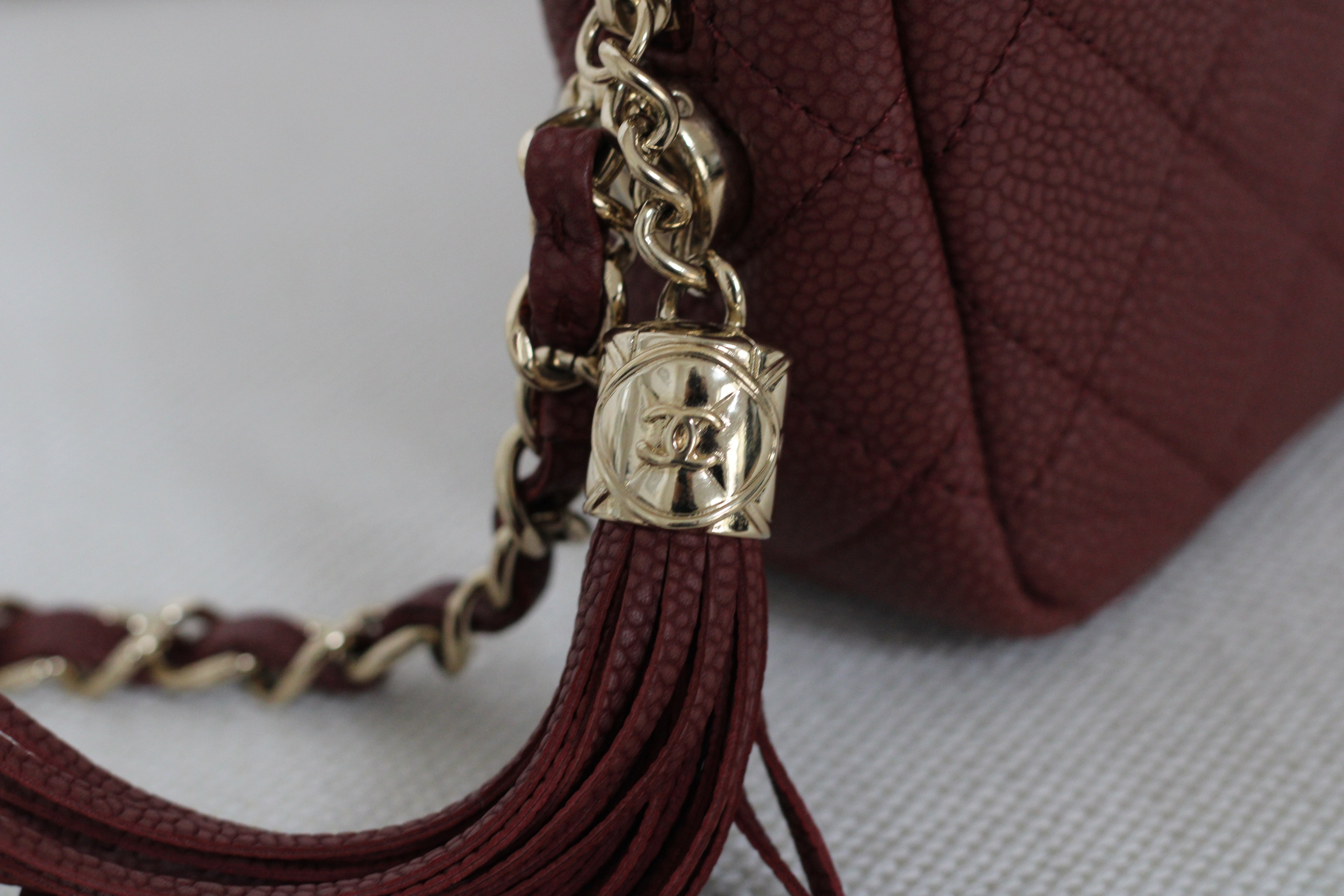 Chanel Burgundy Caviar Coco Tassel Camera Bag with Light Gold Hardware