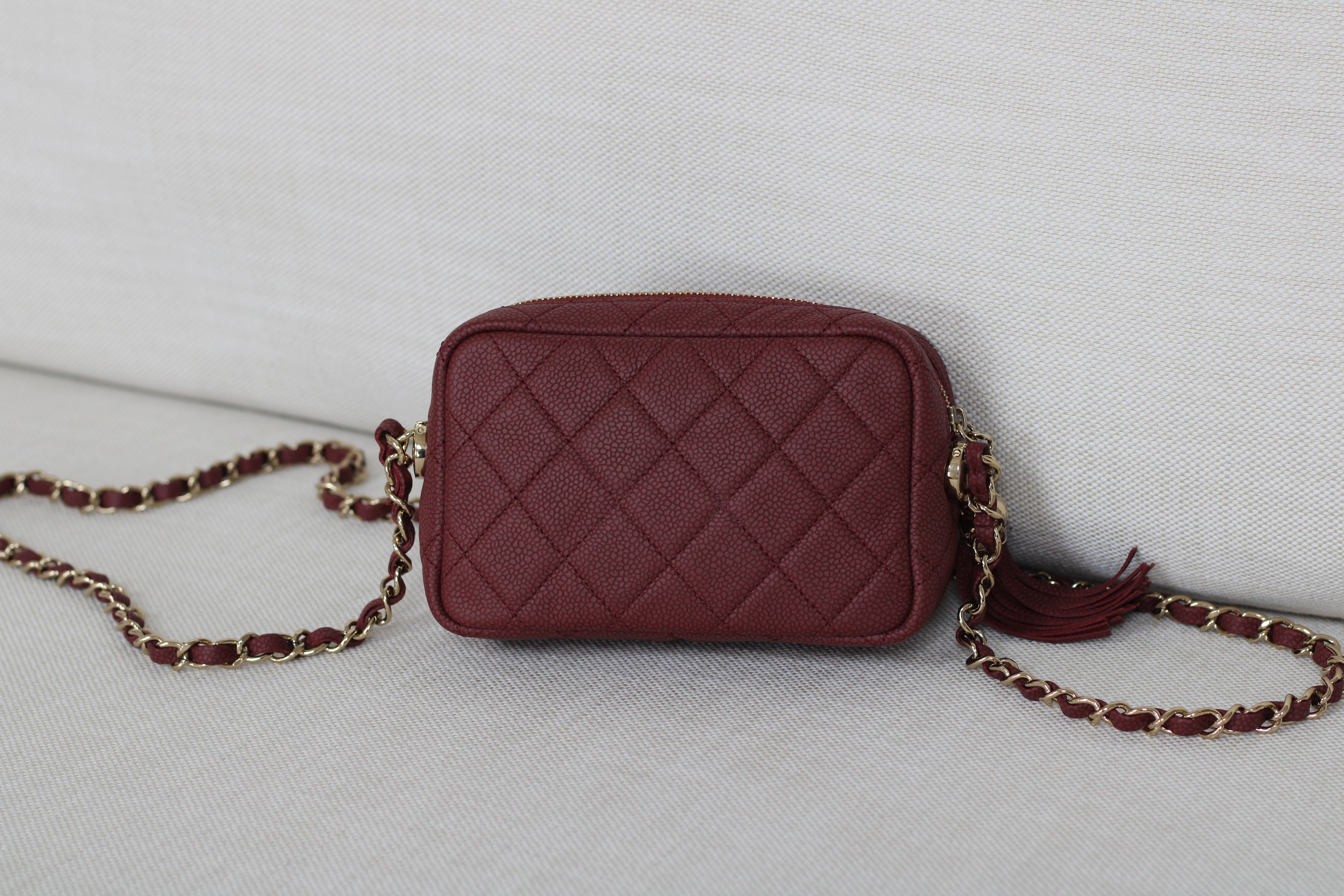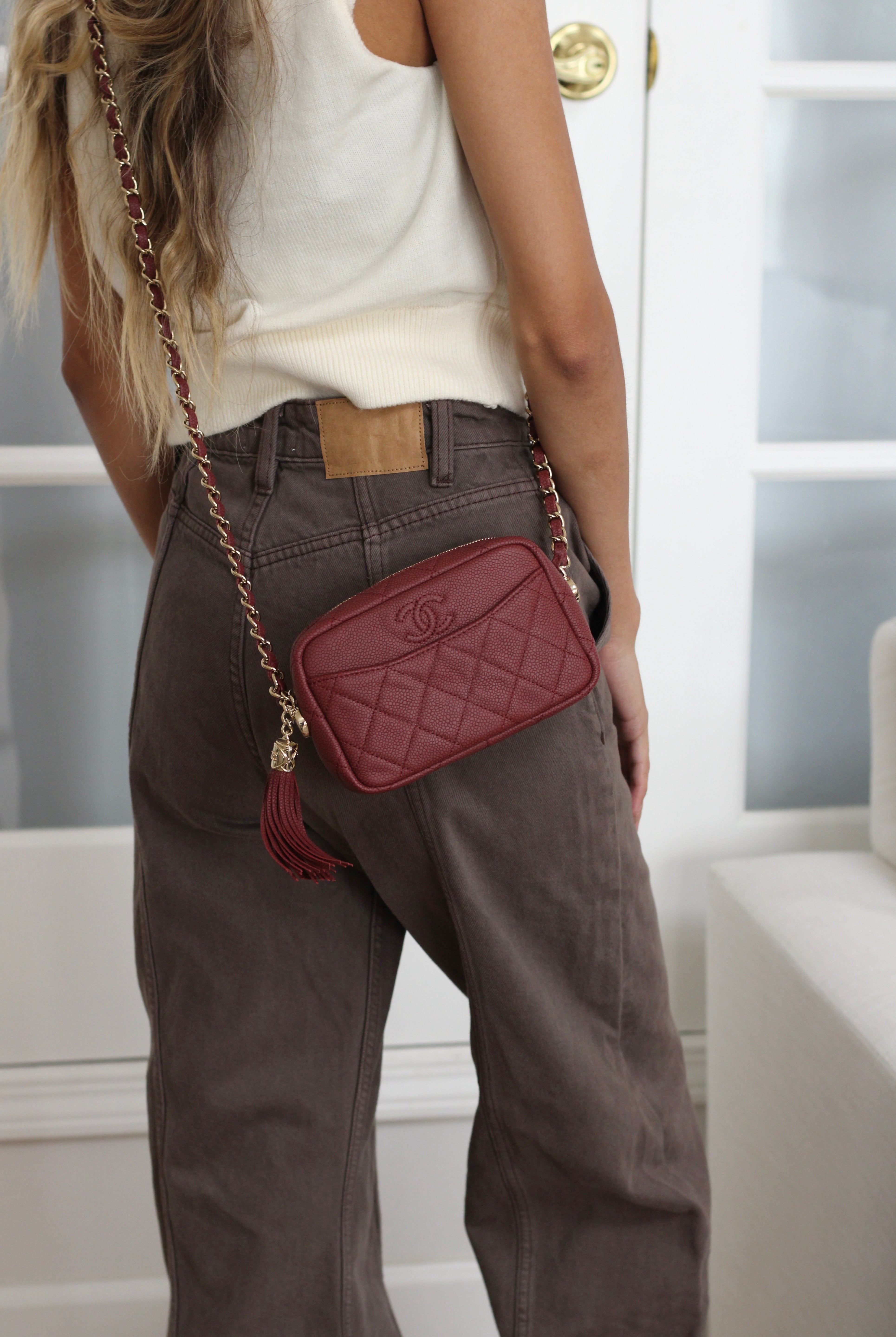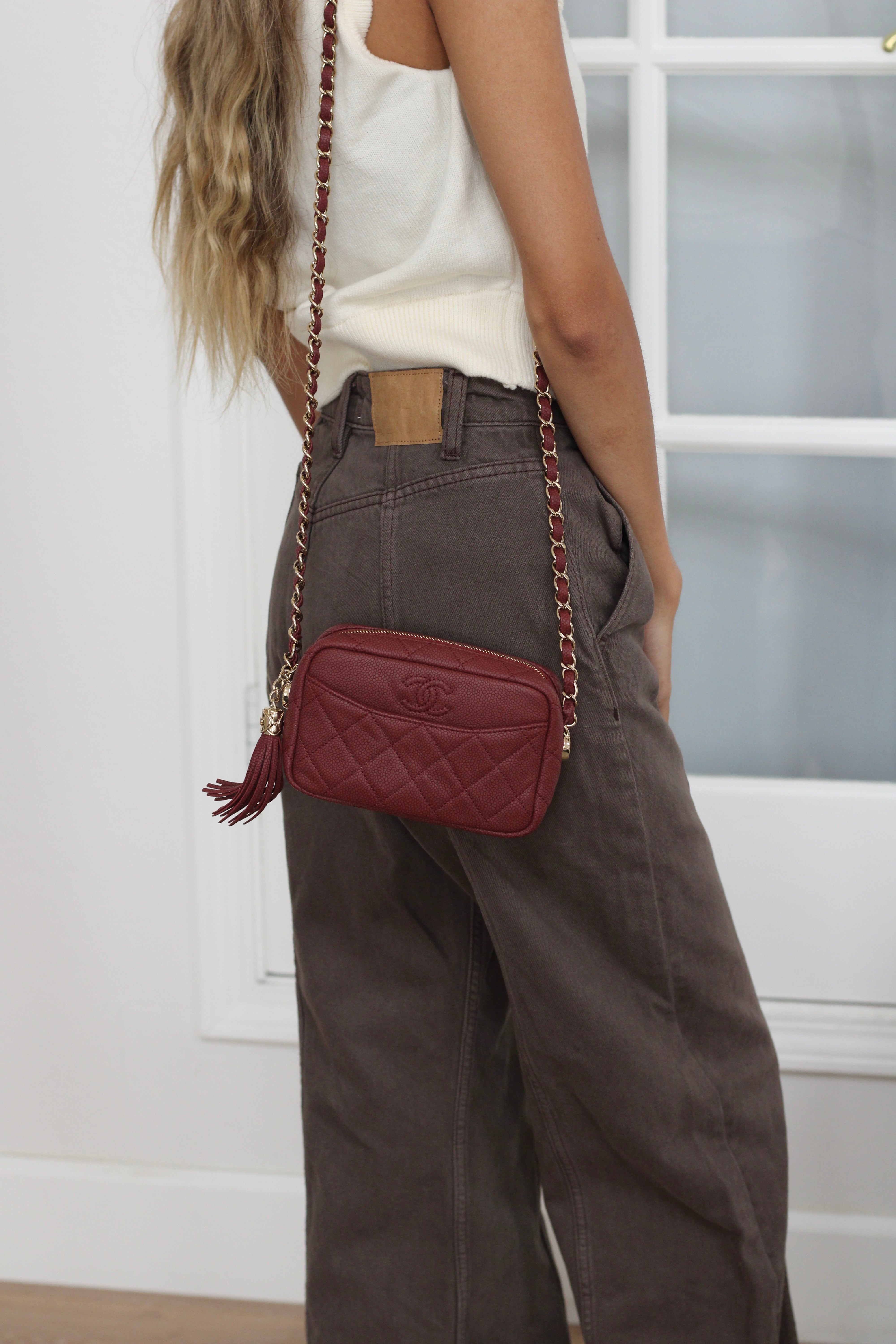 Chanel Burgundy Caviar Coco Tassel Camera Bag with Light Gold Hardware