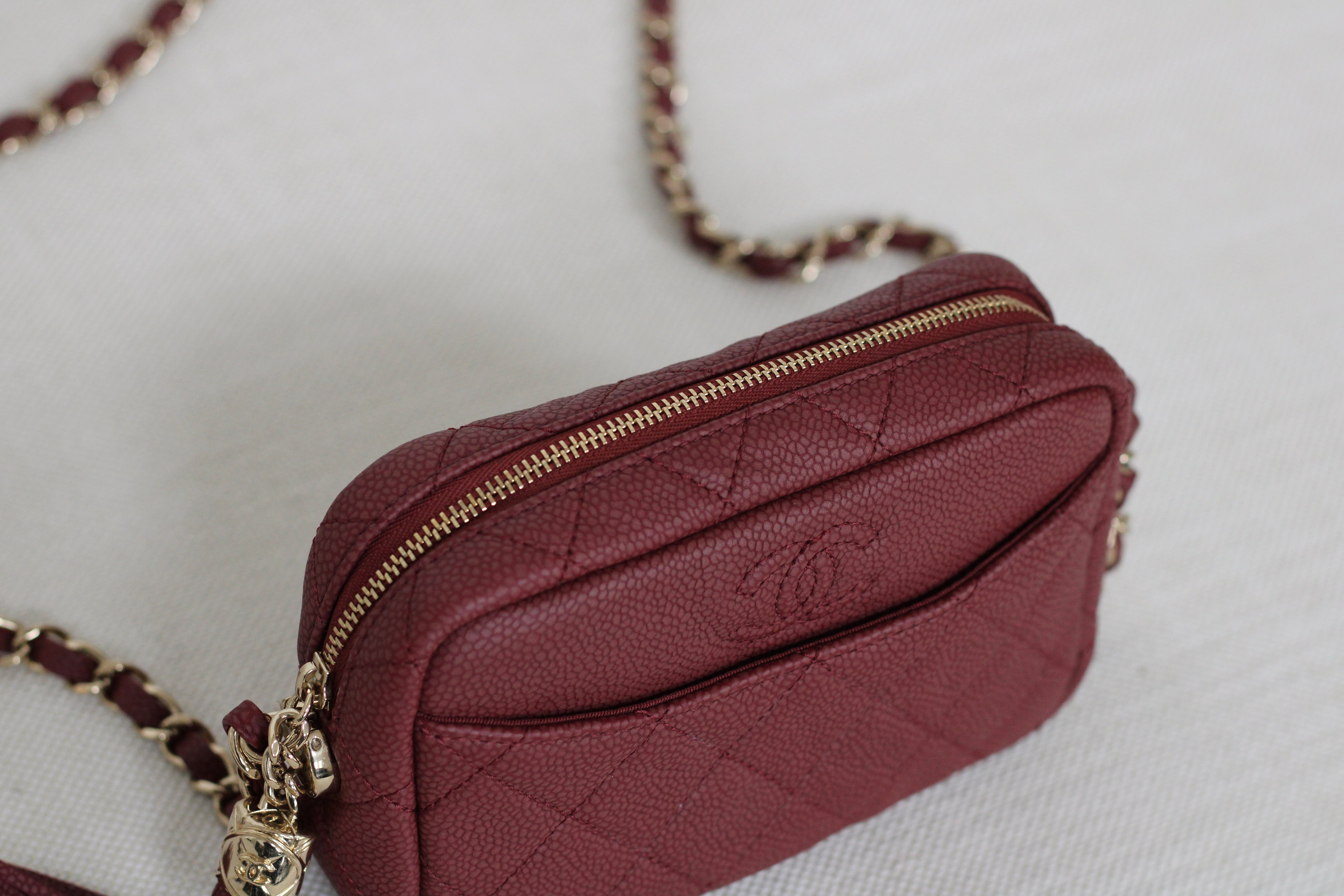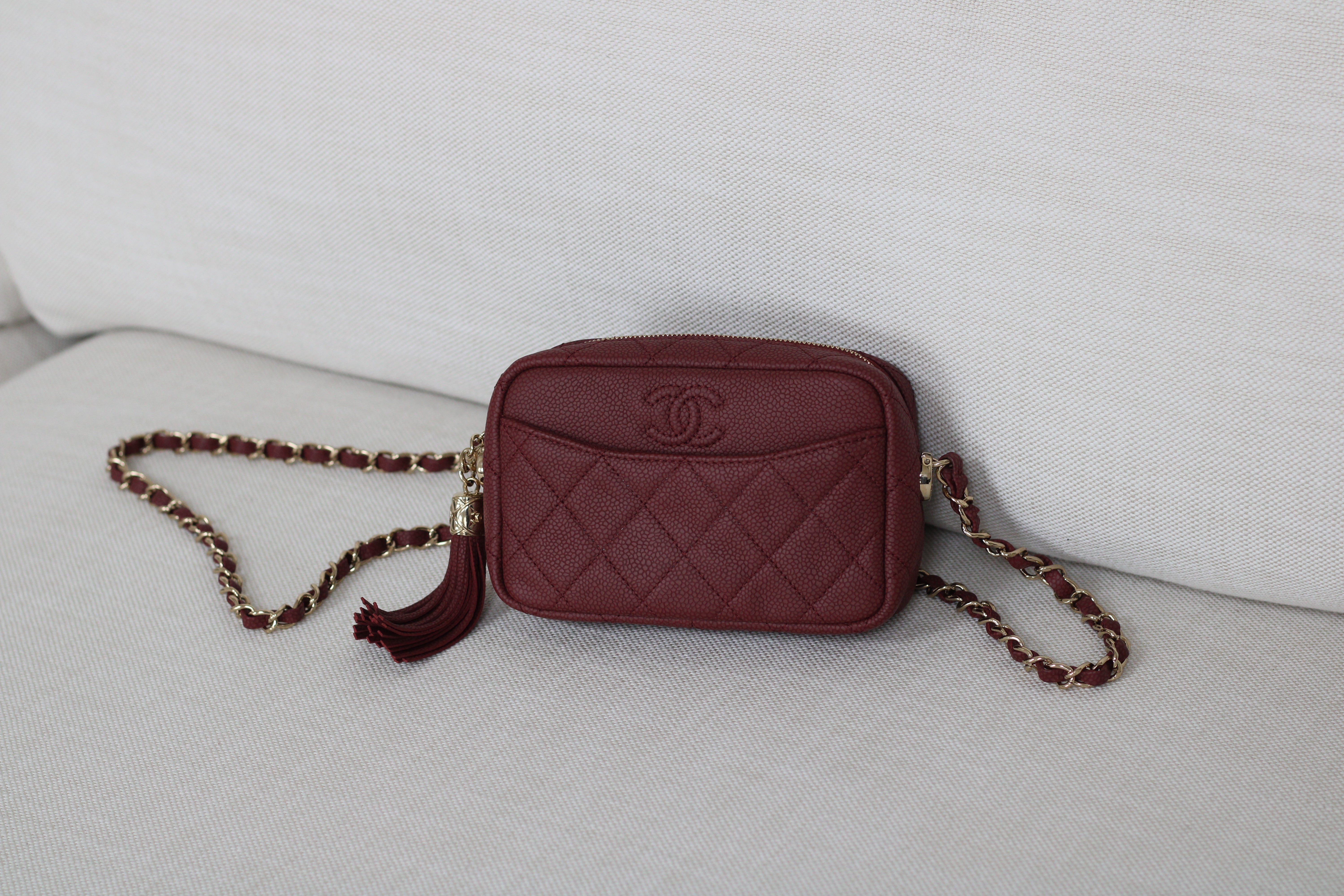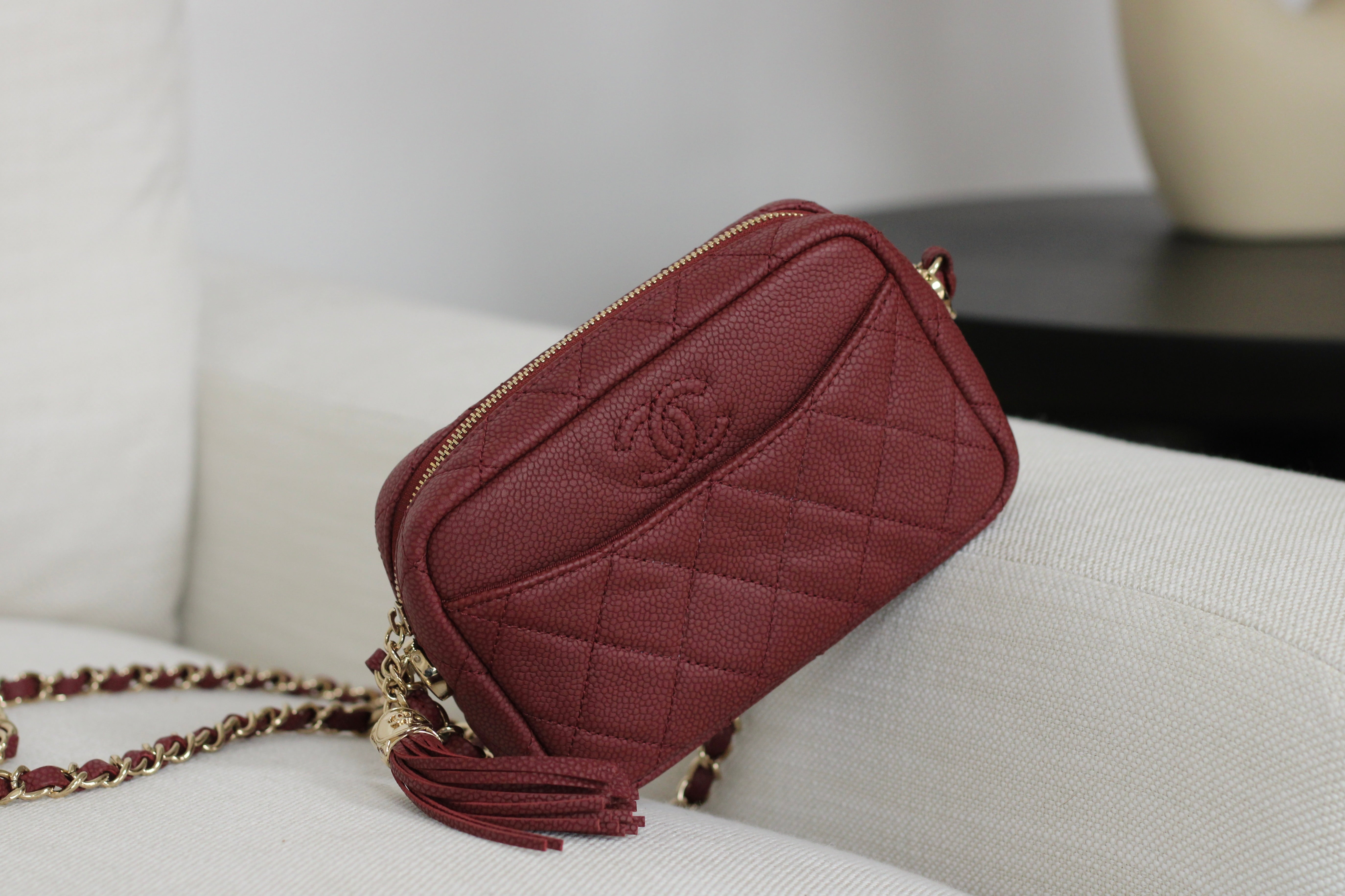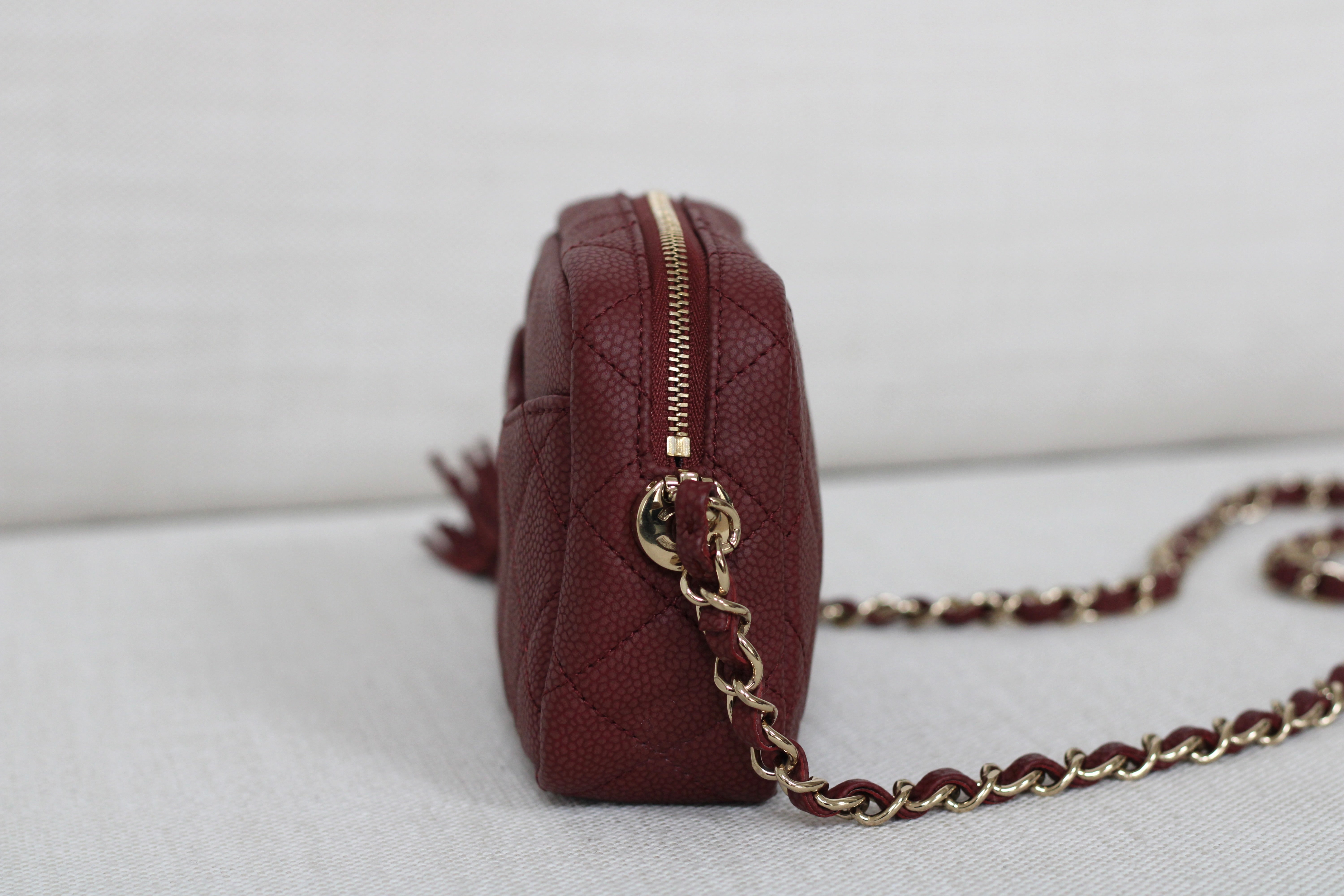 Chanel Burgundy Caviar Coco Tassel Camera Bag with Light Gold Hardware