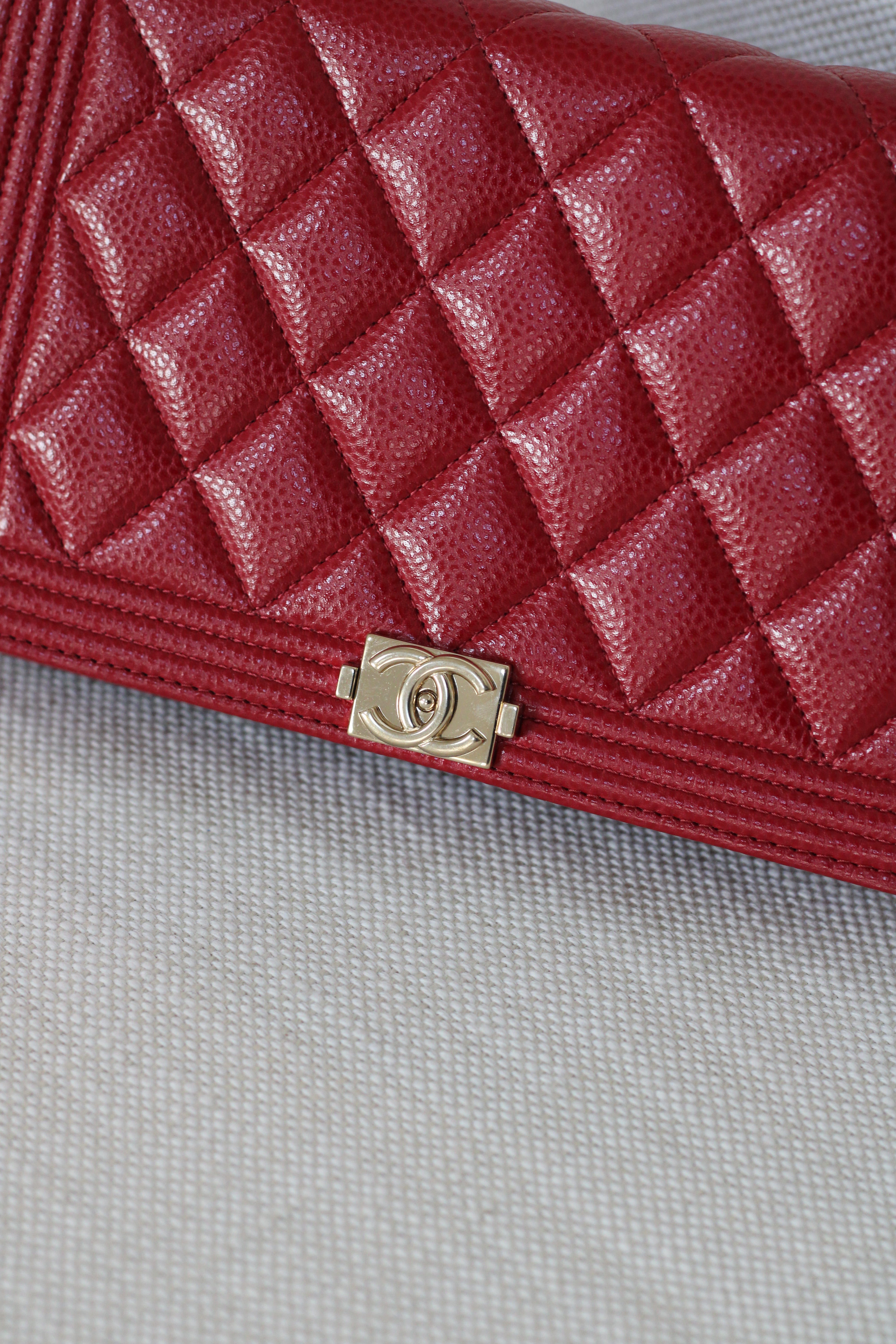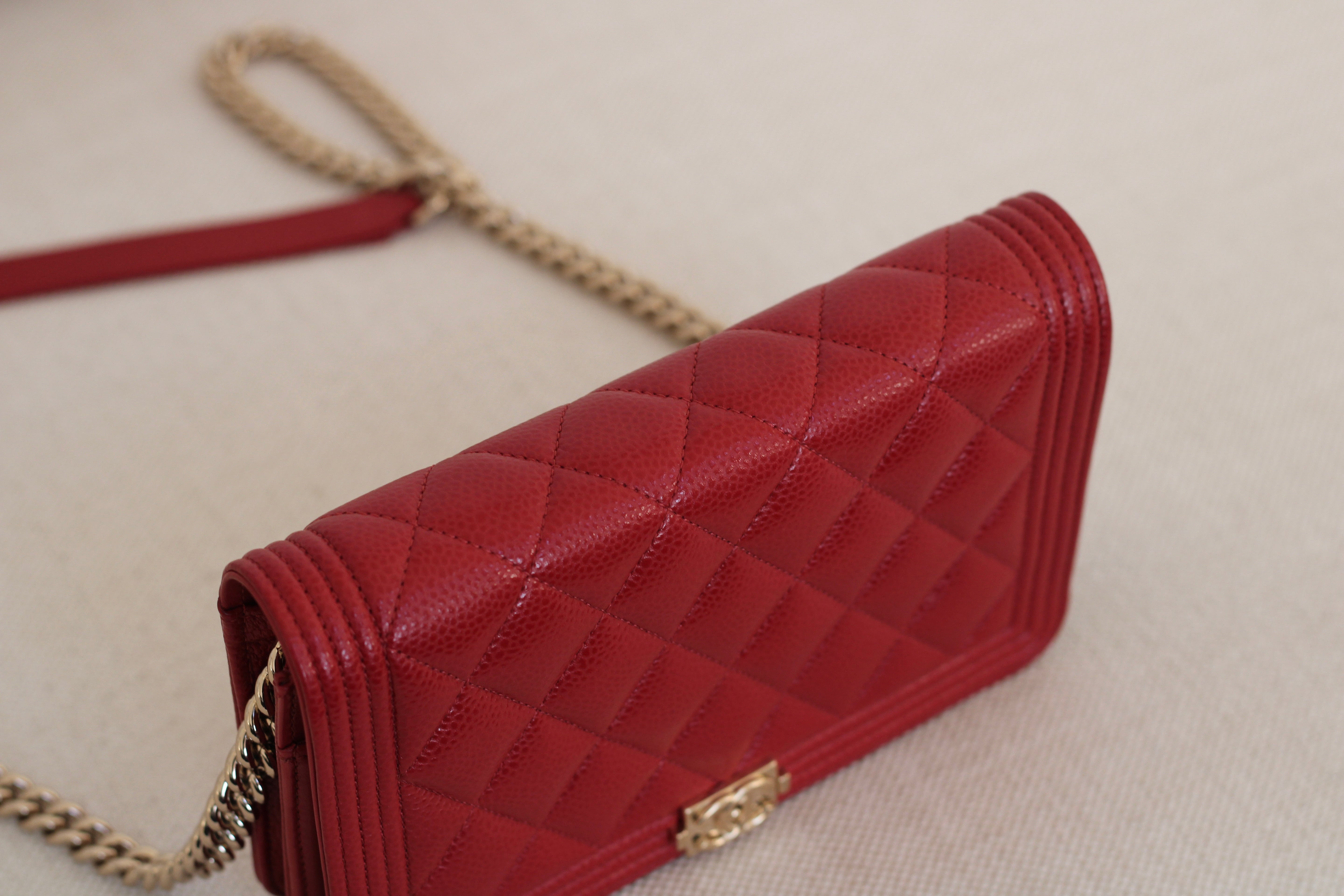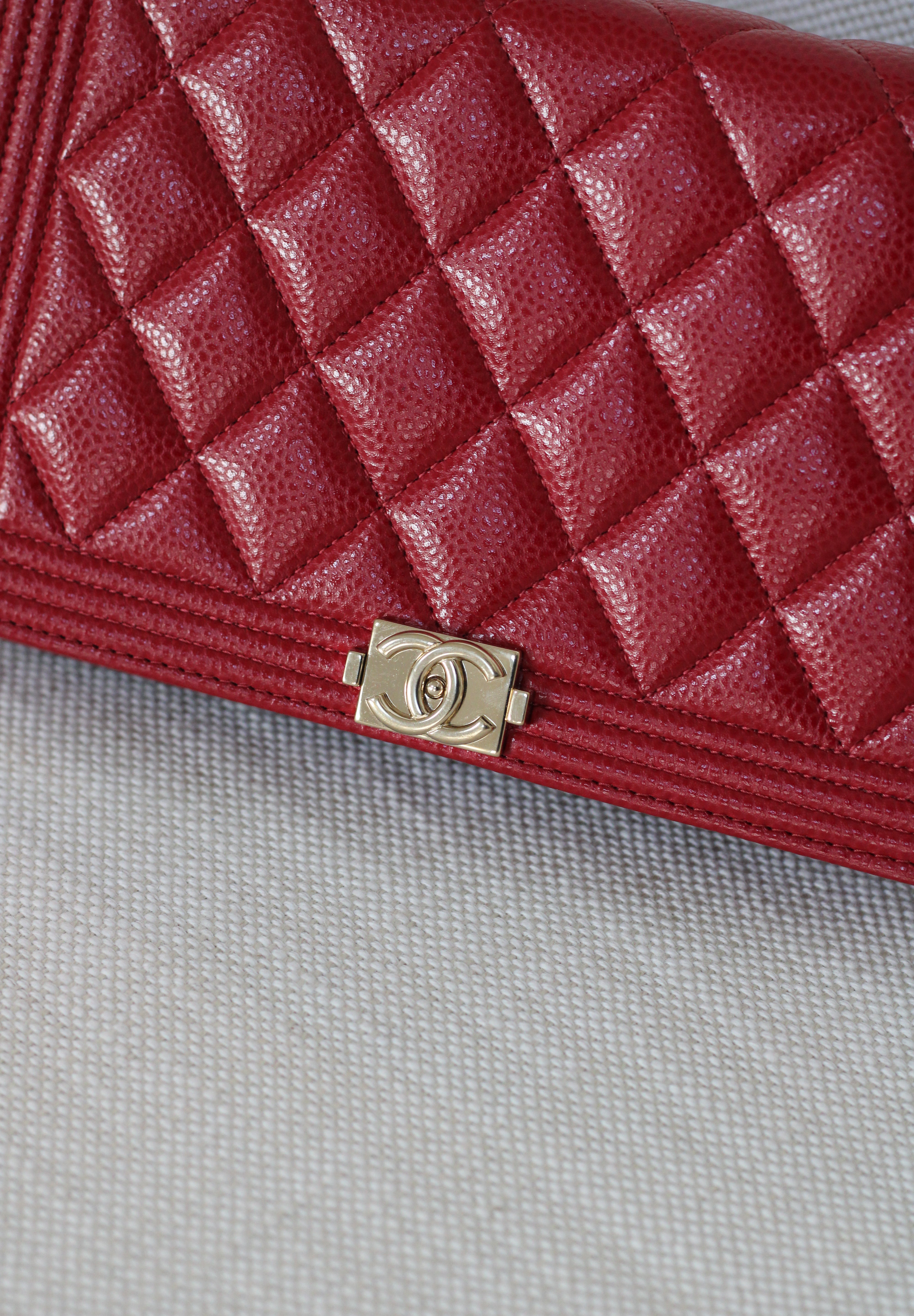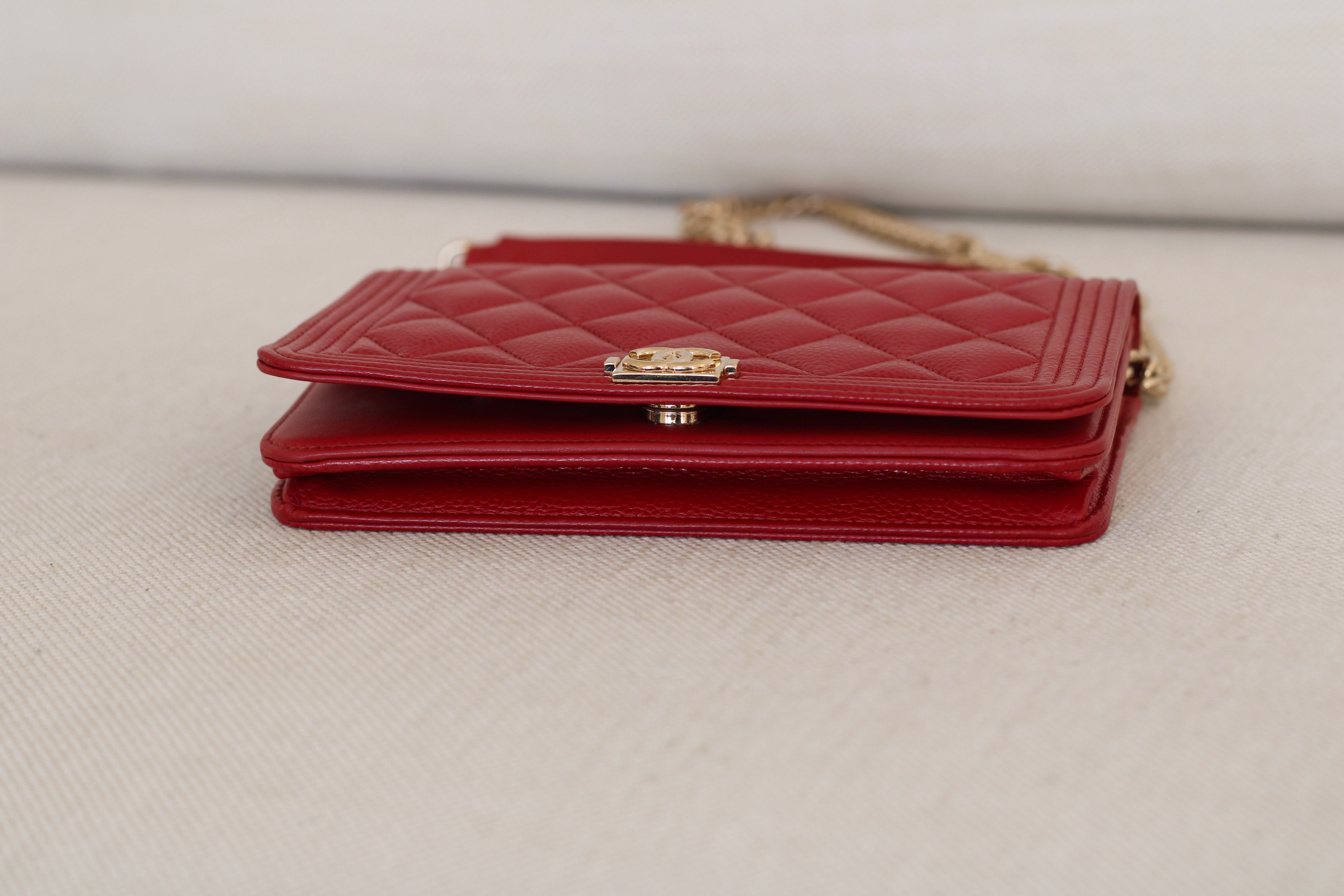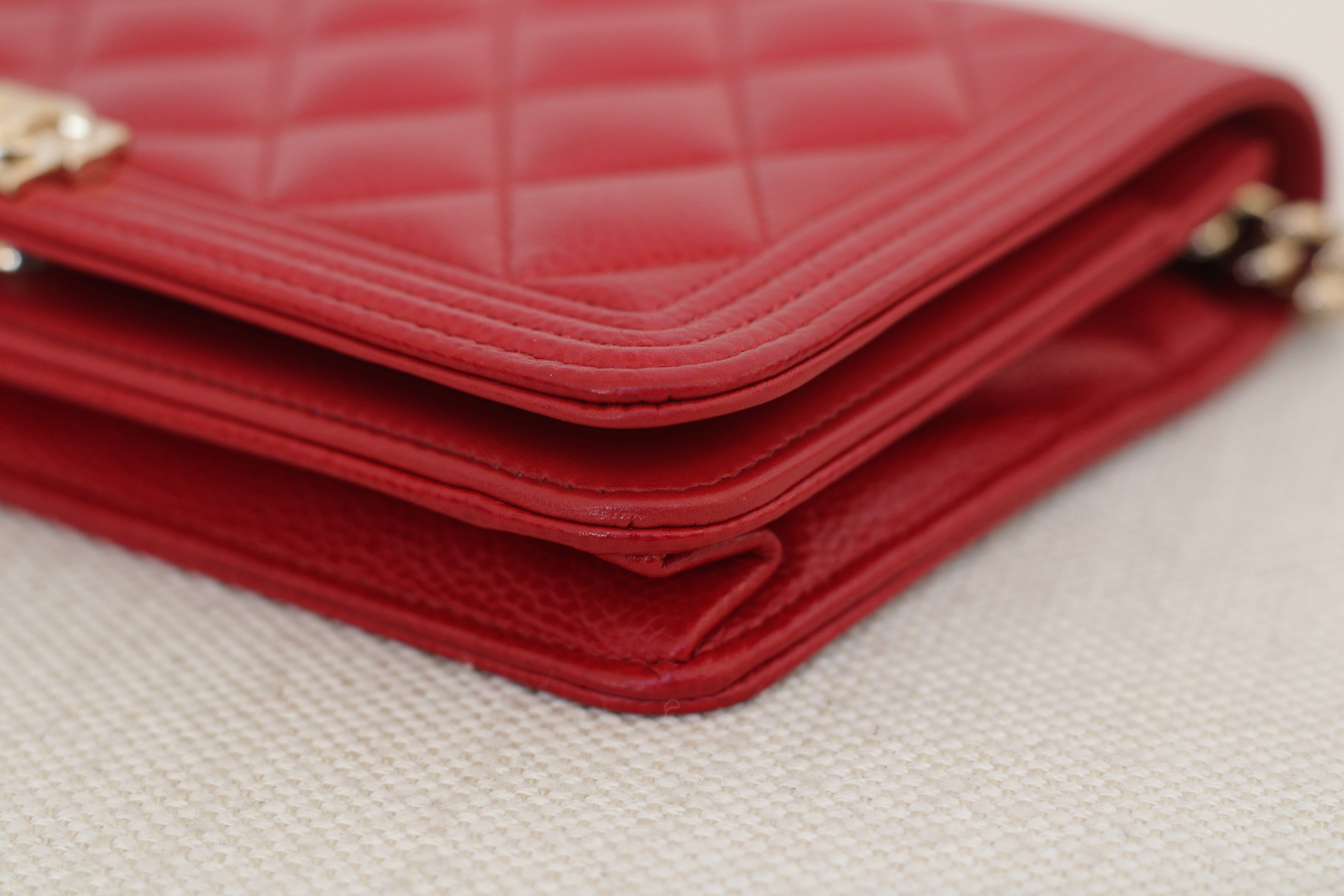 Chanel Red Caviar Boy Wallet on Chain with Light Gold Hardware