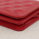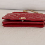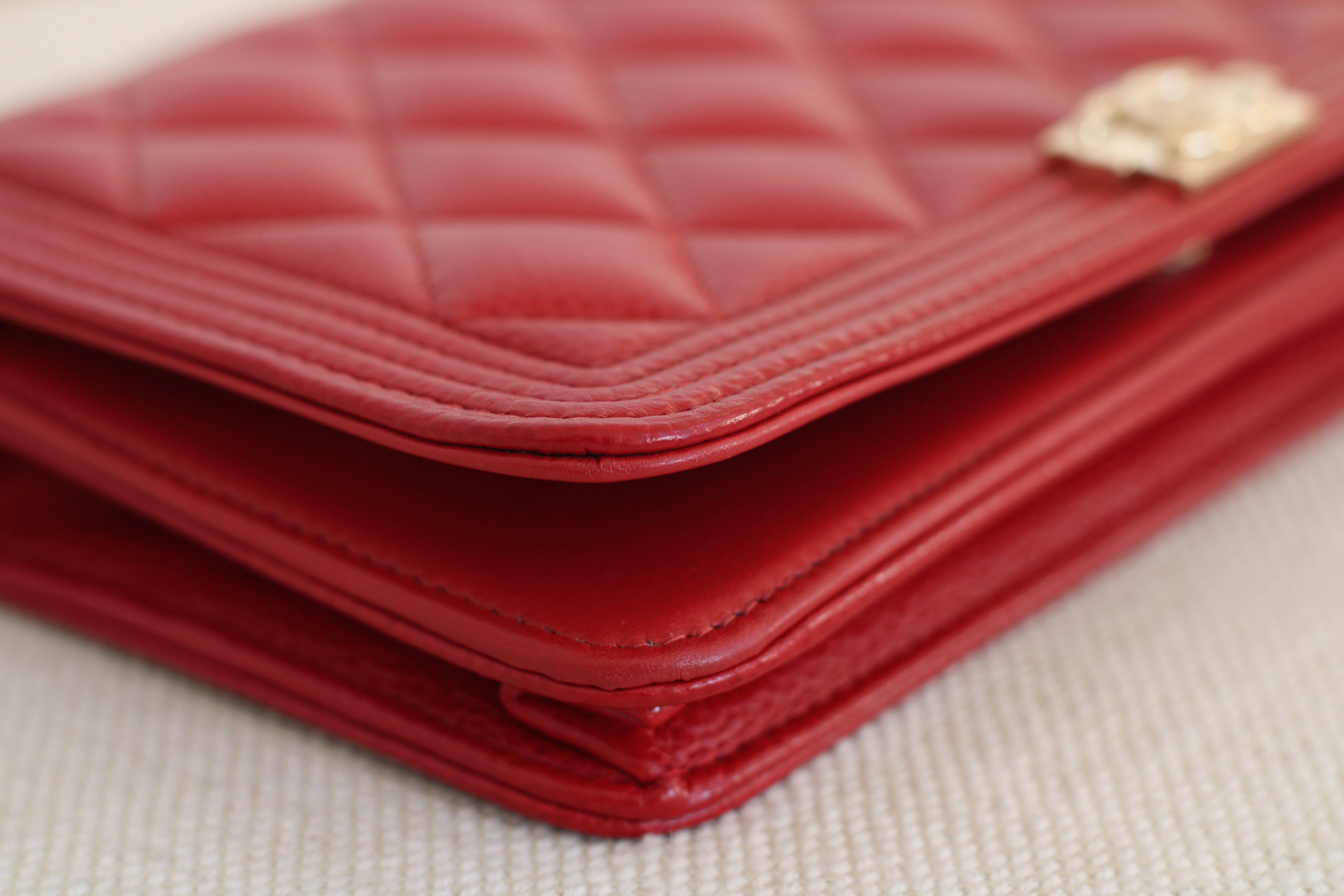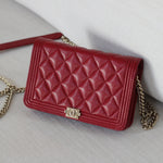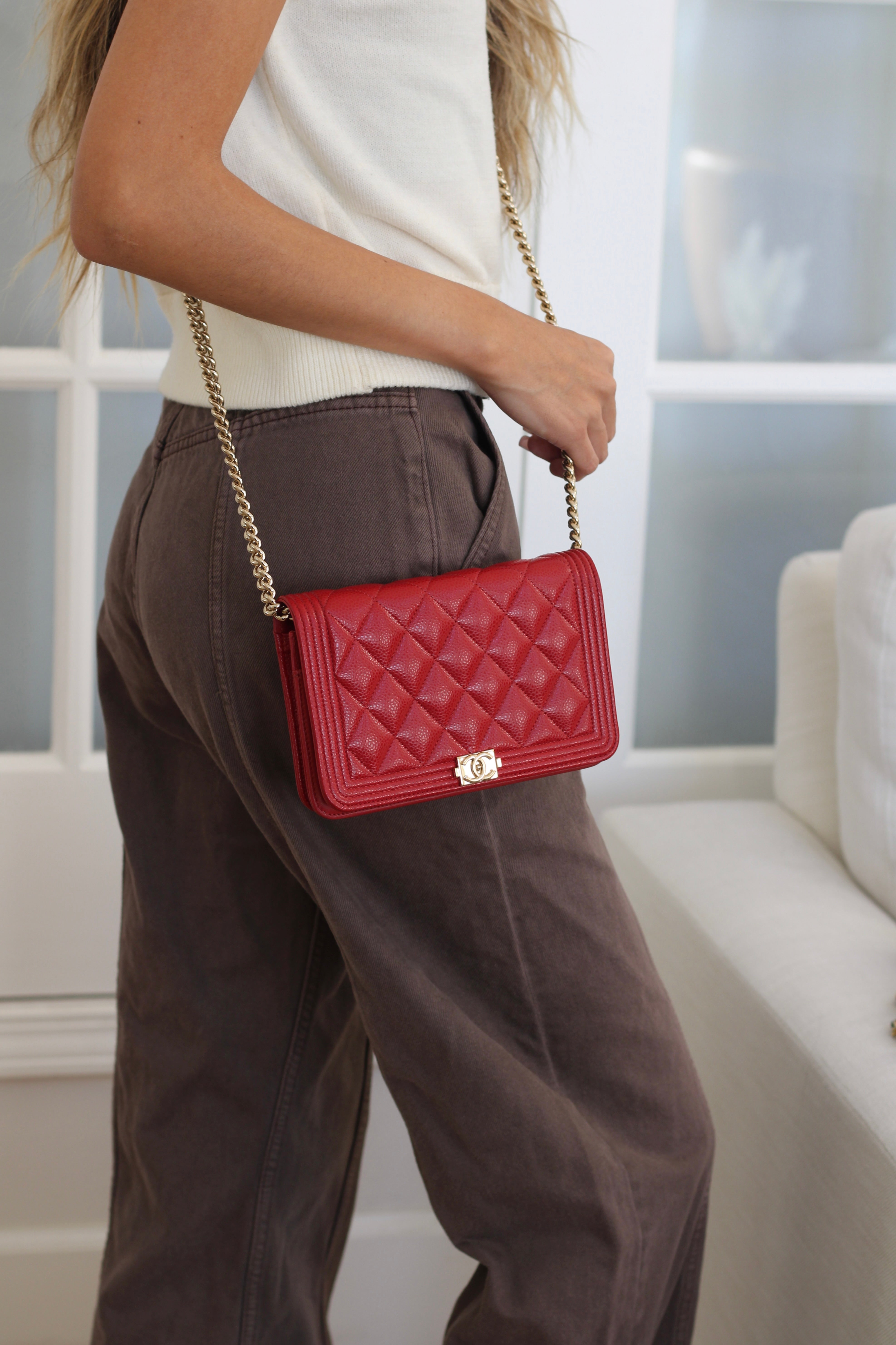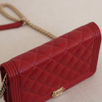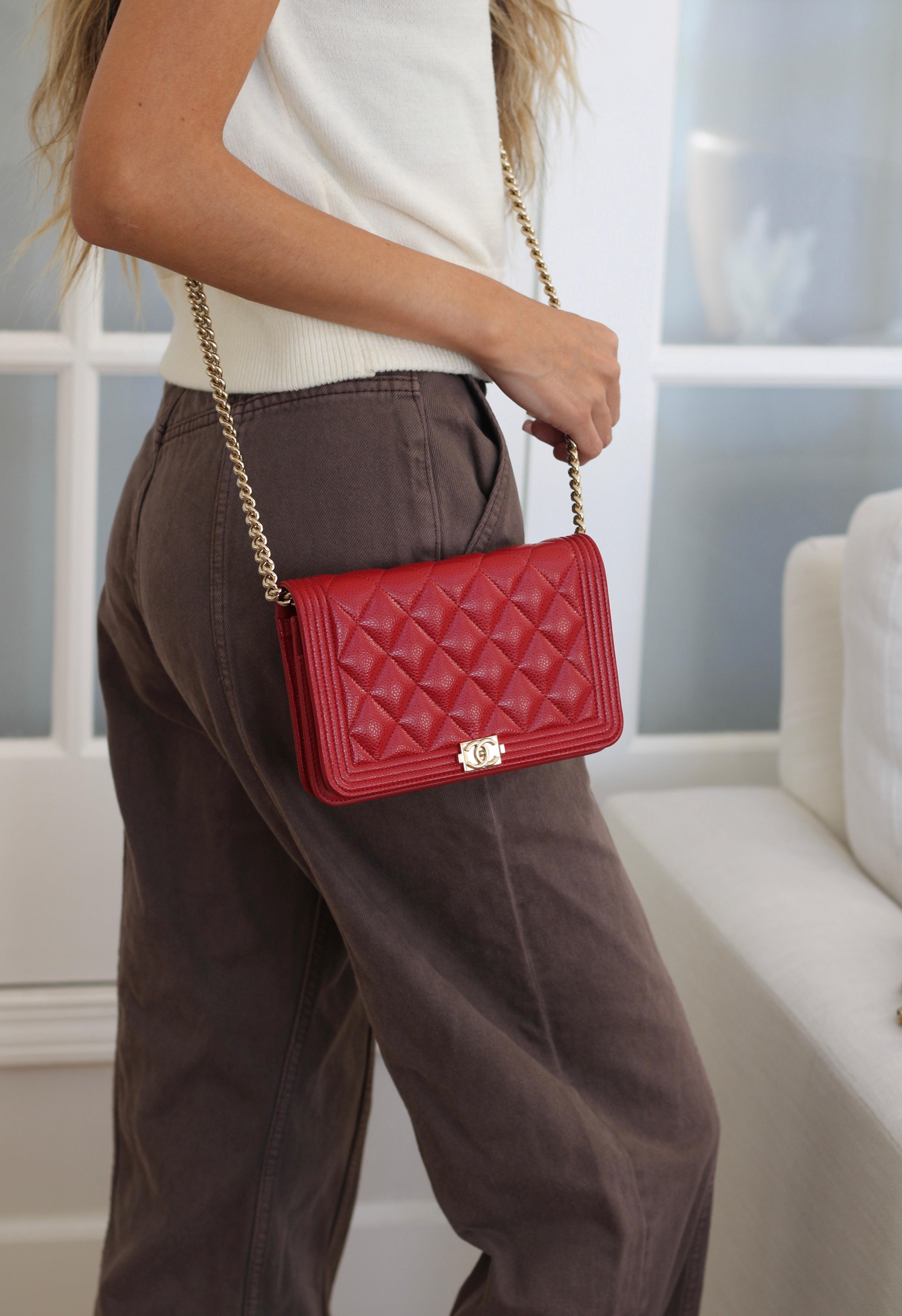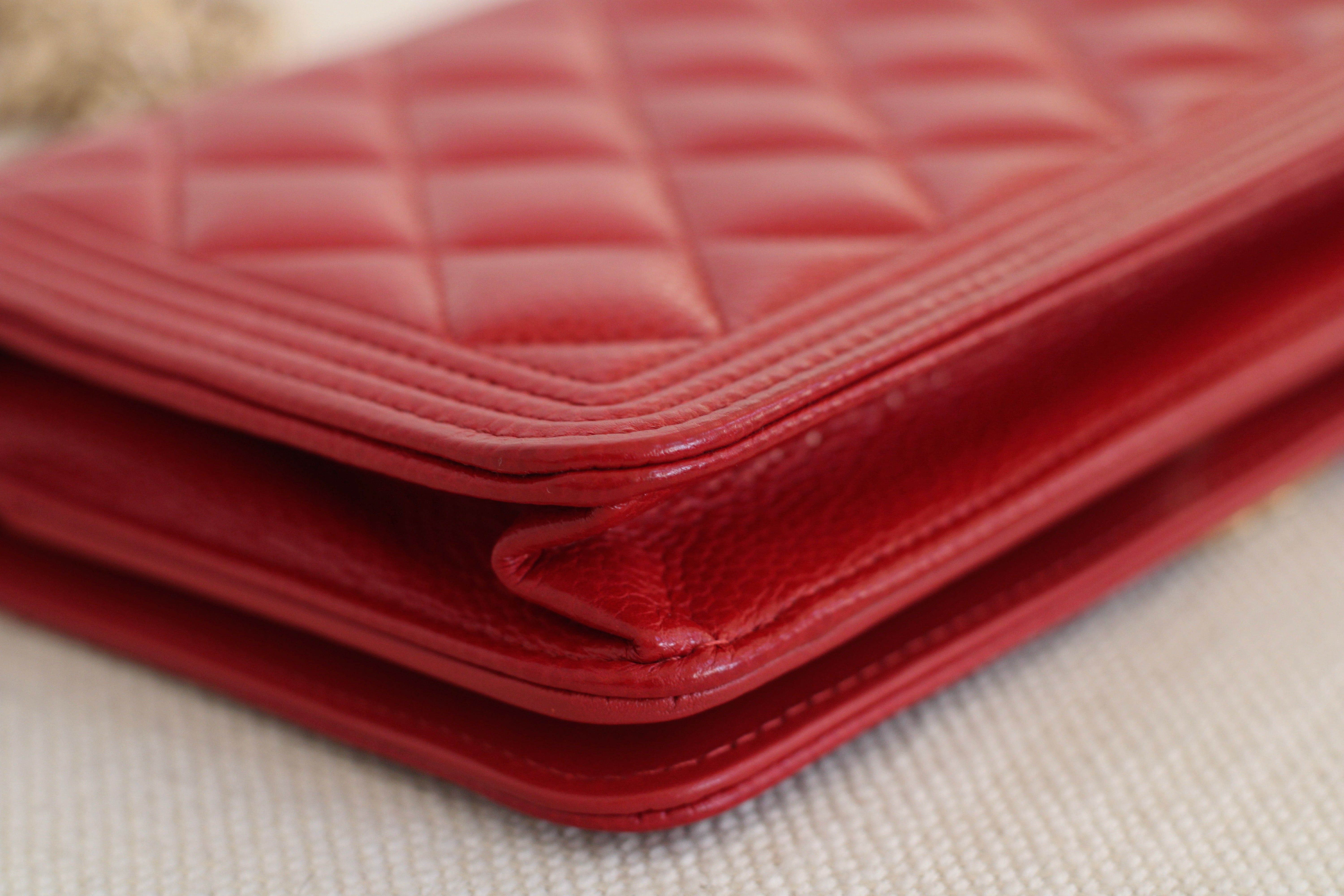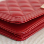 Chanel Red Caviar Boy Wallet on Chain with Light Gold Hardware